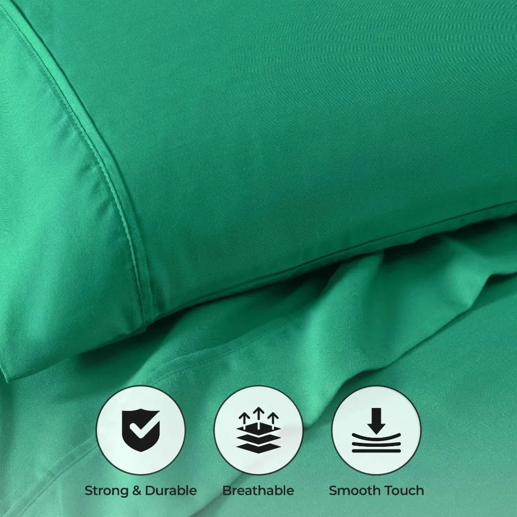 Experience the luxurious comfort and subtle elegance of our Cotton Blend 800 Thread Count Pillowcase Set. Crafted with a smooth sateen weave, these pillowcases offer an exceptionally soft touch and a delicate, luminous shimmer that enhances your bedding. Each pillowcase is finished with a refined 4-inch hem, adding a touch of sophisticated detail, and features a convenient open-end design for easy pillow insertion. Available in a range of beautiful colors to complement any bedroom décor, these single-ply pillowcases provide lasting softness and are machine washable for effortless care, allowing you to indulge in comfort and style night after night.