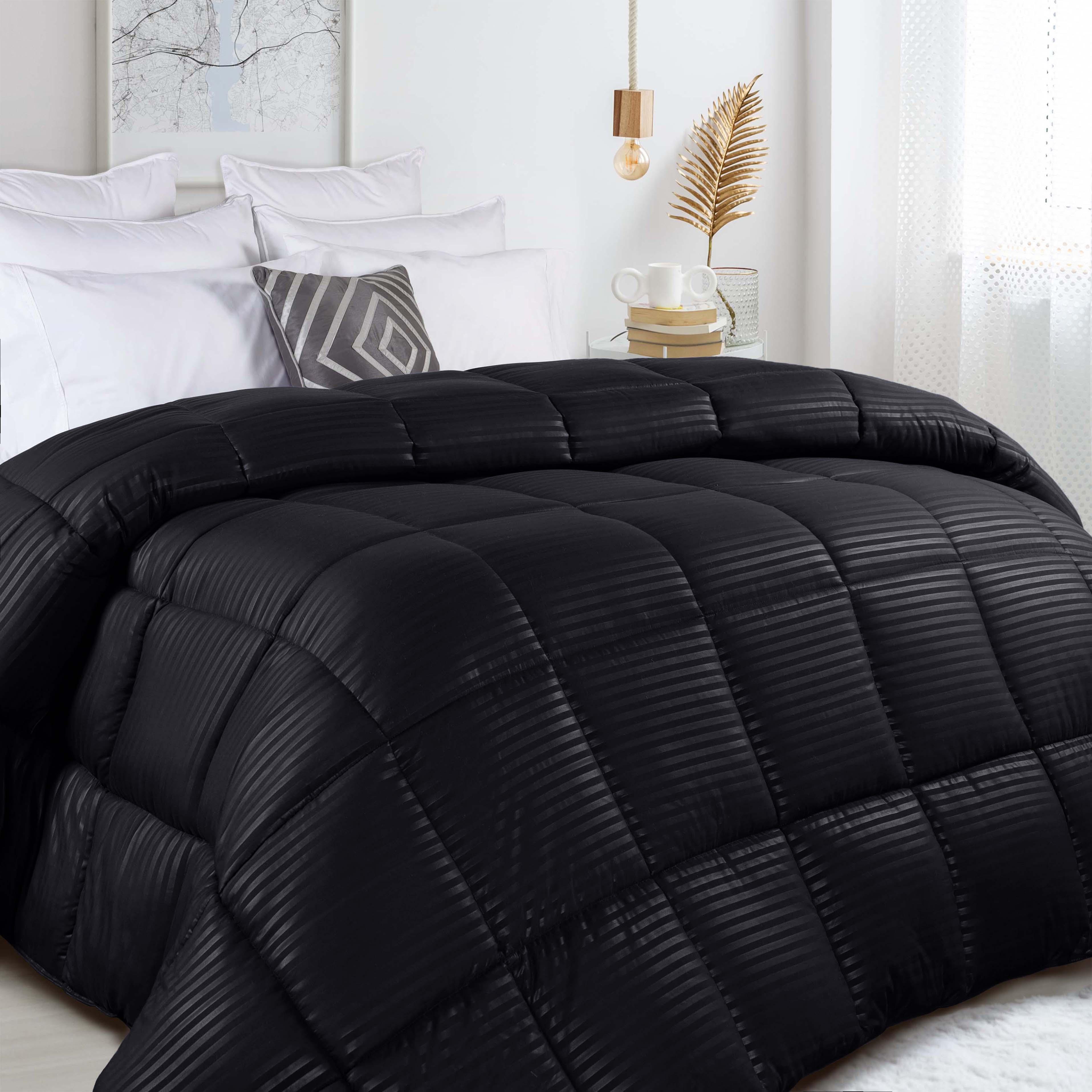 Soft as a cloud and indulgently fluffy, our Striped Brushed Microfiber Down Alternative Comforter is the perfect way to upgrade your everyday bedding. This luxurious and hypoallergenic comforter features a plush fill and an ultra-soft brushed microfiber shell. Our baffle box stitching keeps the fill securely in place and prevents it from shifting or lumping for a relaxing night of sleep. Display as is or use as a duvet insert for a fresh new look in any bedroom space. With a medium weight and breathable feel, this comforter will keep you cozy all night long.