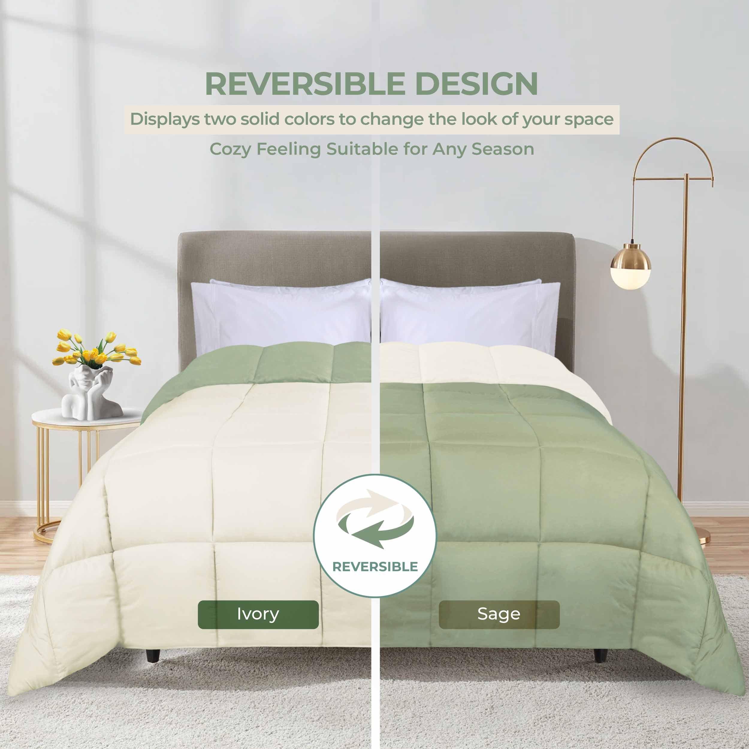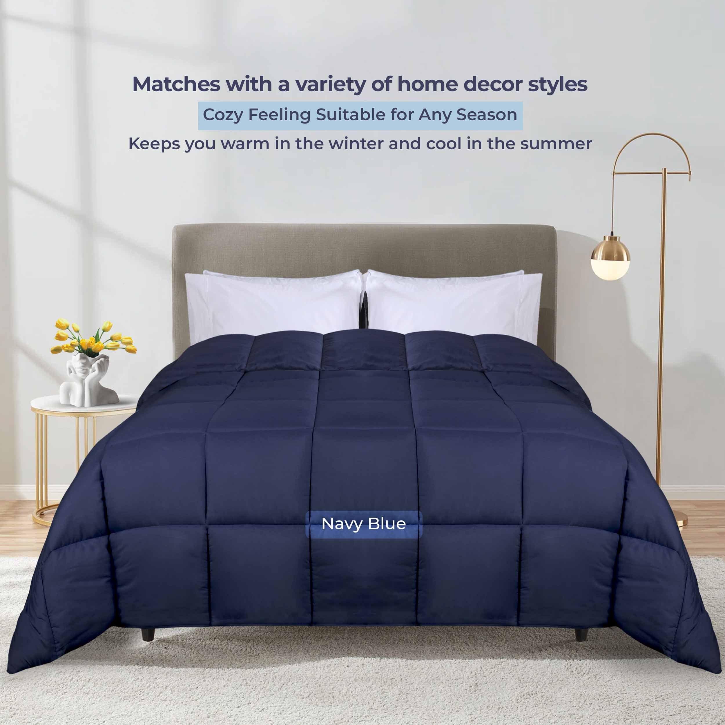 Turn your bedroom into a soothing retreat with our Reversible Down Alternative Comforter. This hypoallergenic comforter features a plush-down alternative fill and an ultra-soft brushed microfiber shell that will wrap you in calming comfort every night. Displaying a reversible solid pattern and a modern box-quilt detail, this comforter will easily match your existing bedding. Breathable and not too heavy, this comforter is available in a variety of sizes and classic solid colors to perfectly fit your bedroom space.