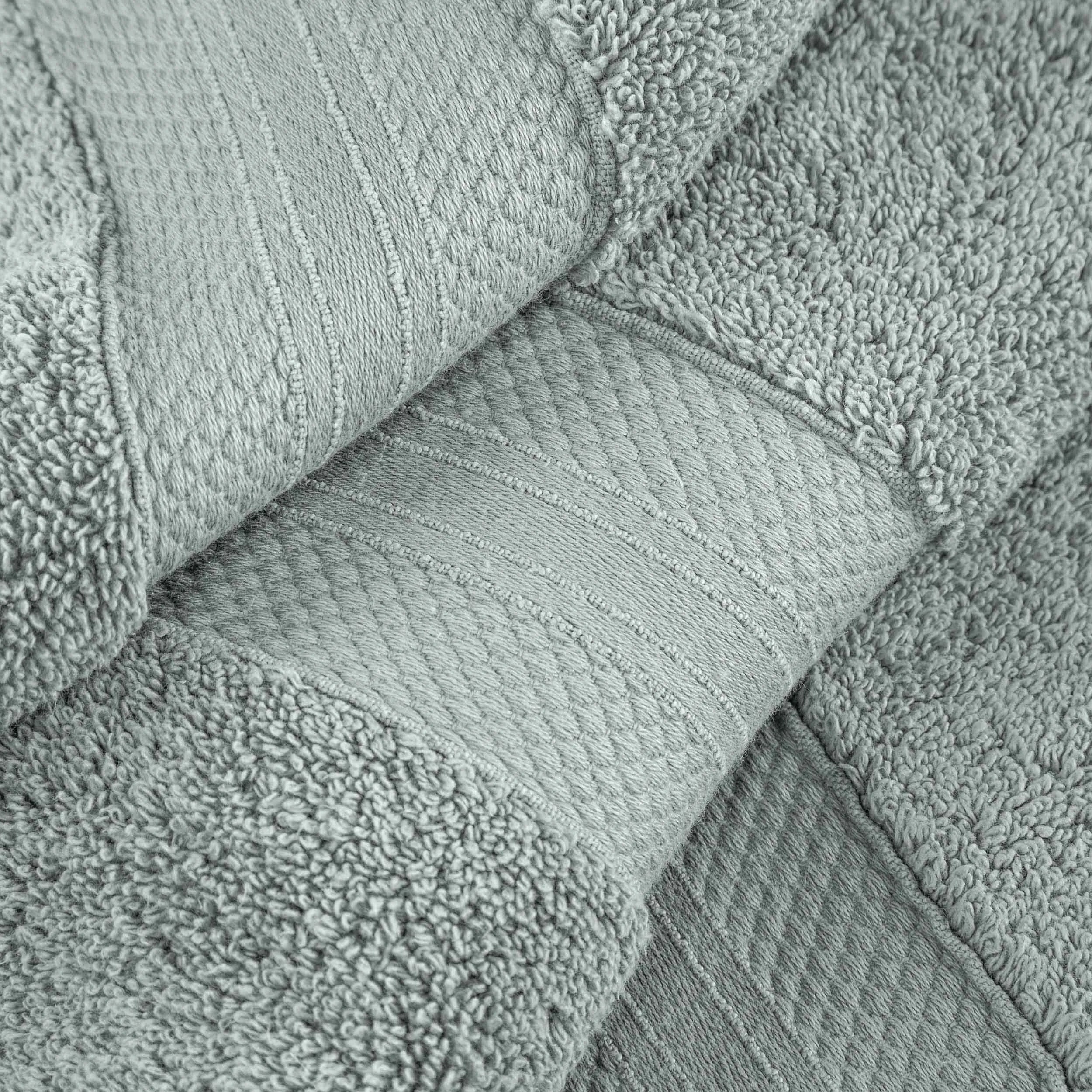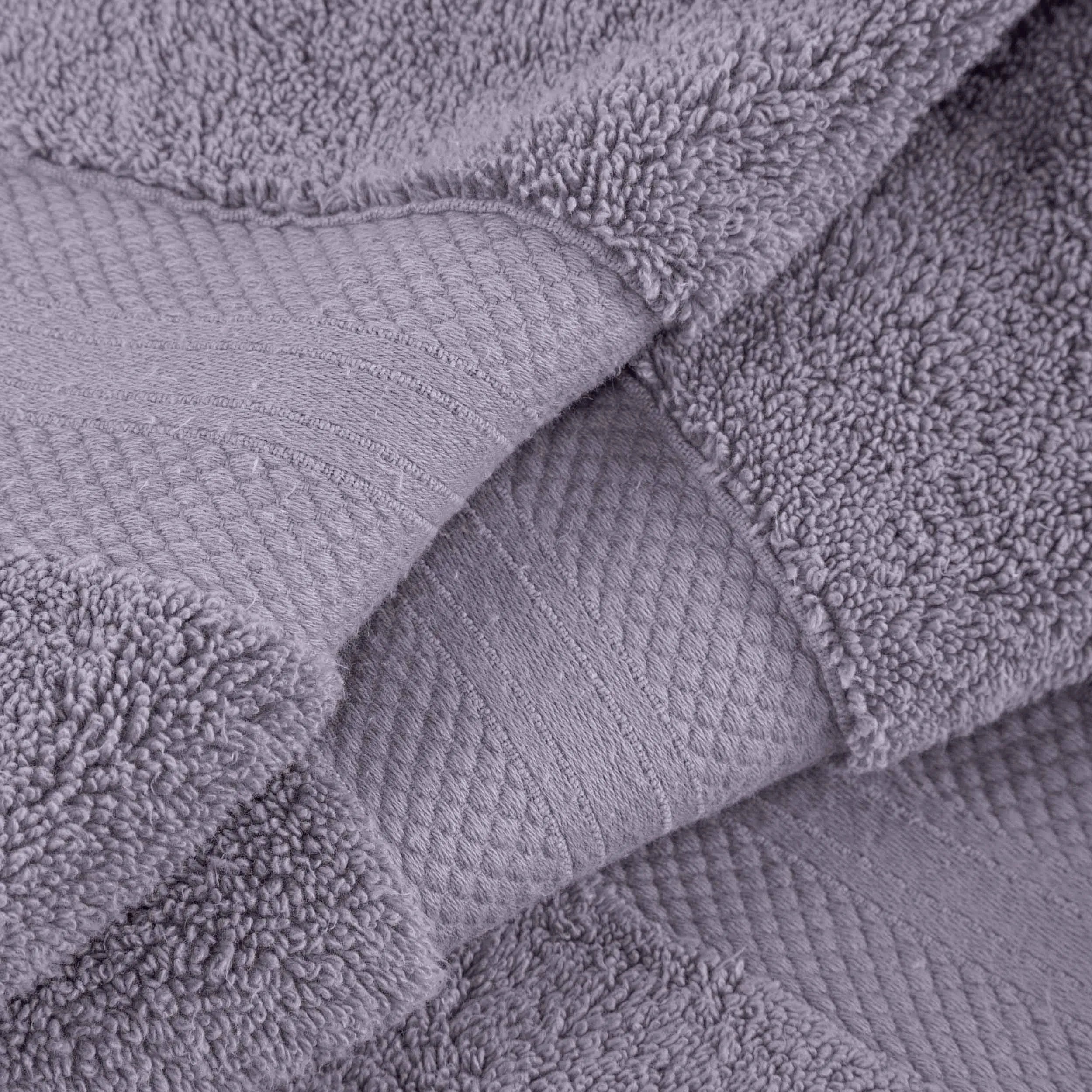 Enjoy comfort after a bath or shower with this gorgeous 12-piece Towel Set. Expertly crafted from premium Turkish Cotton with a single-ply terry loop quality, these towels wick moisture from your skin quickly, getting you warm and dry fast. These towels are lightweight, breathable, plush, and ultra-absorbent. Each bundle includes 3 bath towels, 3 hand towels, and 6 face towels/ washcloths and is designed with a bold diamond border for added elegance and texture. The hems of these towels are firmly turned and stitched for long-lasting durability. Available in your choice of lively solid colors, feel free to mix and match these towels for a fun, festive update in your master or guest bathroom.