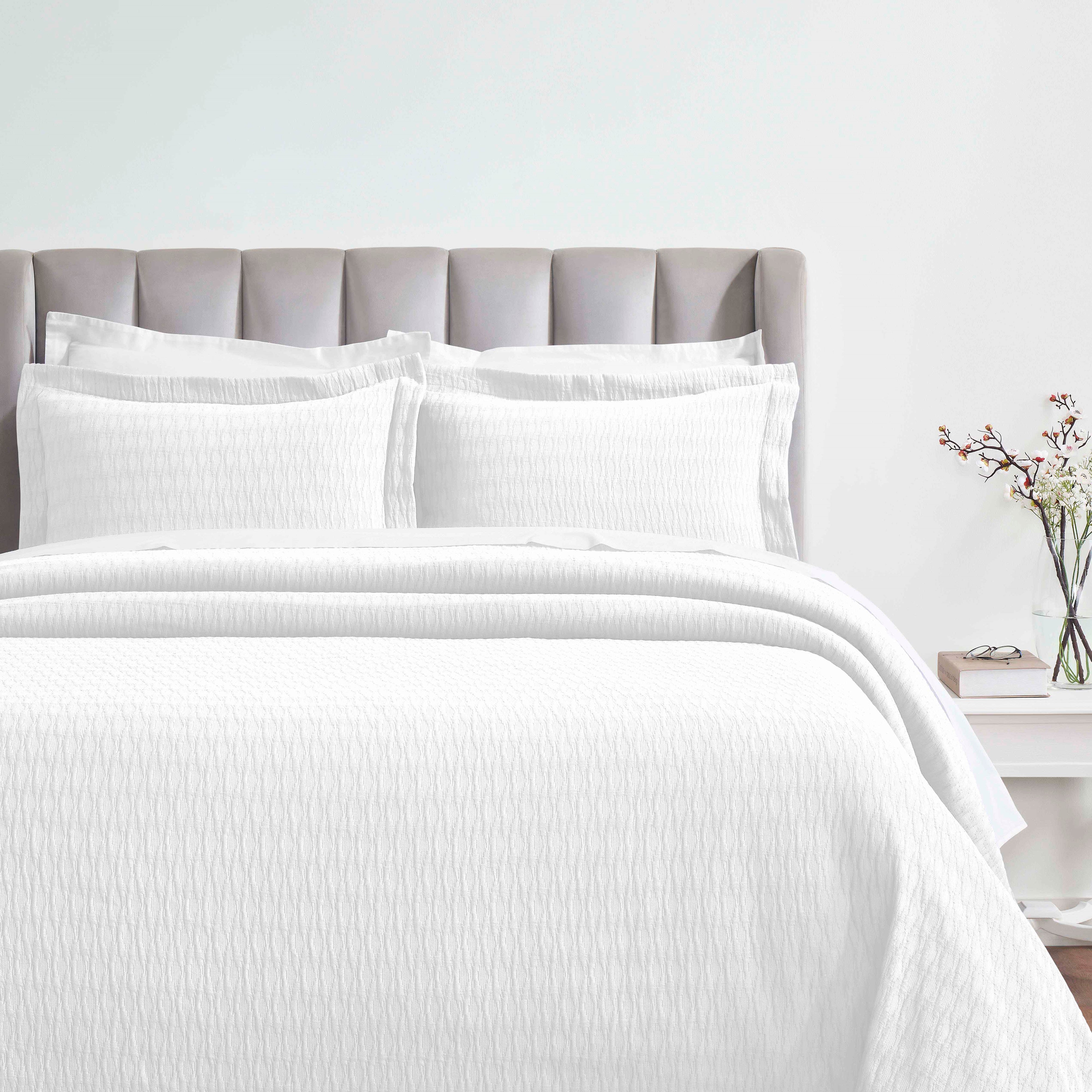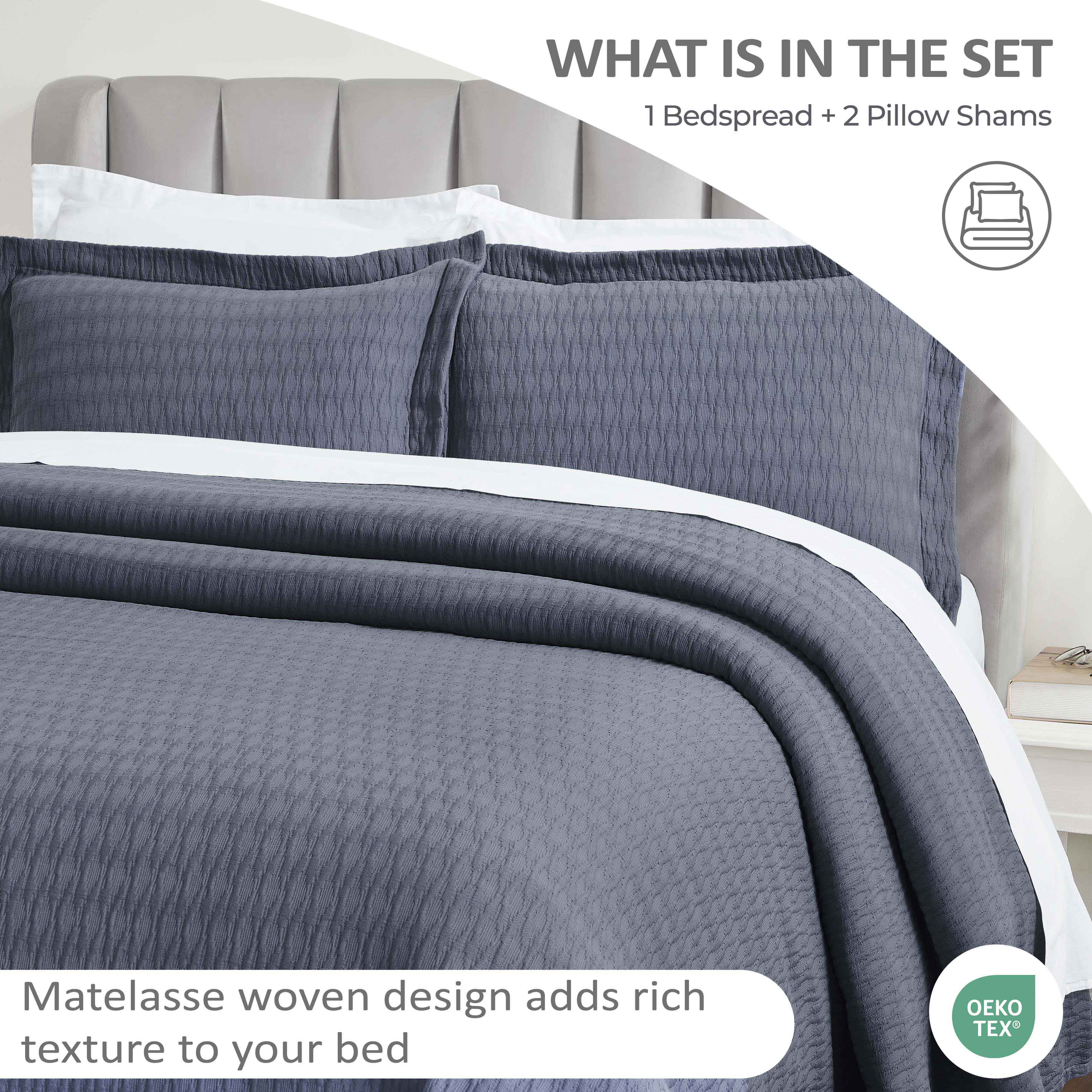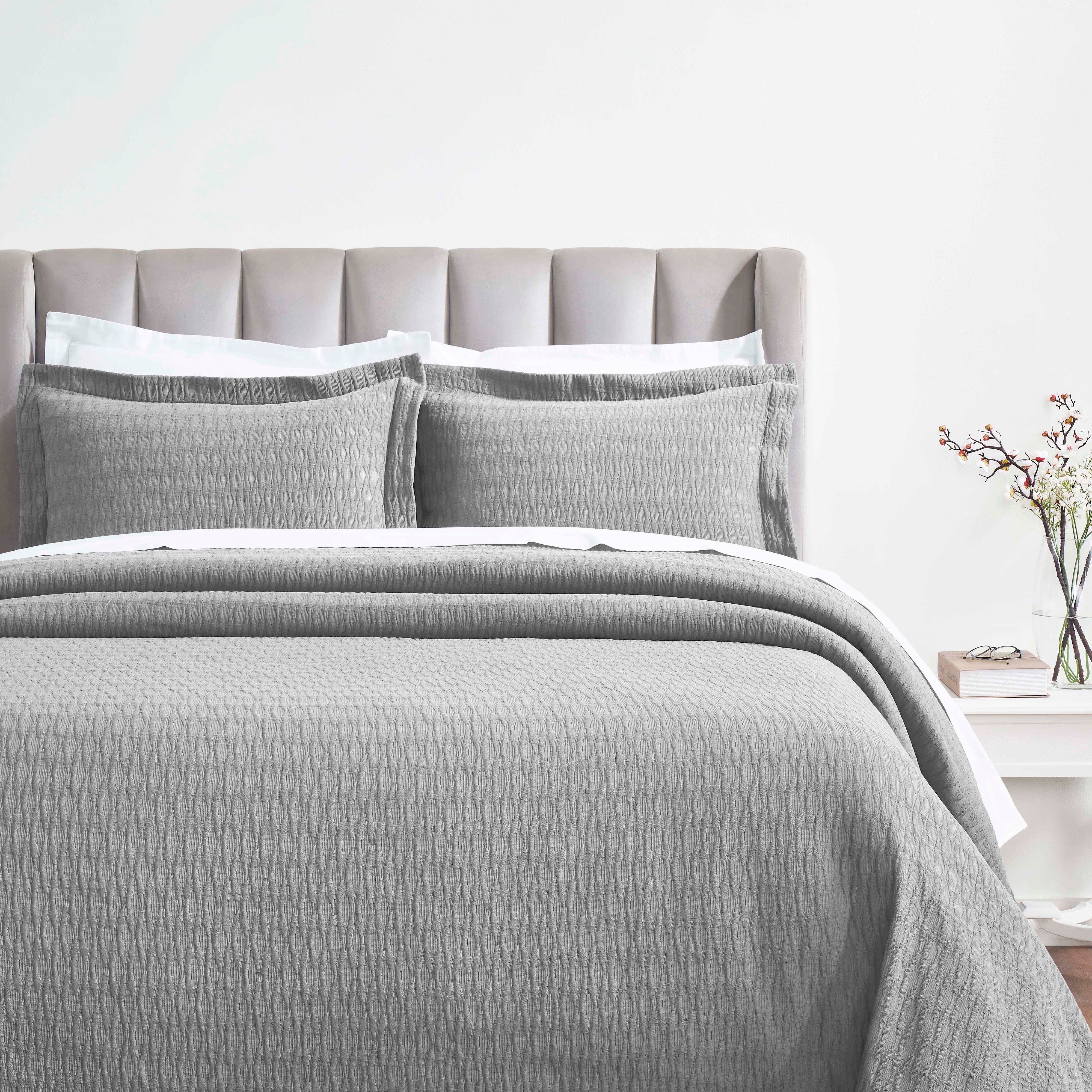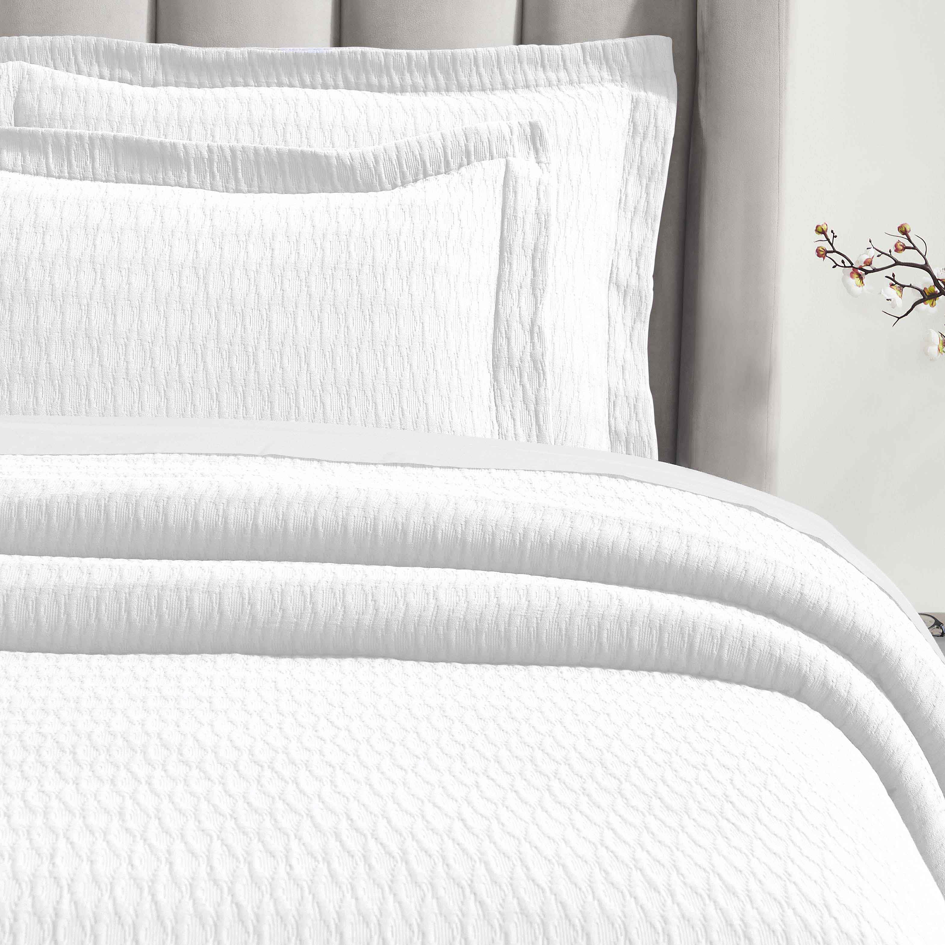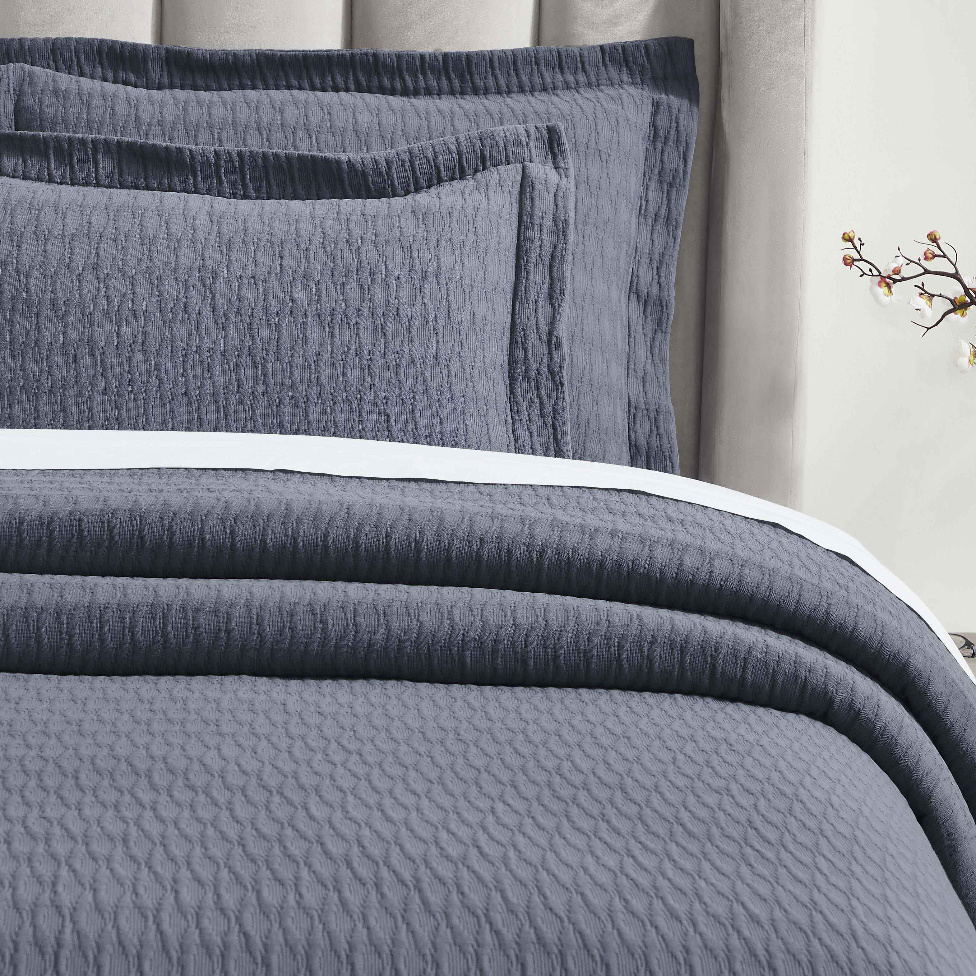 With our Calvert Matelasse Bedspread Set, you can easily enhance the look of your bedroom, sofa or daybed and create an inviting space. Crafted from luxurious and cozy cotton, this bedding set is available in a wide range of color options to match your bedroom decor style. Featuring a modern matelasse woven pattern in a diamond lattice design, this jacquard bedspread adds rich texture to your bed. Perfect for layering and adding a pop of color to your space, this bedspread set is warm enough to use on its own or as a layering accent in any room. Matching pillow shams are included to create a coordinating look. Add everyday elegance and a stylish accent to your bedroom decor with this beautiful bedspread set.