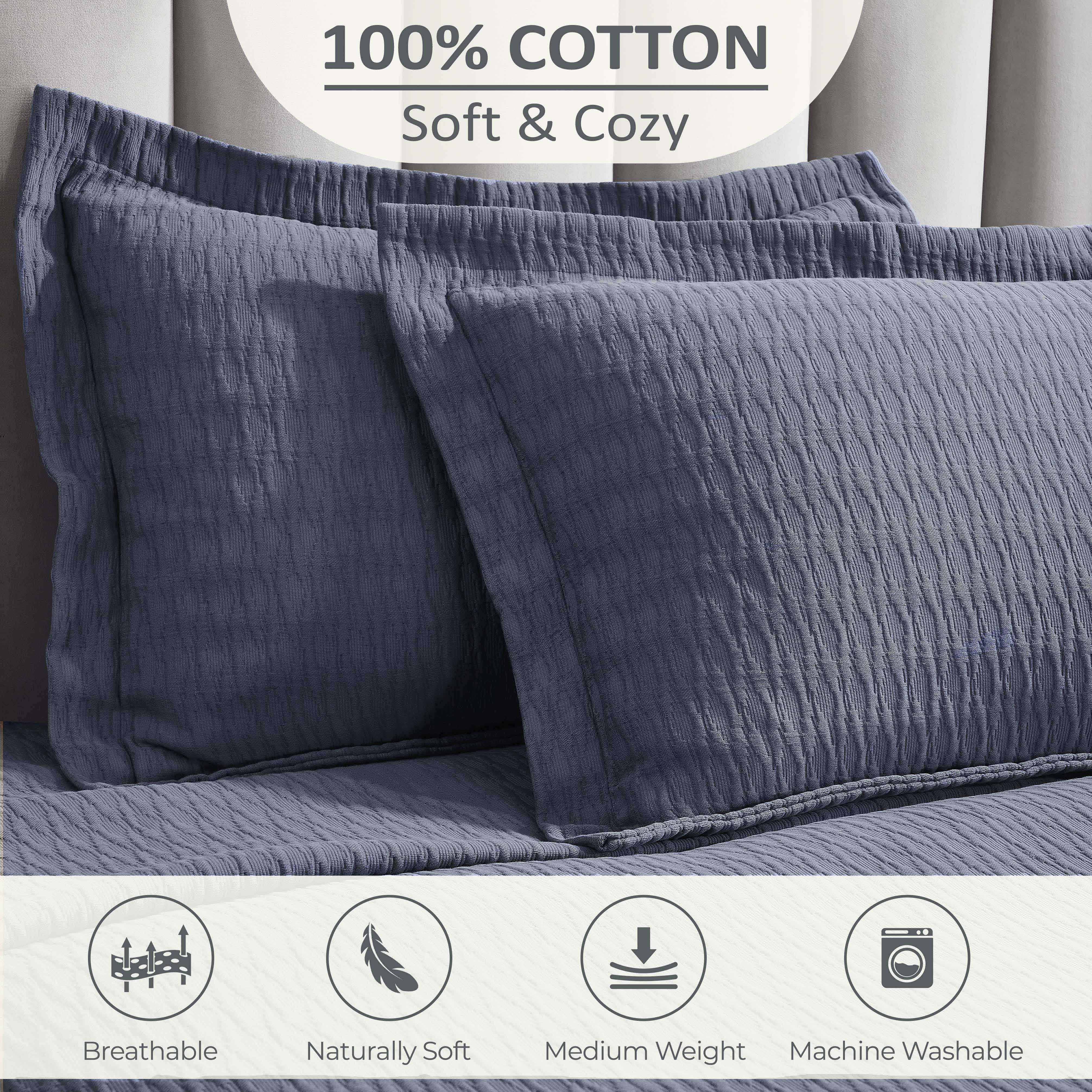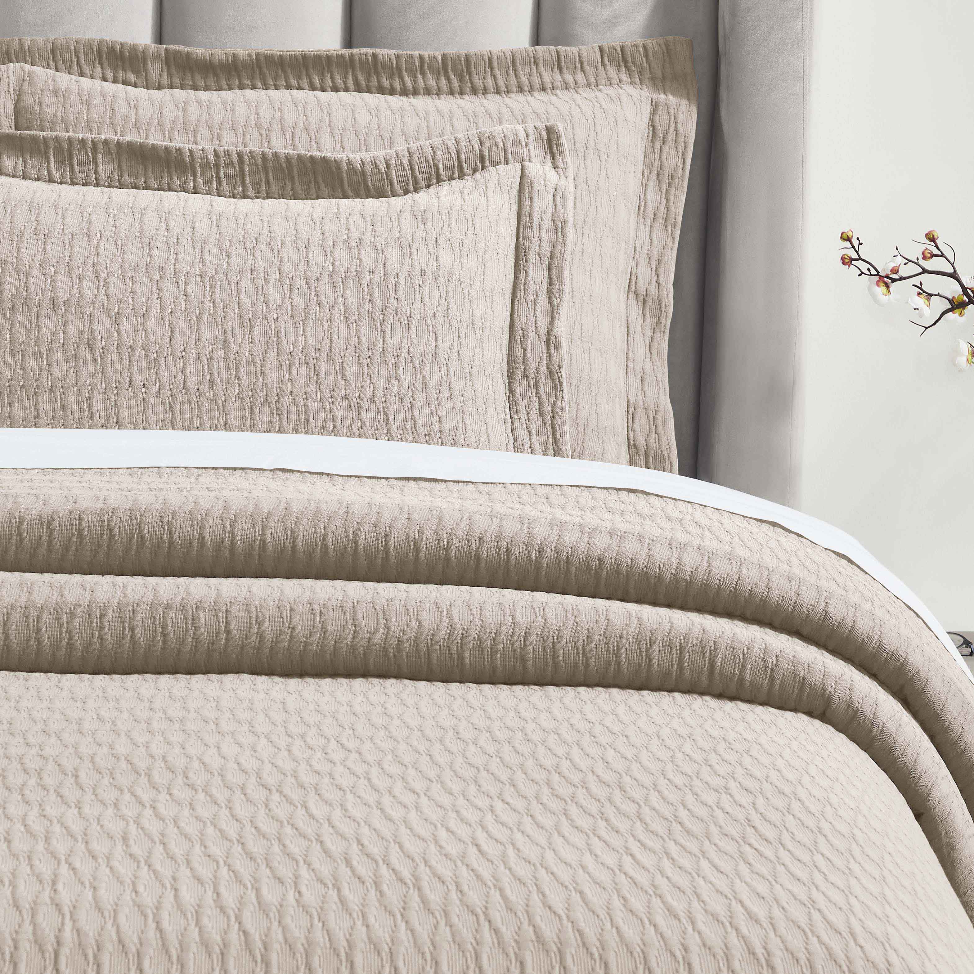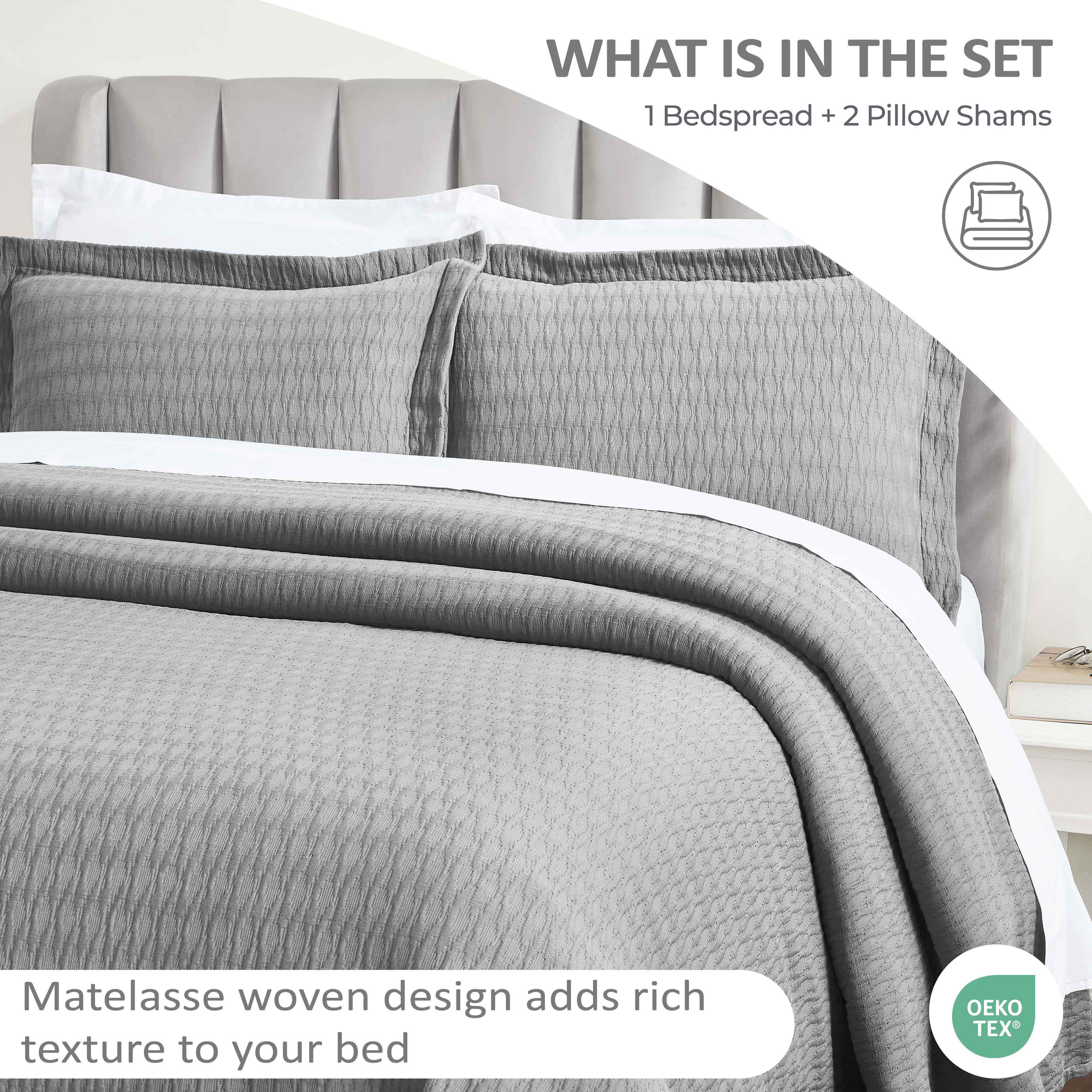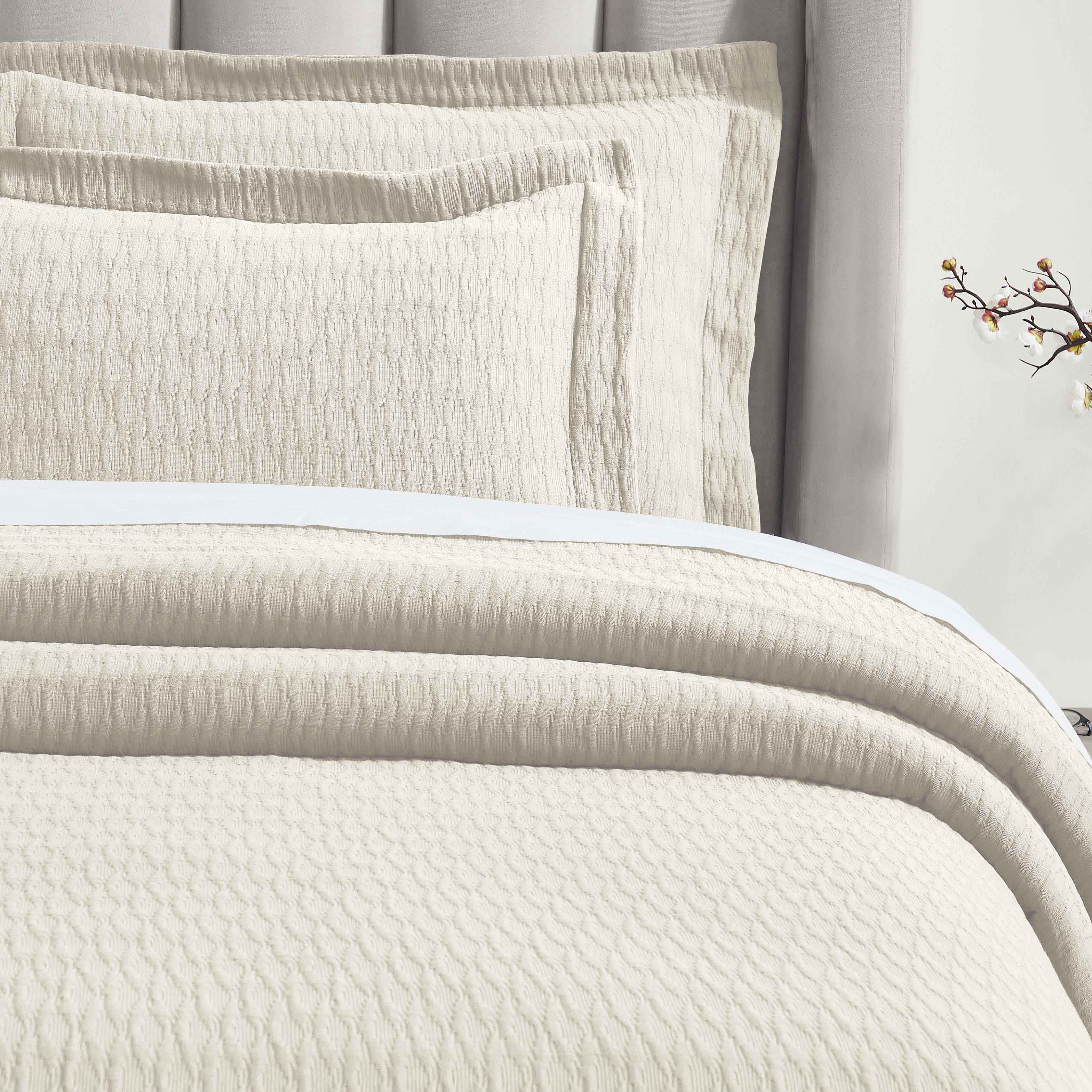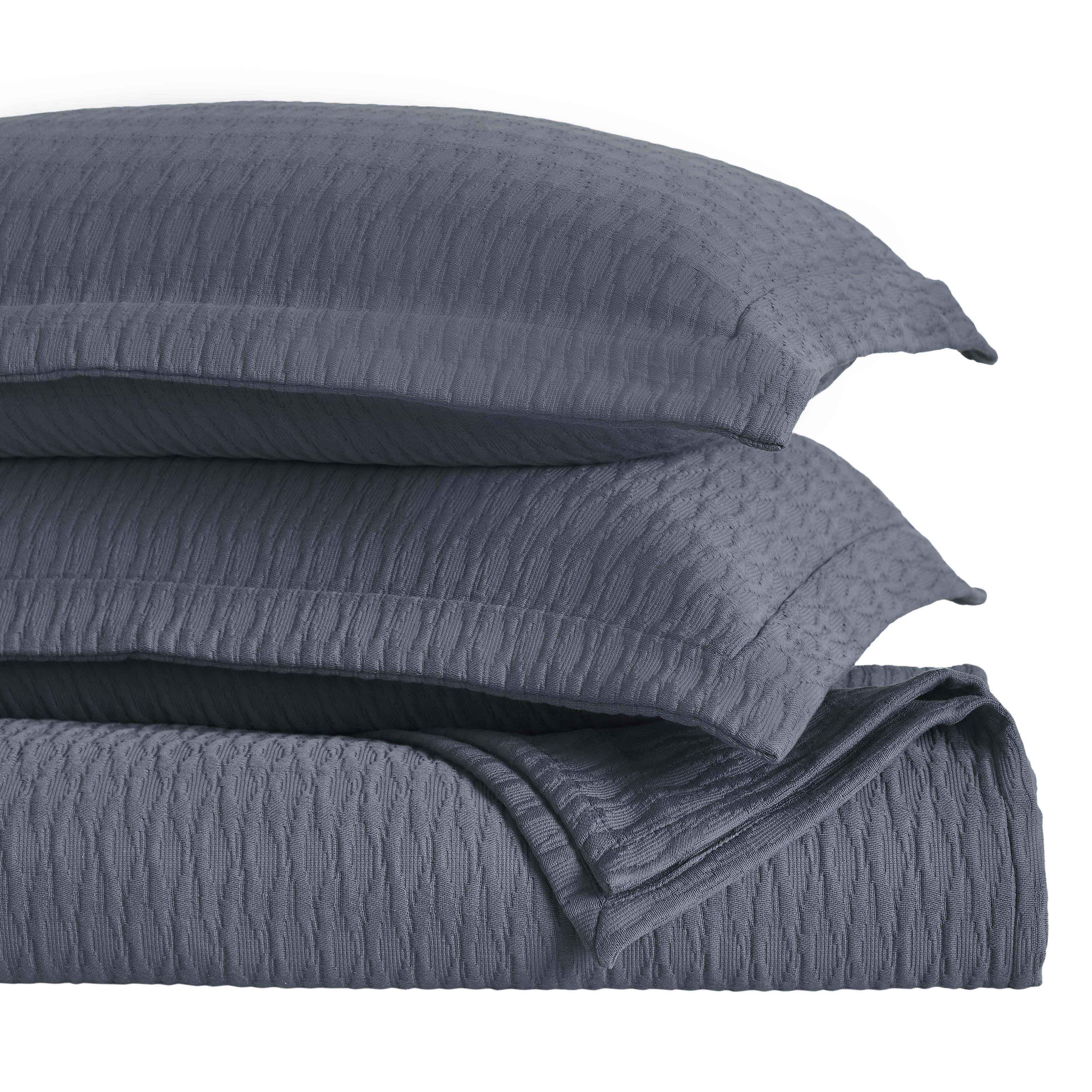 With our Calvert Matelasse Bedspread Set, you can easily enhance the look of your bedroom, sofa or daybed and create an inviting space. Crafted from luxurious and cozy cotton, this bedding set is available in a wide range of color options to match your bedroom decor style. Featuring a modern matelasse woven pattern in a diamond lattice design, this jacquard bedspread adds rich texture to your bed. Perfect for layering and adding a pop of color to your space, this bedspread set is warm enough to use on its own or as a layering accent in any room. Matching pillow shams are included to create a coordinating look. Add everyday elegance and a stylish accent to your bedroom decor with this beautiful bedspread set.
