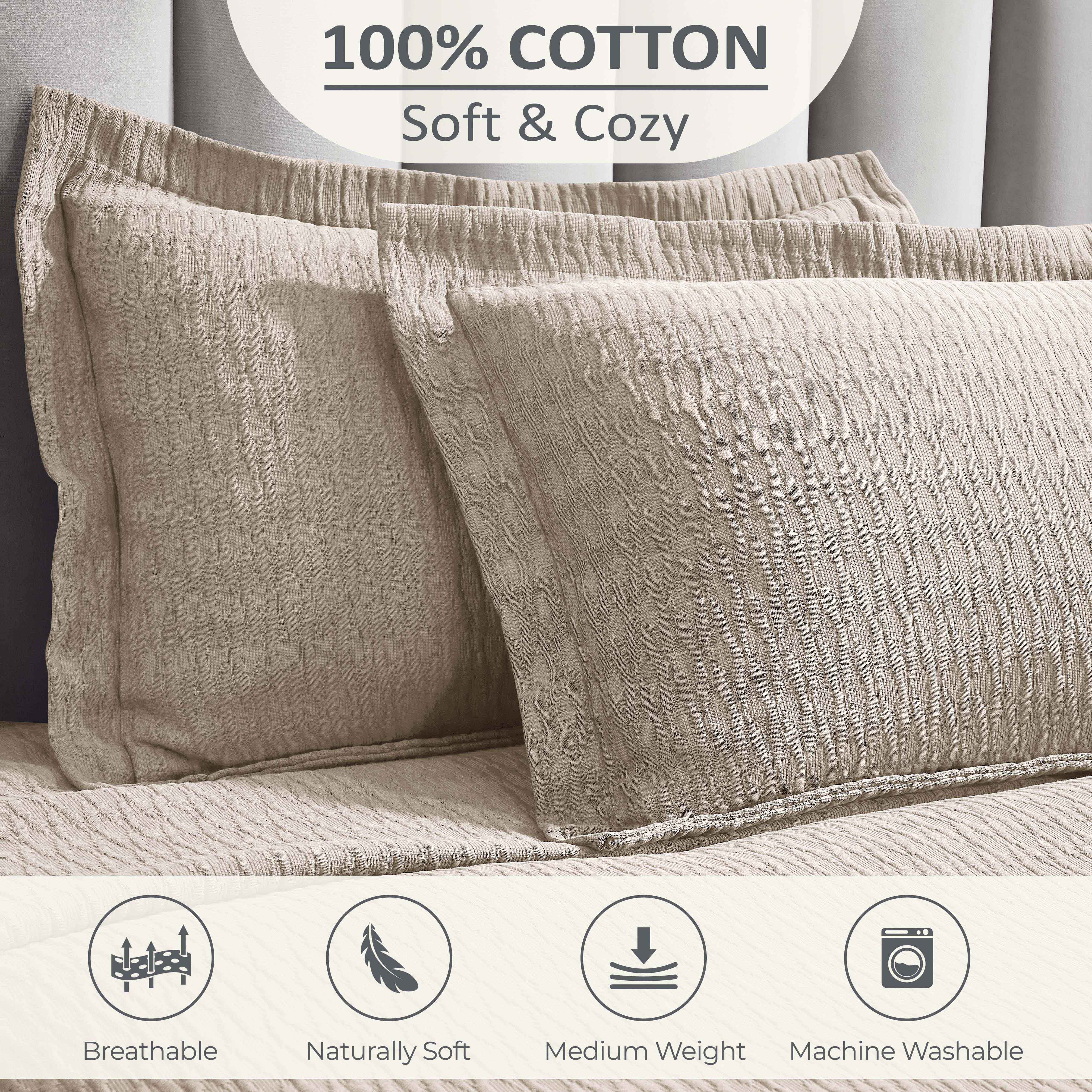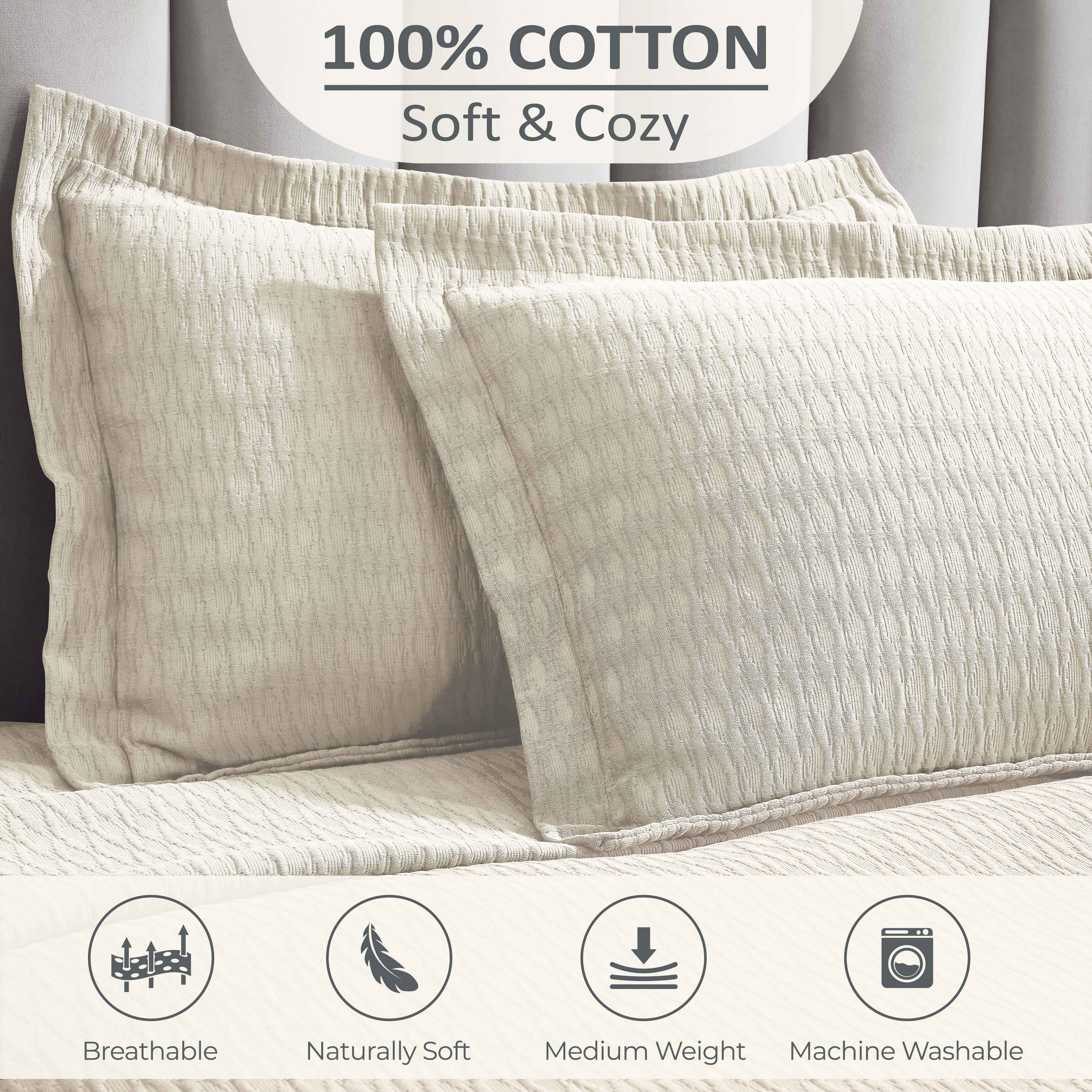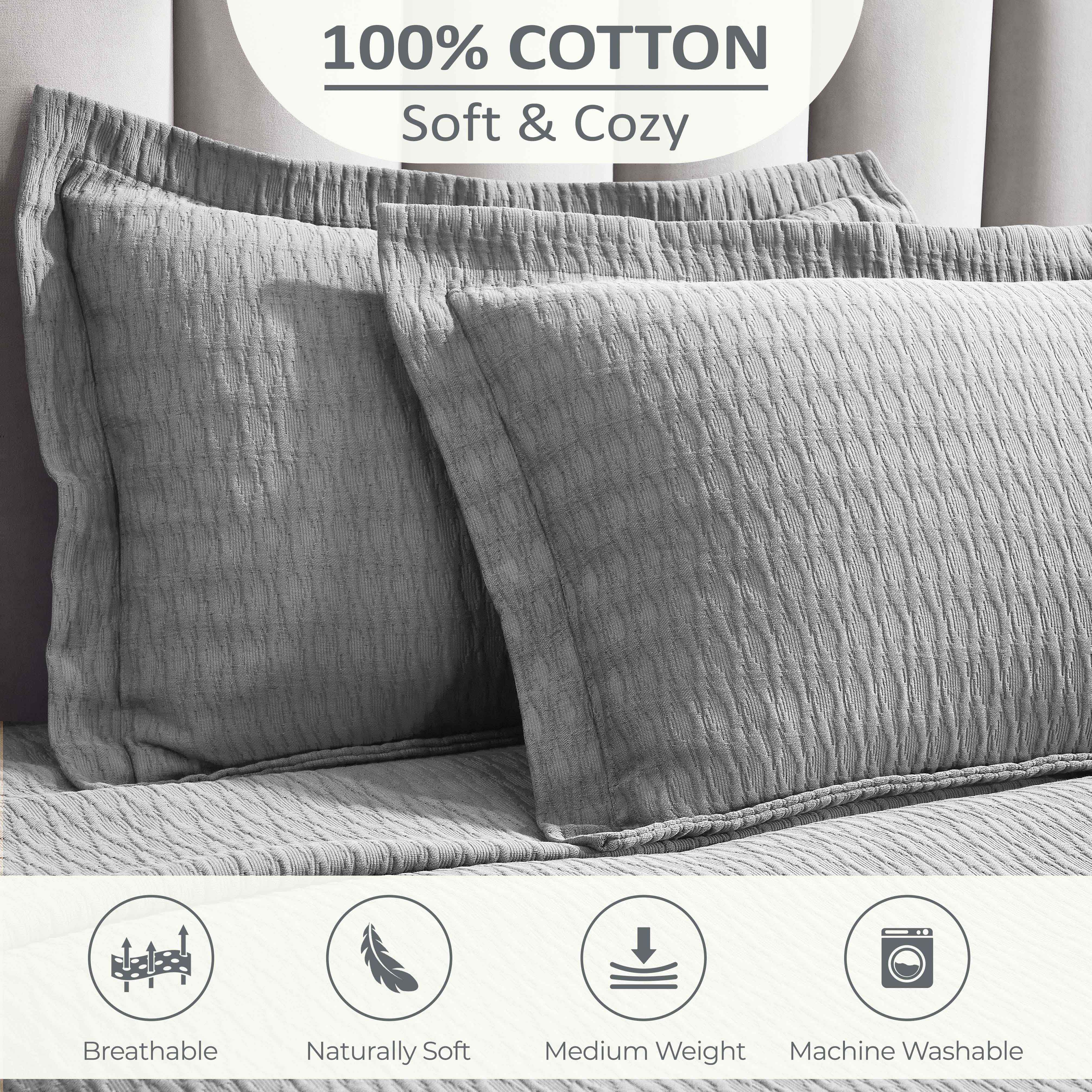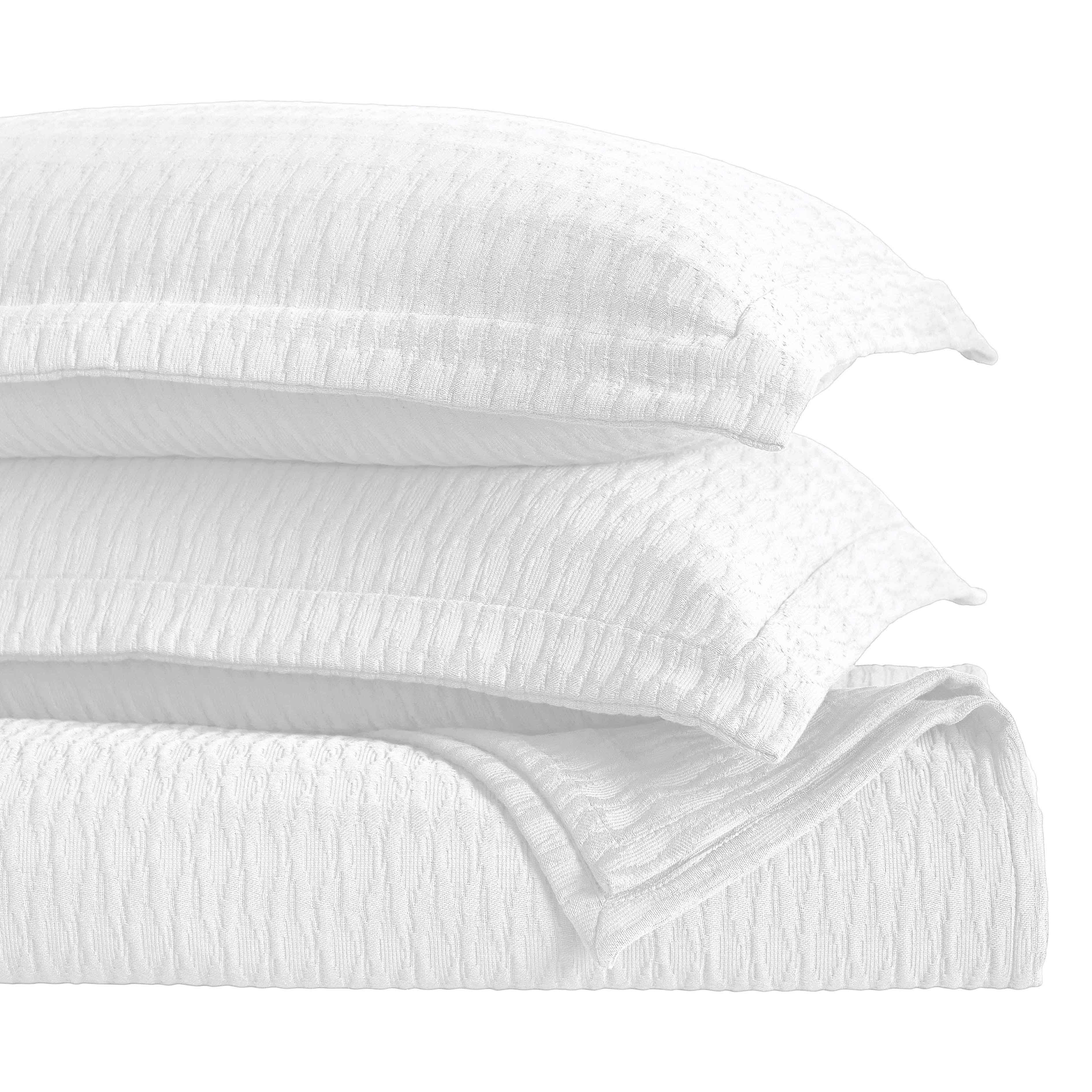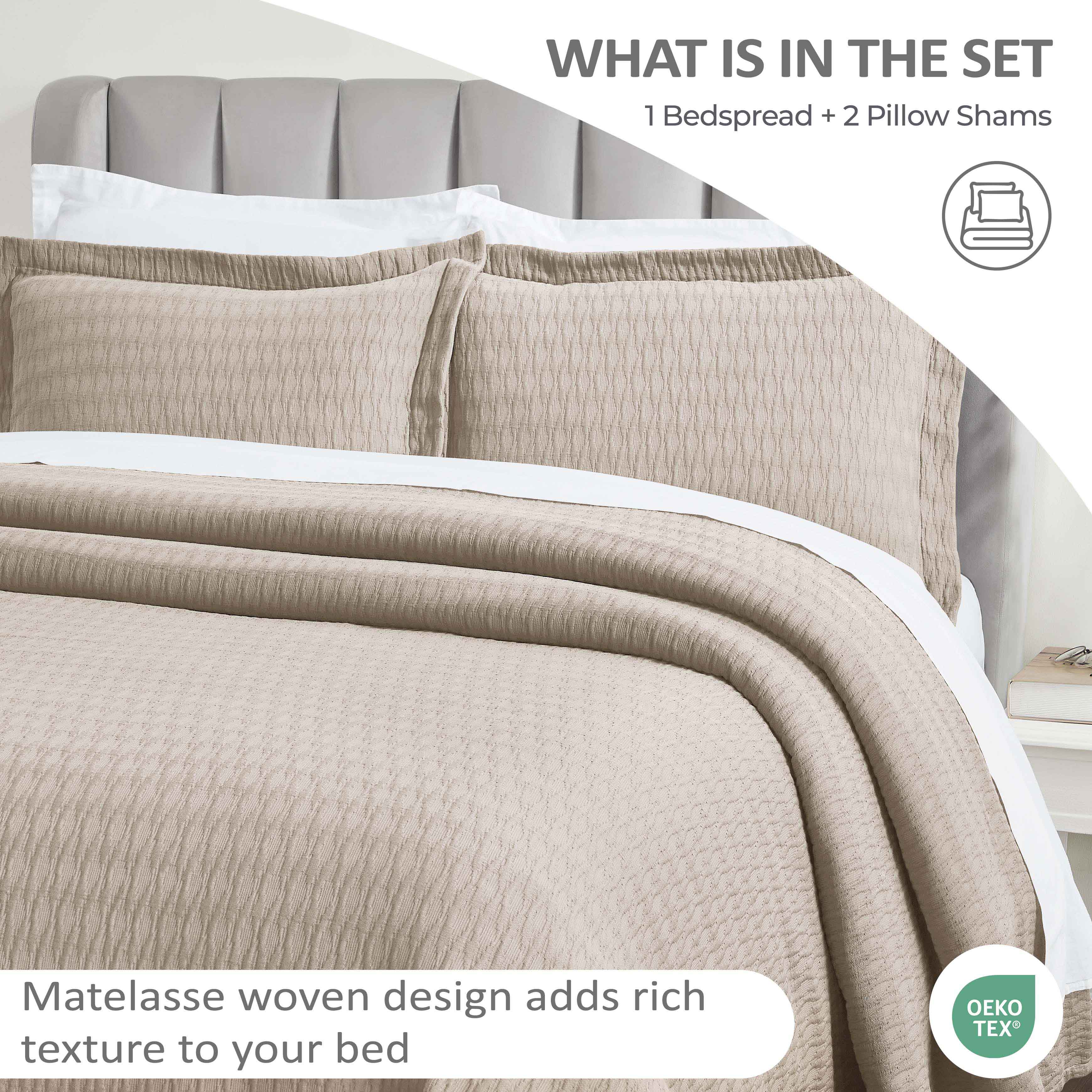 With our Calvert Matelasse Bedspread Set, you can easily enhance the look of your bedroom, sofa or daybed and create an inviting space. Crafted from luxurious and cozy cotton, this bedding set is available in a wide range of color options to match your bedroom decor style. Featuring a modern matelasse woven pattern in a diamond lattice design, this jacquard bedspread adds rich texture to your bed. Perfect for layering and adding a pop of color to your space, this bedspread set is warm enough to use on its own or as a layering accent in any room. Matching pillow shams are included to create a coordinating look. Add everyday elegance and a stylish accent to your bedroom decor with this beautiful bedspread set.