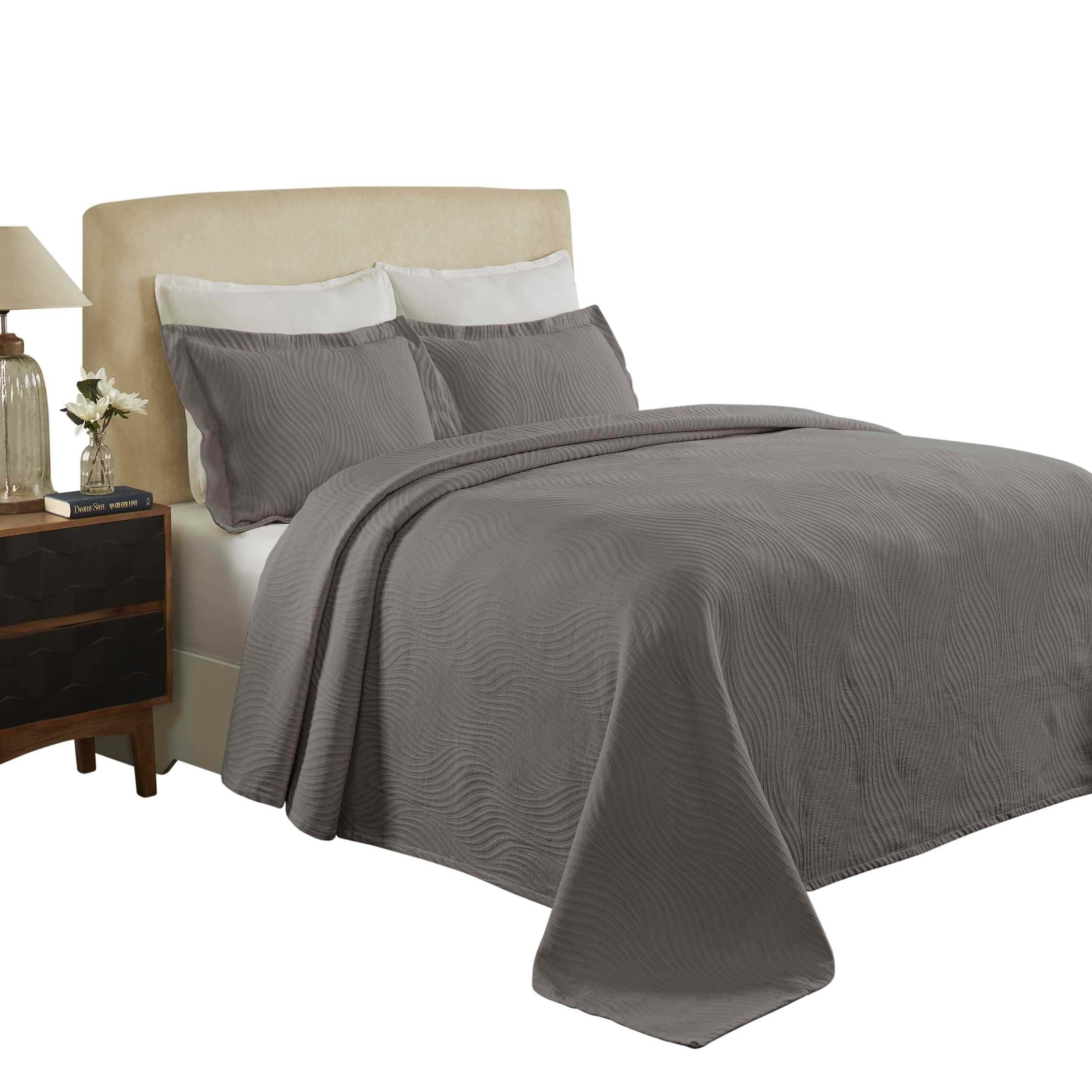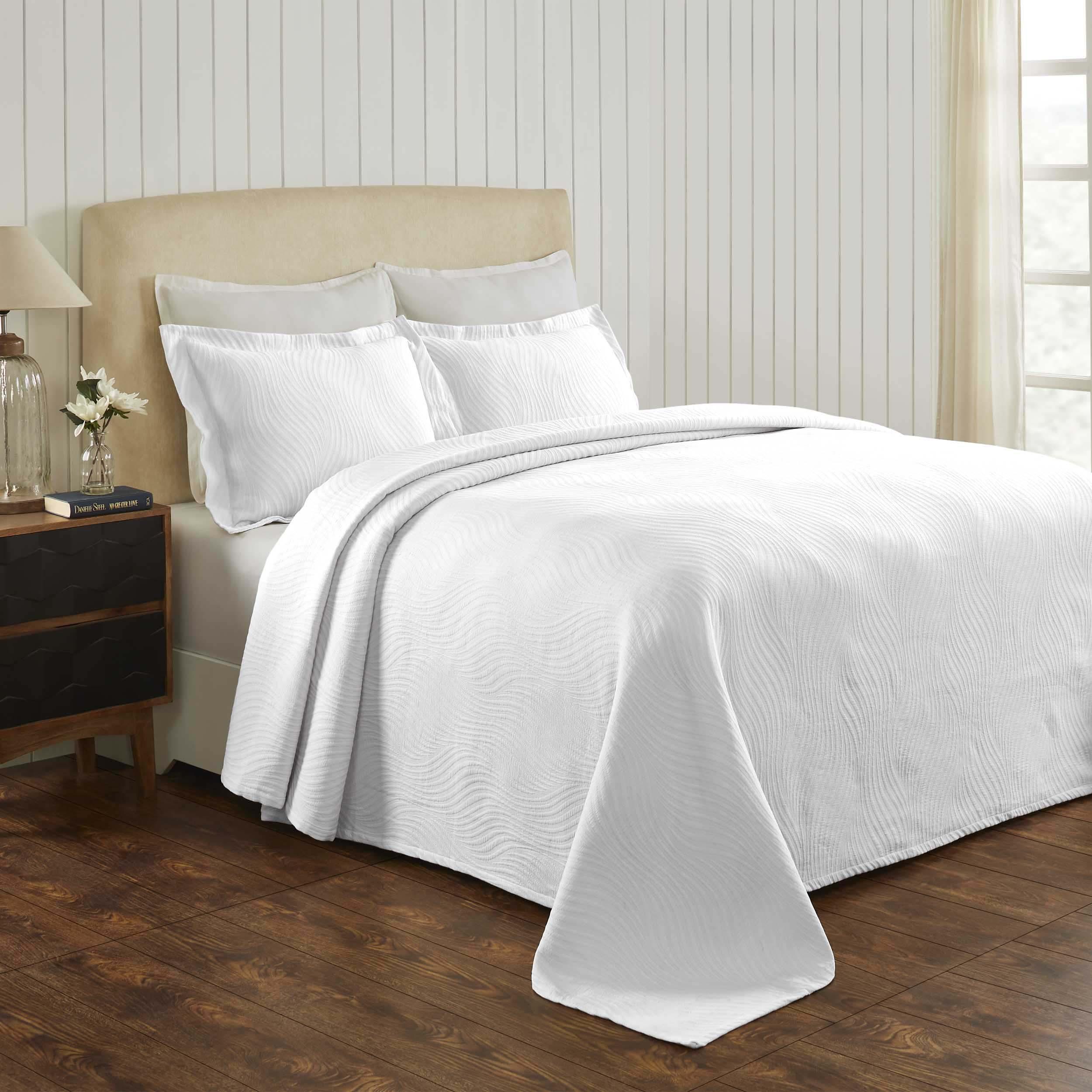 Rich with texture and oh-so-soft, the Cascade Cotton Jacquard Matelassé 3-Piece Bedspread Set transforms your bedroom into a soothing retreat. It features raised jacquard matelassé waves which offer a sculpted appearance, yet are ultra soft to the touch. The all-cotton construction provides just the right amount of warmth for any season, whether it's displayed on its own in warmer months or layered with your favorite blanket when the temperature dips. The pillow shams boast flanged edges and 6-inch envelope closure. This must-have set is offered in your choice of available sizes and colors for a seamless blend with your decor.