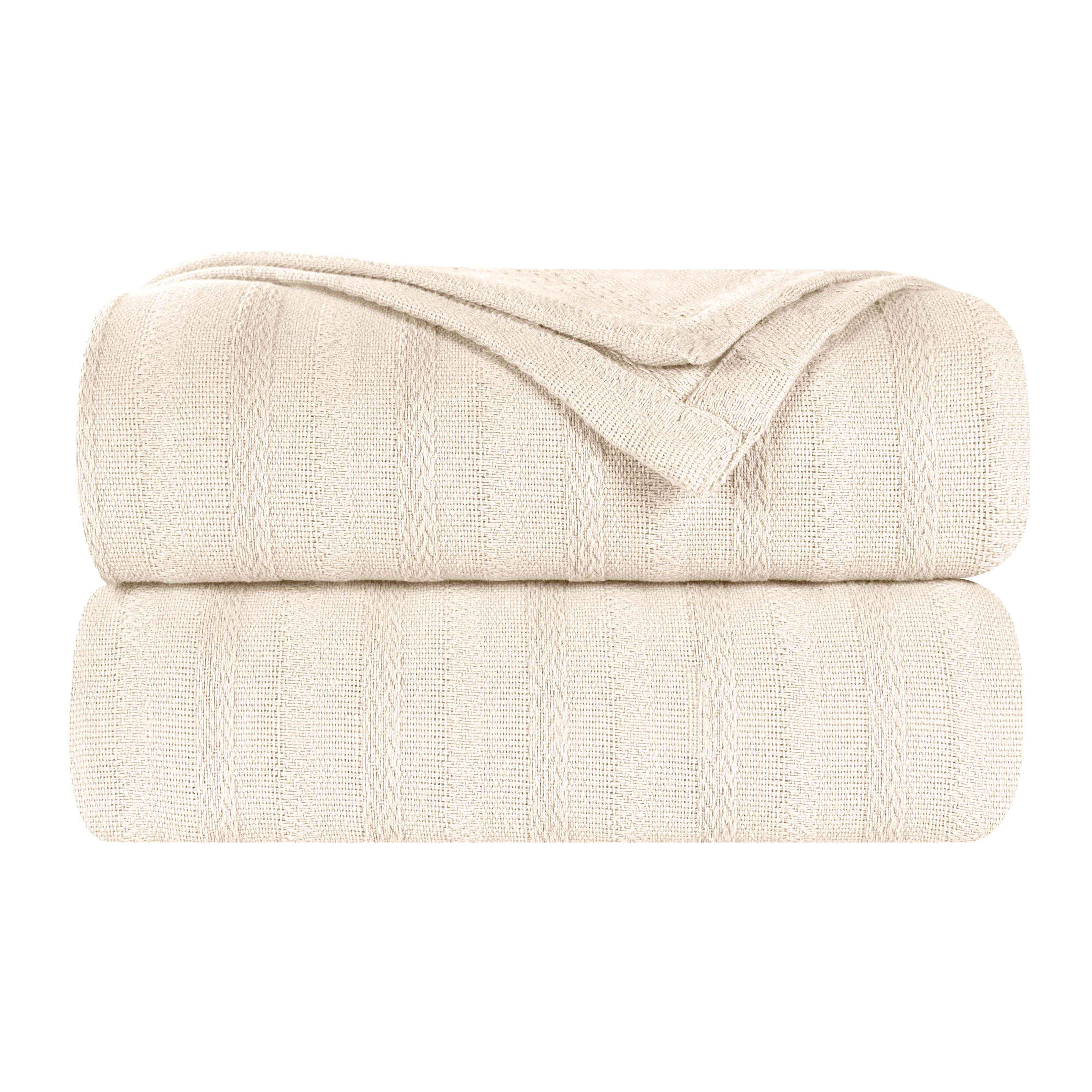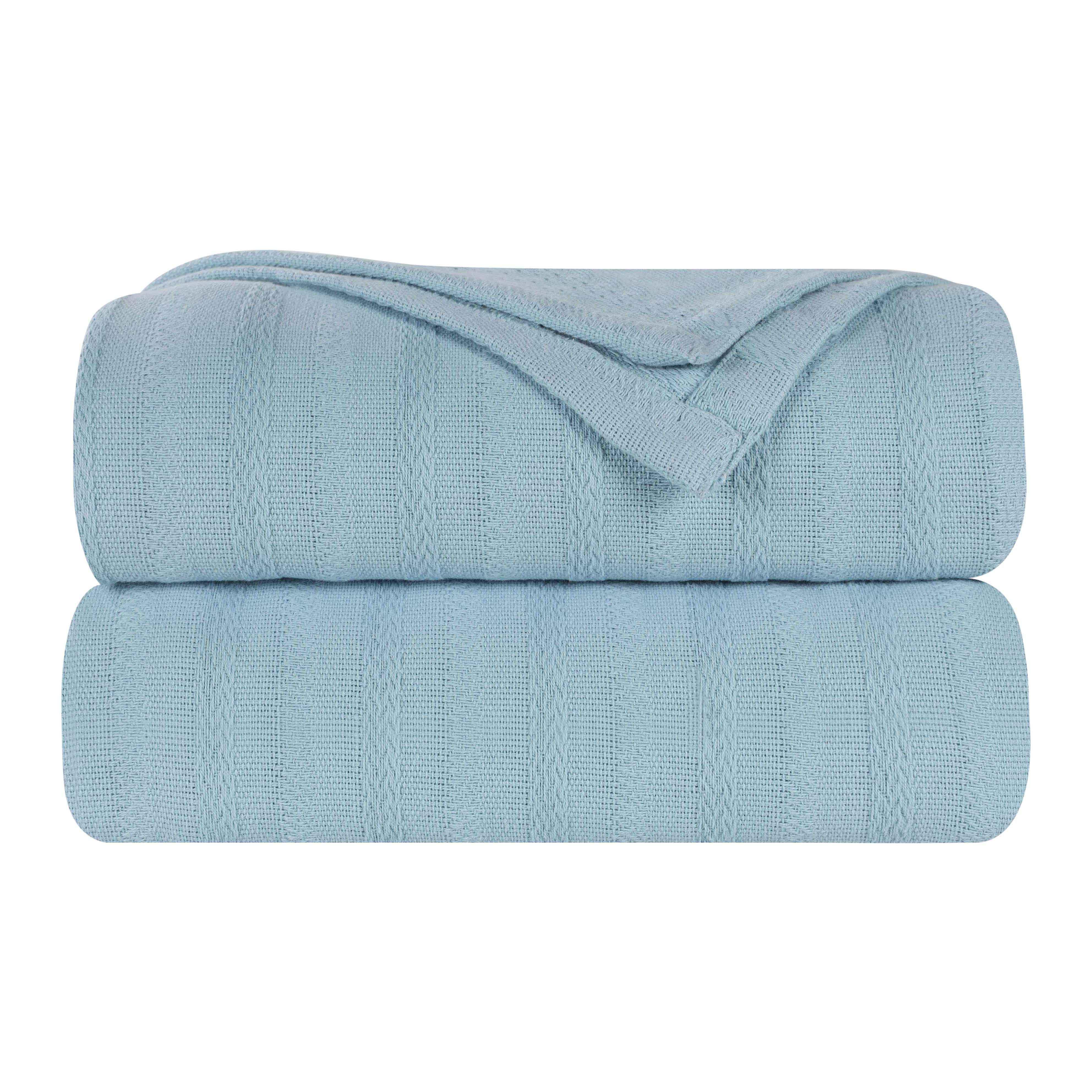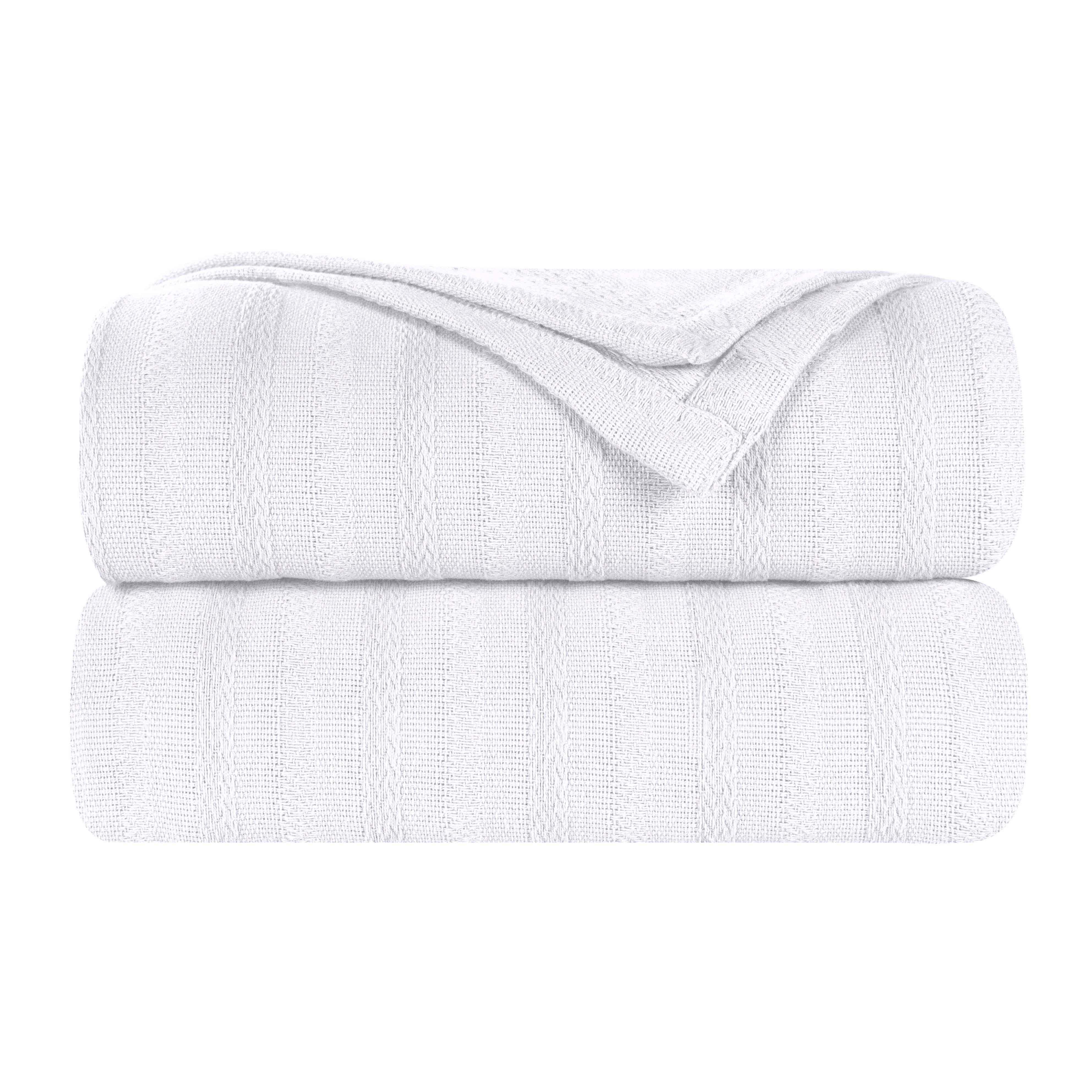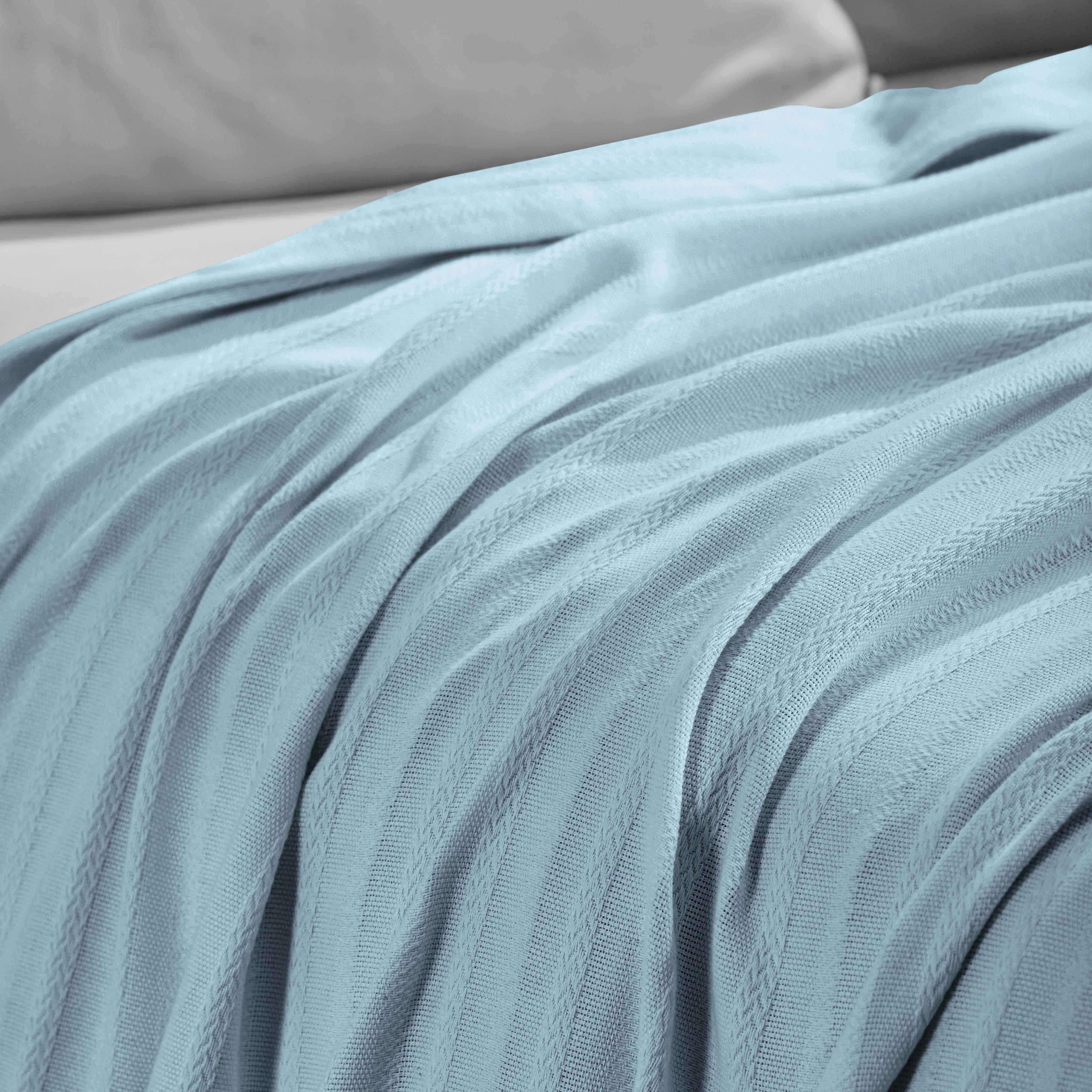 Drift off into a cozy slumber wrapped in our Clara Cotton Blanket. Crafted from naturally soft cotton, this blanket has a luxurious feel and comfortable design. Lightweight and breathable, this bedding essential keeps you comfy and warm while you sleep or lounge. This blanket is available in solid color options with a raised jacquard weave design and horizontal striped pattern to instantly tie together your home decor style. Bring classic style to your favorite space with this beautiful and versatile cotton blanket.