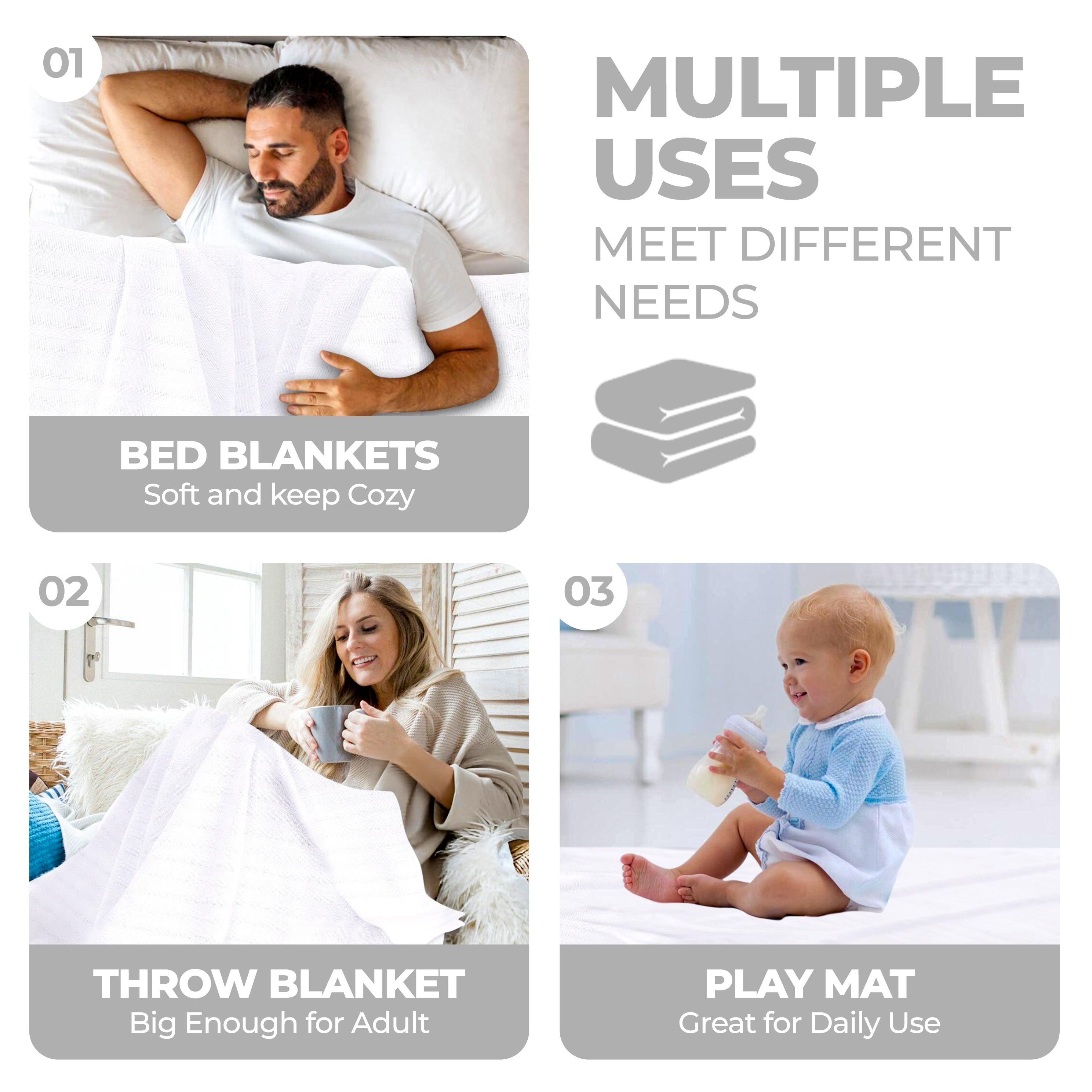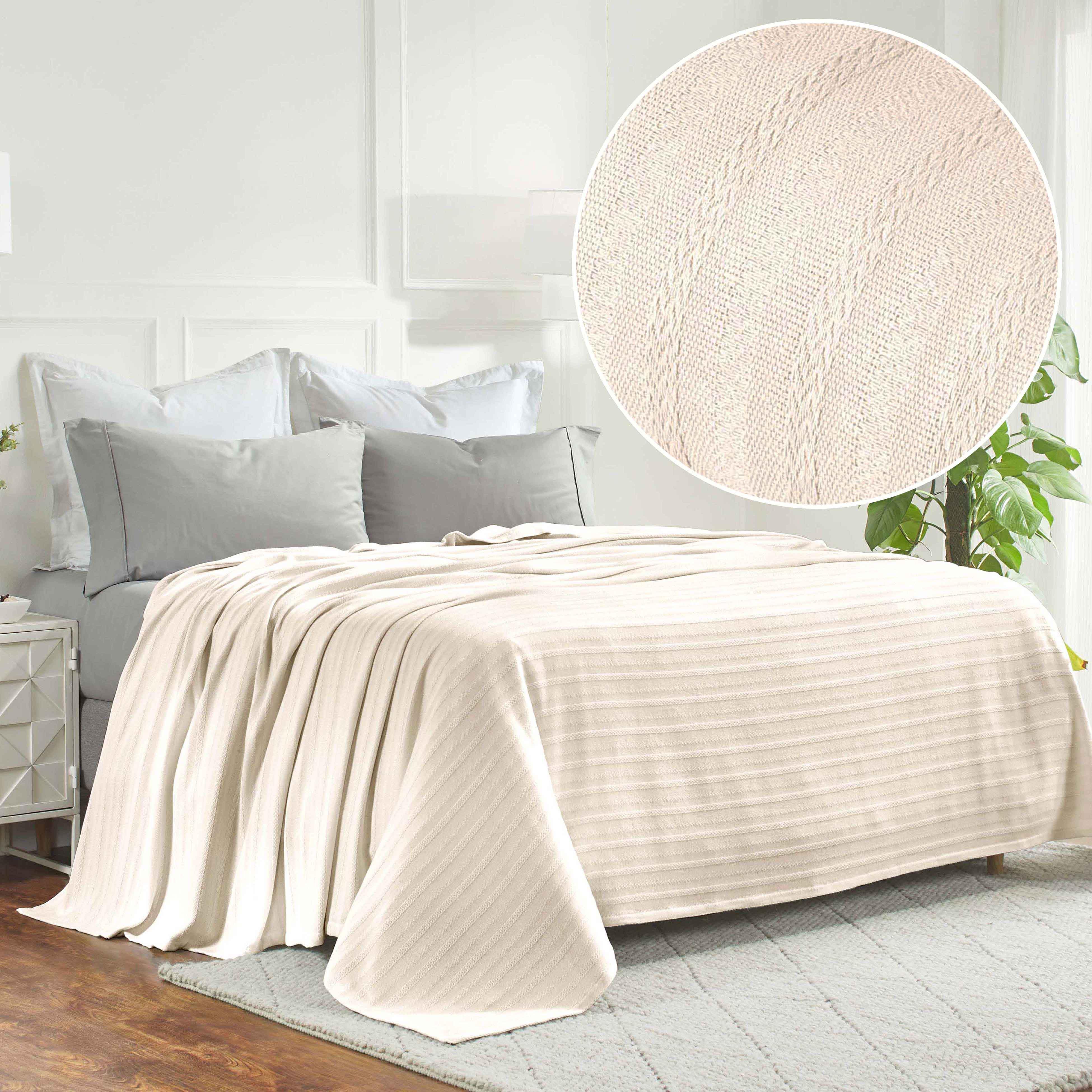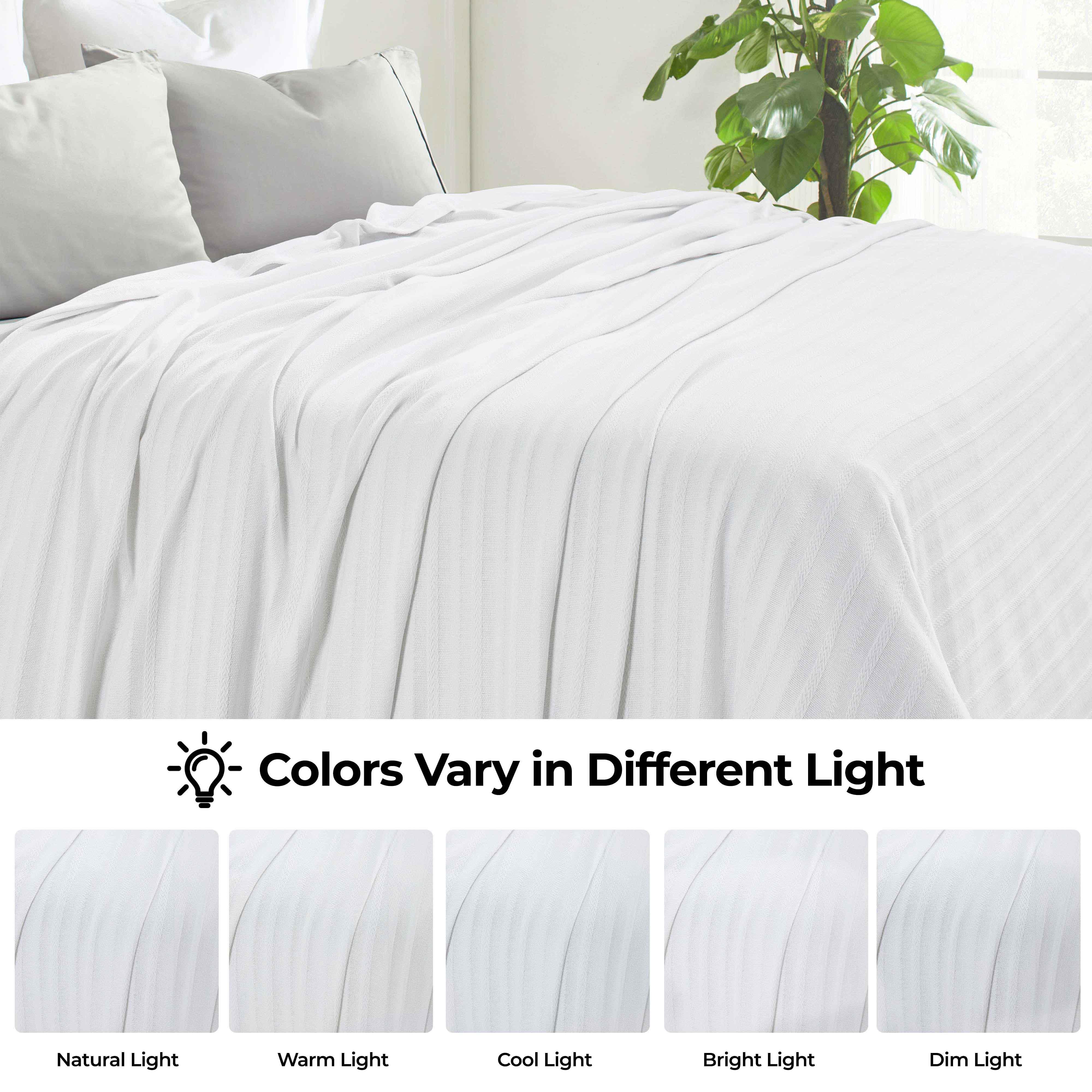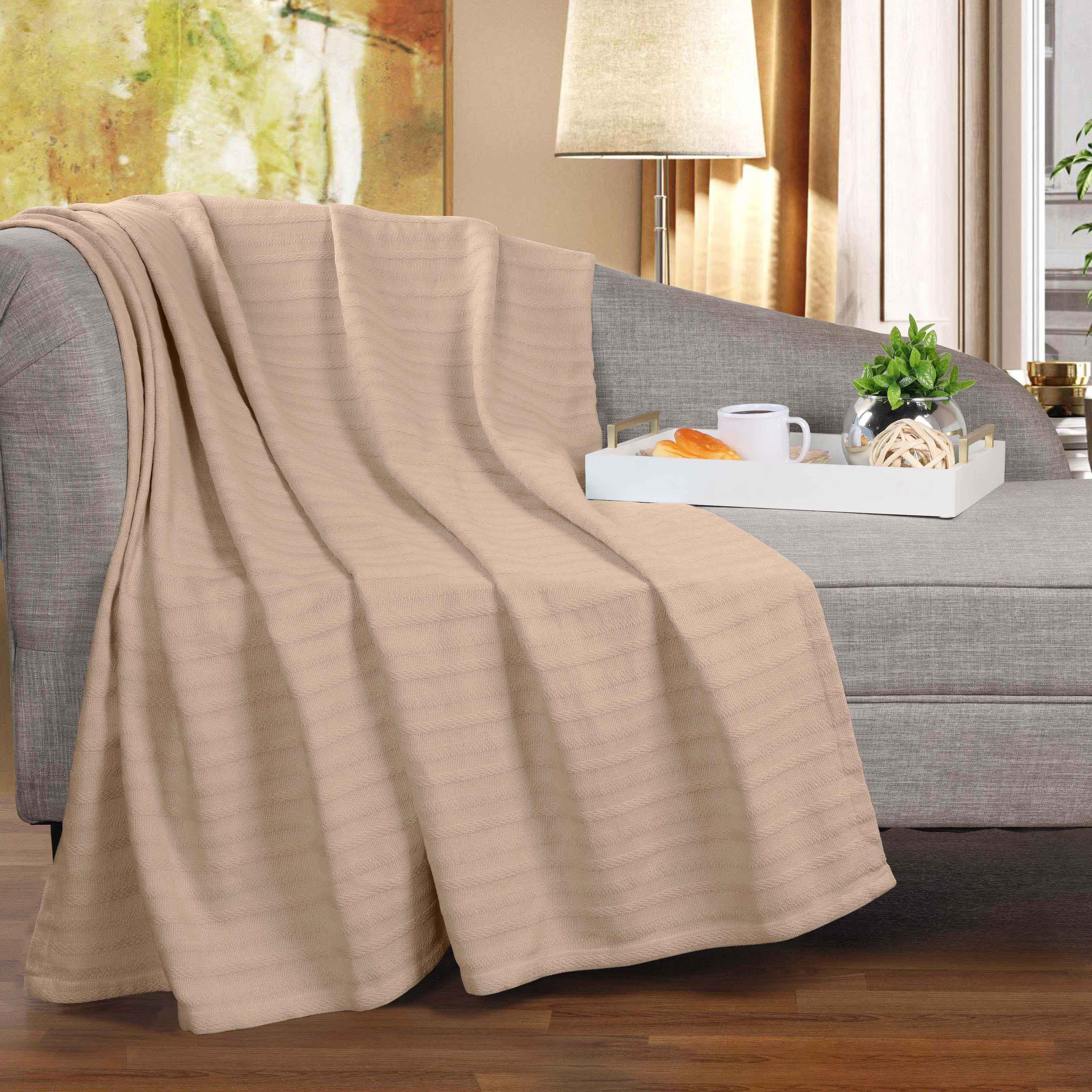 Drift off into a cozy slumber wrapped in our Clara Cotton Blanket. Crafted from naturally soft cotton, this blanket has a luxurious feel and comfortable design. Lightweight and breathable, this bedding essential keeps you comfy and warm while you sleep or lounge. This blanket is available in solid color options with a raised jacquard weave design and horizontal striped pattern to instantly tie together your home decor style. Bring classic style to your favorite space with this beautiful and versatile cotton blanket.