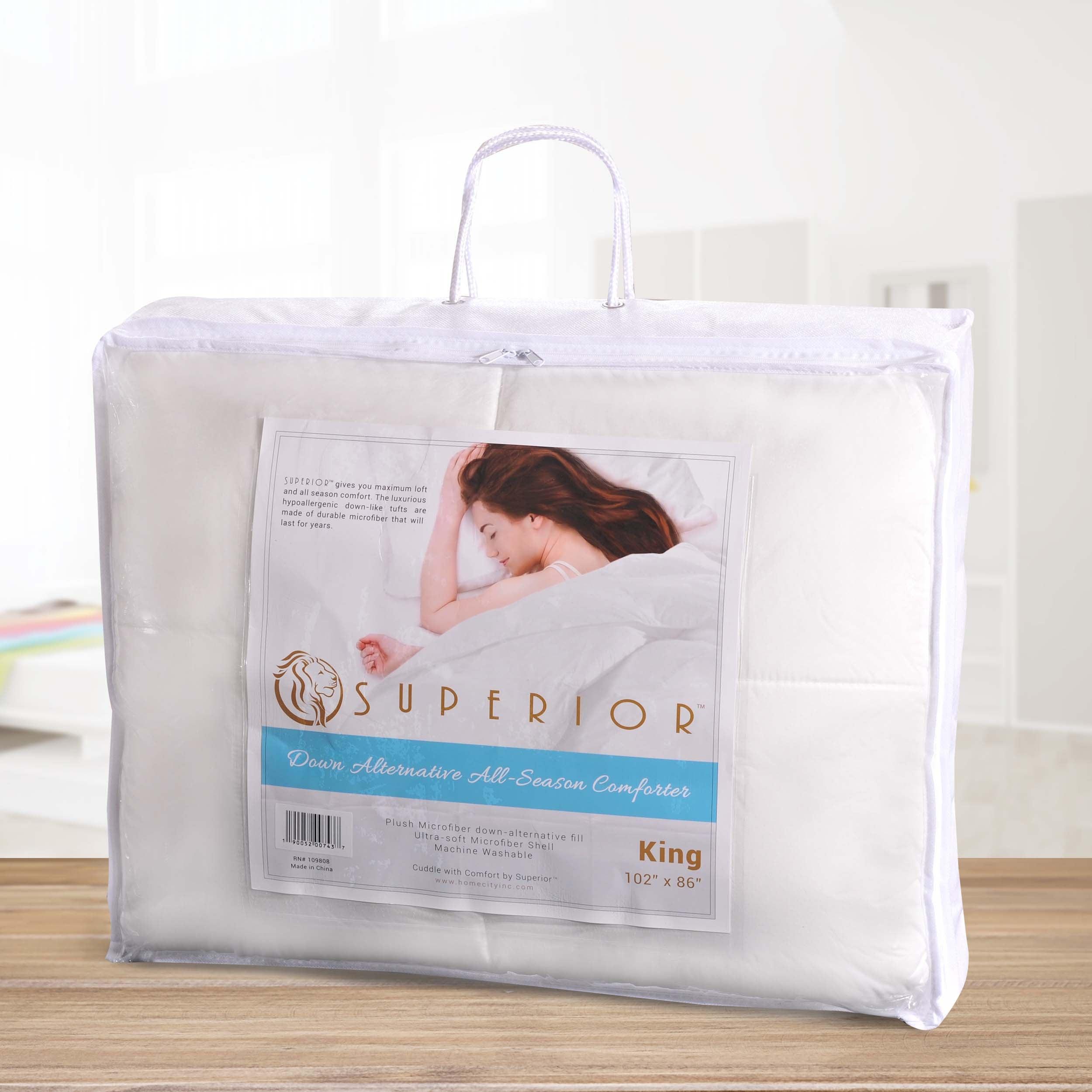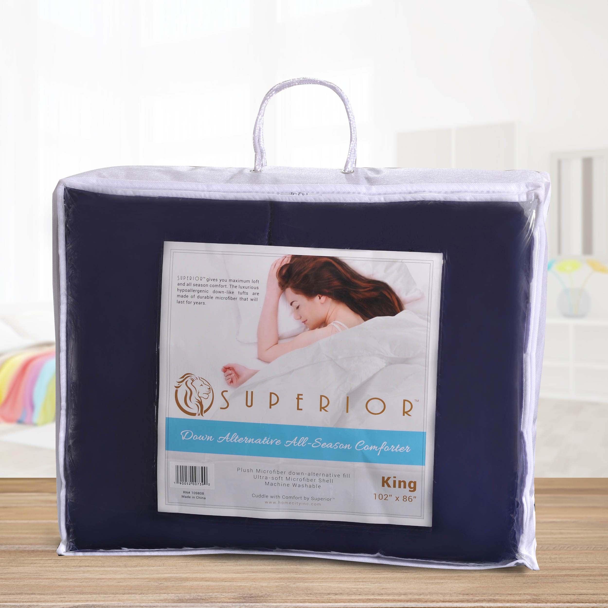 Treat yourself to the sweetest dreams when you wrap yourself in our Classic Reversible Down Alternative Comforter. Featuring a reversible solid pattern and a beautiful box-quilt detail, this comforter will seamlessly match your existing bedding. Made with a Microfiber shell and hypoallergenic down alternative fill, this oversized comforter can be used on its own or as a duvet insert. With a medium weight and breathable feel, this comforter will keep you cozy all night long.