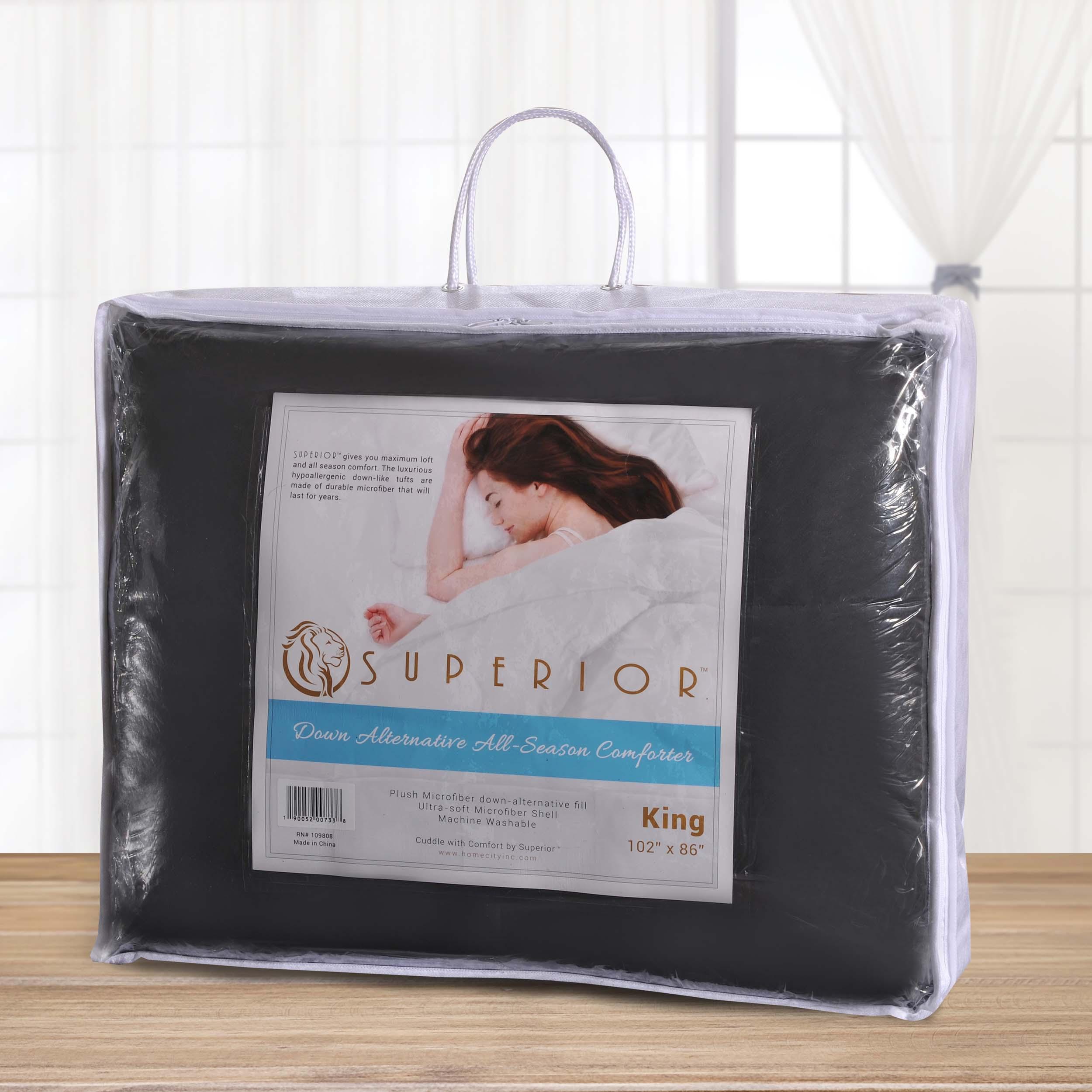 Enjoy softness and luxurious comfort with the Superior Classic All-Season Reversible Down Alternative Comforter. The high-quality and strategic design features a soft Microfiber shell with box-quilt stitching that prevents the hypoallergenic Polyester fill from shifting or lumping. The breathable, yet warm material of this comforter makes it suitable for any time of year, perfect on its own or layered. Offered in your choice of available sizes and colors, this comforter will lend a tailored finish to any Classic, Modern, Traditional, Transitional, or Contemporary bedroom. This product is OEKO-TEX certified so you can rest assured that it is free from any harmful chemicals and safe for the entire family.