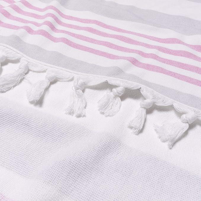 Catch some rays this summer with our Coastal Resort Fouta Tassel Beach Towel. This oversized beach towel is crafted from Cotton to help get you dry quickly after a dip in the ocean, pool, or hot tub. On one side, this towel features a woven texture that is soft to the touch, fast-drying terry cotton construction on the other side, making this a must-have summer accessory!