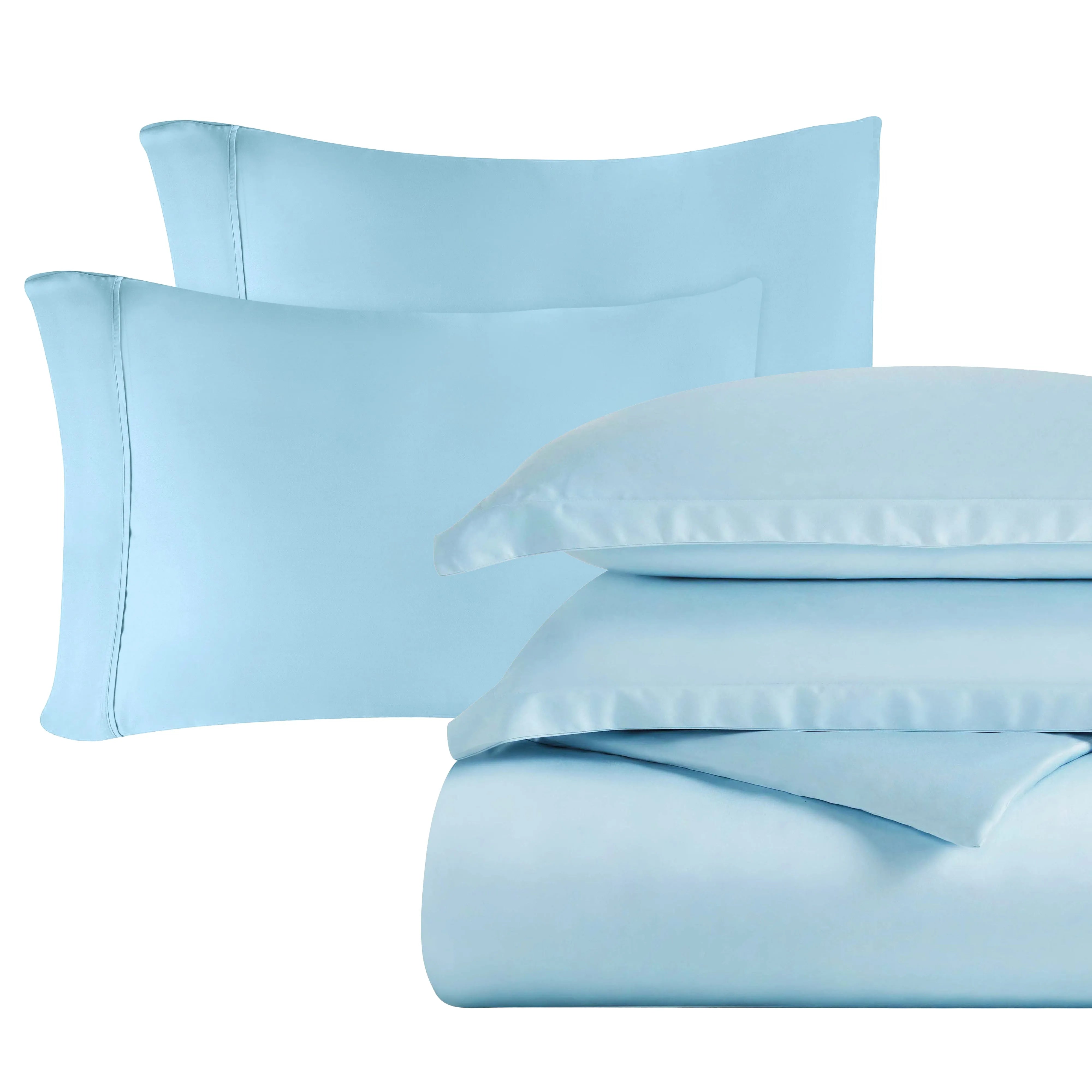 Elevate your bedding with our Cotton Blend 600 Thread Count Duvet Cover Bundle, featuring a high-quality cotton blend for a smooth, shimmering touch and lasting durability. This single-ply designed duvet cover boasts secure, hidden button closures, while the pillow shams feature elegant envelope closures. Interior corner ties keep your comforter perfectly in place, and the included extra pillowcases add an extra layer of comfort. Available in a versatile palette of colors, this bundle seamlessly enhances any bedroom style, promising both secure comfort and sophisticated style.
