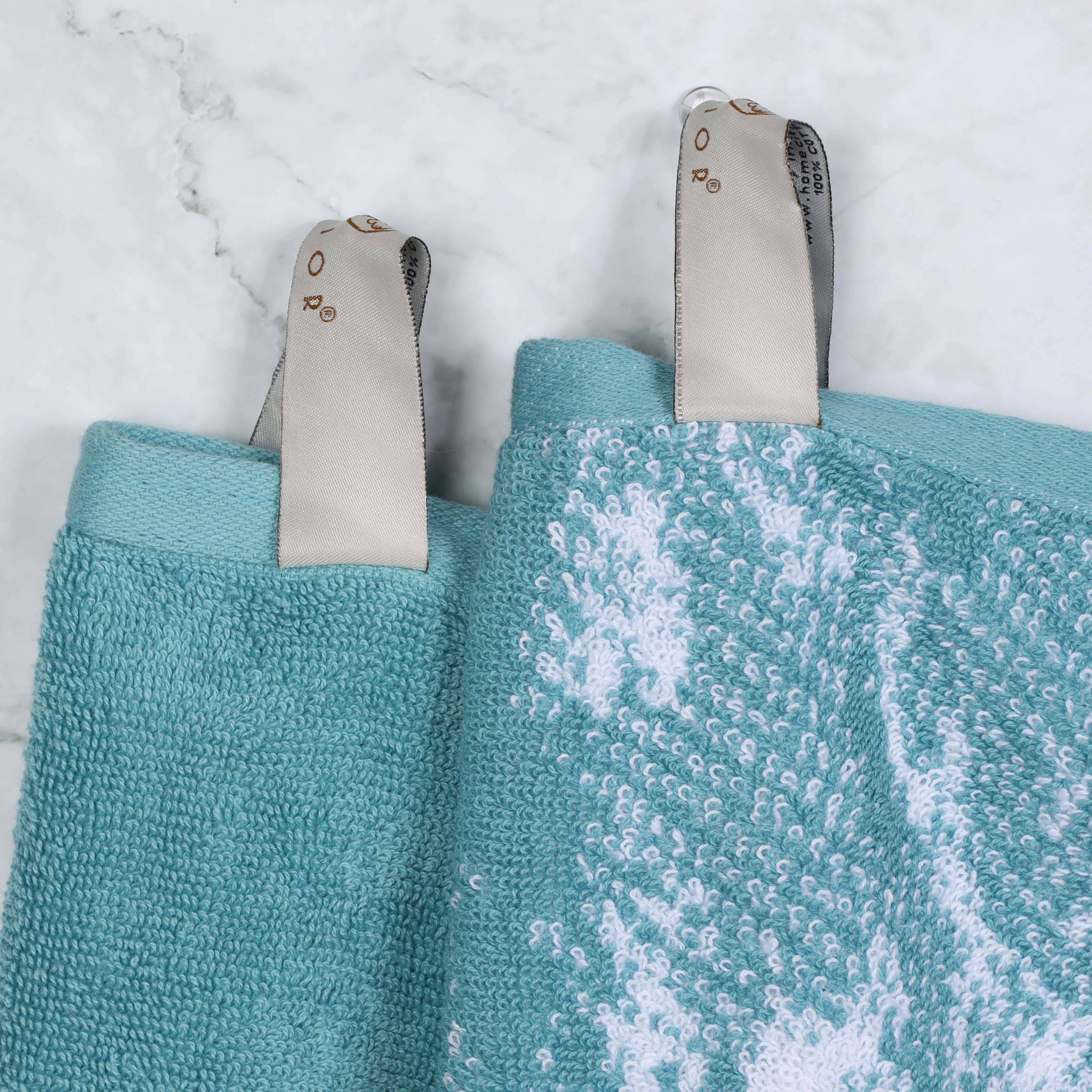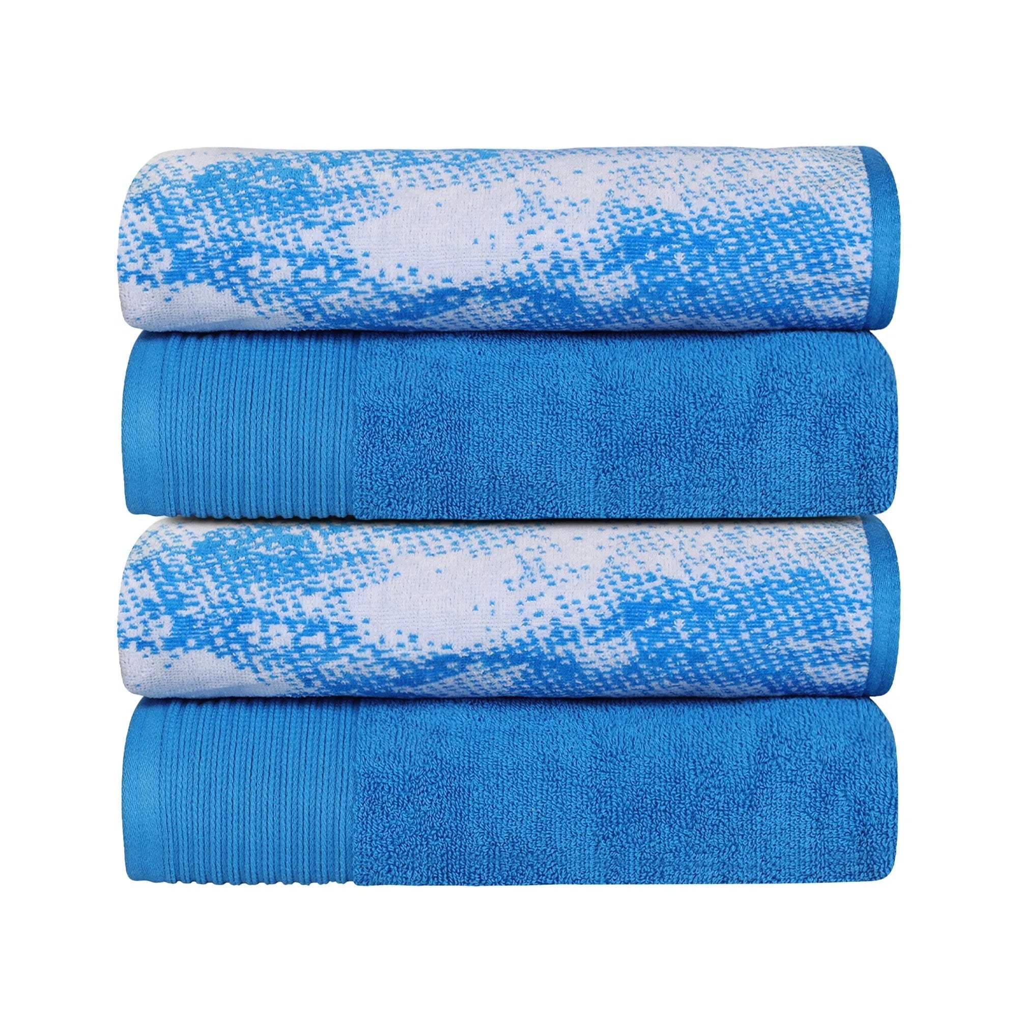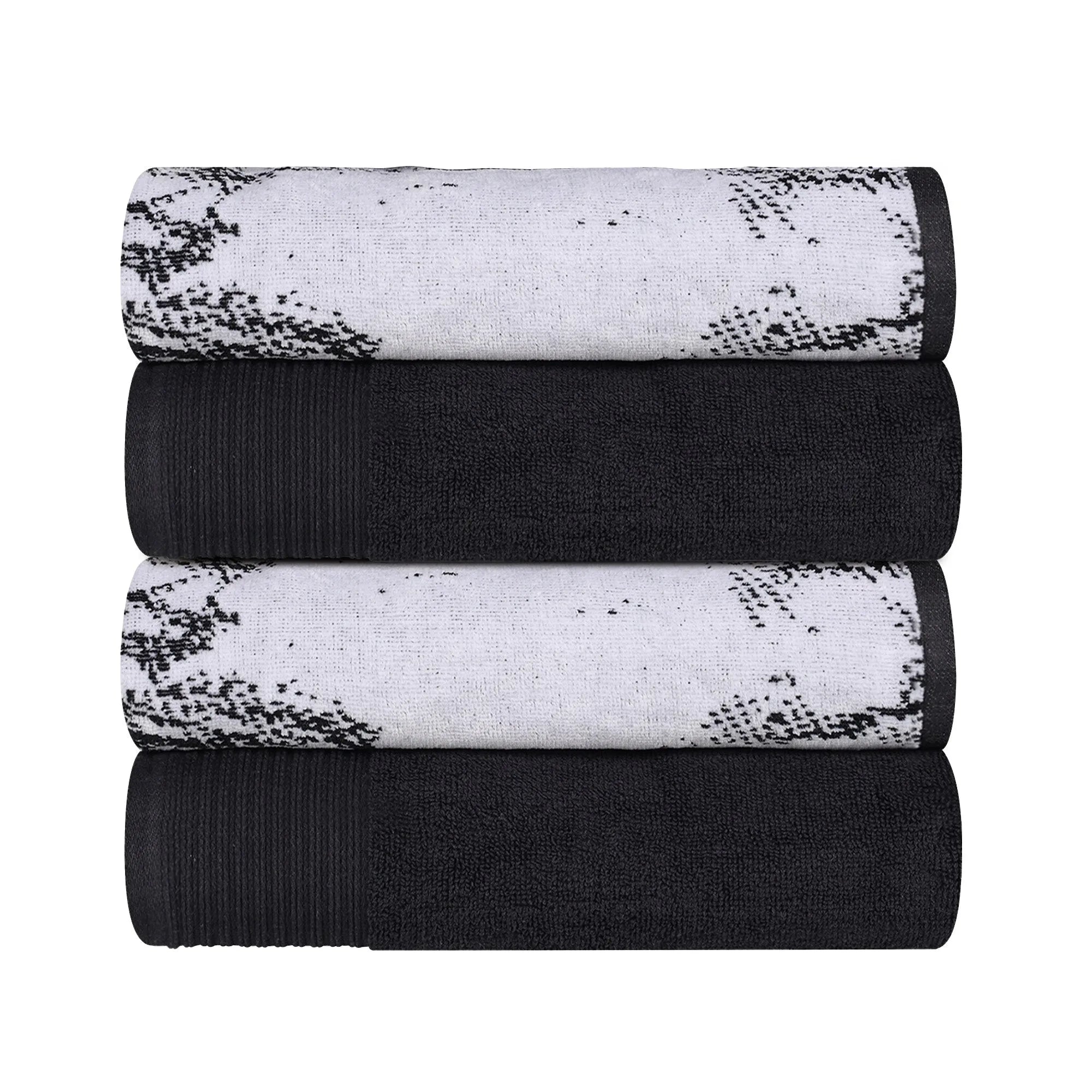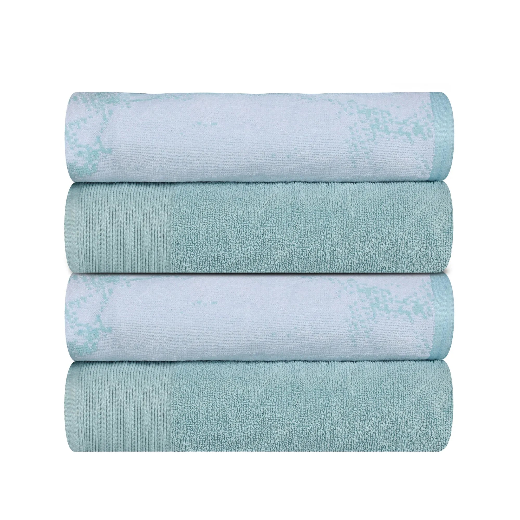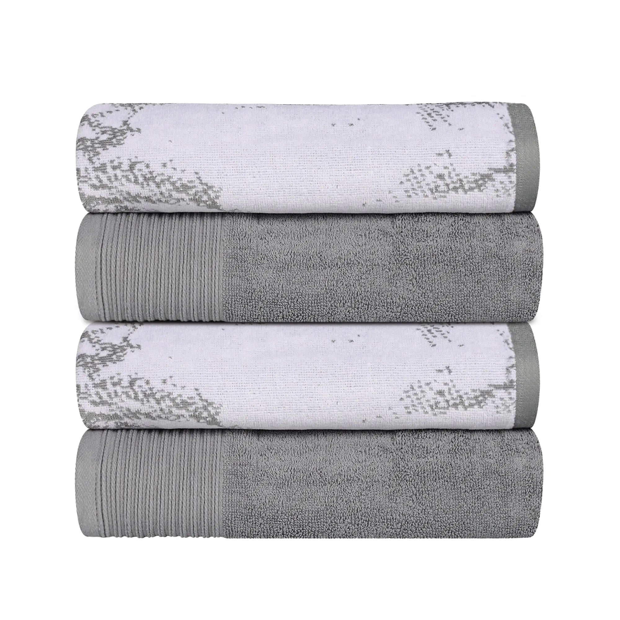 Transform your bathroom into a relaxing retreat with our Cotton Marble Solid Jacquard Border Bath Towel Set of 4.