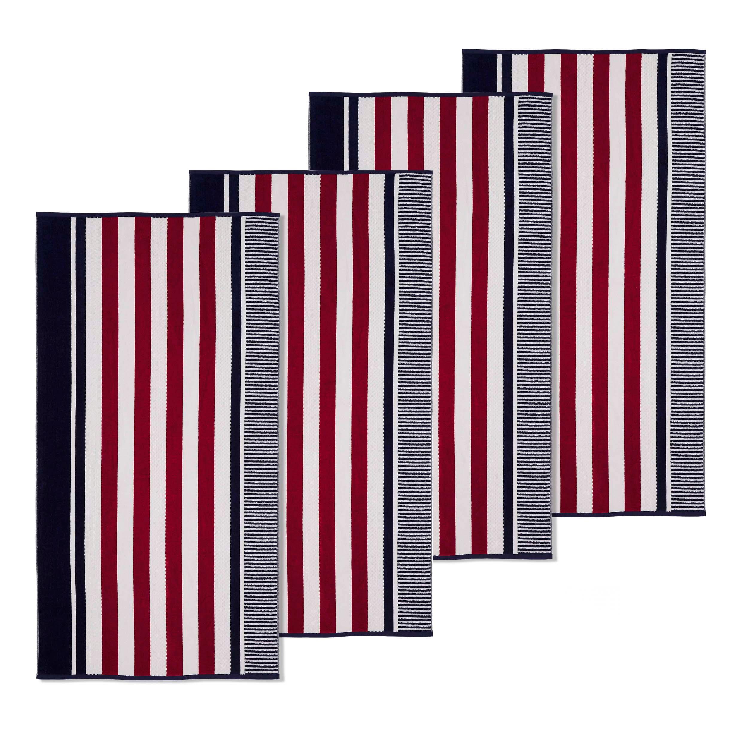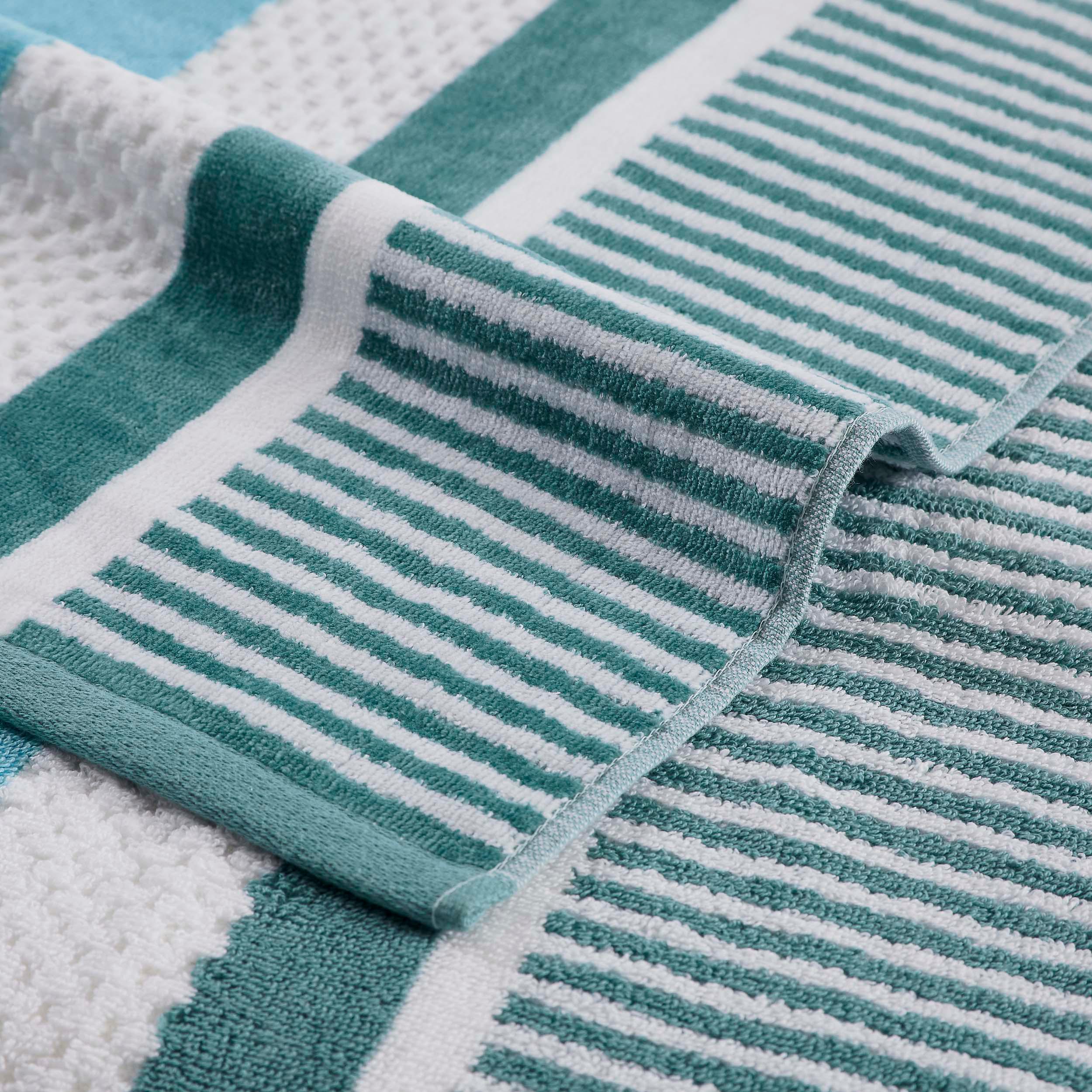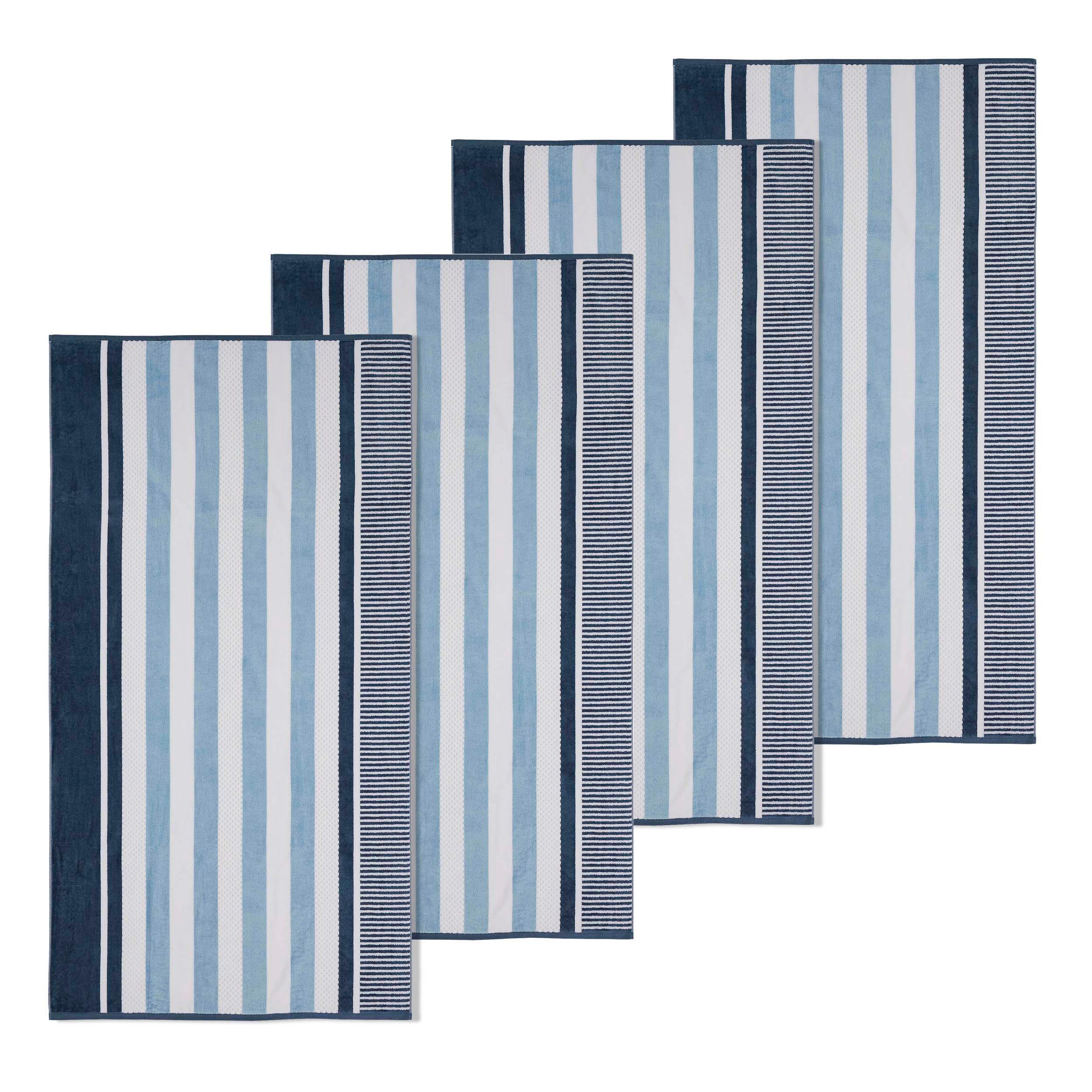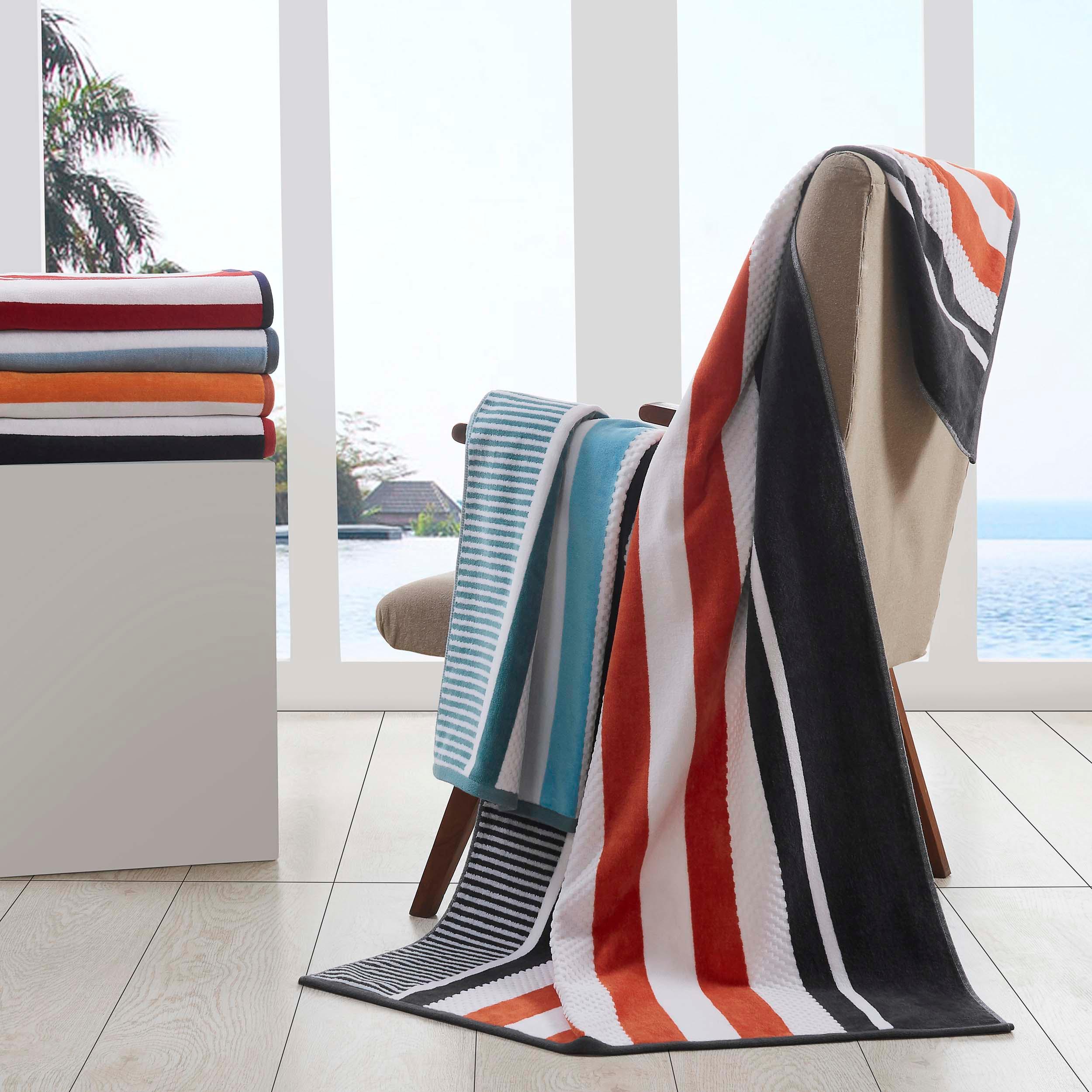 Make the most of your summer getaway with the Superior's Striped Oversized Beach Towel Set. Crafted from premium Cotton construction with 2-ply yarn, these towels offer unmatched absorbency and luxurious softness. Featuring a soft velour side to repel water and sand, and an absorbent terry reverse to keep you snug and warm, these towels provide the ultimate comfort. Measuring 34 inches wide by 64 inches long, these large checkered striped beach towels ensure ample coverage for your beach outings or poolside relaxation. Available as a convenient set of 4, these towels are perfect for shower spaces, beach adventures, or unwinding outdoors, adding a touch of luxury to your summer experience.