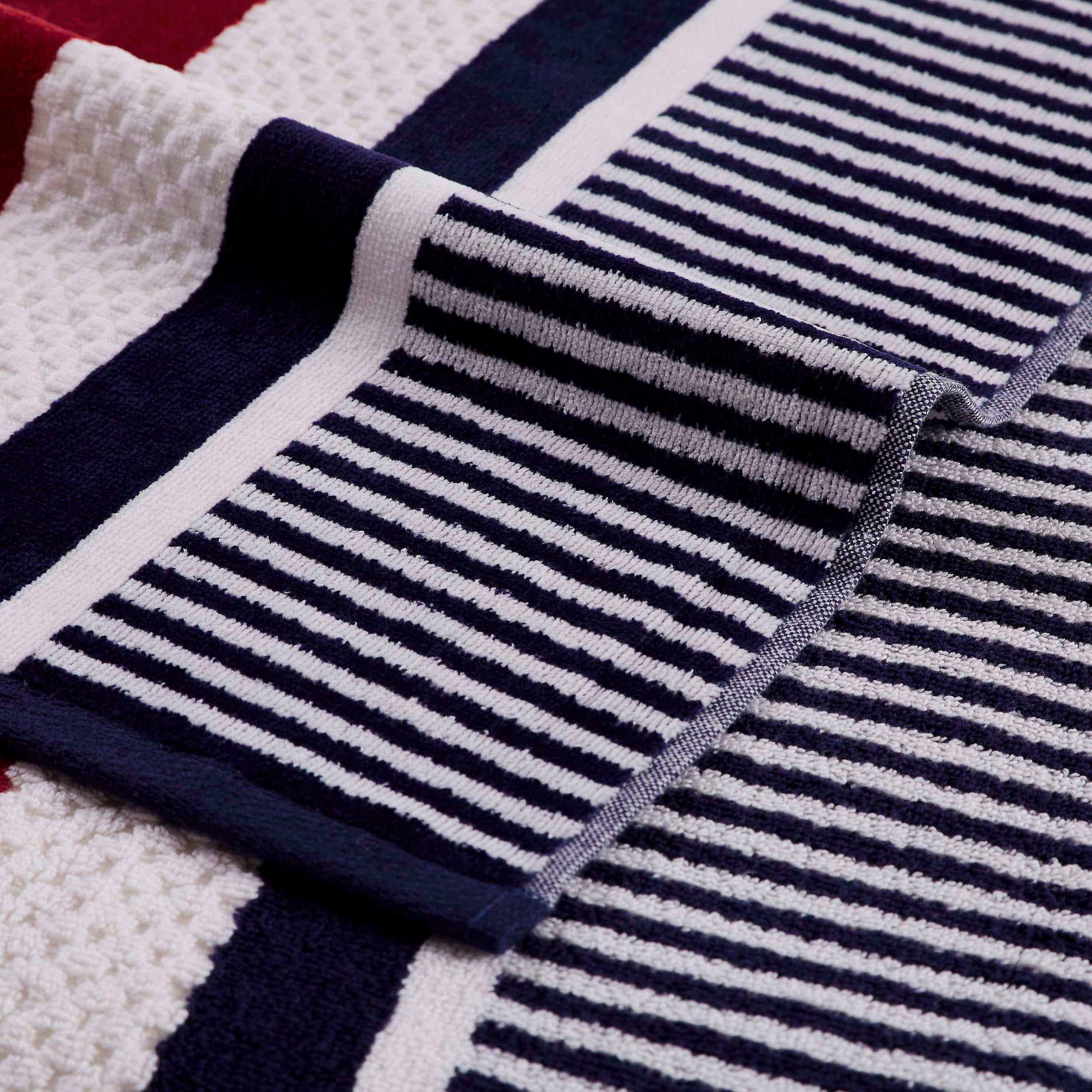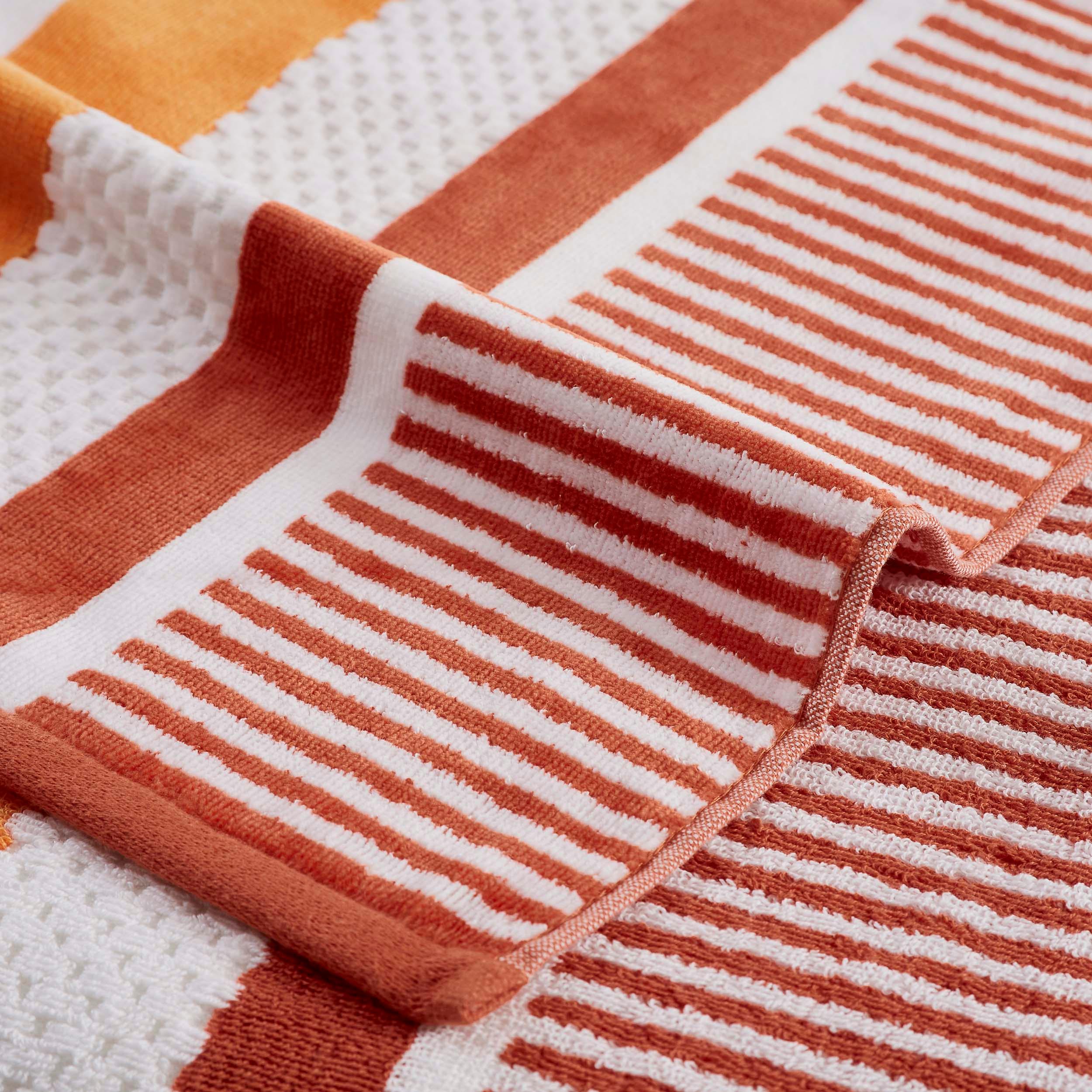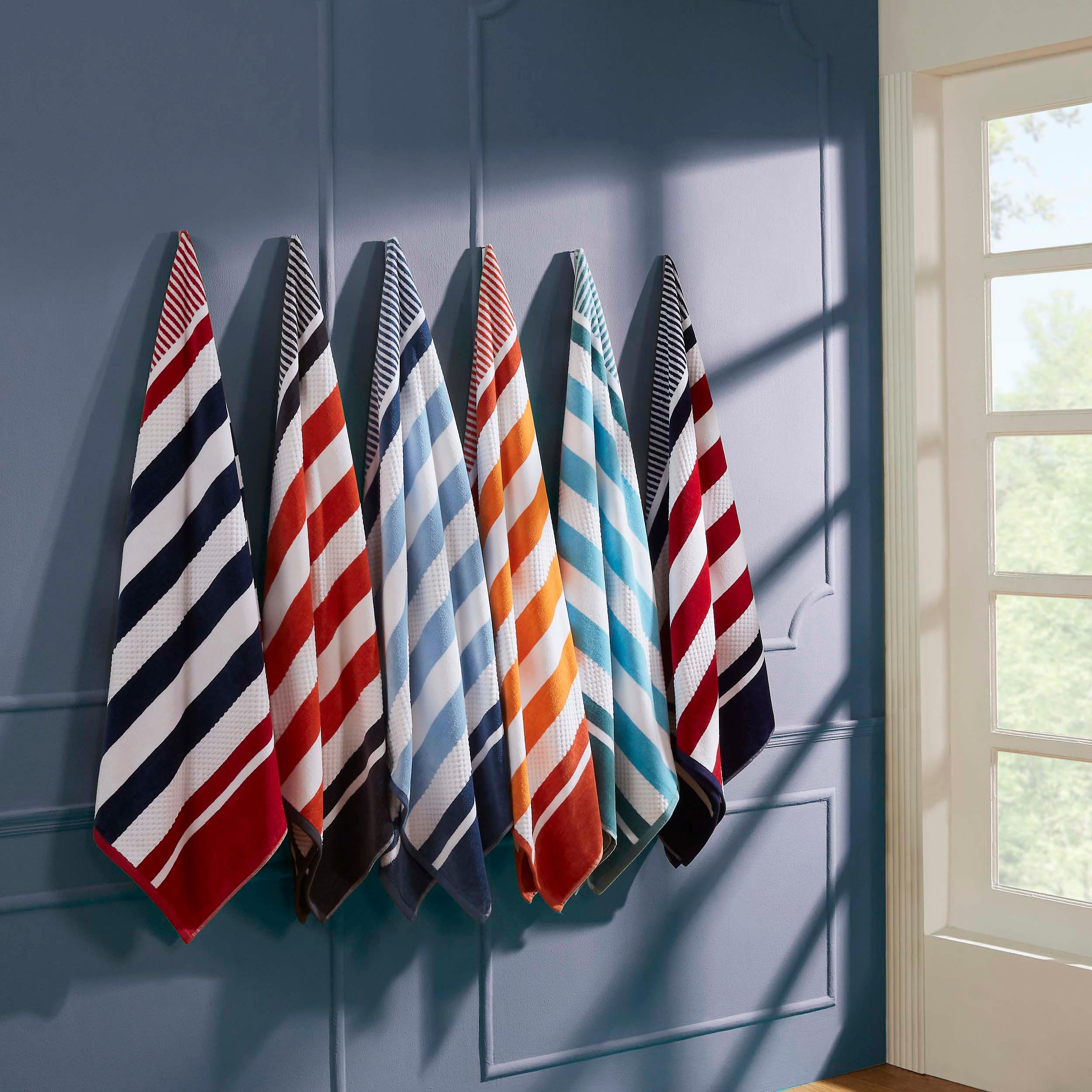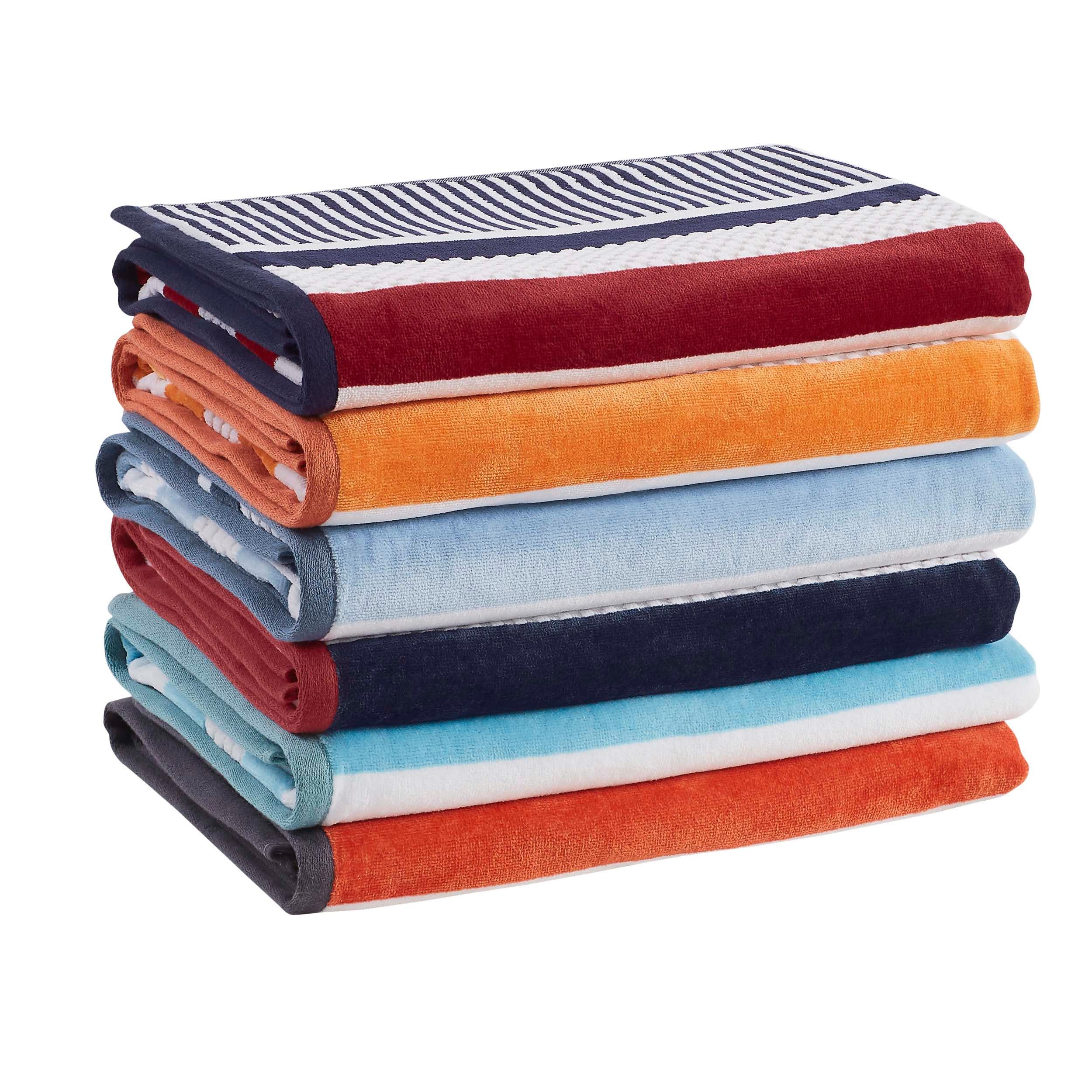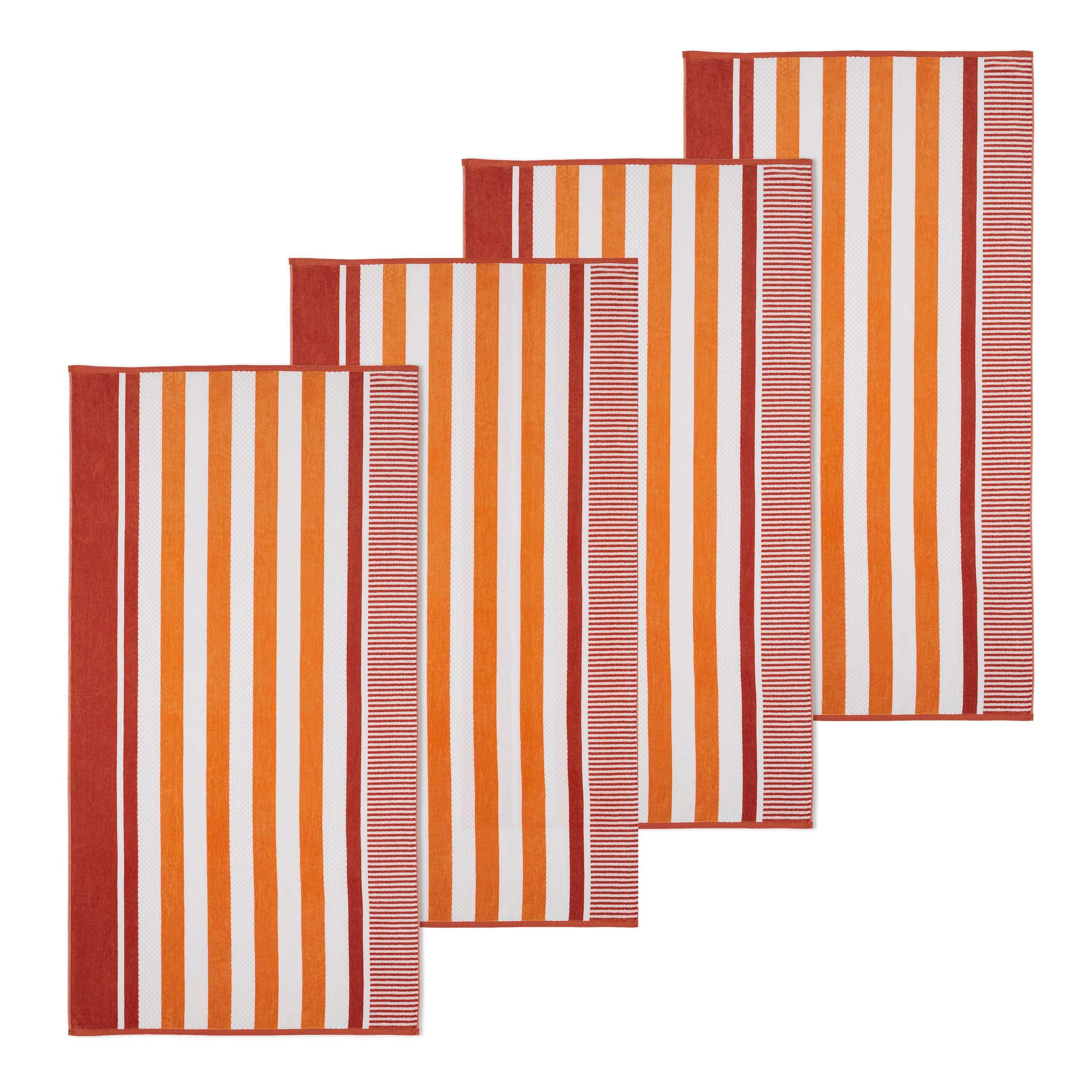 Make the most of your summer getaway with the Superior's Striped Oversized Beach Towel Set. Crafted from premium Cotton construction with 2-ply yarn, these towels offer unmatched absorbency and luxurious softness. Featuring a soft velour side to repel water and sand, and an absorbent terry reverse to keep you snug and warm, these towels provide the ultimate comfort. Measuring 34 inches wide by 64 inches long, these large checkered striped beach towels ensure ample coverage for your beach outings or poolside relaxation. Available as a convenient set of 4, these towels are perfect for shower spaces, beach adventures, or unwinding outdoors, adding a touch of luxury to your summer experience.