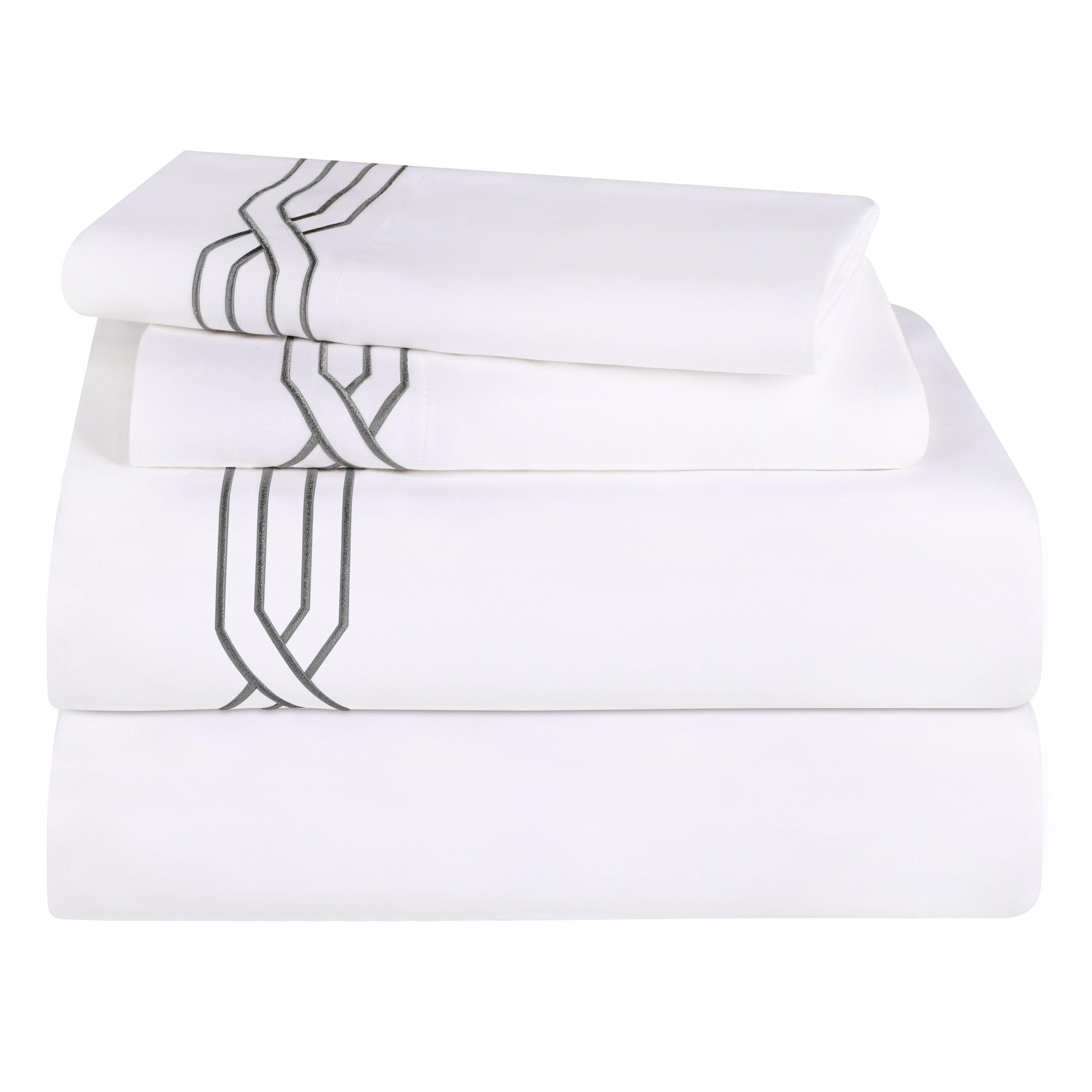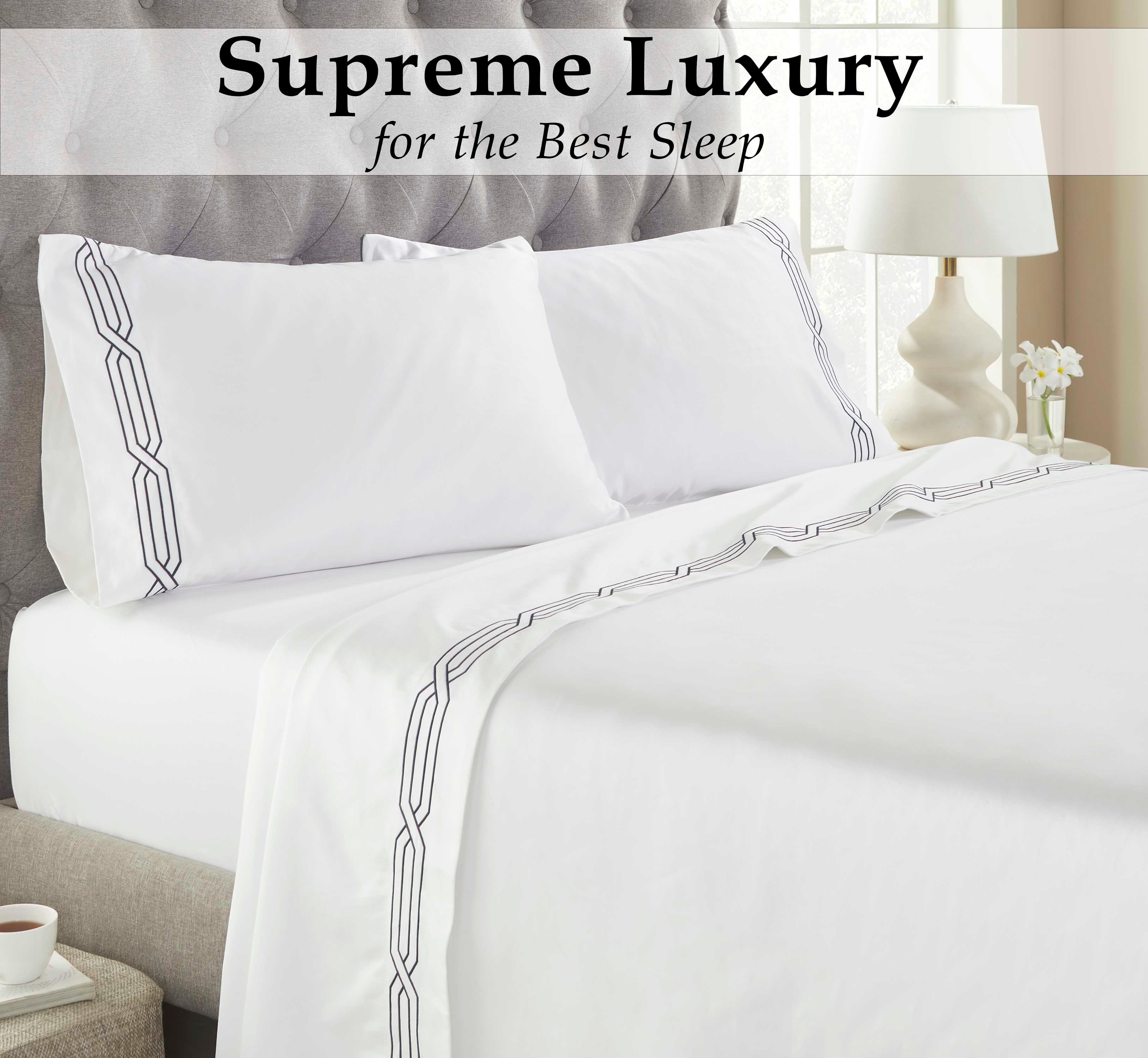 Elevate your bedroom with the luxurious structure of the 1200-Thread-Count Egyptian Cotton Sateen Embroidered Sheet Set.