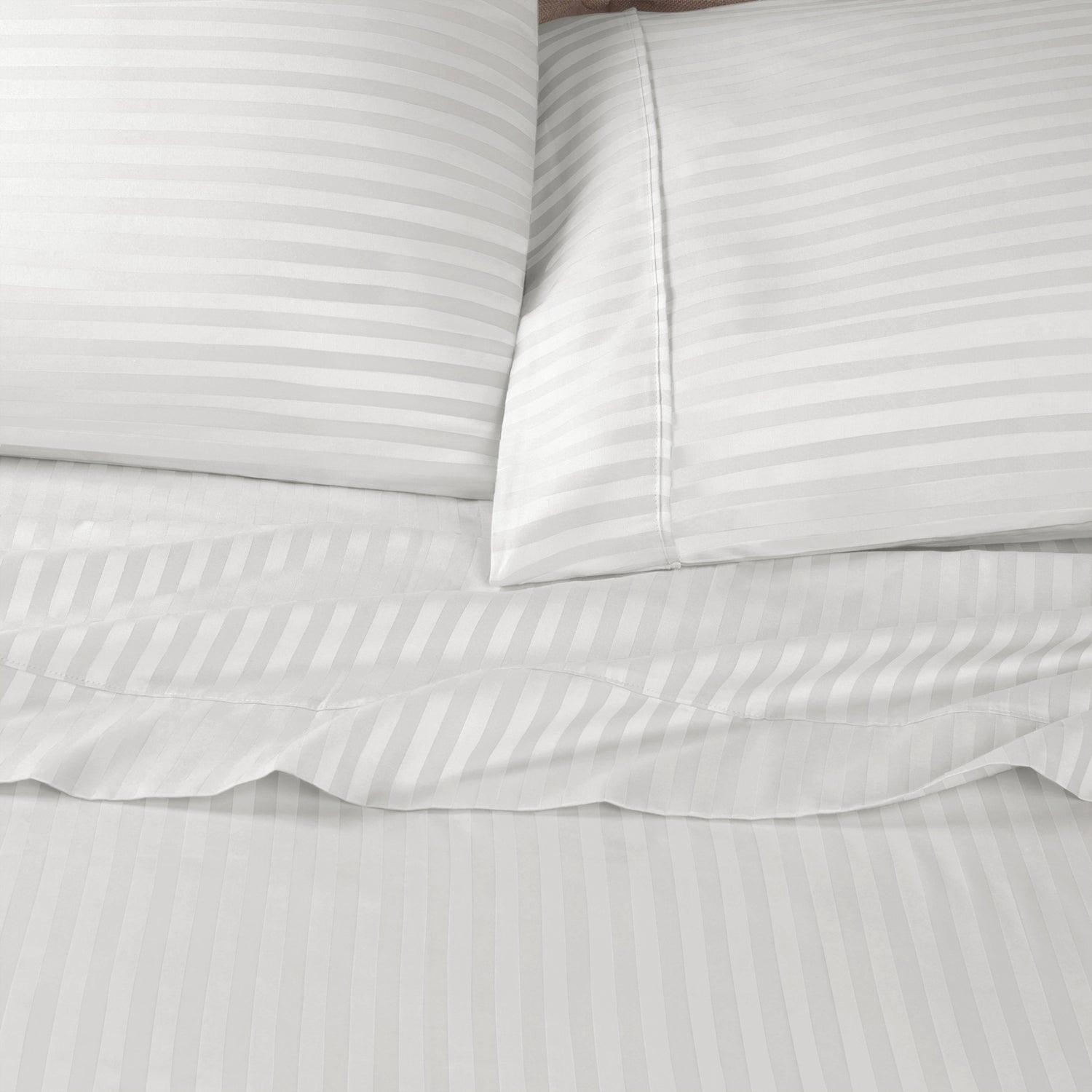 Drift into a peaceful sleep with this Stripe Pillowcase Set from Superior. This pair is well-made with ultra-soft, 100% Egyptian Cotton that provides the perfect place to rest night after night. The long fibers and tightly woven design make this set more lightweight and more durable than any other cotton. The ultra-smooth, 600-thread count provides durability that will transform your bedroom into a serene space. Available in multiple monochromatic stripe pattern with a subtle sheen from their sateen weave, updating your bedding has never been easier. Pair these pillowcases with matching sheets or a duvet cover set for the ultimate relaxation.