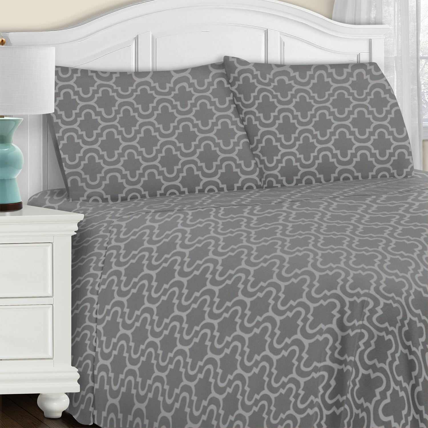 Keep warm and cozy every night bundled up in the Flannel Cotton Trellis Sheet Set by Superior. Crafted from cotton flannel, this sheet set is incredibly durable and buttery-soft. This flannel set is incredibly soft on the skin and gets softer with every wash. Designed for cold nights and winter months, this cozy set insulates you to keep you warm and holds in the perfect amount of heat. The eye-catching trellis pattern matches with a variety of bedroom decor styles and adds trendy style to any space.
