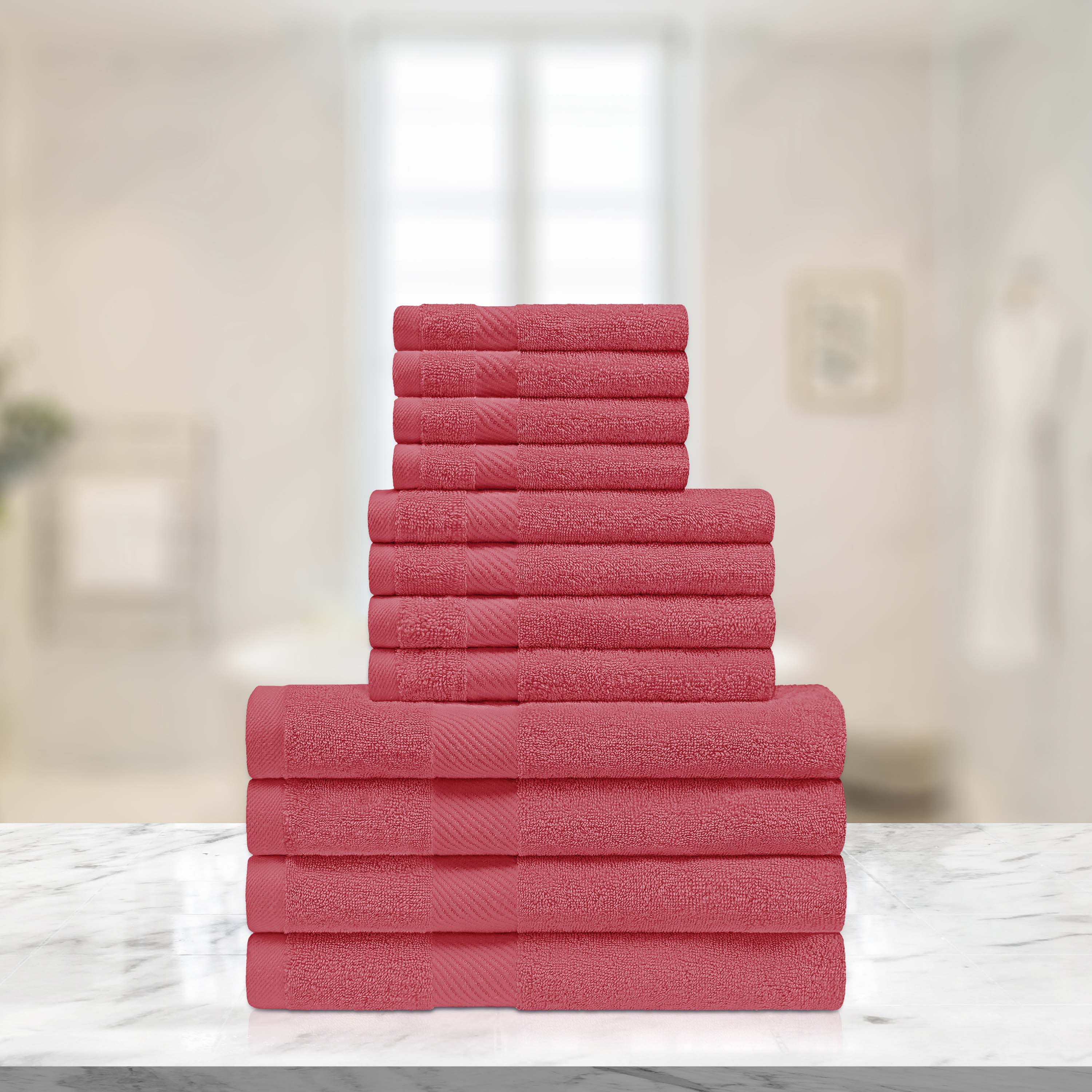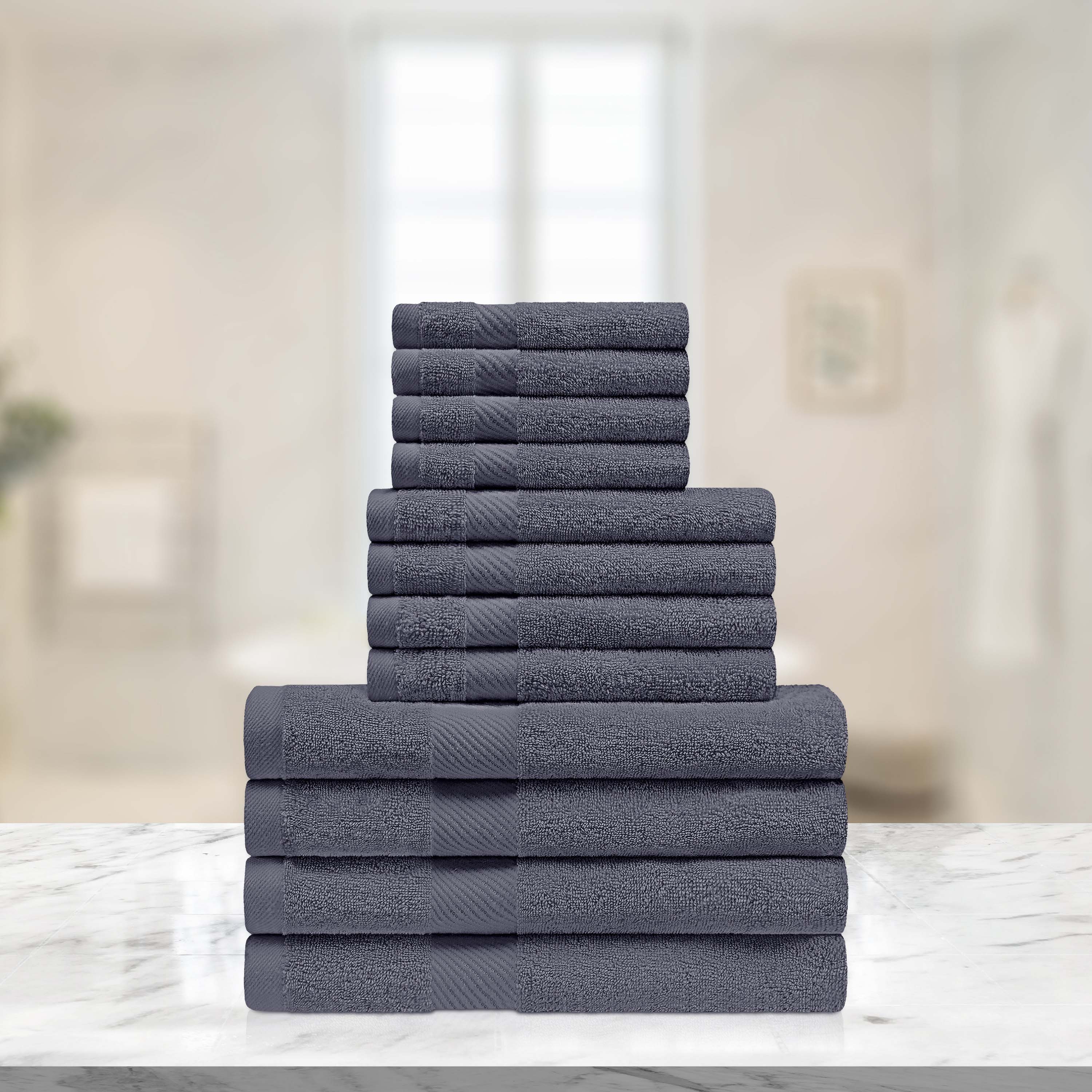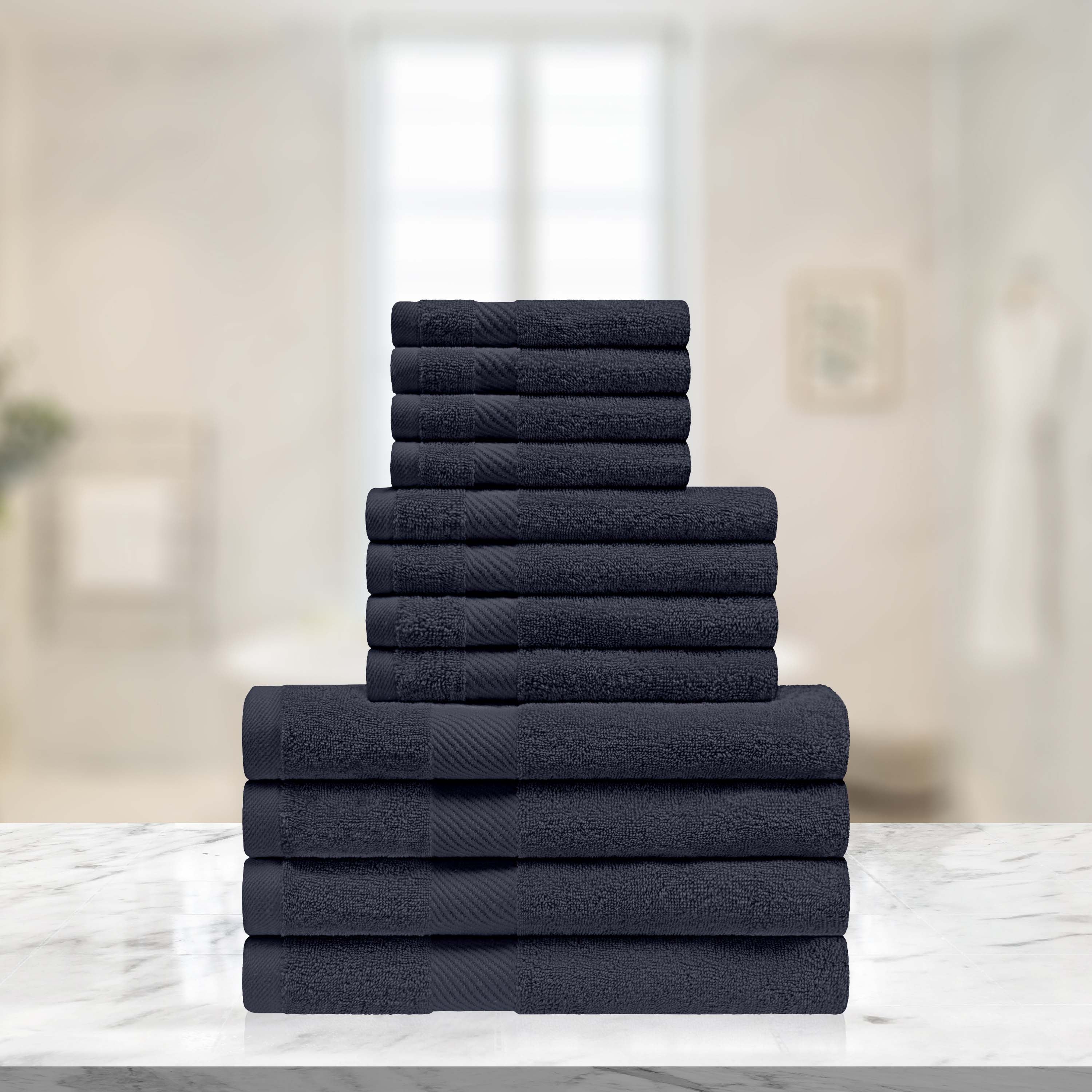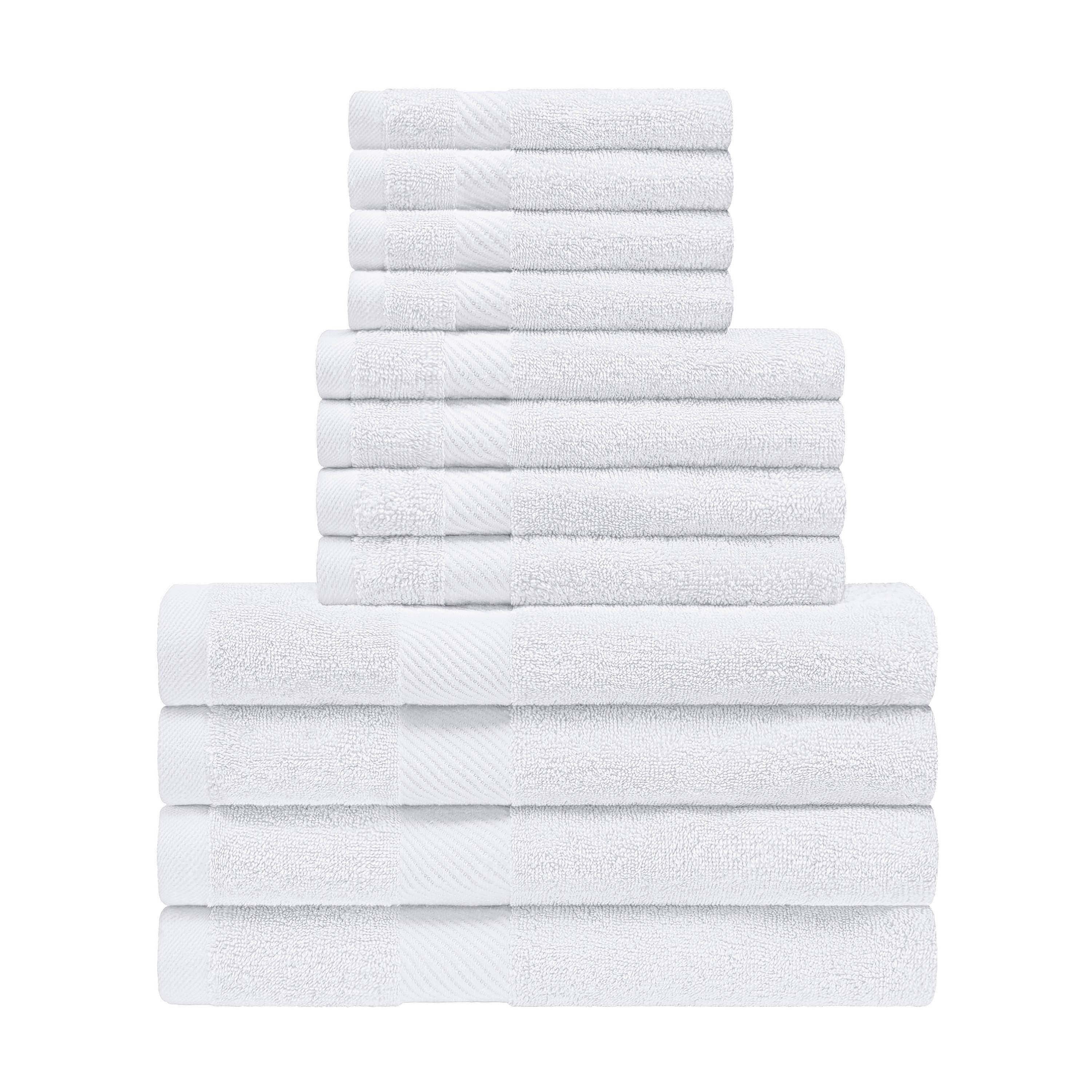 Treat yourself to the softness and remarkable absorbency of the Egyptian Cotton 12-piece Bath Towel Set. Each towel in this generous set features timeless styling, ribbed hash details, and a durable hem that prevents fraying. The plush fibers are ultra absorbent and OEKO-TEX certified so you know there aren't any harmful chemicals. Included are four bath towels, four hand towels, and four washcloths to keep you stocked up. The wide array of available colors to choose from means these essentials will look great with your existing decor.