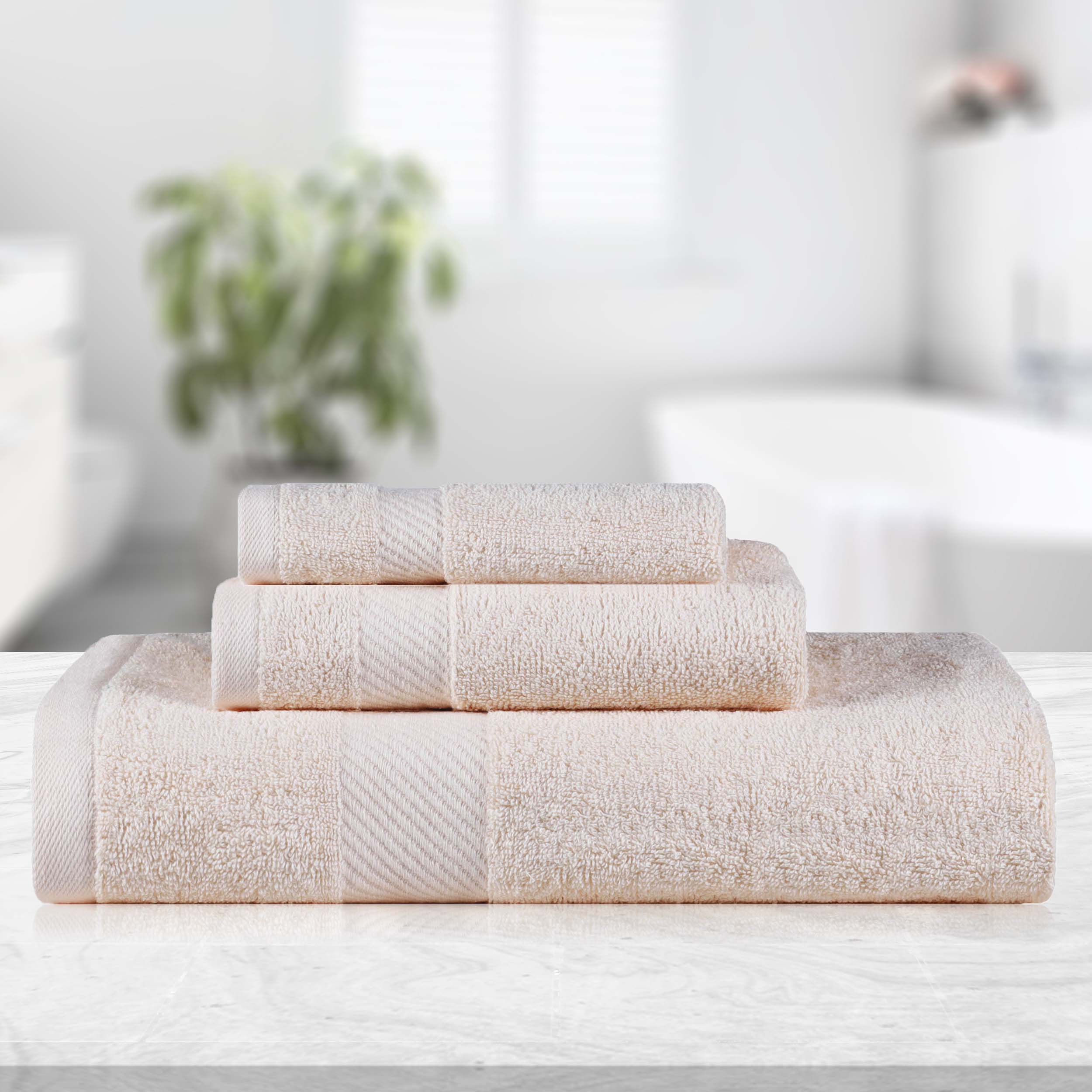 Simple in design, effortlessly upgrade your bathroom decor with the Kendell Egyptian Cotton Quick Drying 3-Piece Towel Set. Each towel in this generous set features timeless styling, ribbed hash details, and a durable hem that prevents fraying. The plush fibers are ultra absorbent and OEKO-TEX certified so you know there aren't any harmful chemicals. Included are one bath towel, one hand towel, and one washcloth to keep you fully covered. The wide array of available colors to choose from means these essentials will look great with your existing decor.