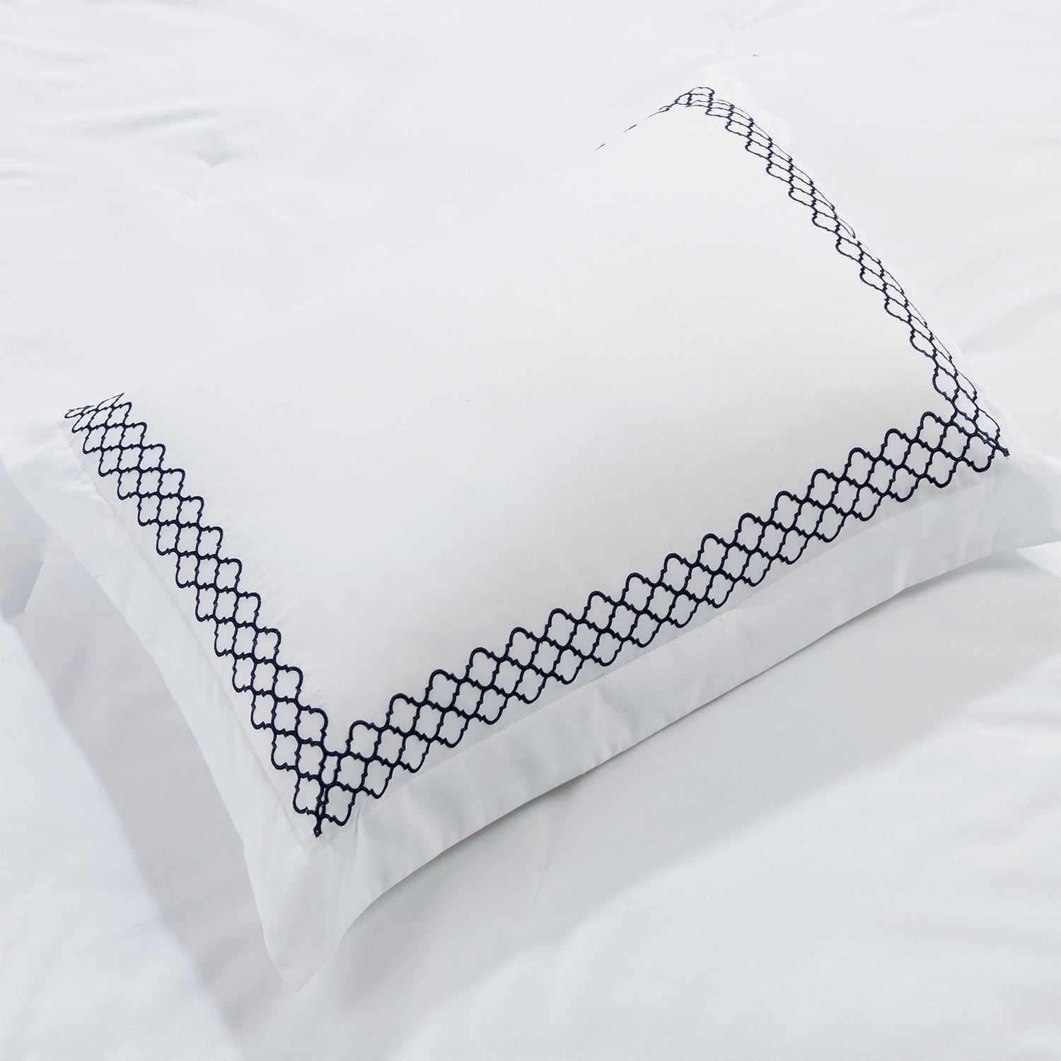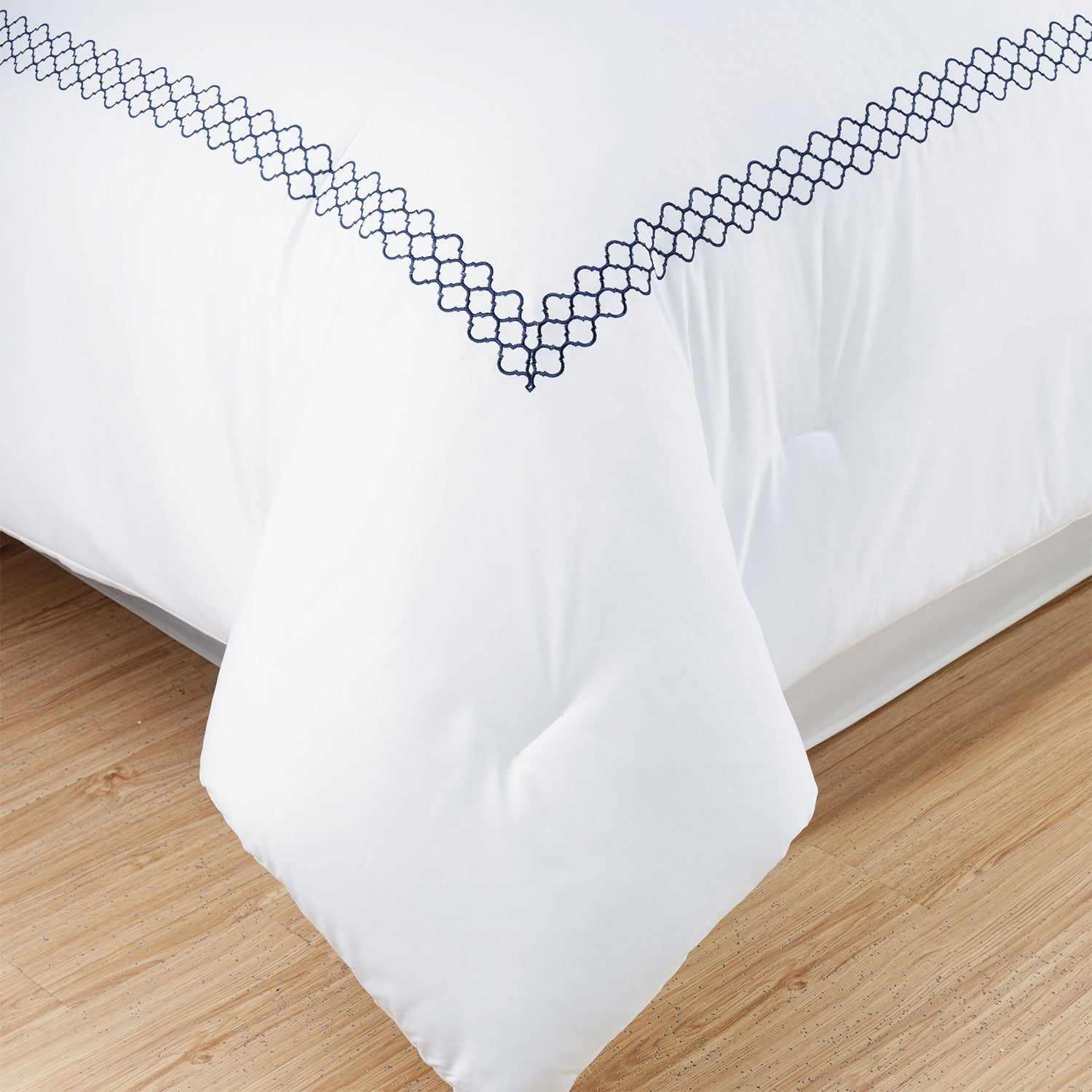 The Layla Embroidered Down Alternative Microfiber Comforter Set transforms your bedroom into a tranquil retreat by featuring contemporary styling and a touch of embroidery. The quality construction features an ultra-soft microfiber shell and an animal-friendly fill. The Moroccan trellis embroidery and tufting add the finishing touches that add elegance and all-season warmth. Breathable and easy to maintain, this set is also OEKO-TEX certified and free from harmful chemicals so it's safe for the whole family. Your choice of available sizes and colors ensures a flawless fit.