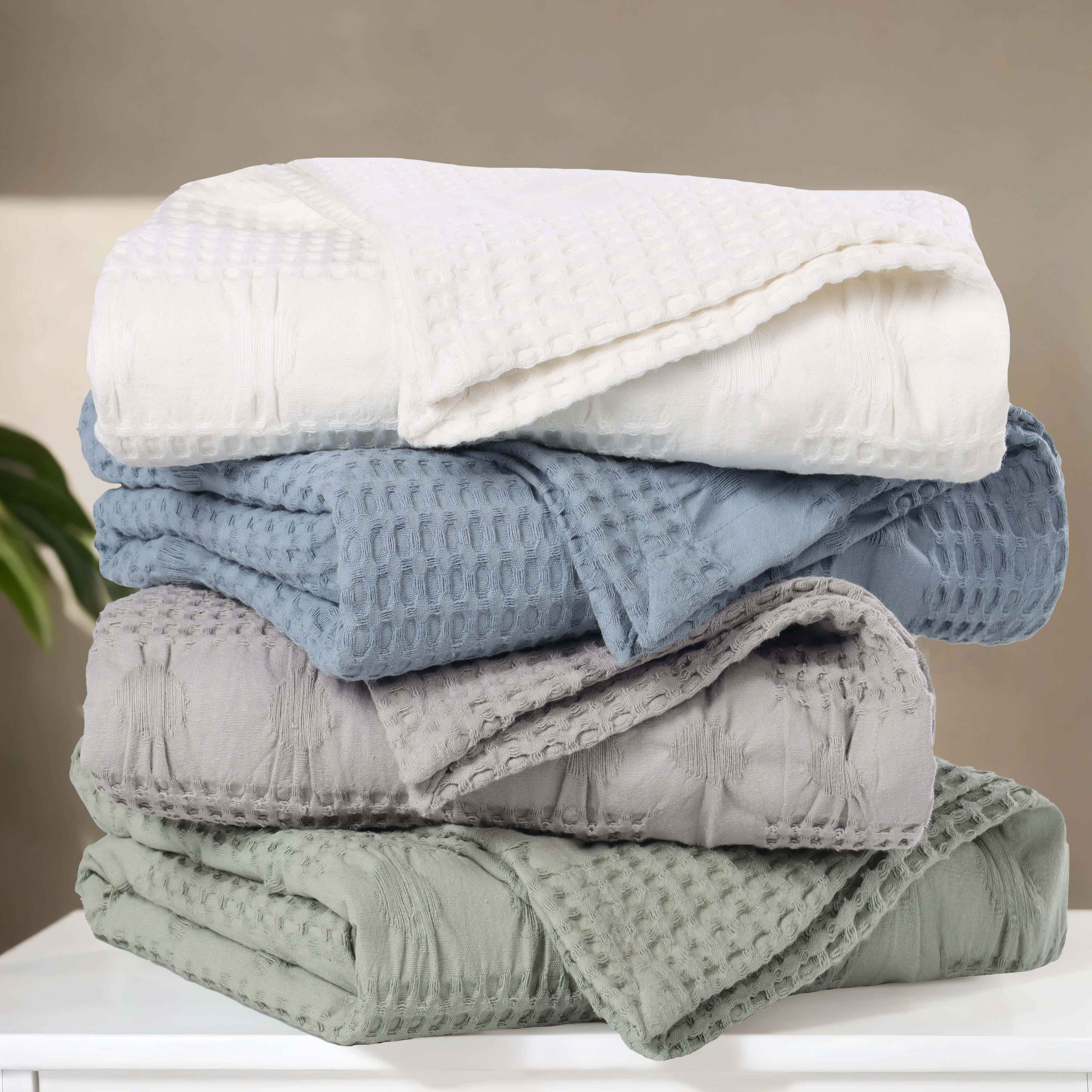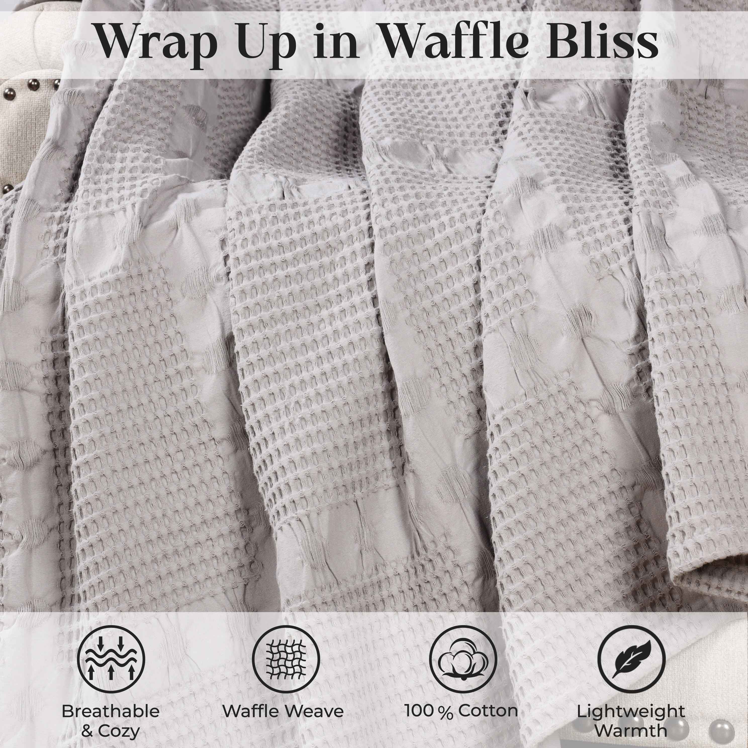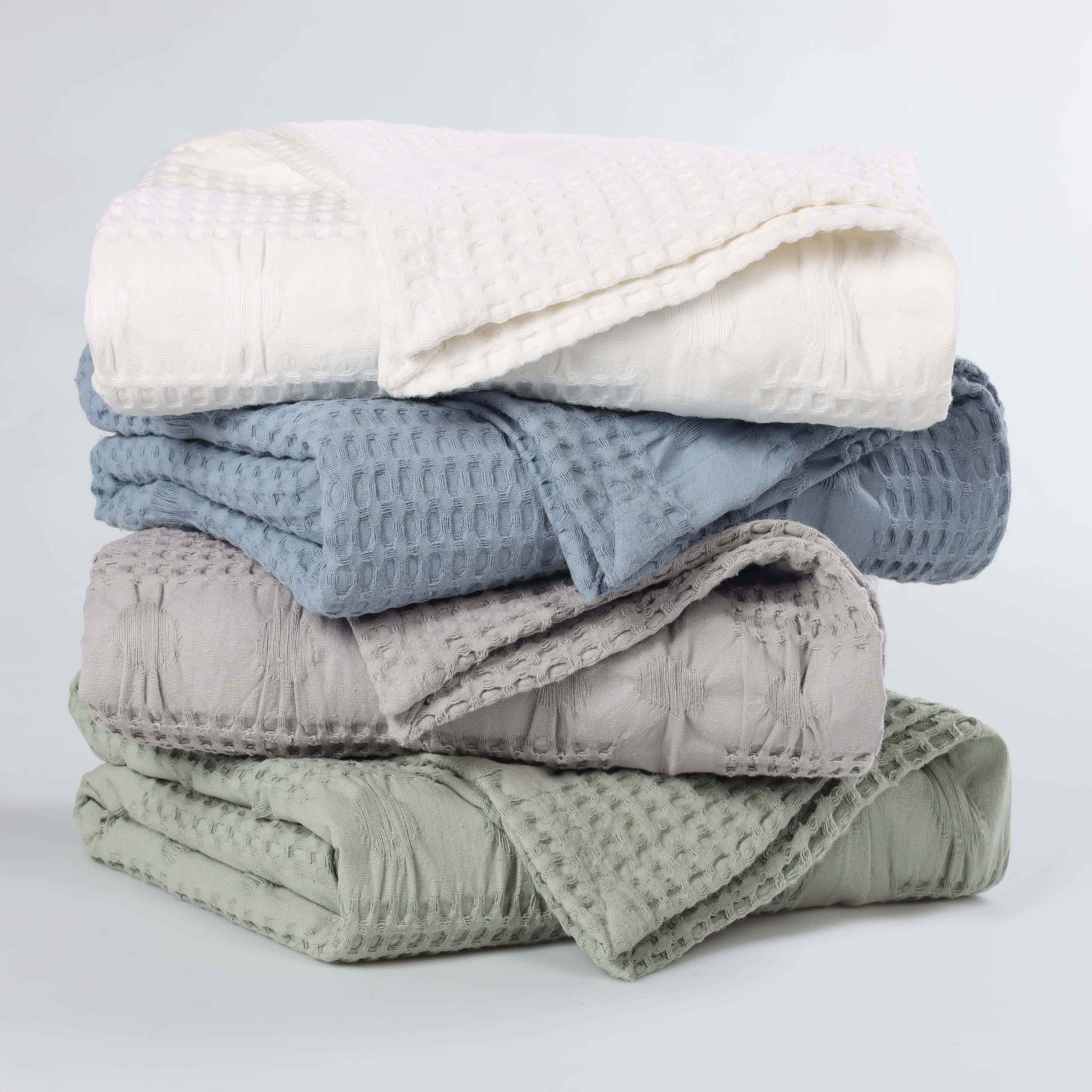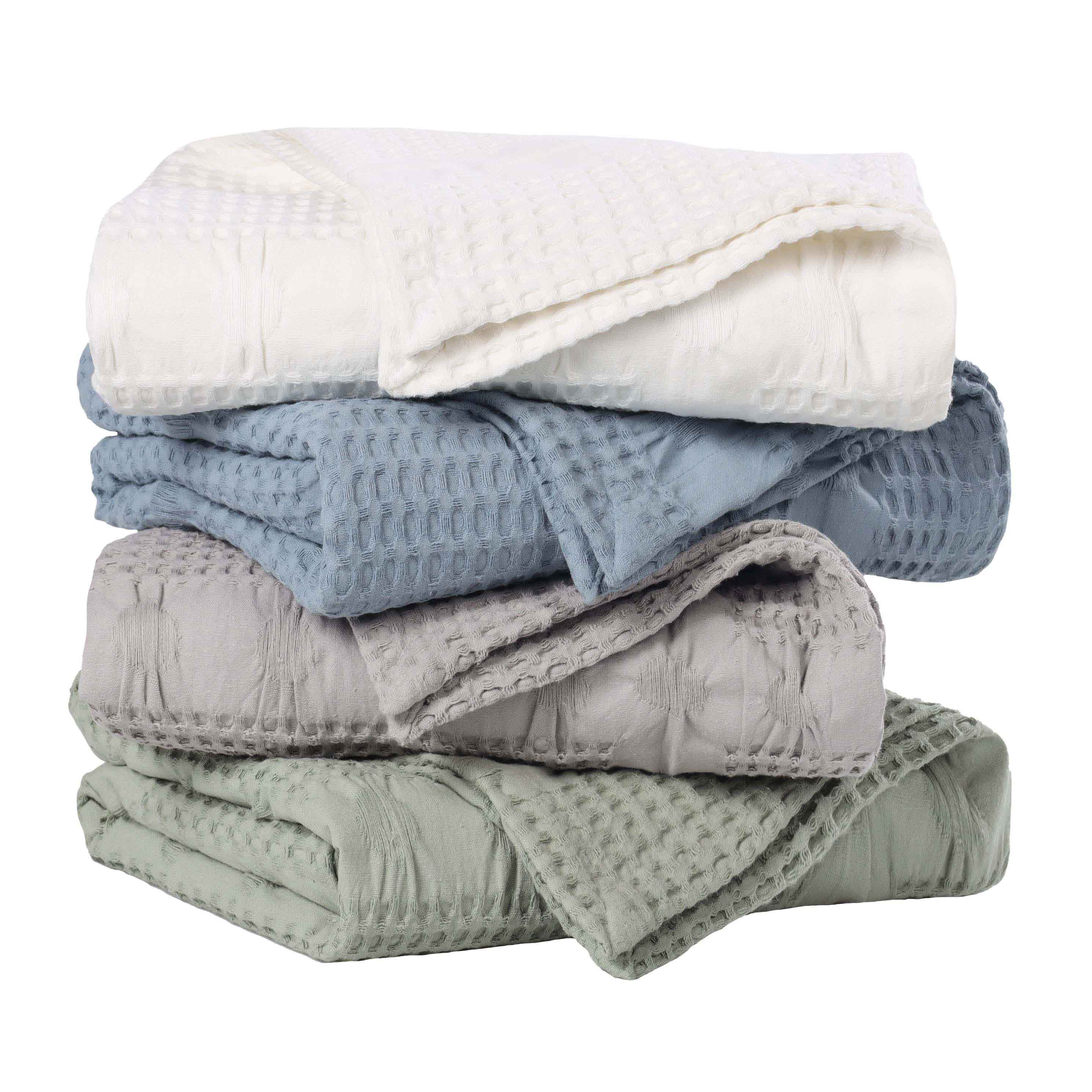 Elevate the style and comfort of your living space with our Mai Waffle Weave Cotton Blanket. This luxuriously soft cotton blanket displays a waffle, honeycomb design that is perfect for everyday use. These blankets are versatile and durable to keep you wrapped in comfort whenever you need it the most. Available in a variety of sizes and soothing color options, update your home decor with this timeless, modern blanket. Perfectly placed on any bed or sofa, this beautiful blanket is warm enough to use on its own or can be used as a layering accent.