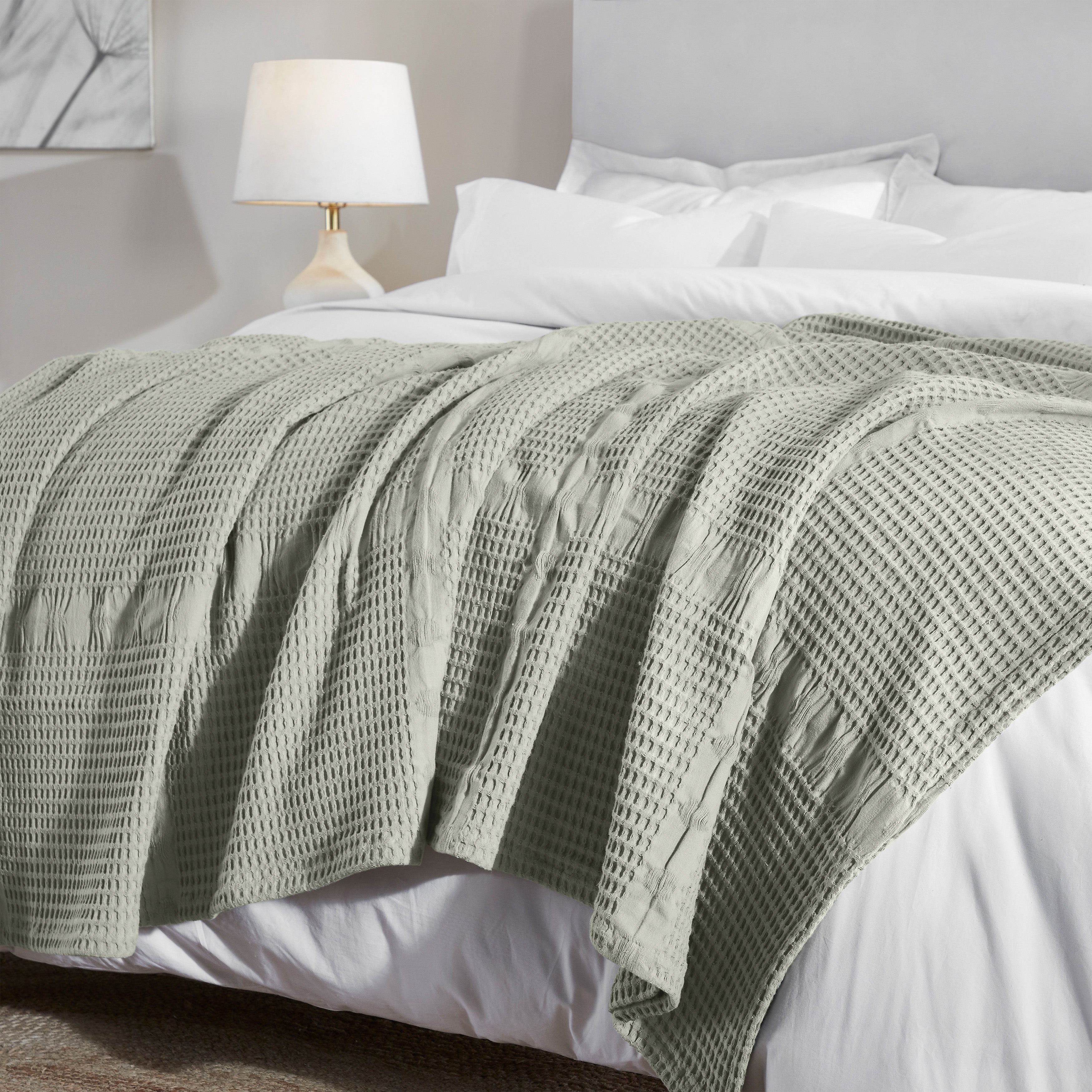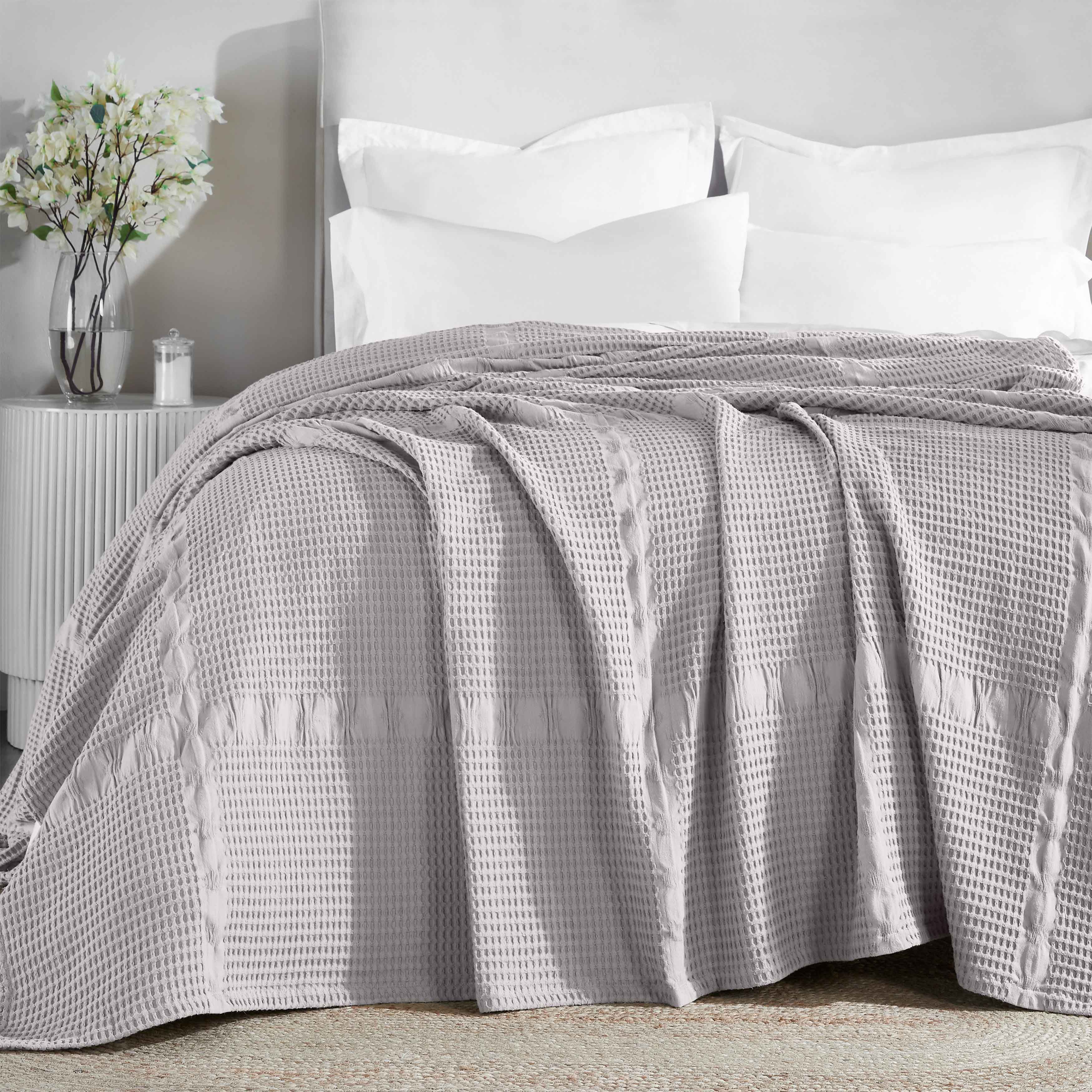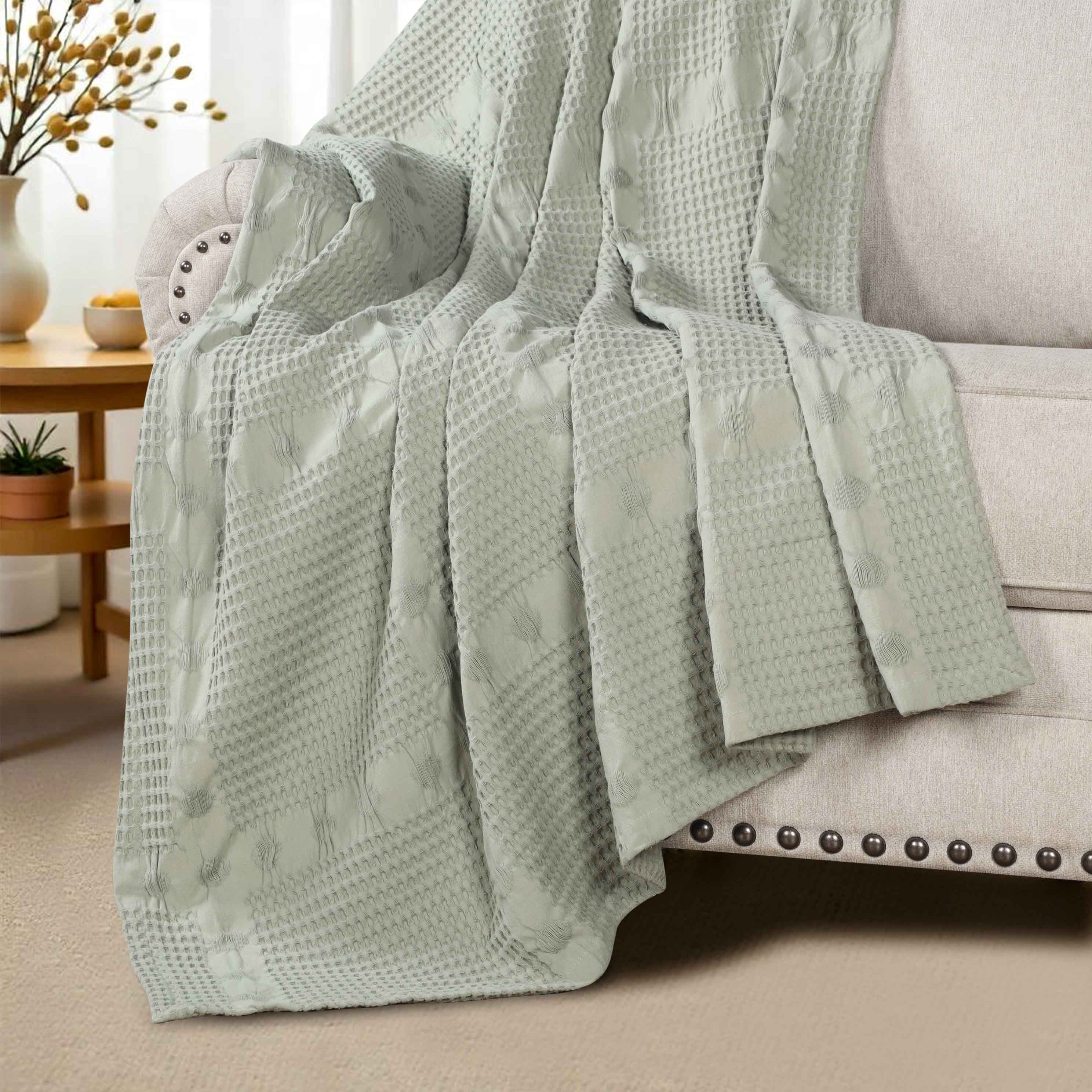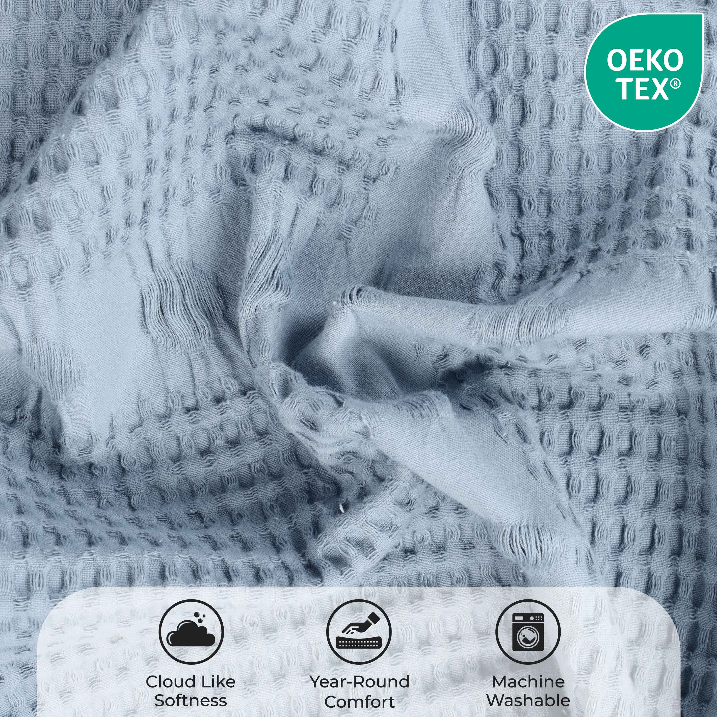 Elevate the style and comfort of your living space with our Mai Waffle Weave Cotton Blanket. This luxuriously soft cotton blanket displays a waffle, honeycomb design that is perfect for everyday use. These blankets are versatile and durable to keep you wrapped in comfort whenever you need it the most. Available in a variety of sizes and soothing color options, update your home decor with this timeless, modern blanket. Perfectly placed on any bed or sofa, this beautiful blanket is warm enough to use on its own or can be used as a layering accent.