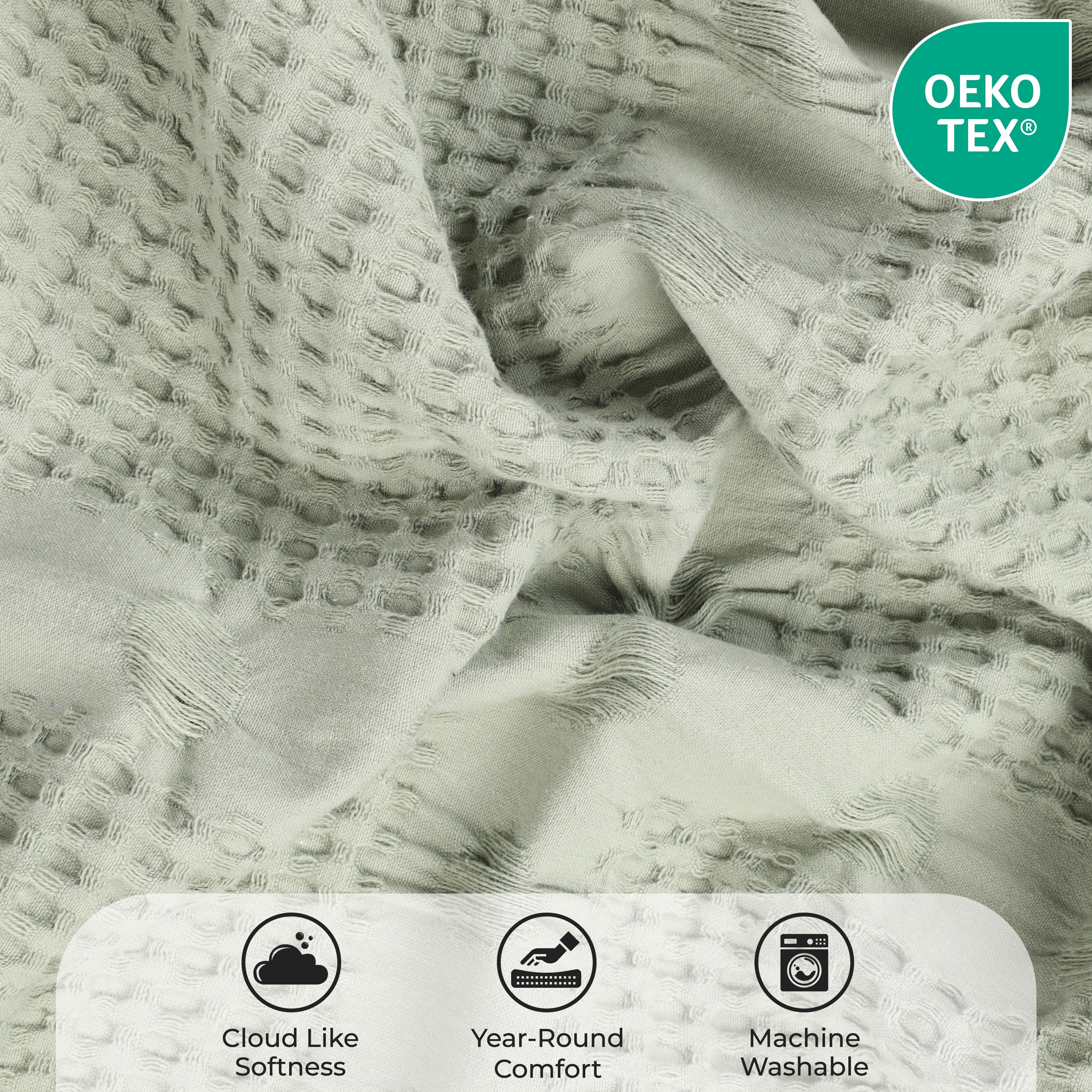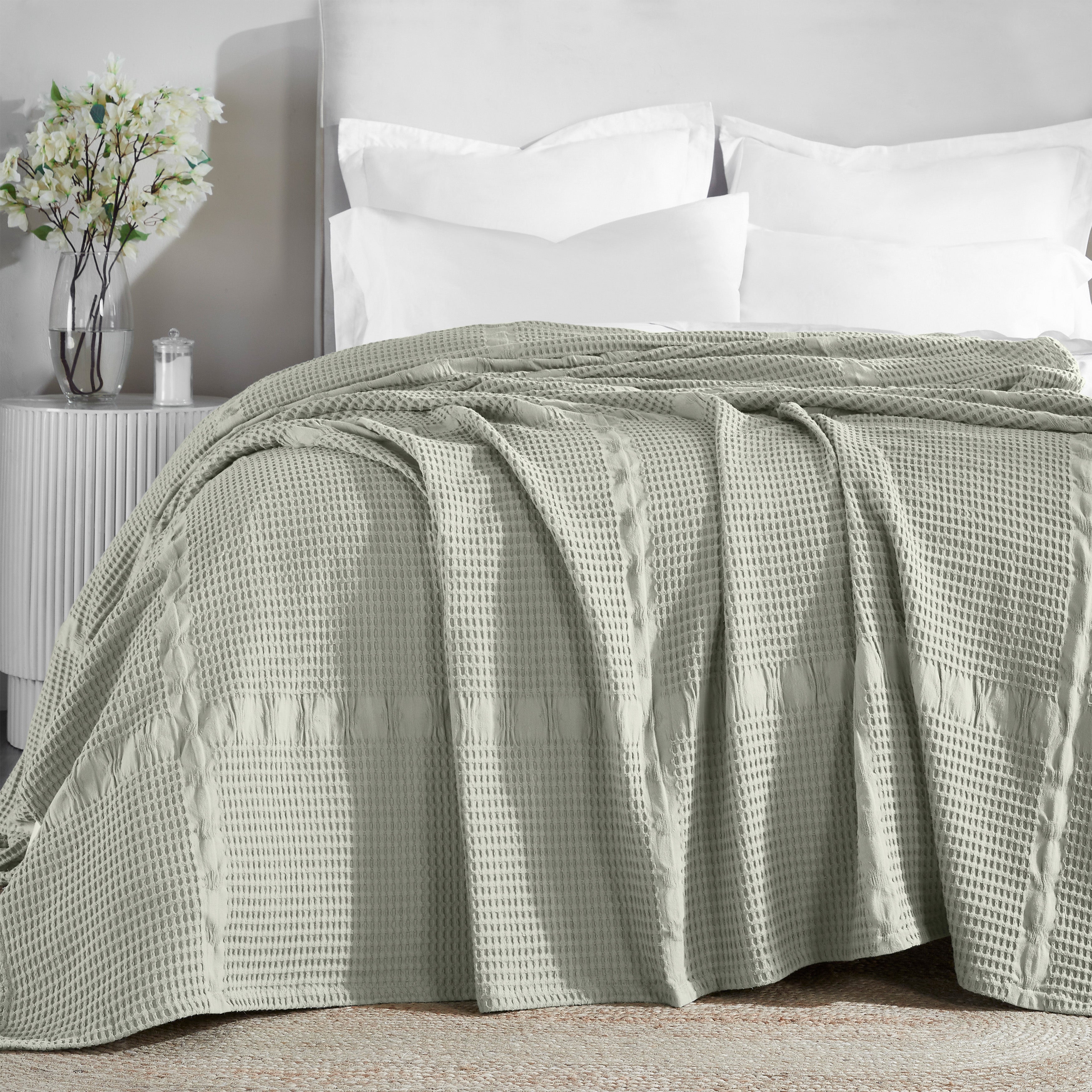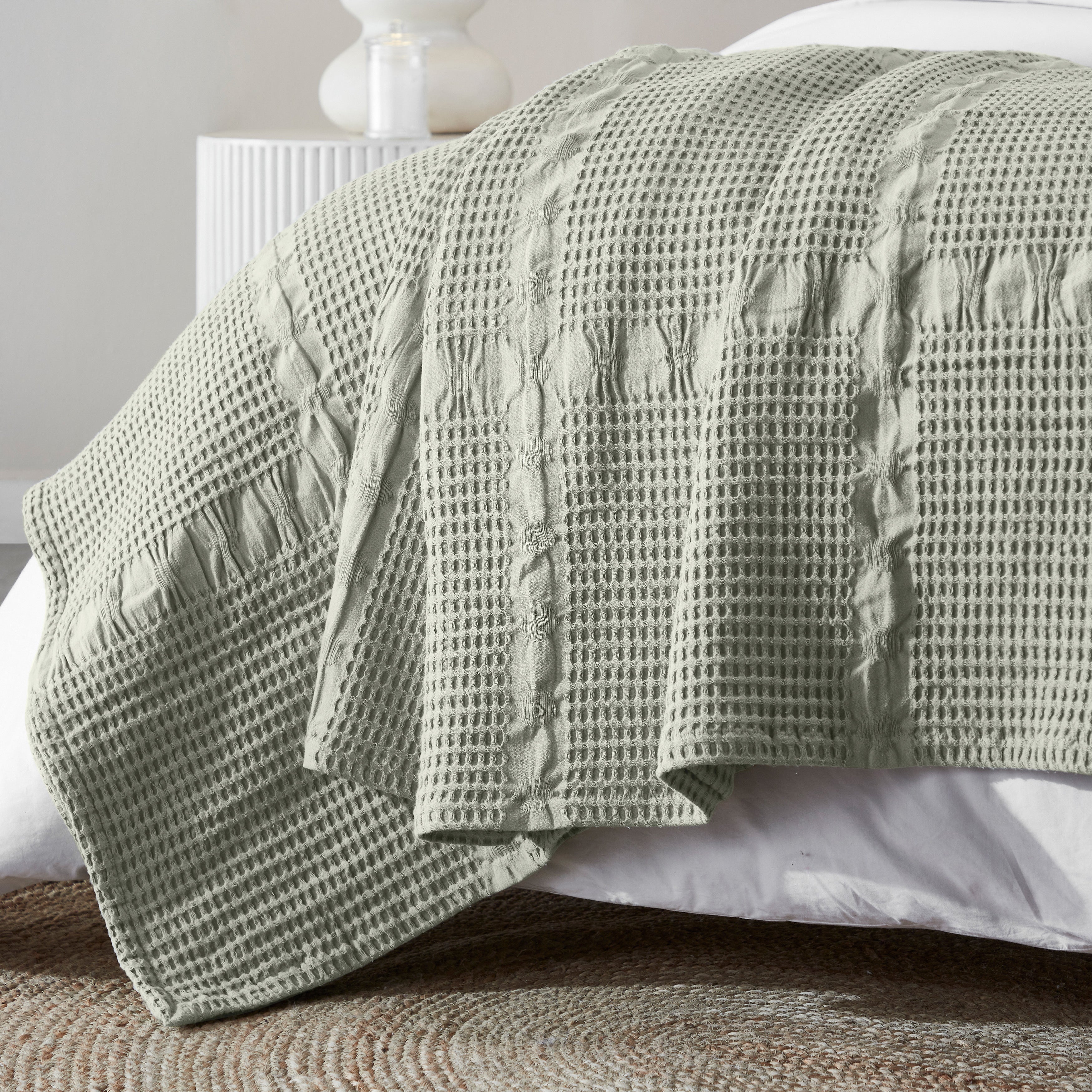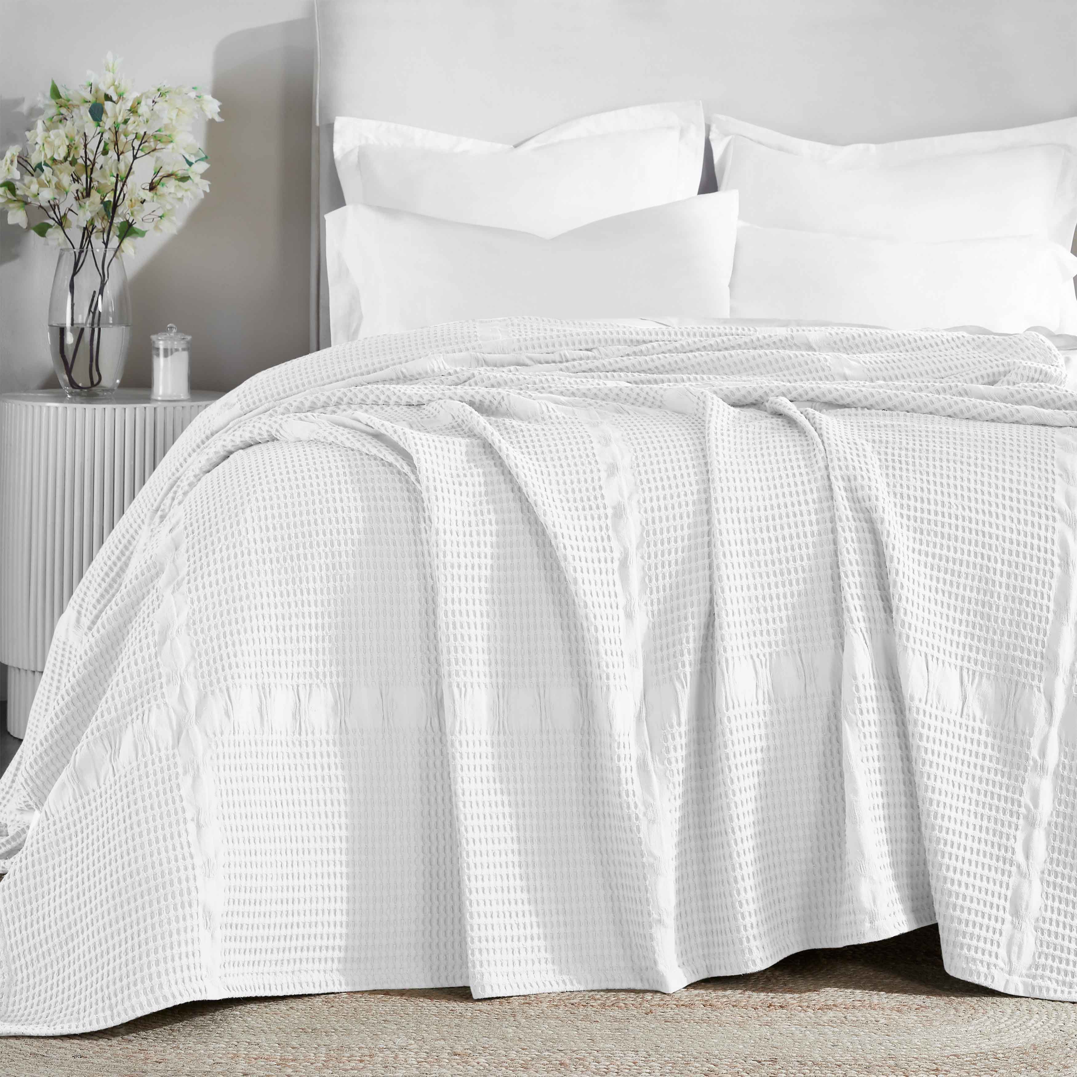 Elevate the style and comfort of your living space with our Mai Waffle Weave Cotton Blanket. This luxuriously soft cotton blanket displays a waffle, honeycomb design that is perfect for everyday use. These blankets are versatile and durable to keep you wrapped in comfort whenever you need it the most. Available in a variety of sizes and soothing color options, update your home decor with this timeless, modern blanket. Perfectly placed on any bed or sofa, this beautiful blanket is warm enough to use on its own or can be used as a layering accent.