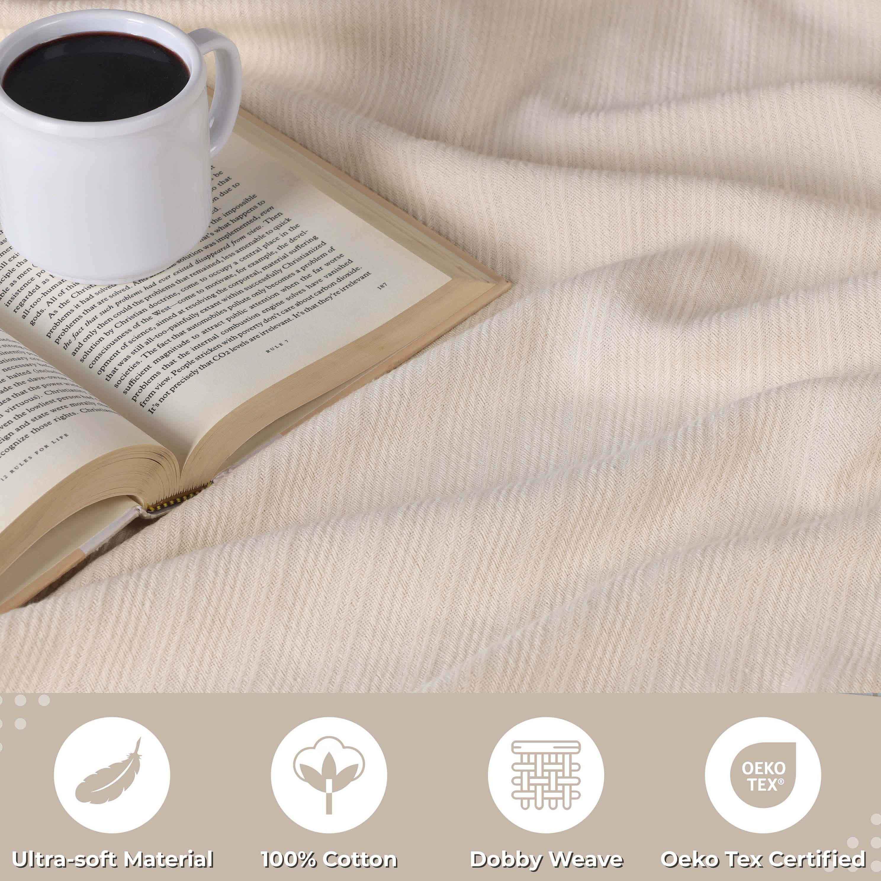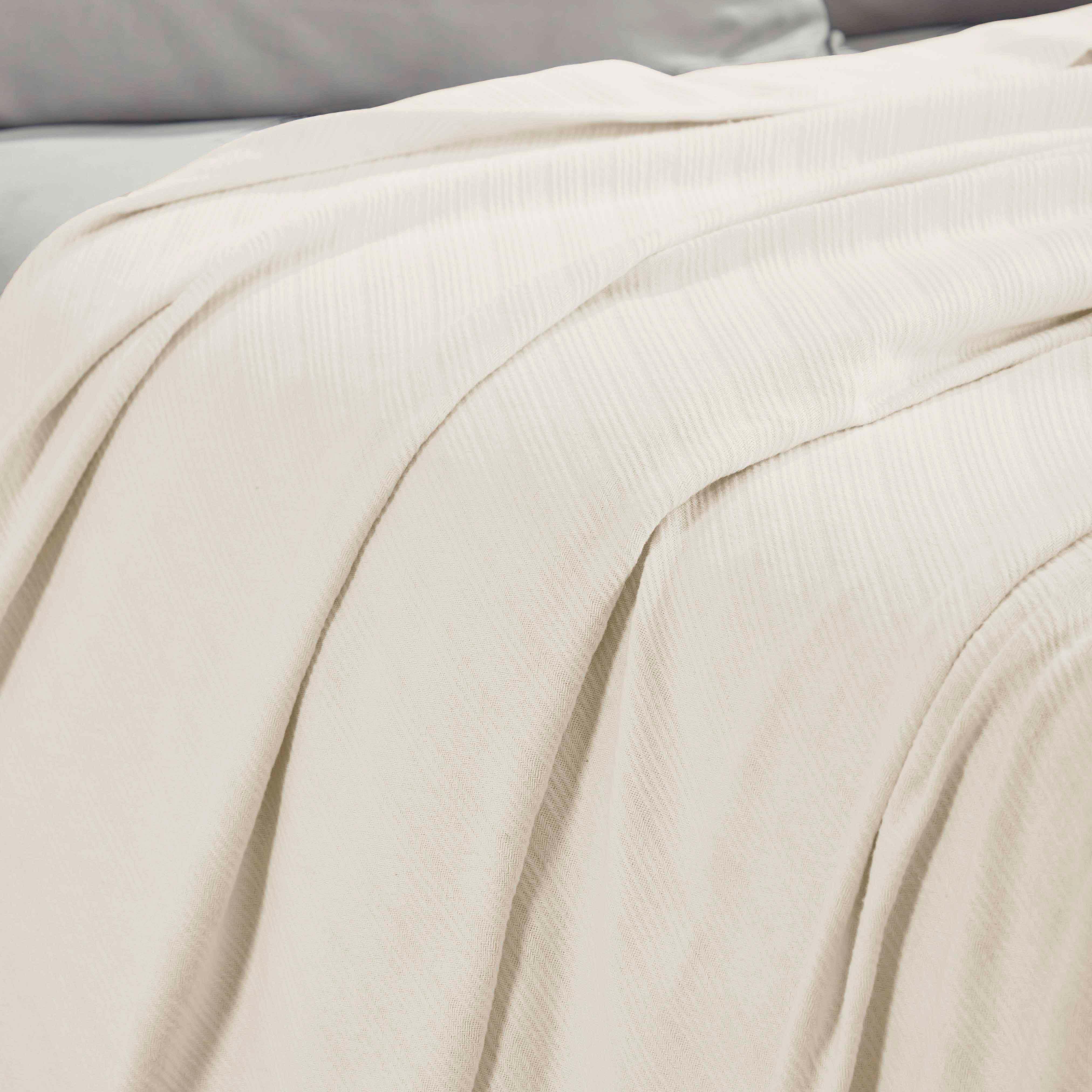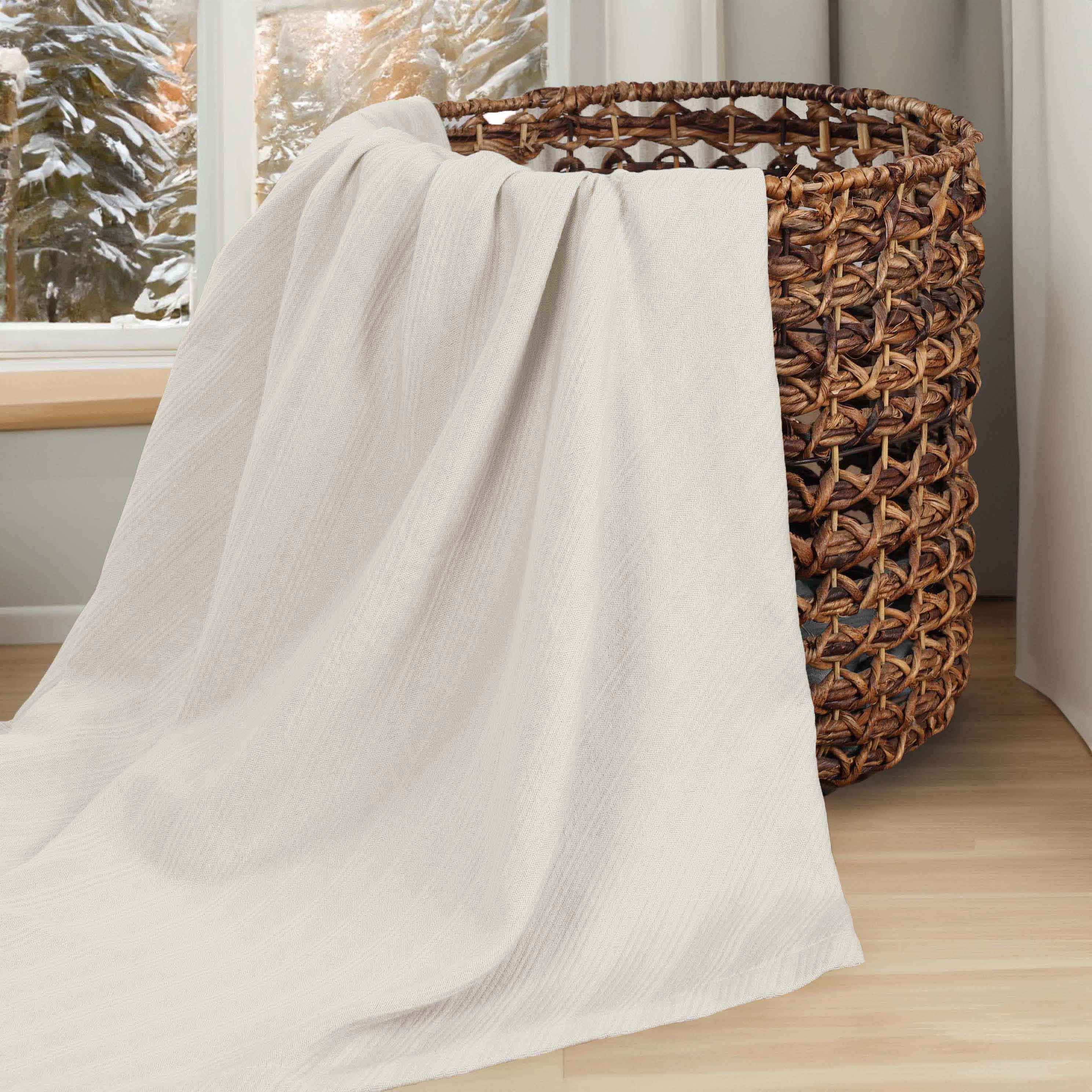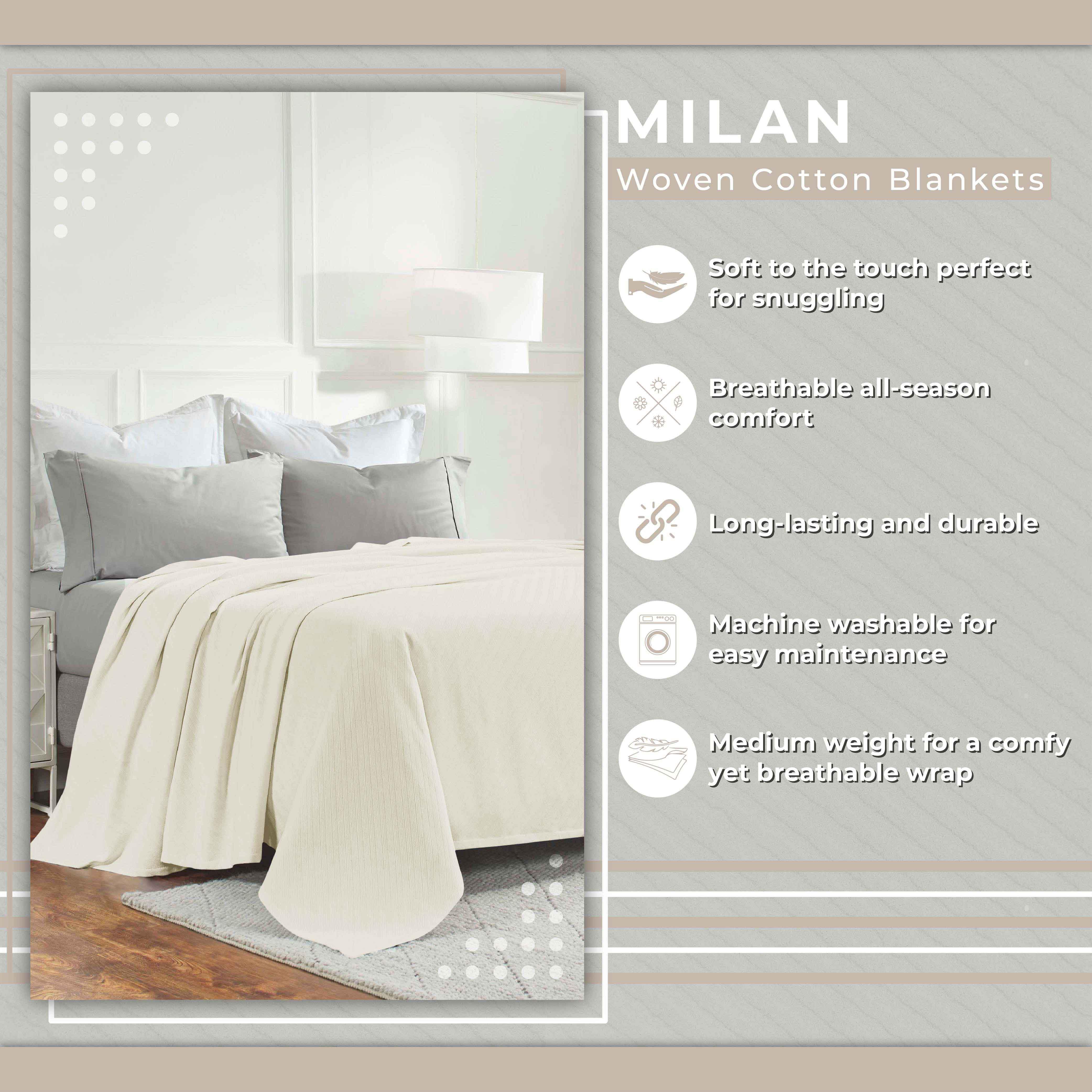Give your bed or sofa a touch of elegance with our comfy Milan Cotton Blanket. Crafted from naturally soft cotton, this blanket has a luxurious feel and comfortable design. Lightweight and breathable, this bedding essential keeps you cozy and warm while you sleep or lounge. This blanket is available in solid color options with a raised jacquard weave design and diagonally striped pattern to instantly update your decor style. Bring a refreshingly modern look to your favorite space with this eye-catching cotton blanket.