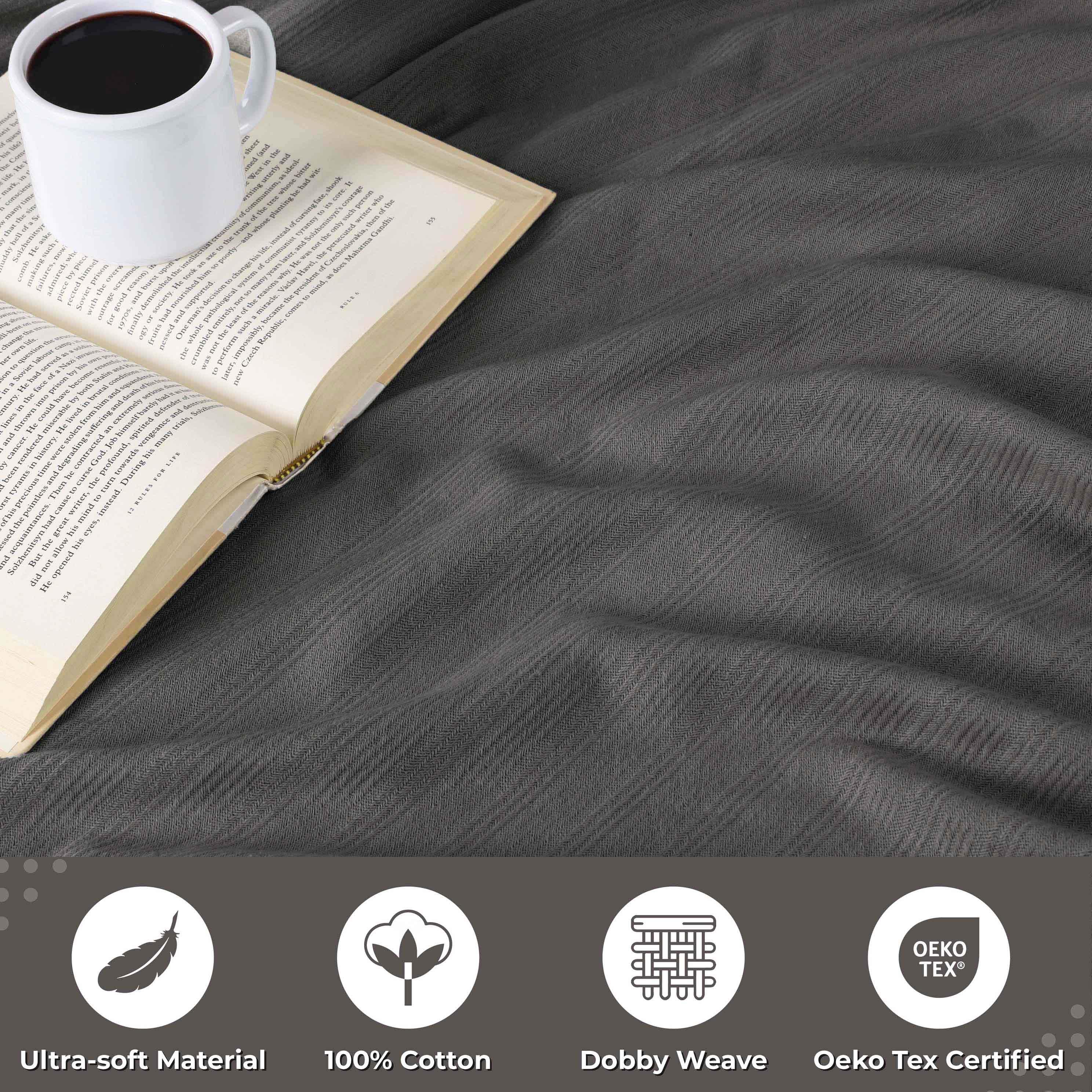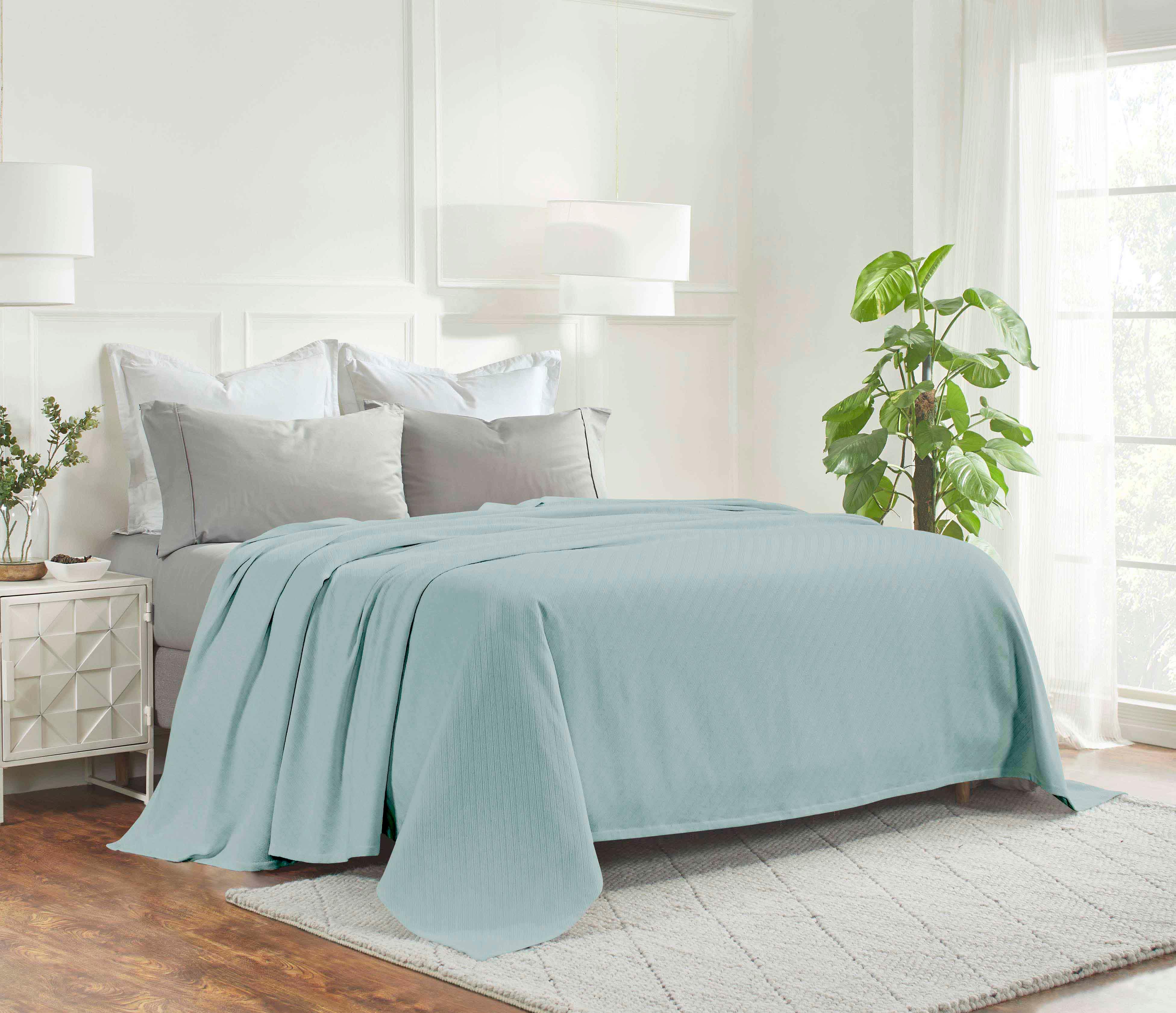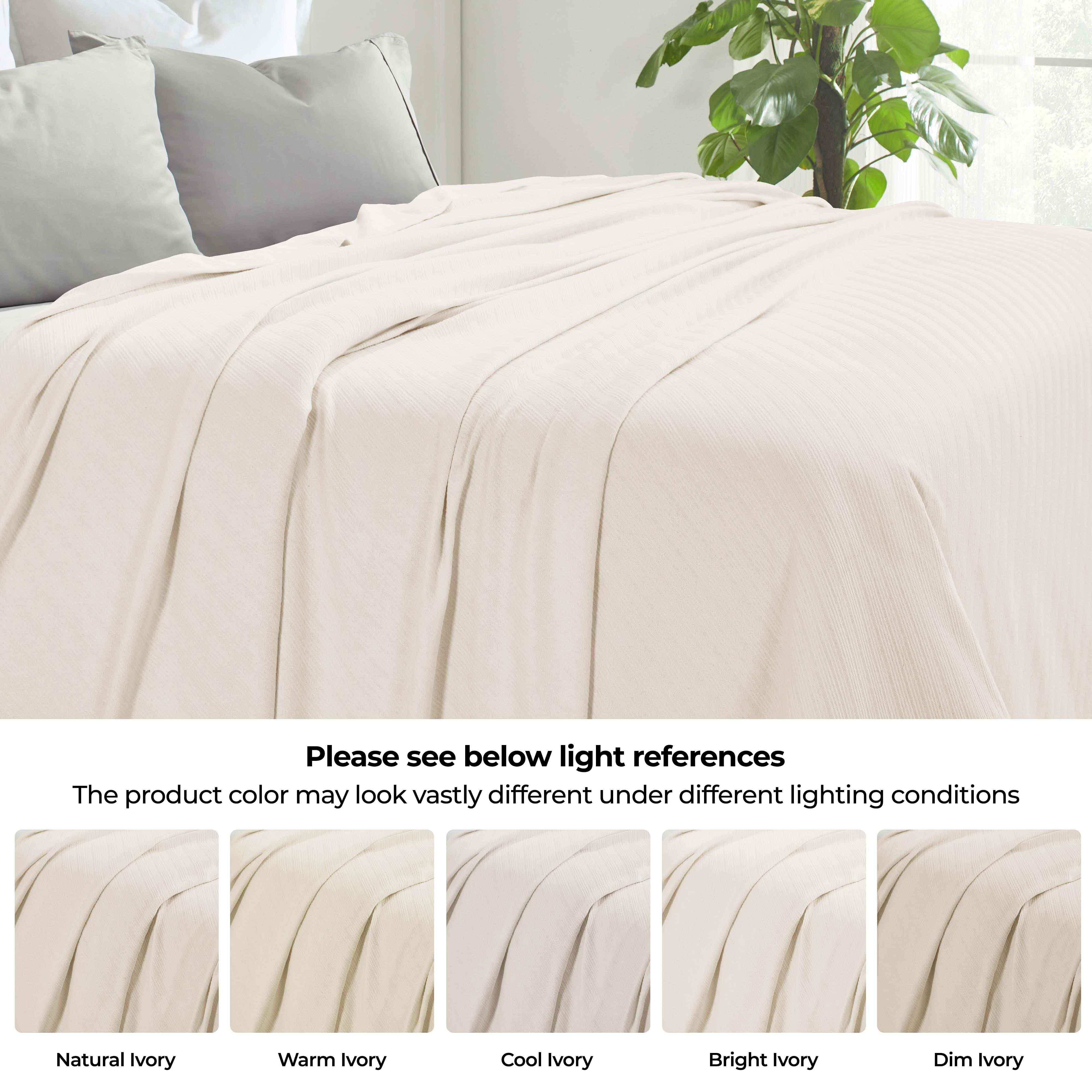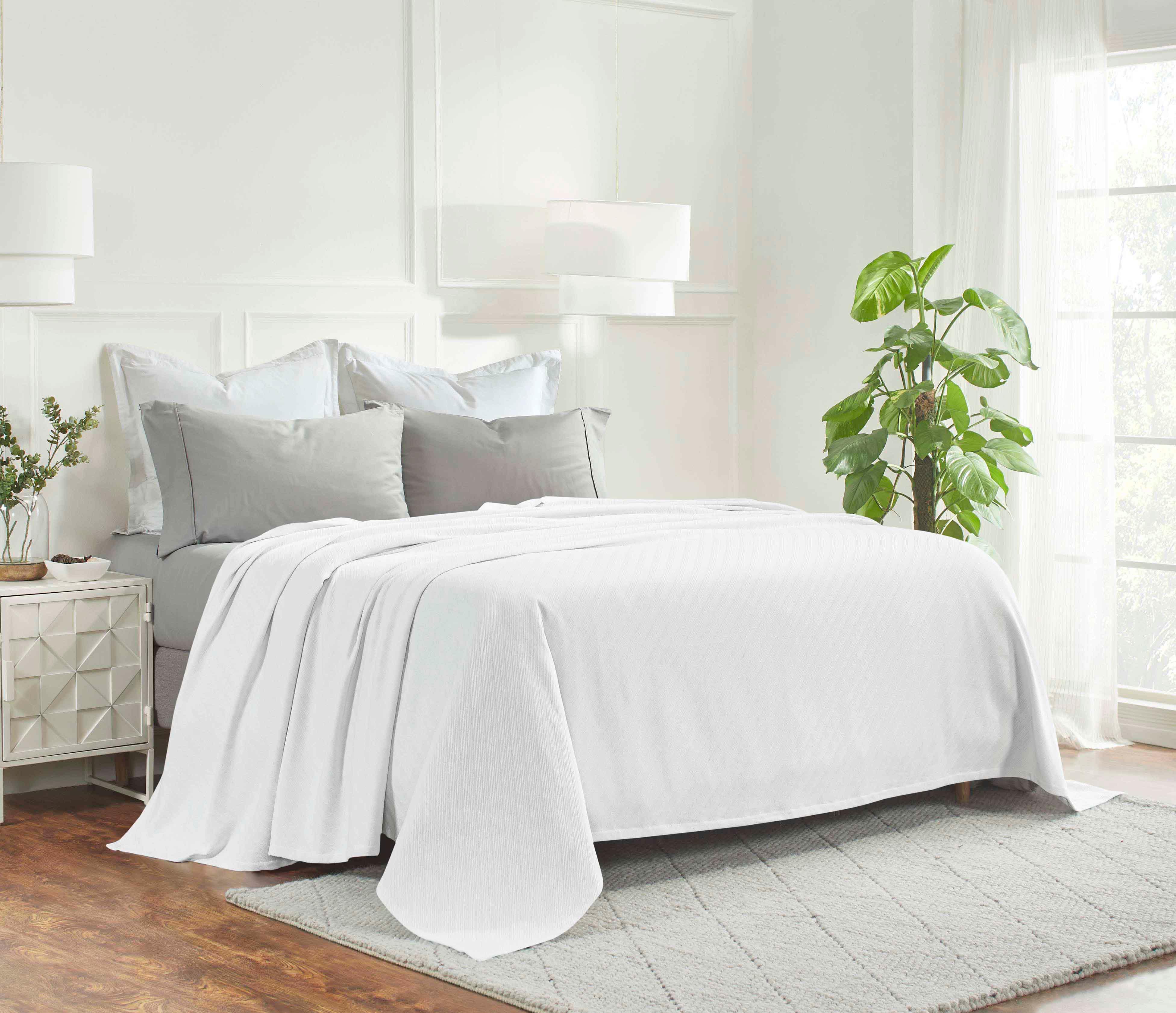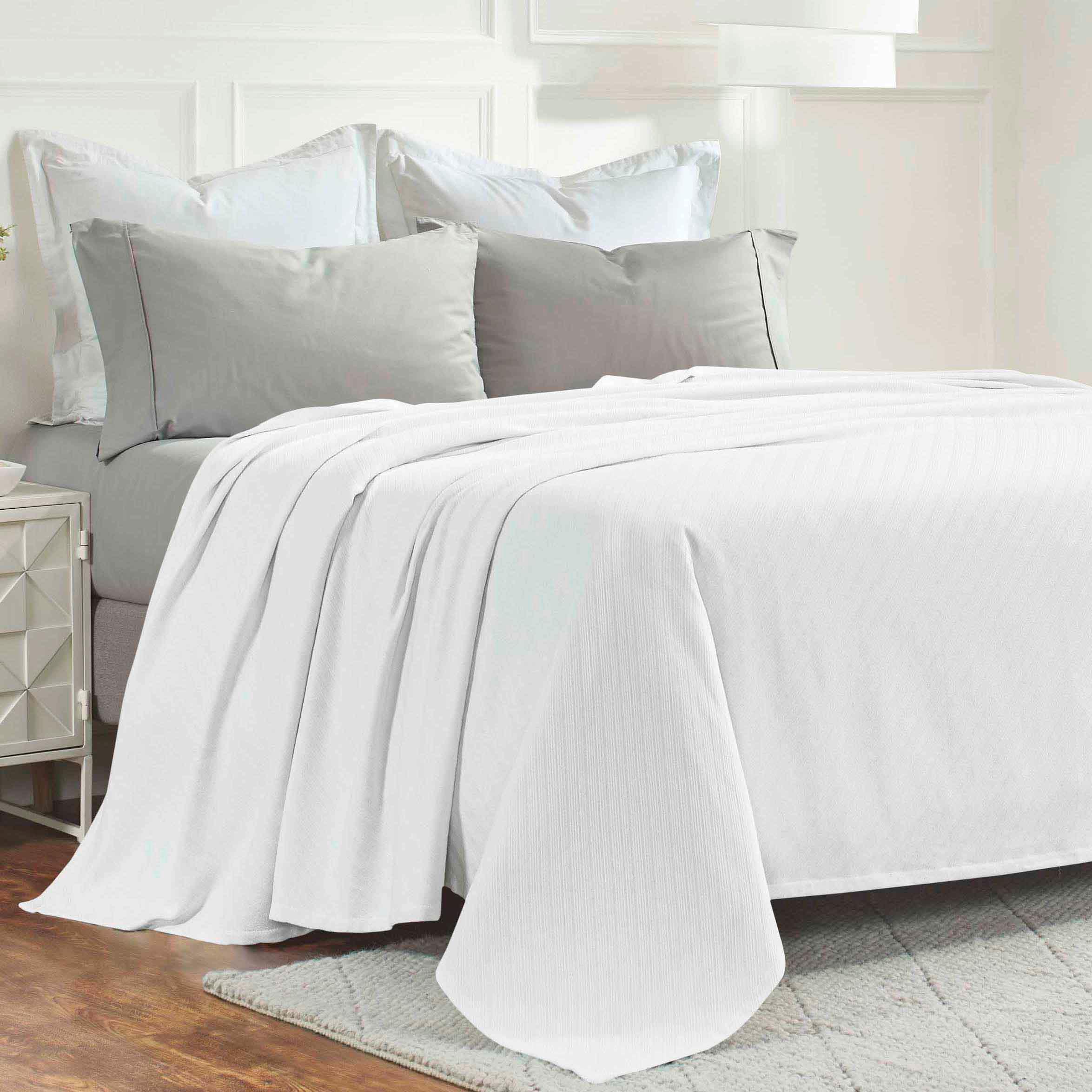 Give your bed or sofa a touch of elegance with our comfy Milan Cotton Blanket. Crafted from naturally soft cotton, this blanket has a luxurious feel and comfortable design. Lightweight and breathable, this bedding essential keeps you cozy and warm while you sleep or lounge. This blanket is available in solid color options with a raised jacquard weave design and diagonally striped pattern to instantly update your decor style. Bring a refreshingly modern look to your favorite space with this eye-catching cotton blanket.