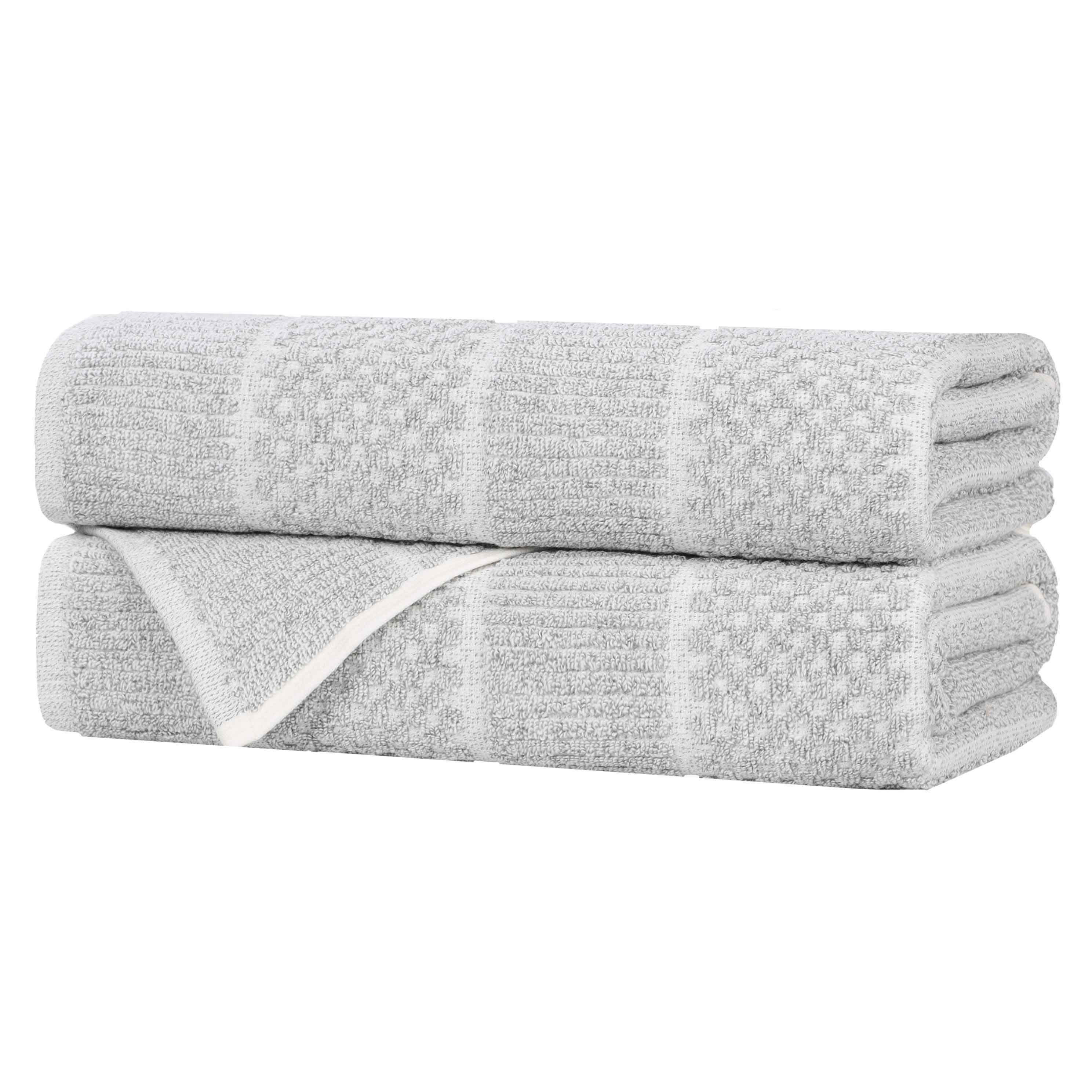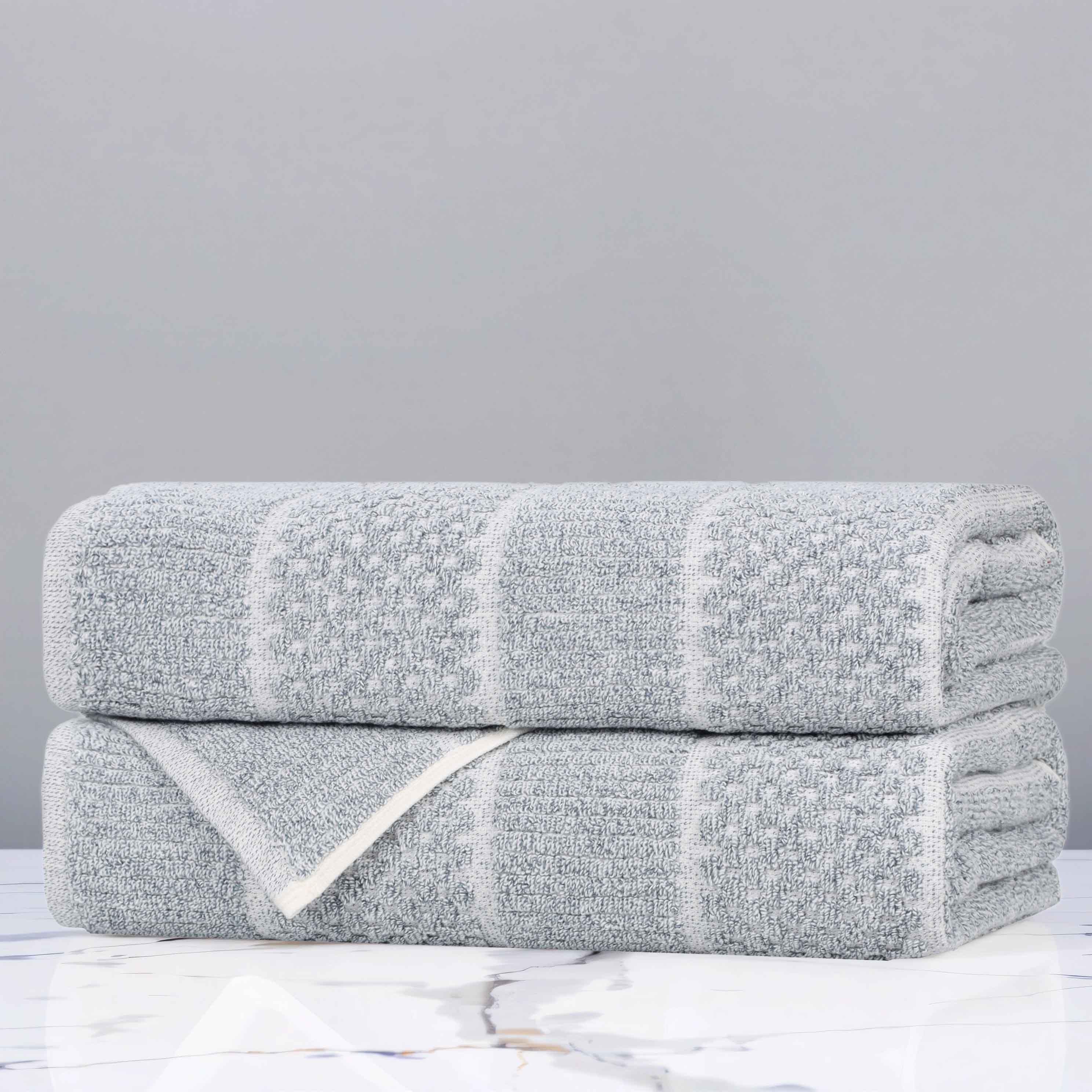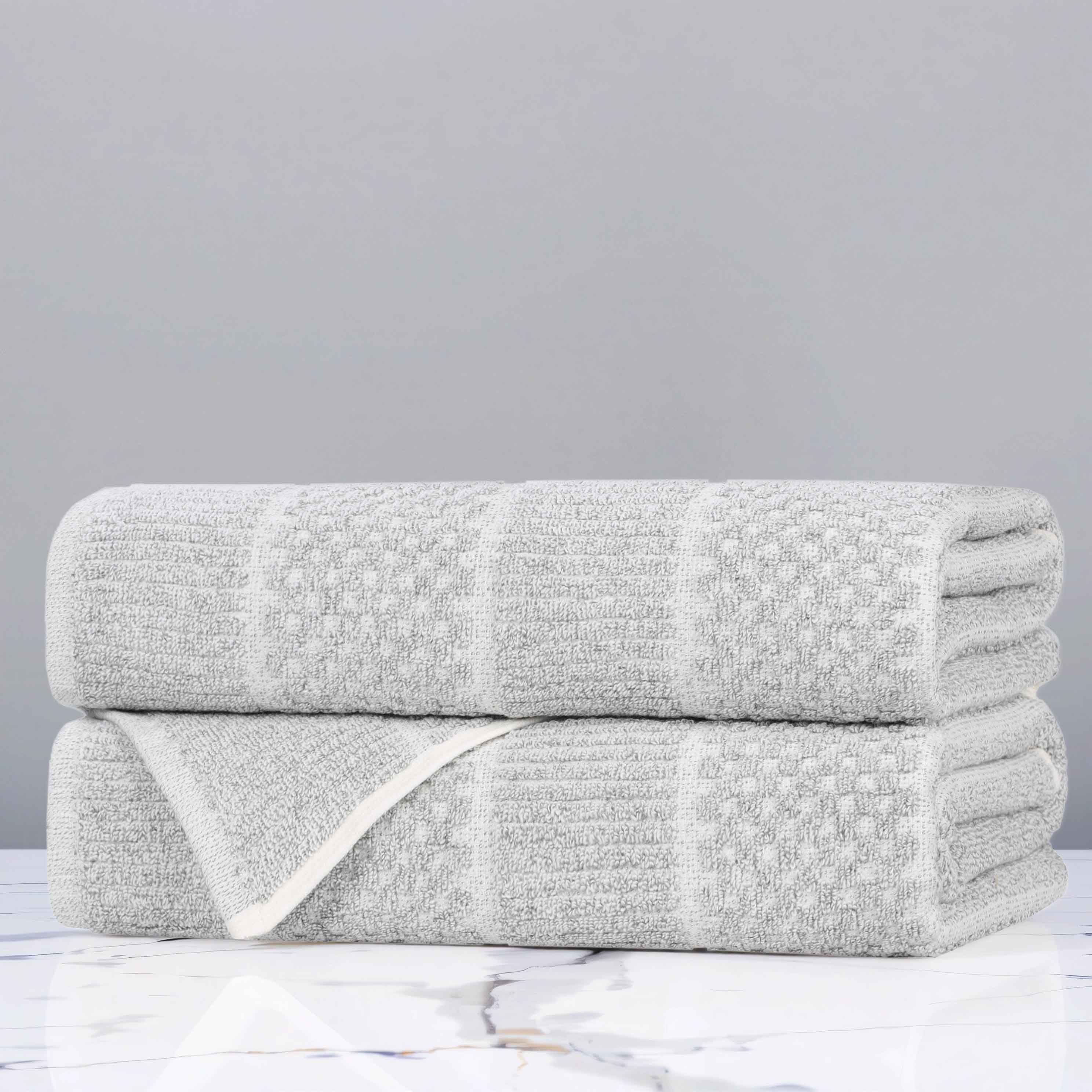 Redefine your bathroom with the Cotton Blend Checkered and Rib Bath Towel Set of 2, a premium addition to your towel ring.