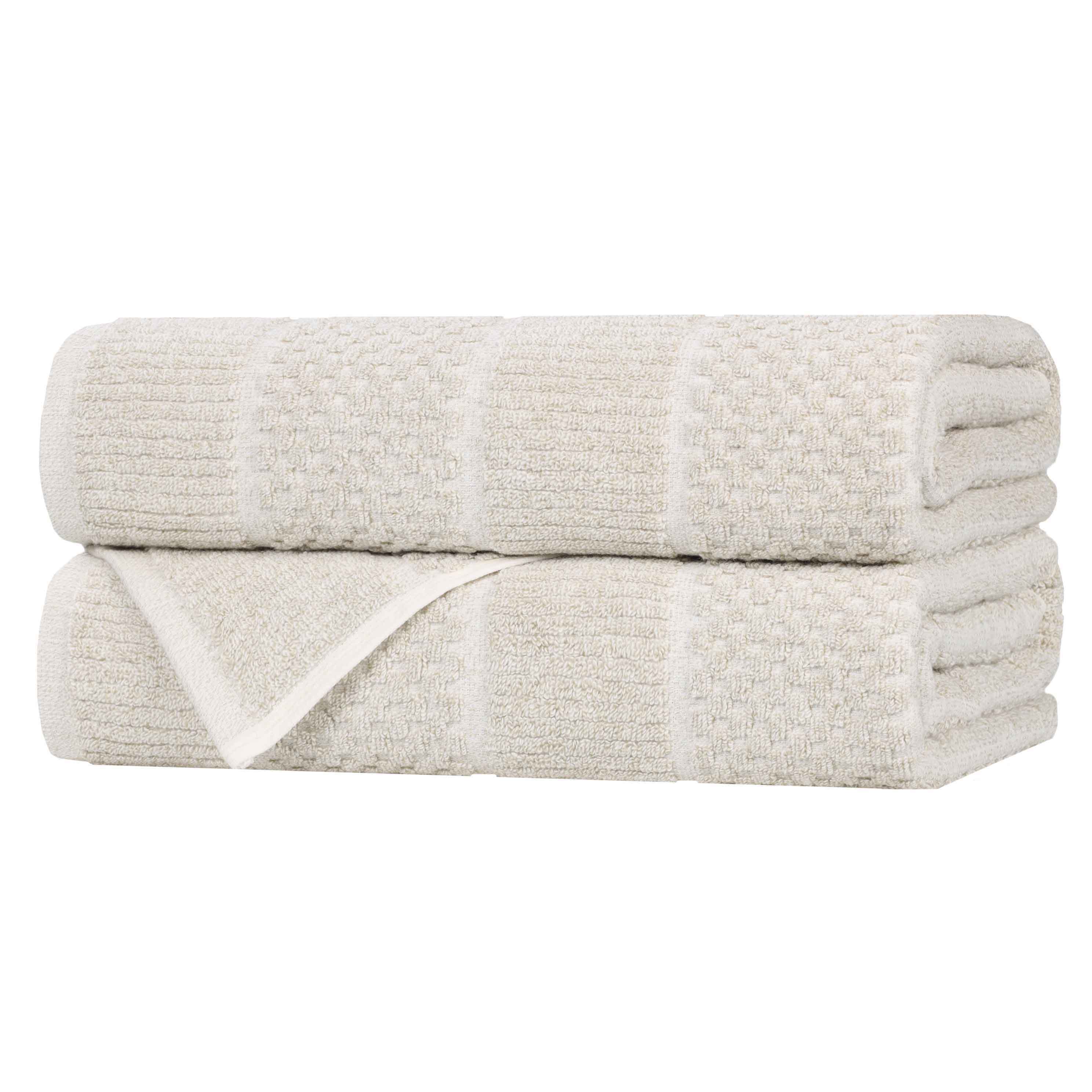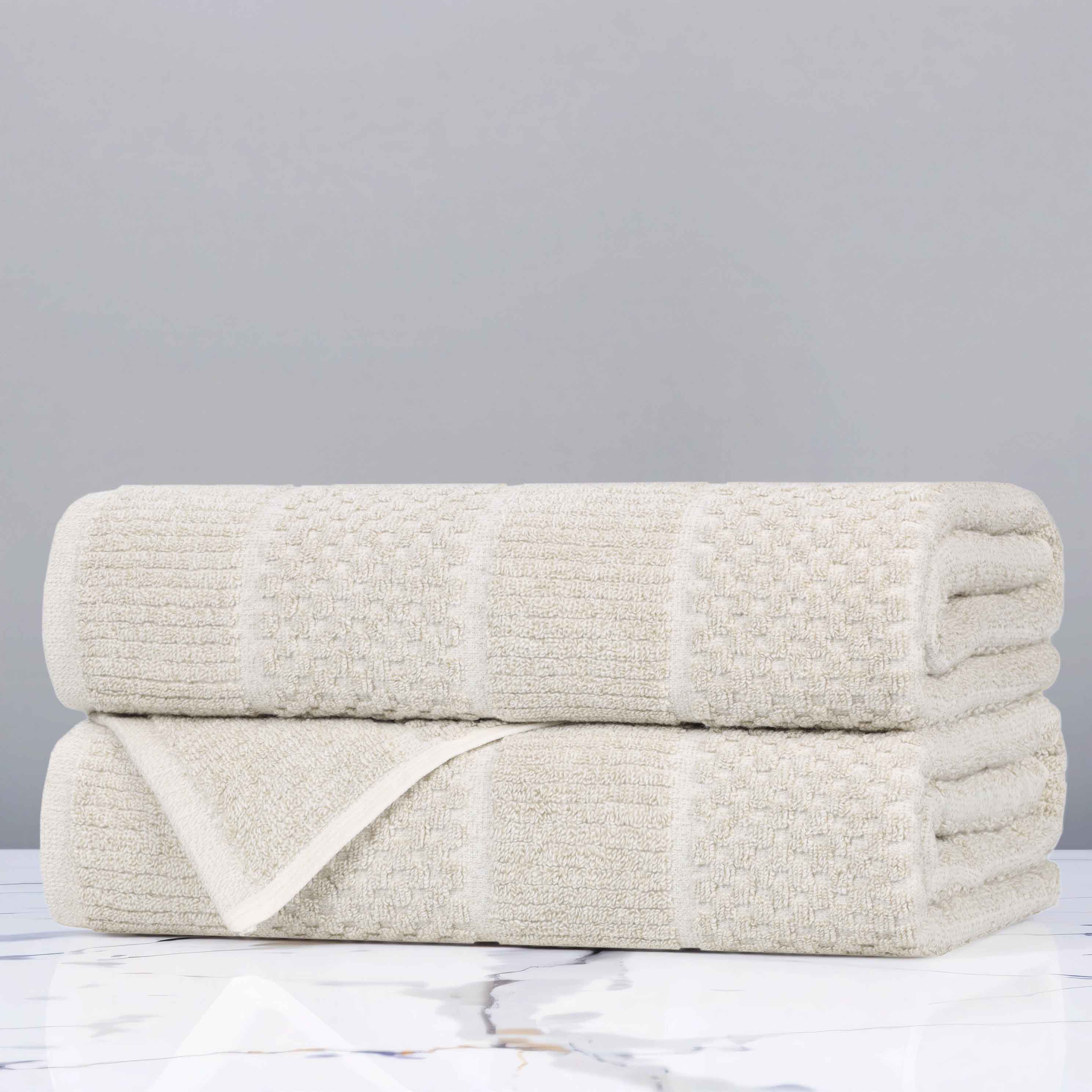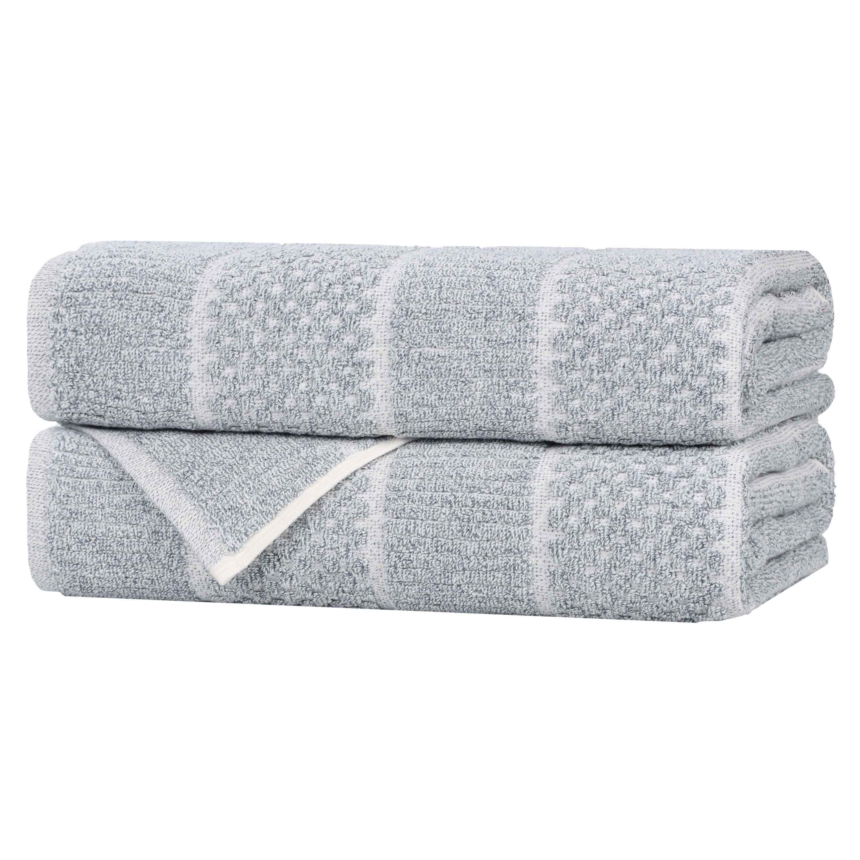 Redefine your bathroom with the Cotton Blend Checkered and Rib Bath Towel Set of 2, a premium addition to your towel ring.