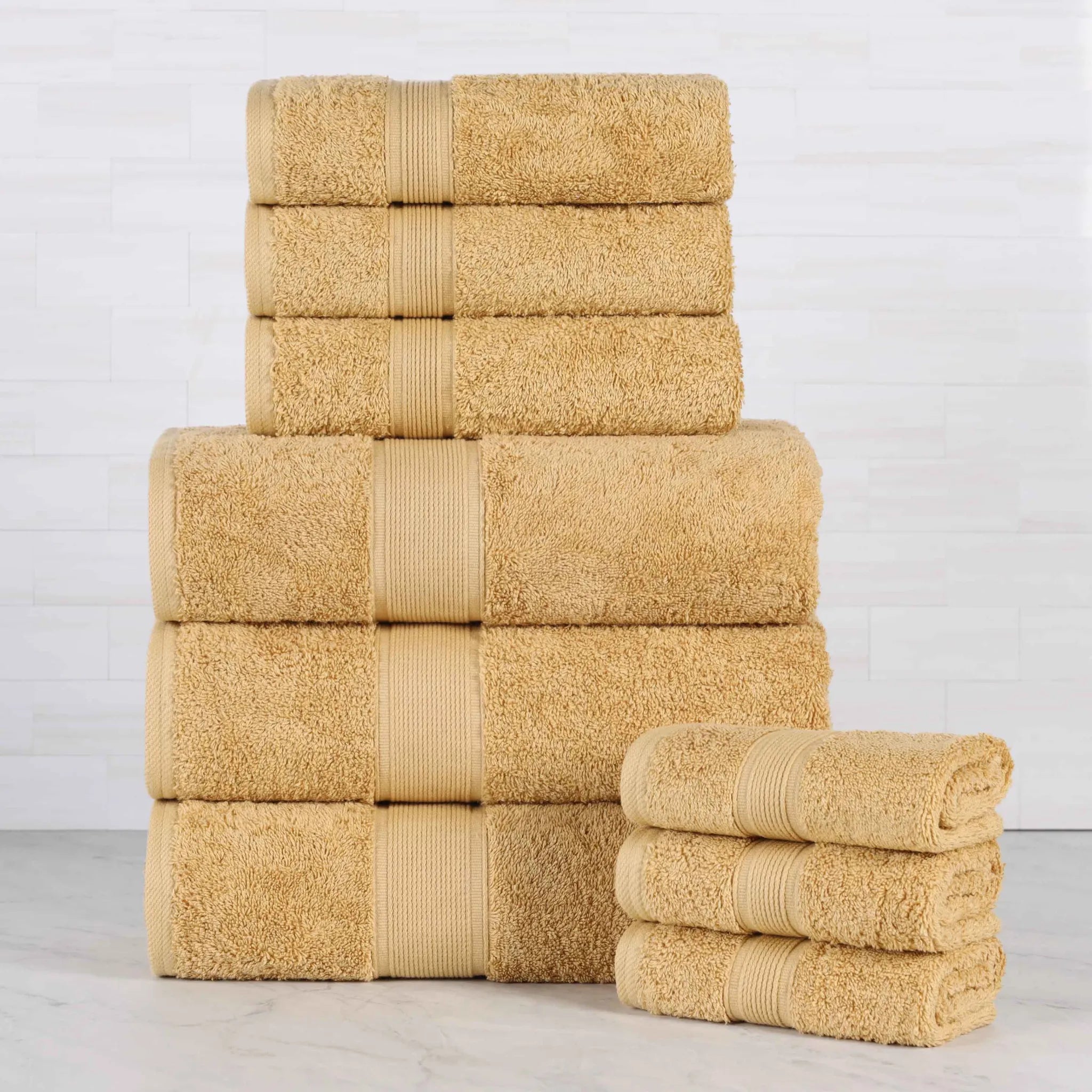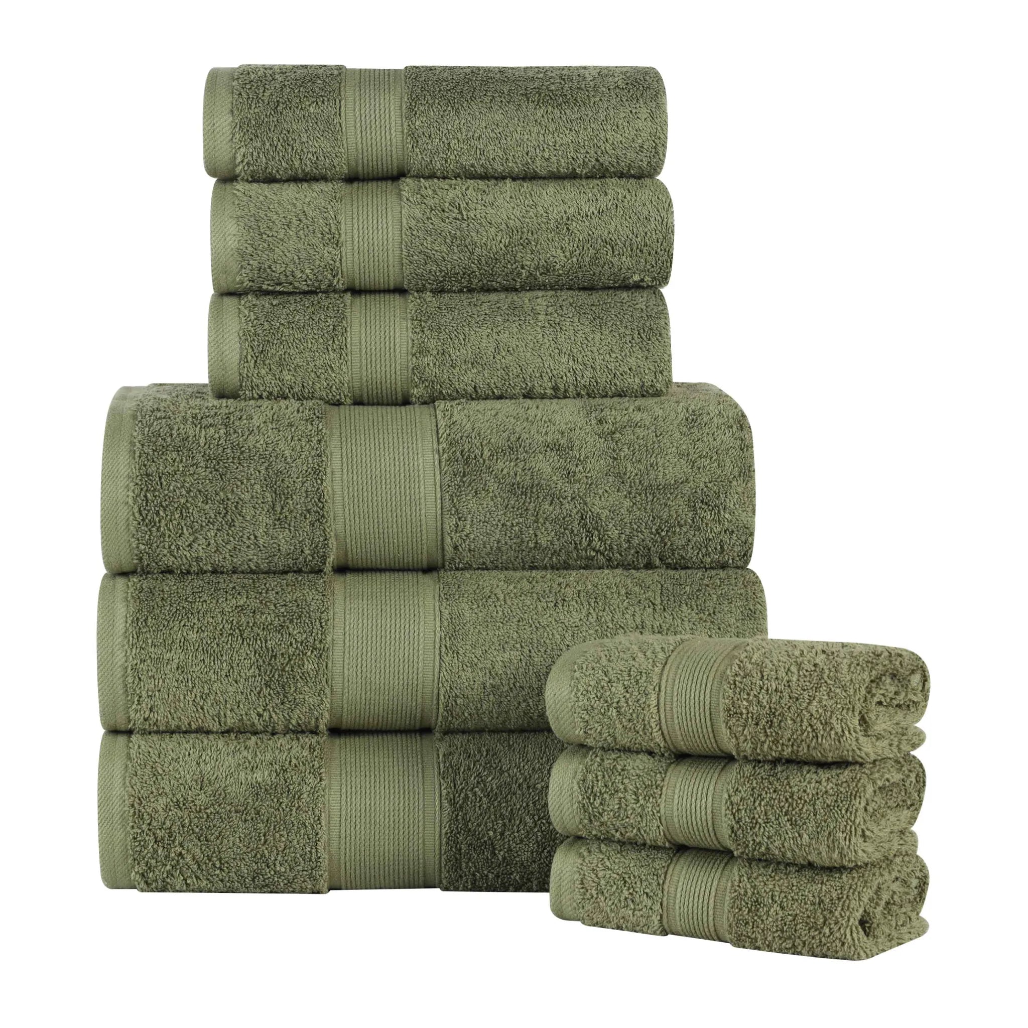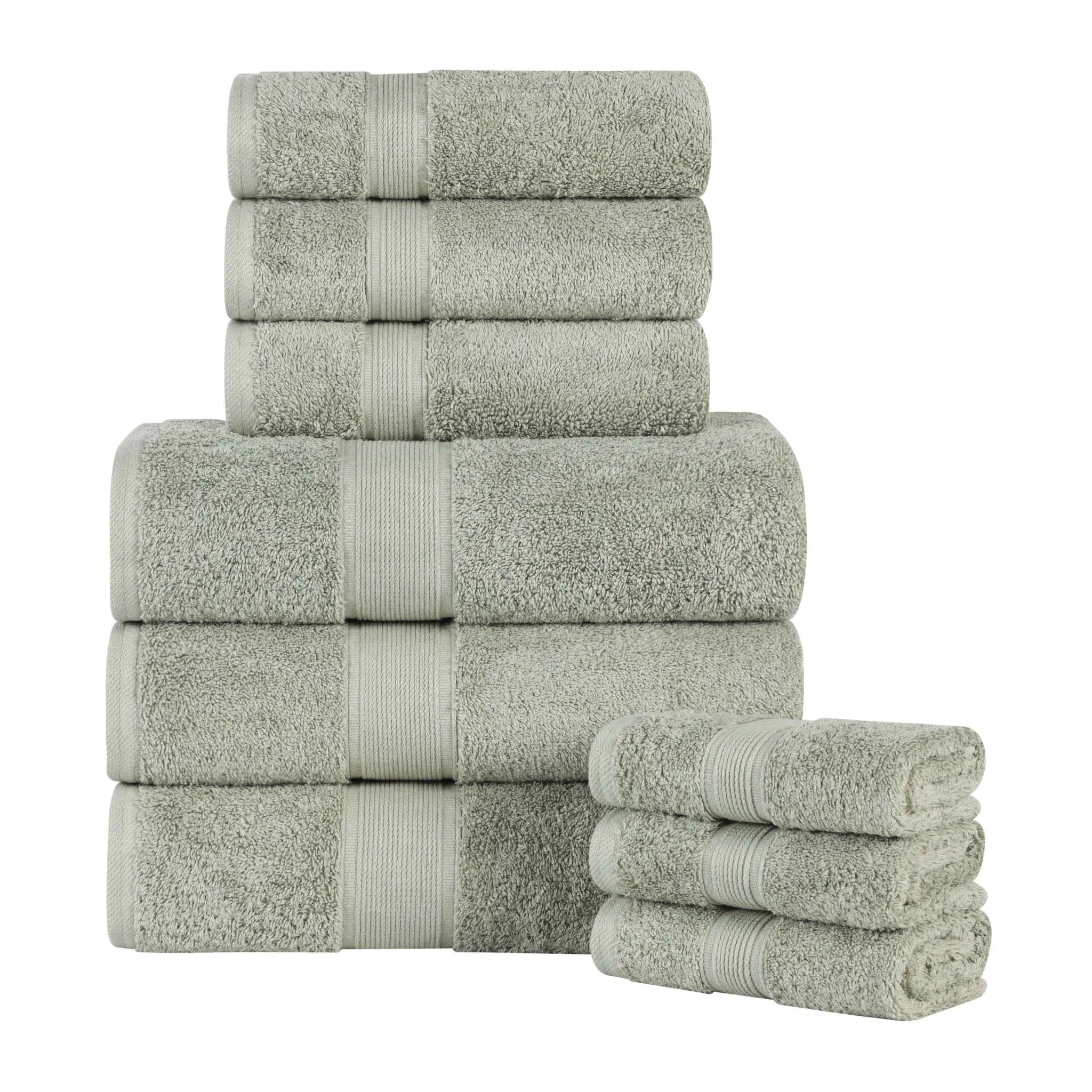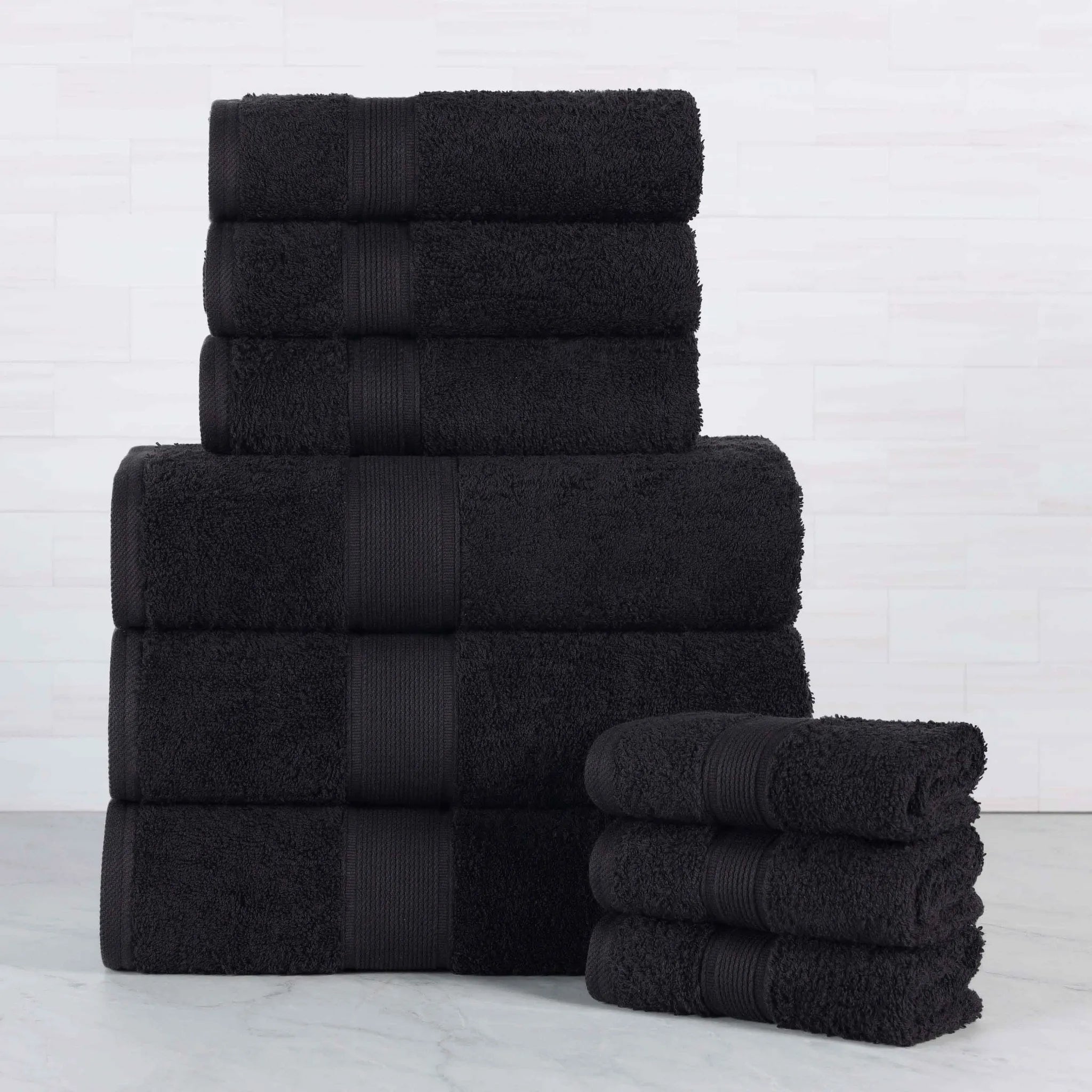 The Superior Oregon 9-Piece Towel Set combines sustainable luxury with everyday practicality. Ethically made from organic cotton, these towels offer a soft feel with high absorbency, ensuring a spa-like experience daily. Designed with a refined thick border and available in a selection of rich, classic colors, these towels effortlessly enhance the style and functionality of any bathroom space.