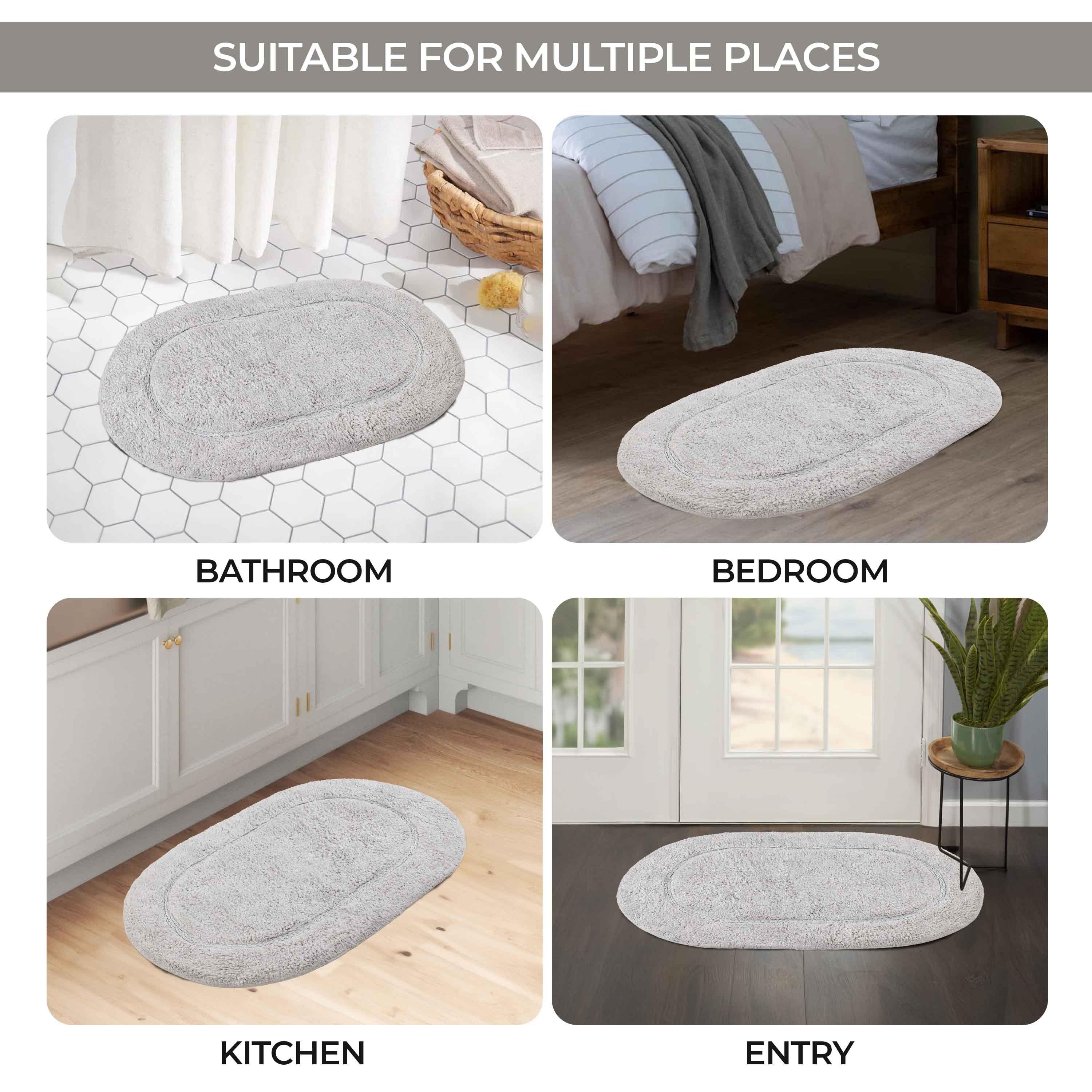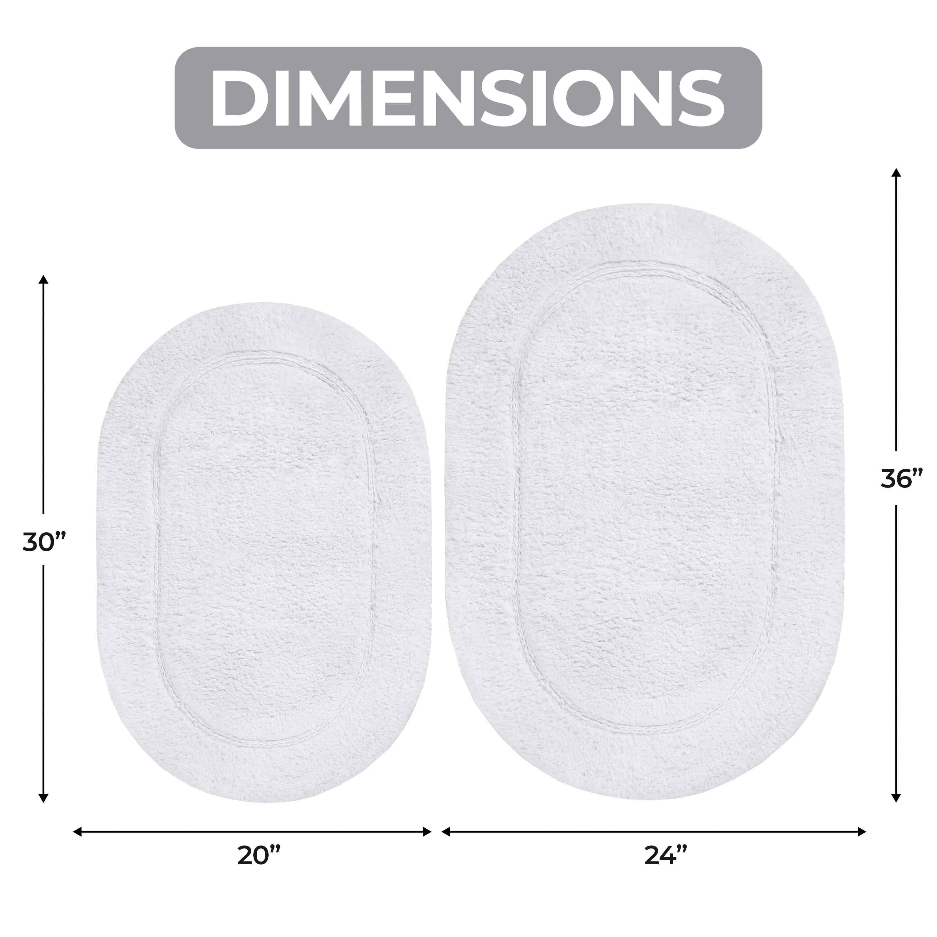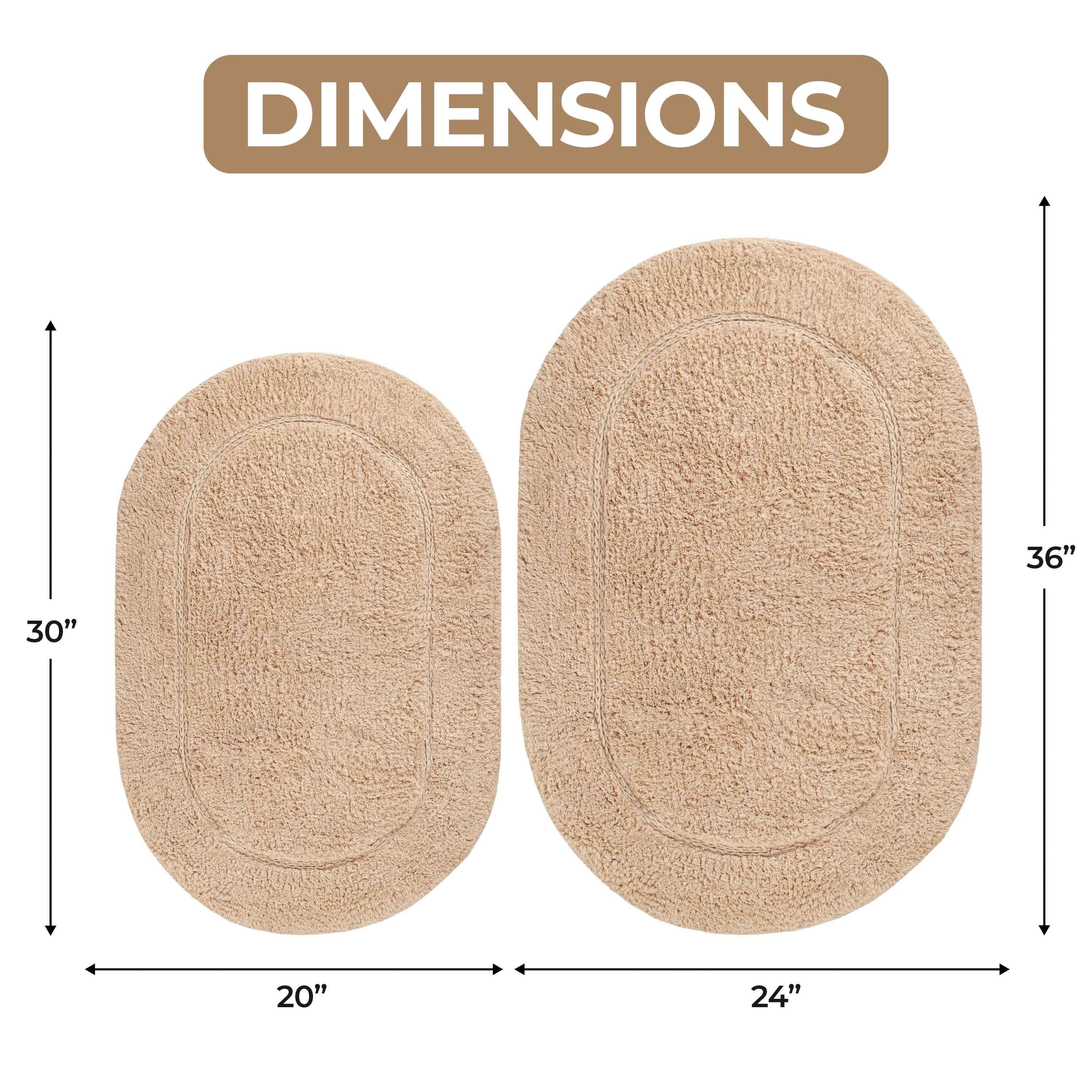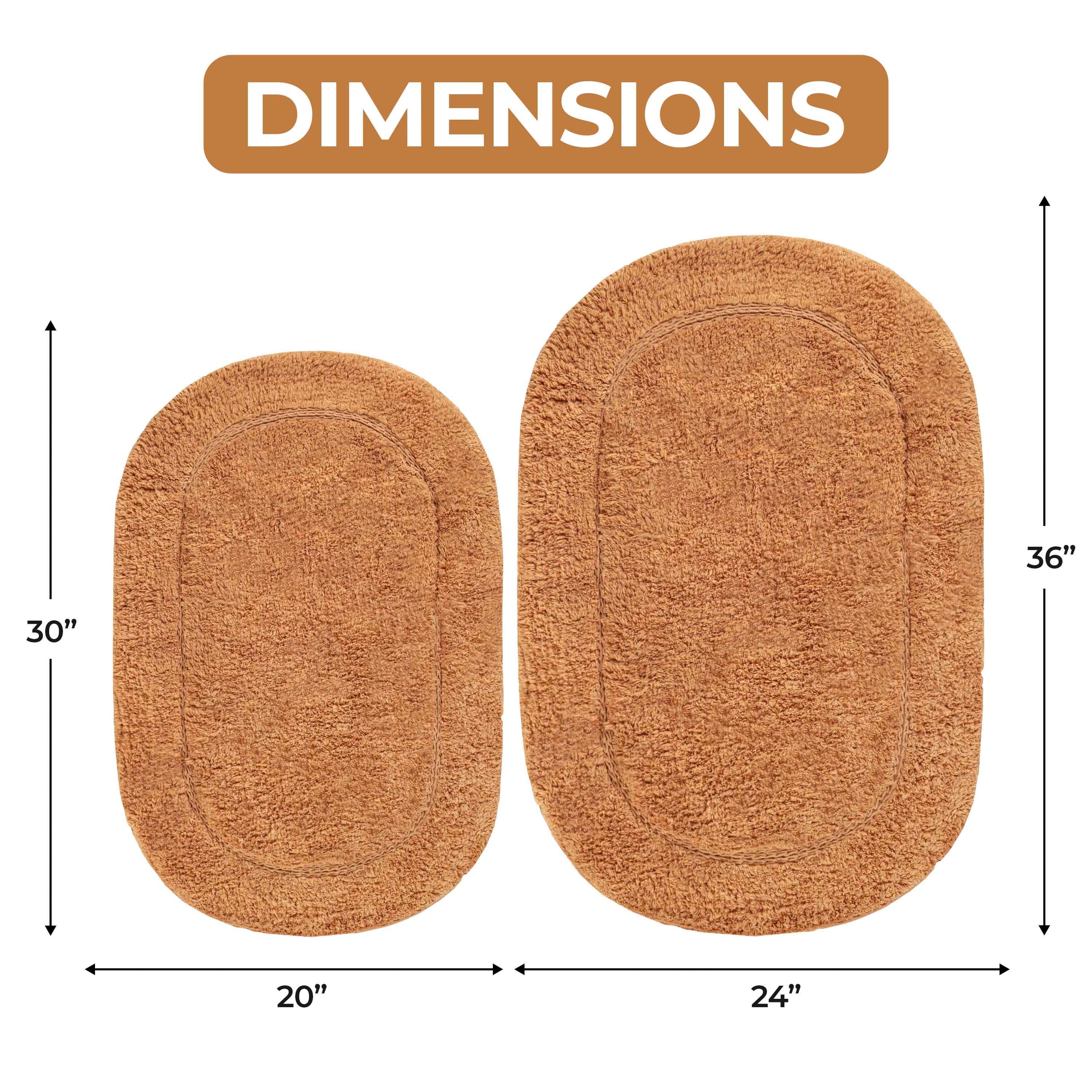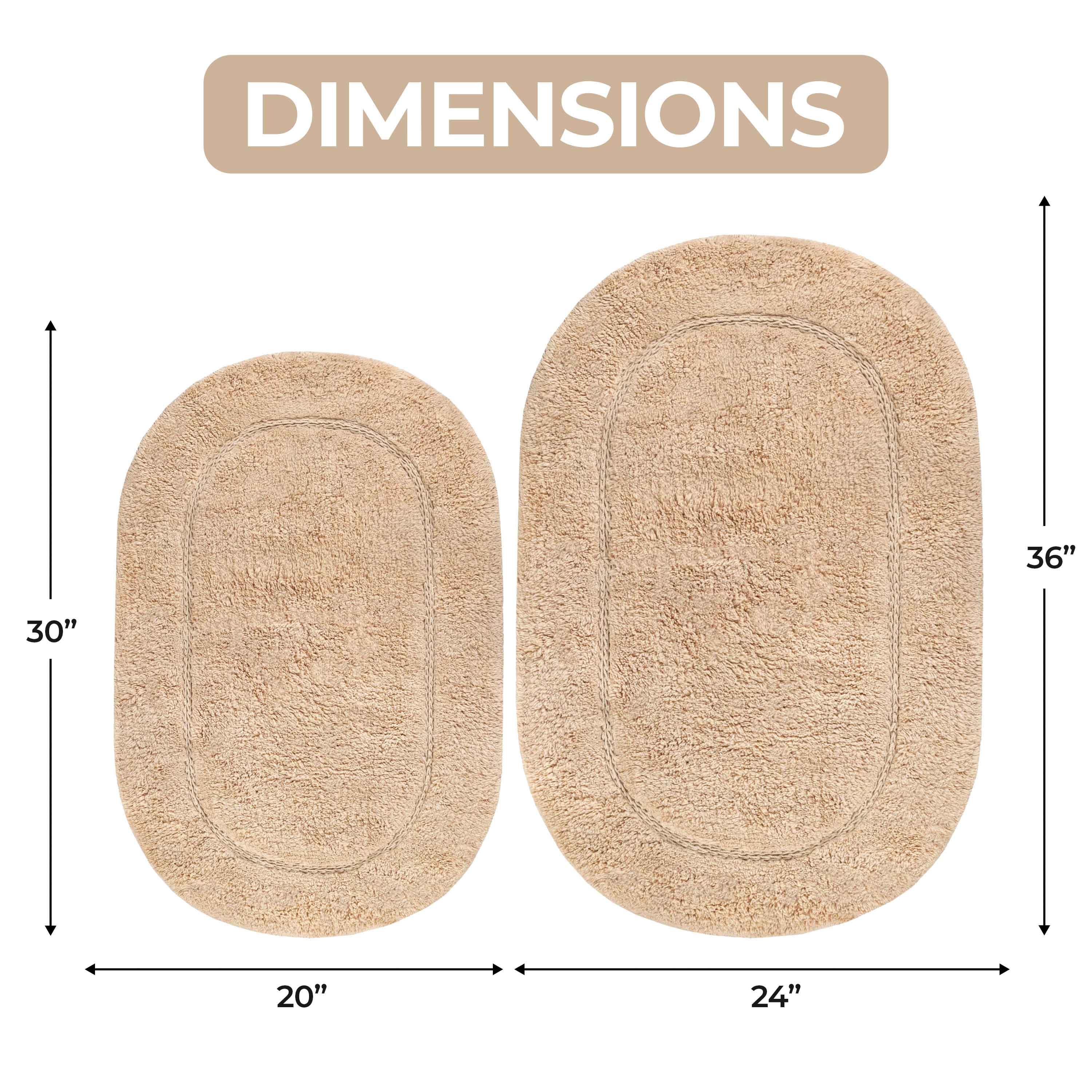 Upgrade your bathroom space with the Cotton Oval 2 Piece Bath Rug Set. Crafted from durable cotton fabric, this bath rug feels comfortable underfoot, giving you a spa-worthy experience. The non-slip latex backing keeps your rug from shifting or sliding. As an elegant accent, this oval bath rug features a solid border trim. Perfect for any shower space, the solid color design allows for easy pairing with a variety of bathroom decor styles. Available in two different sizes, place the larger rug outside your tub and the smaller rug in front of the sink for a tailored finish to your bathroom. This rug set is also OEKO-TEX certified, meaning it does not contain any harmful substances or chemicals, ensuring quality, comfort, and wellness.