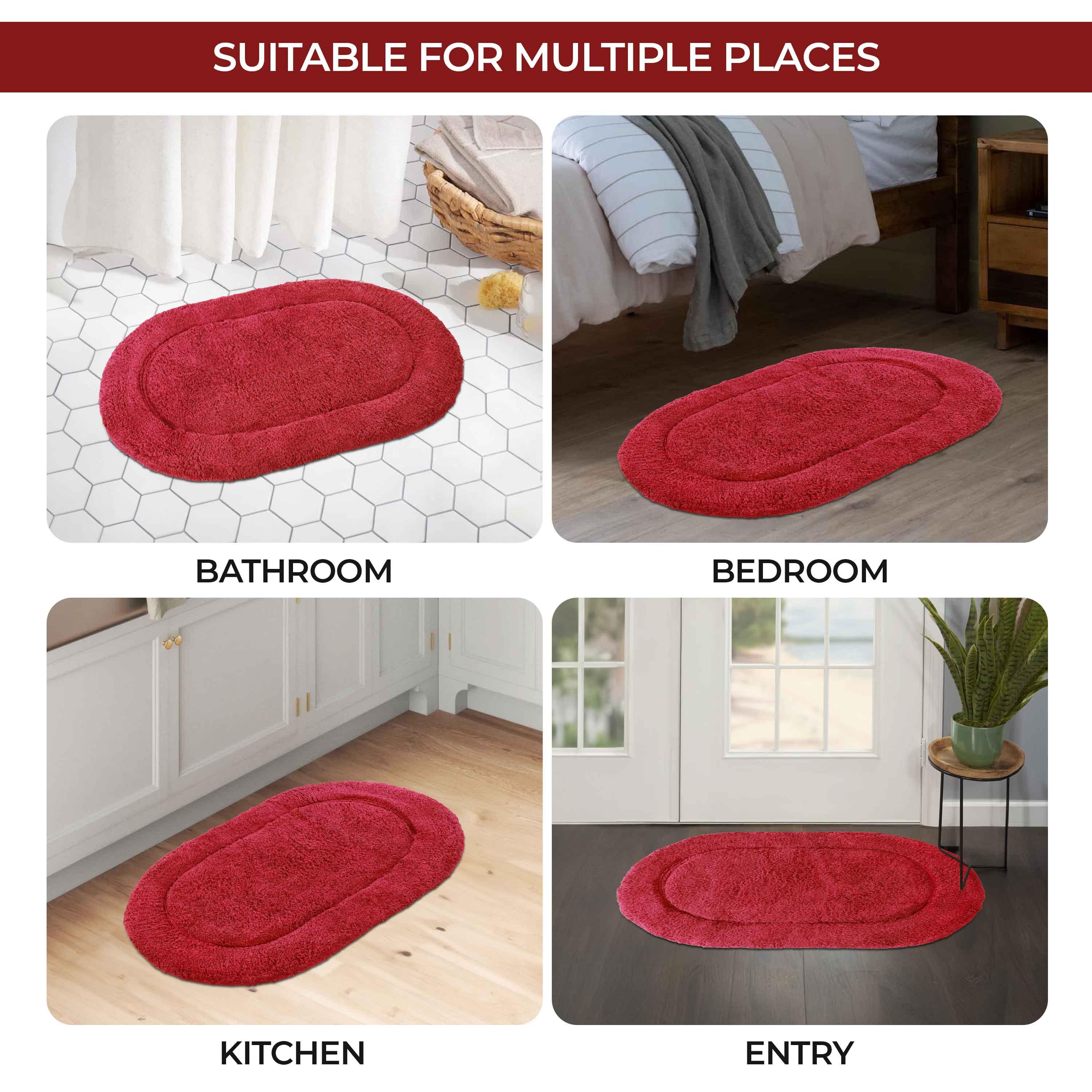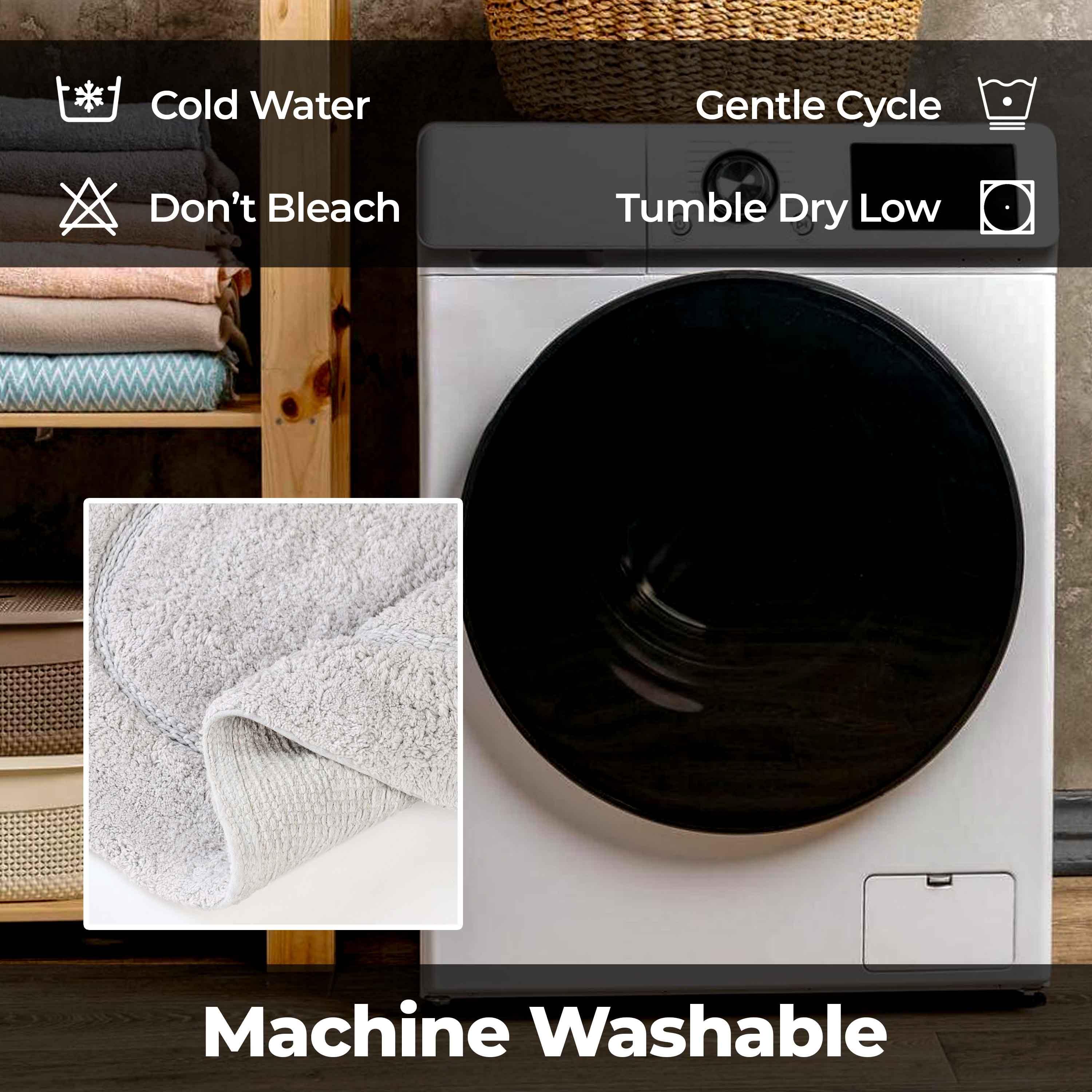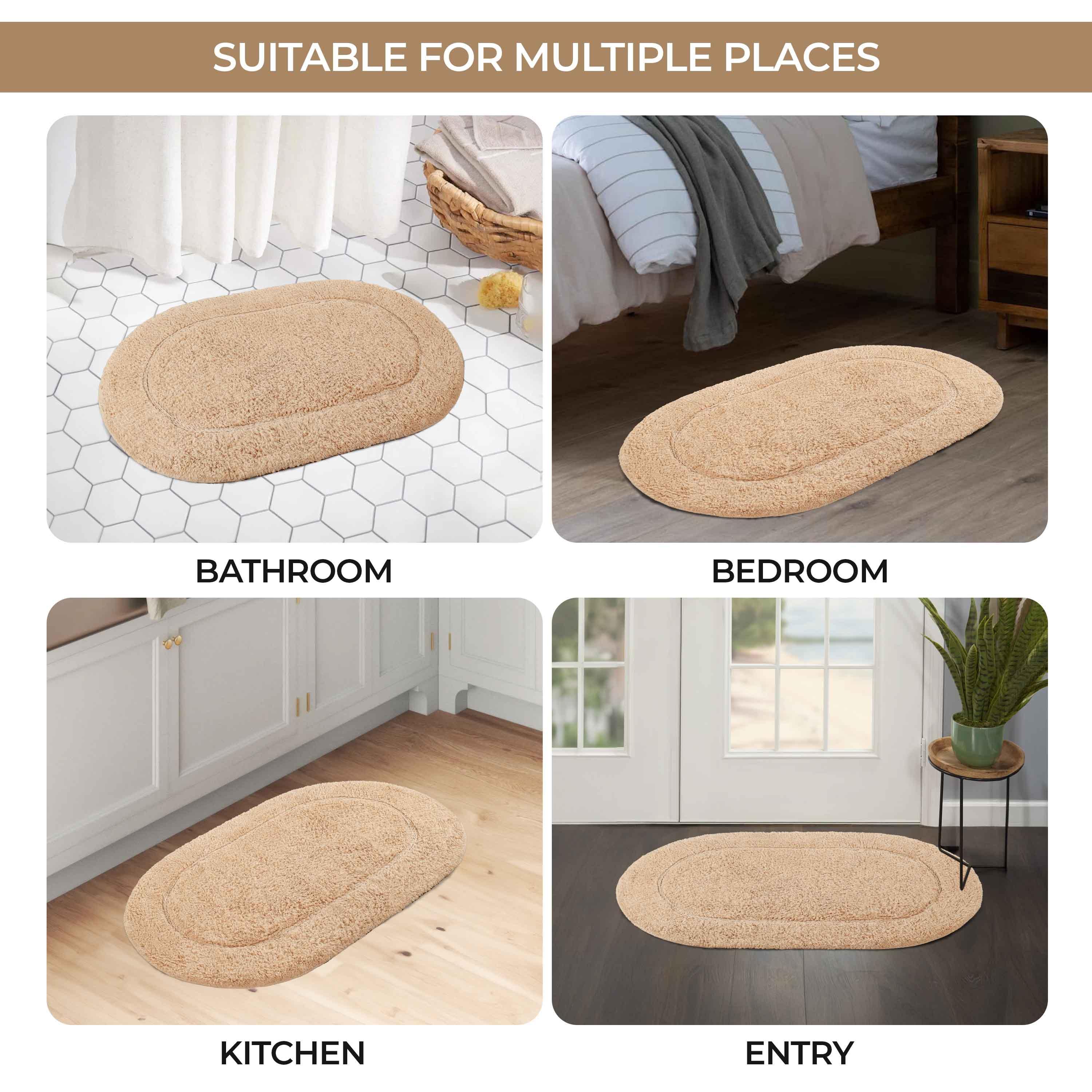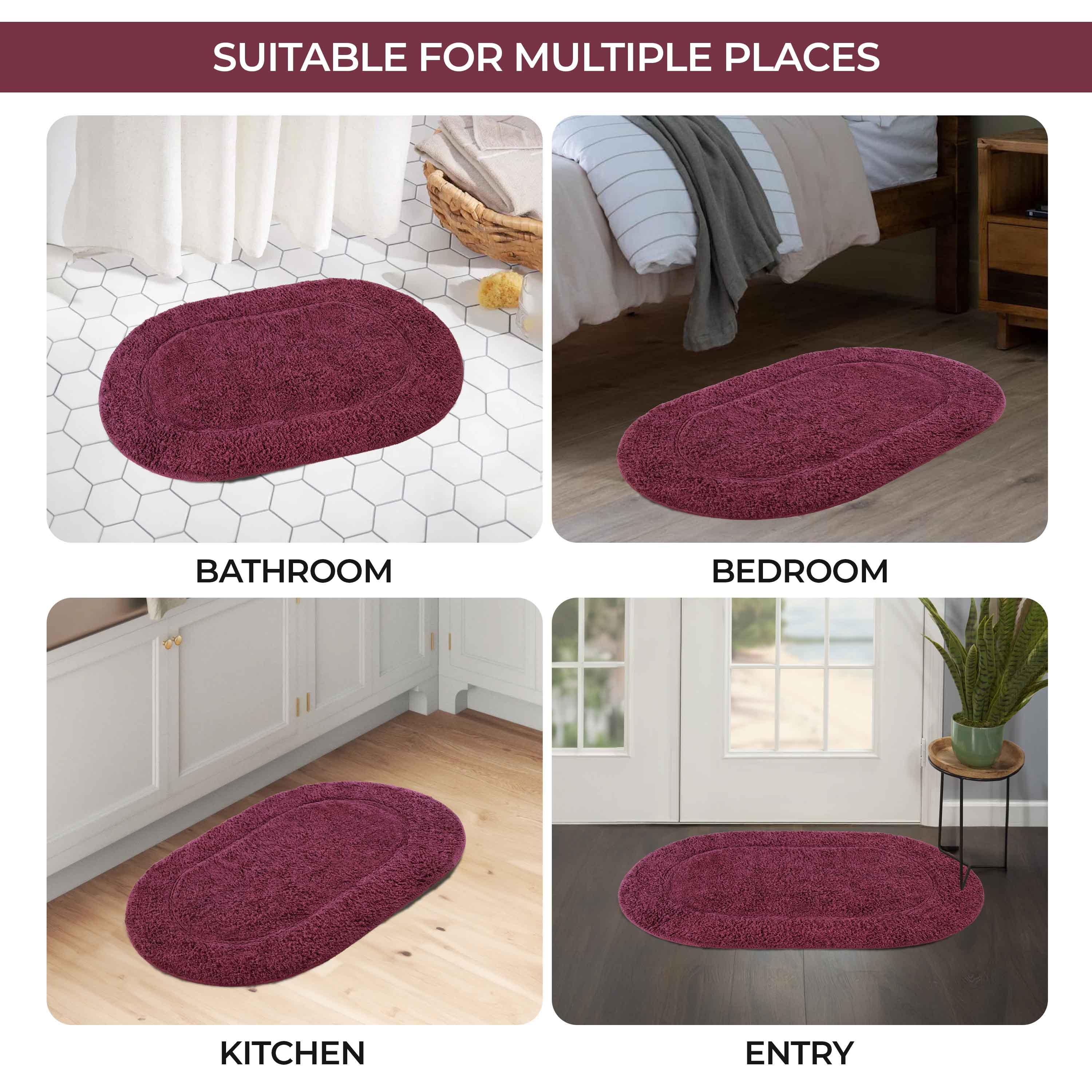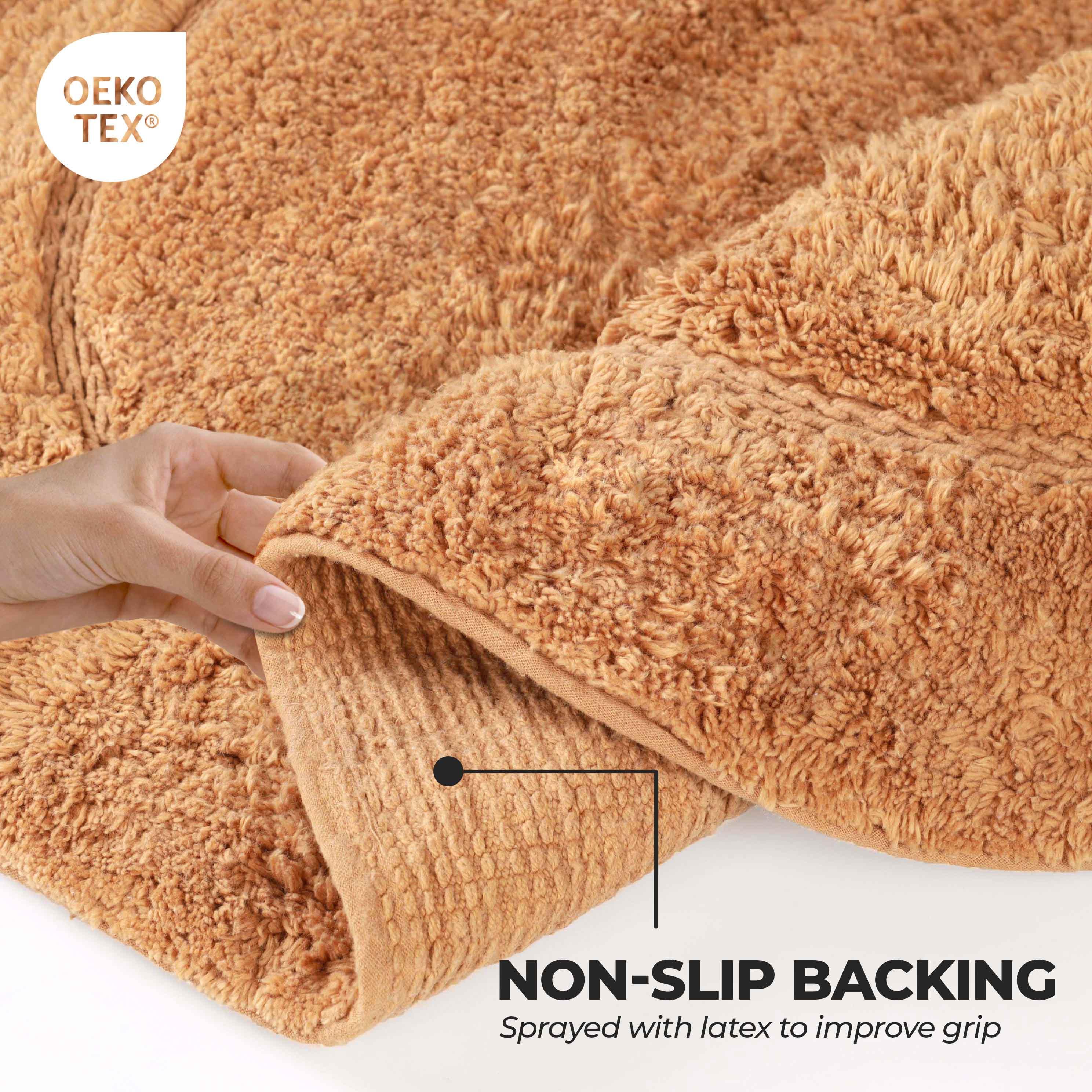 Upgrade your bathroom space with the Cotton Oval 2 Piece Bath Rug Set. Crafted from durable cotton fabric, this bath rug feels comfortable underfoot, giving you a spa-worthy experience. The non-slip latex backing keeps your rug from shifting or sliding. As an elegant accent, this oval bath rug features a solid border trim. Perfect for any shower space, the solid color design allows for easy pairing with a variety of bathroom decor styles. Available in two different sizes, place the larger rug outside your tub and the smaller rug in front of the sink for a tailored finish to your bathroom. This rug set is also OEKO-TEX certified, meaning it does not contain any harmful substances or chemicals, ensuring quality, comfort, and wellness.
