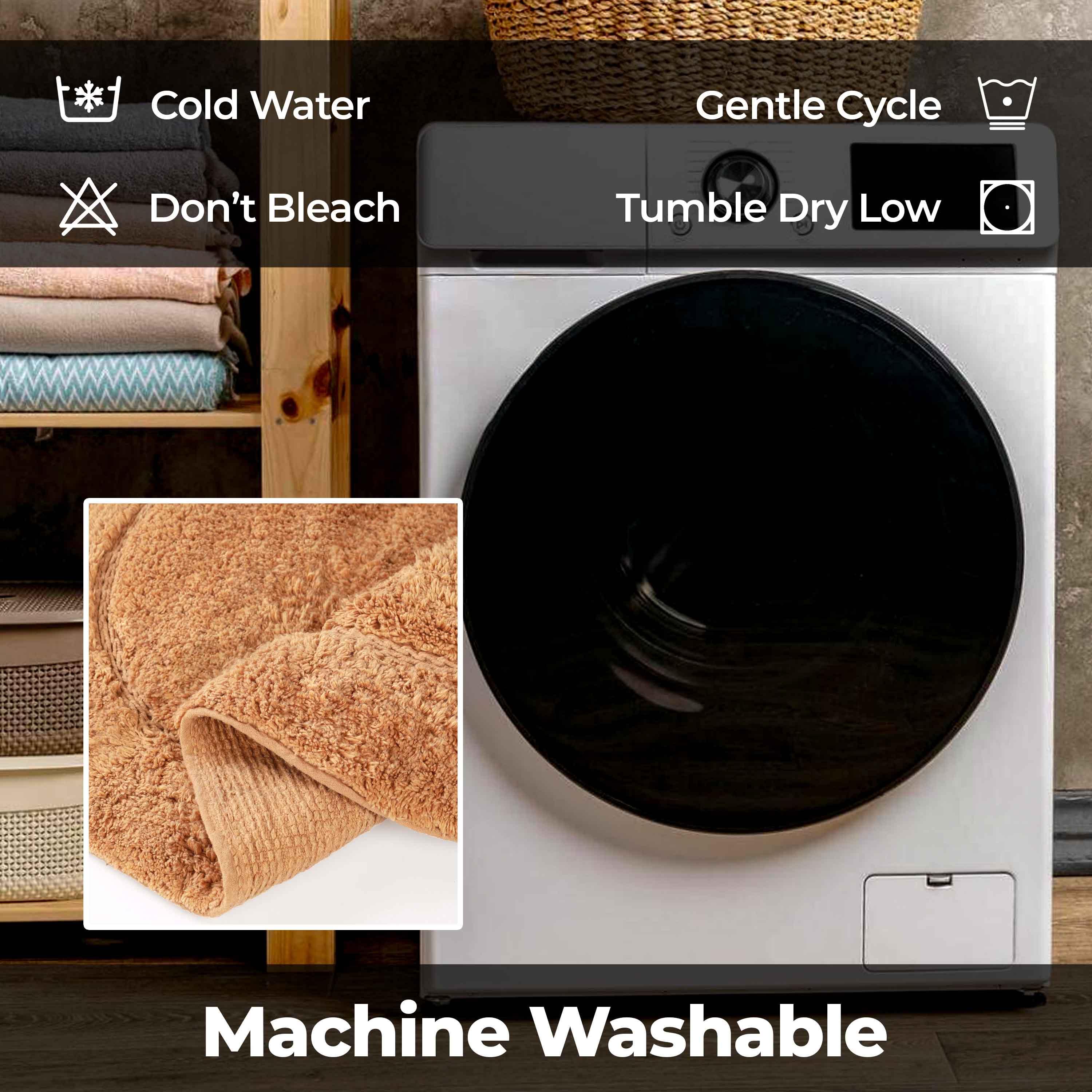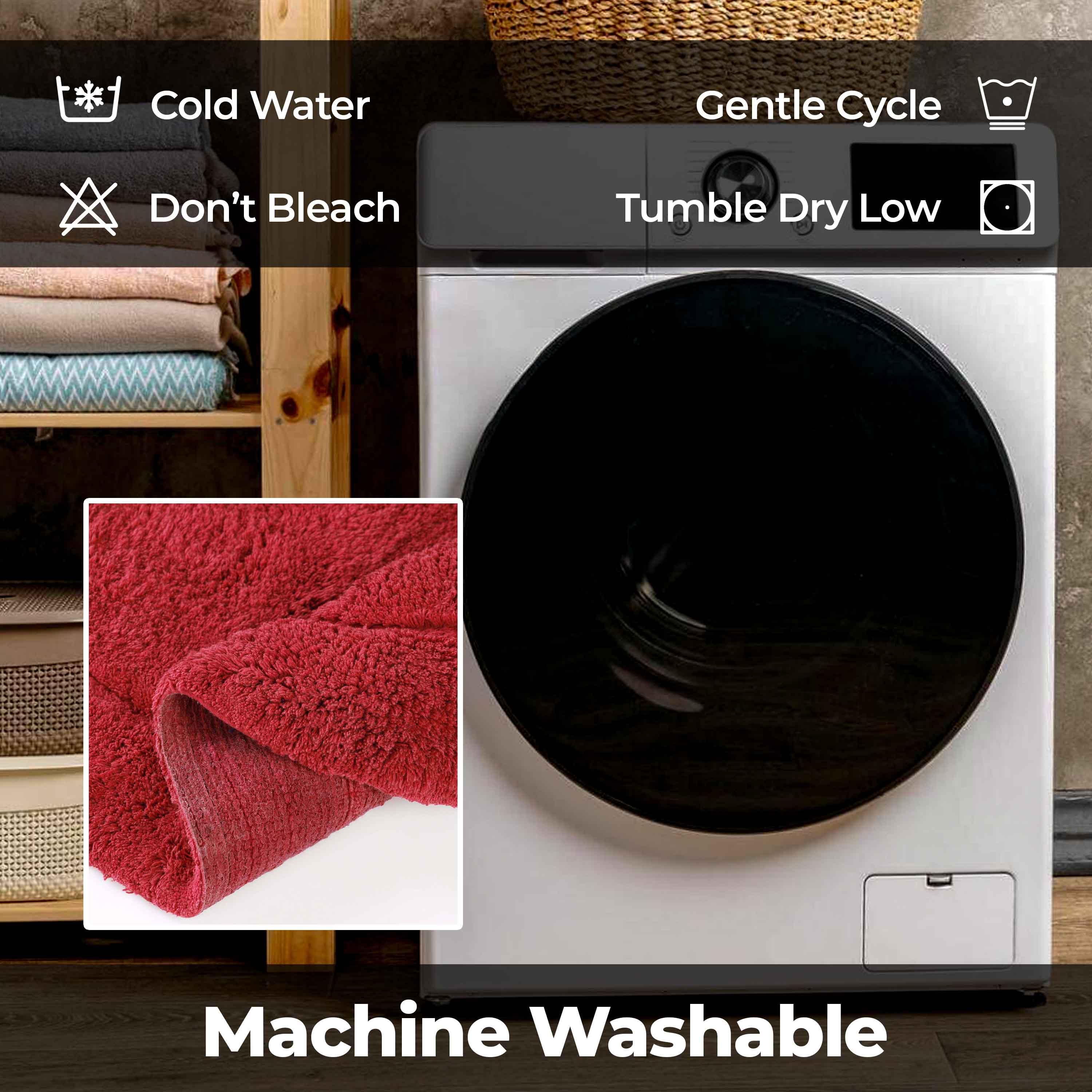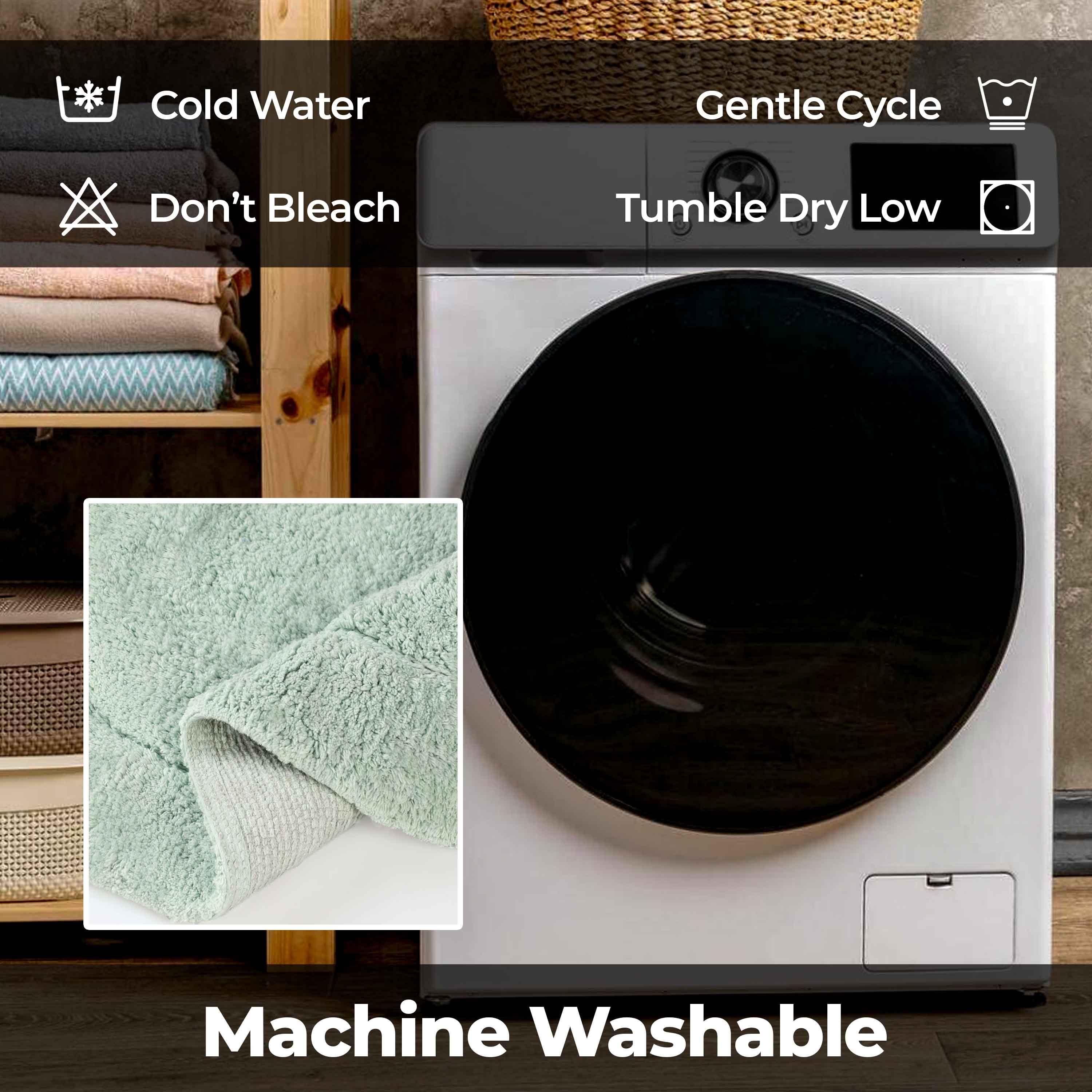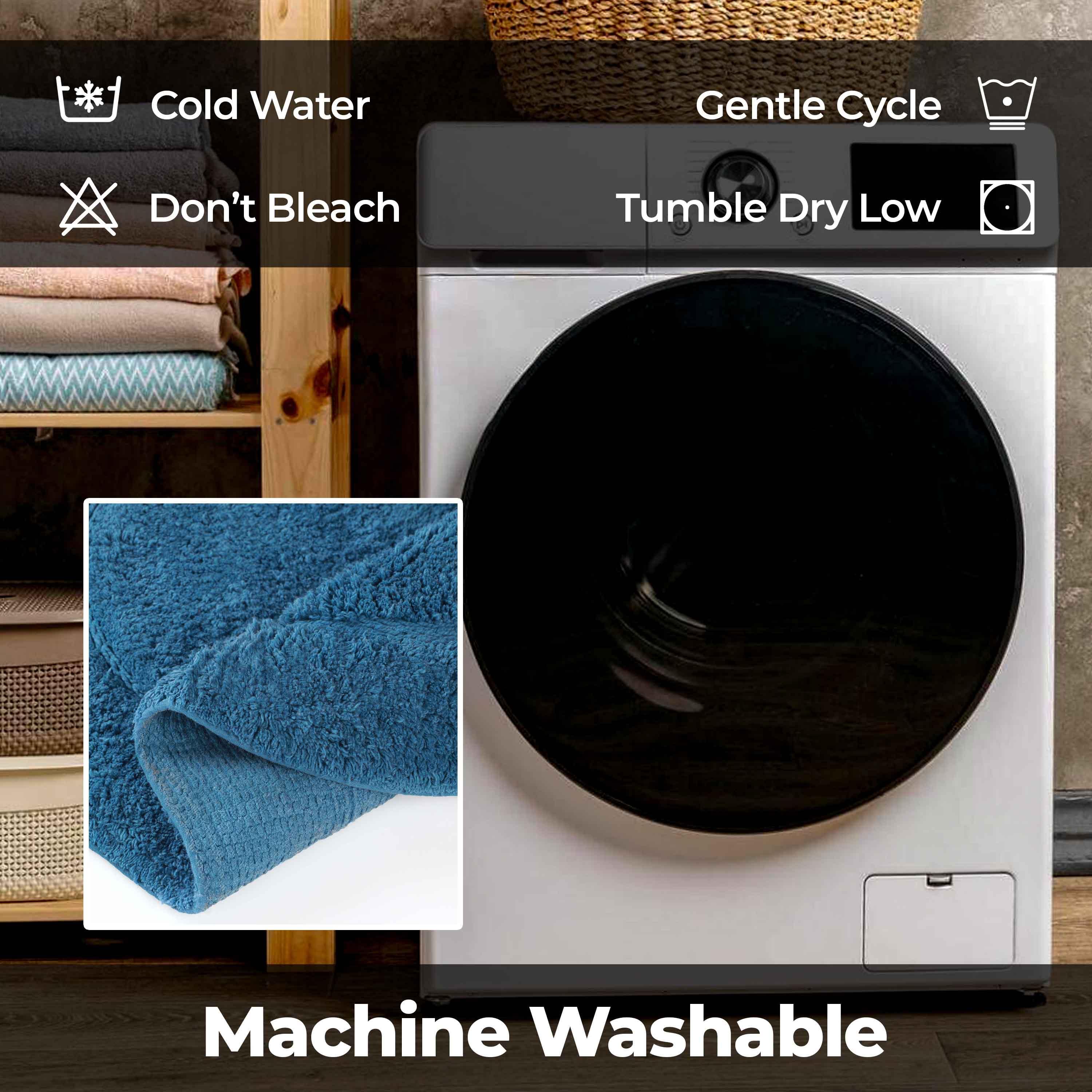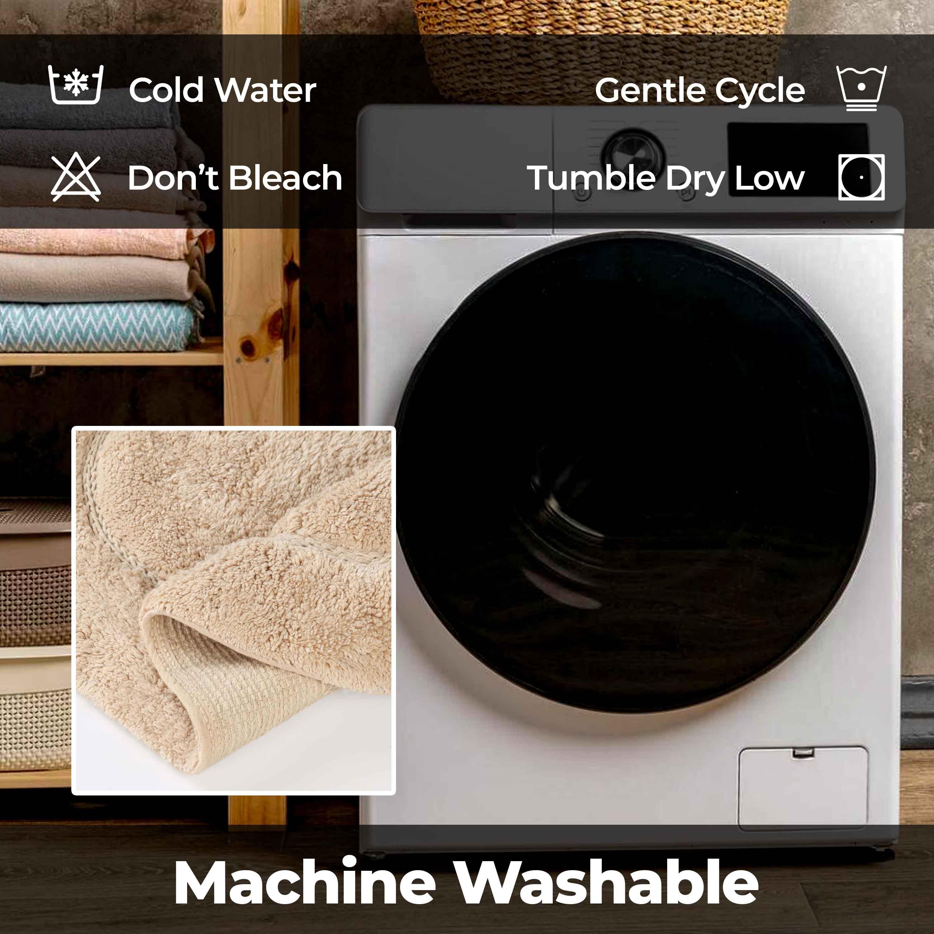 Upgrade your bathroom space with the Cotton Oval 2 Piece Bath Rug Set. Crafted from durable cotton fabric, this bath rug feels comfortable underfoot, giving you a spa-worthy experience. The non-slip latex backing keeps your rug from shifting or sliding. As an elegant accent, this oval bath rug features a solid border trim. Perfect for any shower space, the solid color design allows for easy pairing with a variety of bathroom decor styles. Available in two different sizes, place the larger rug outside your tub and the smaller rug in front of the sink for a tailored finish to your bathroom. This rug set is also OEKO-TEX certified, meaning it does not contain any harmful substances or chemicals, ensuring quality, comfort, and wellness.