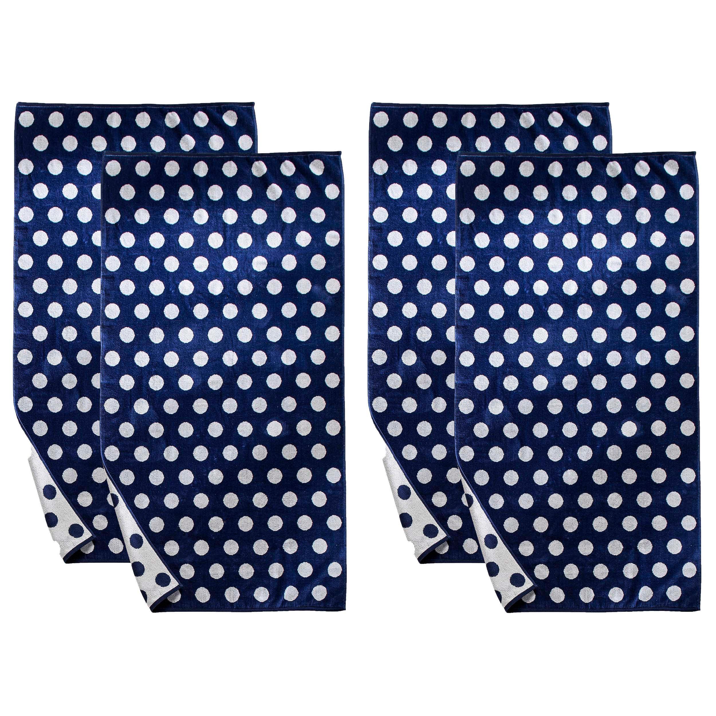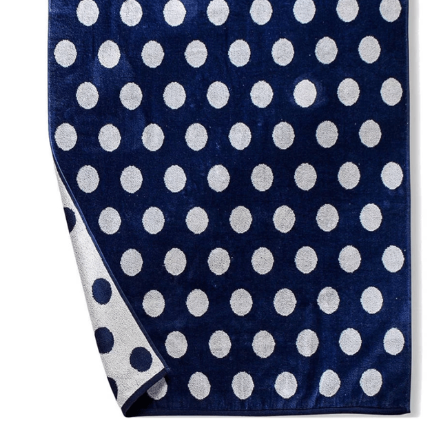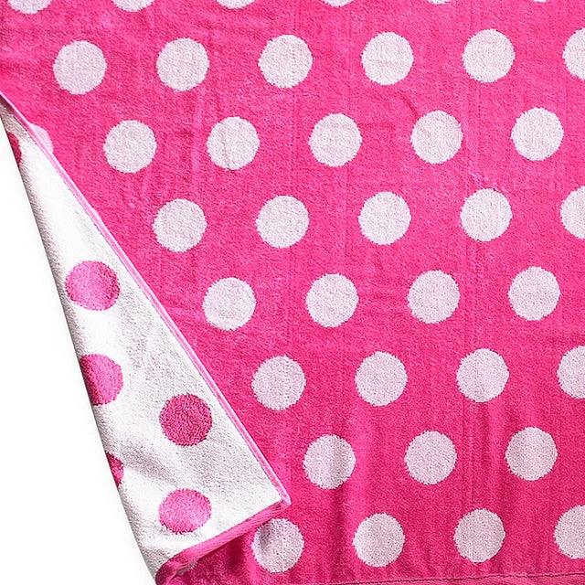 Crafted from cotton, this beach towel features a whimsical pink polka dot design. This beach towel is softer and more durable than standard cotton beach towels with its absorbent terry loops on one side and a soft sheared velour on the other. This beach towel is the perfect summer essential for drying off and lounging in the sun.