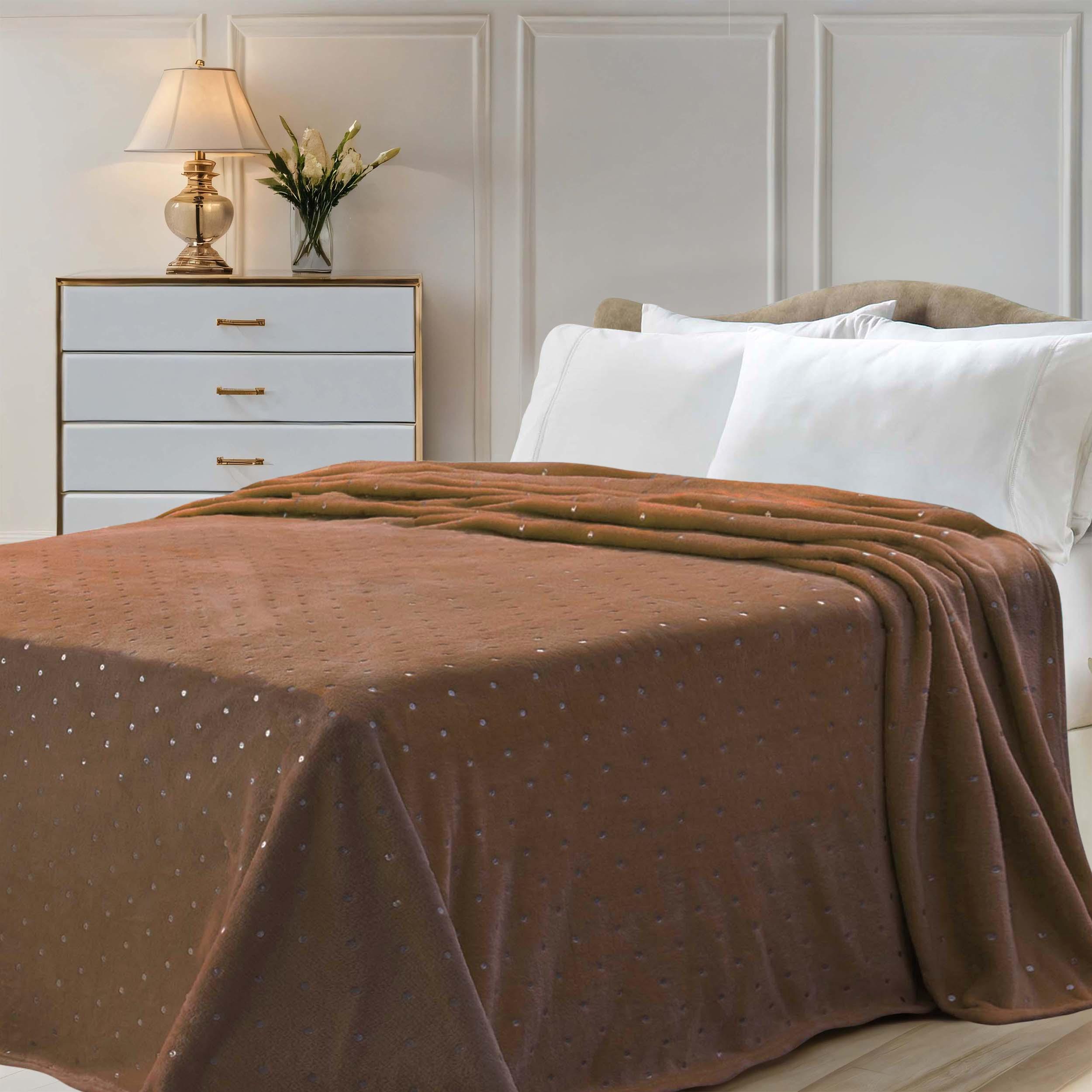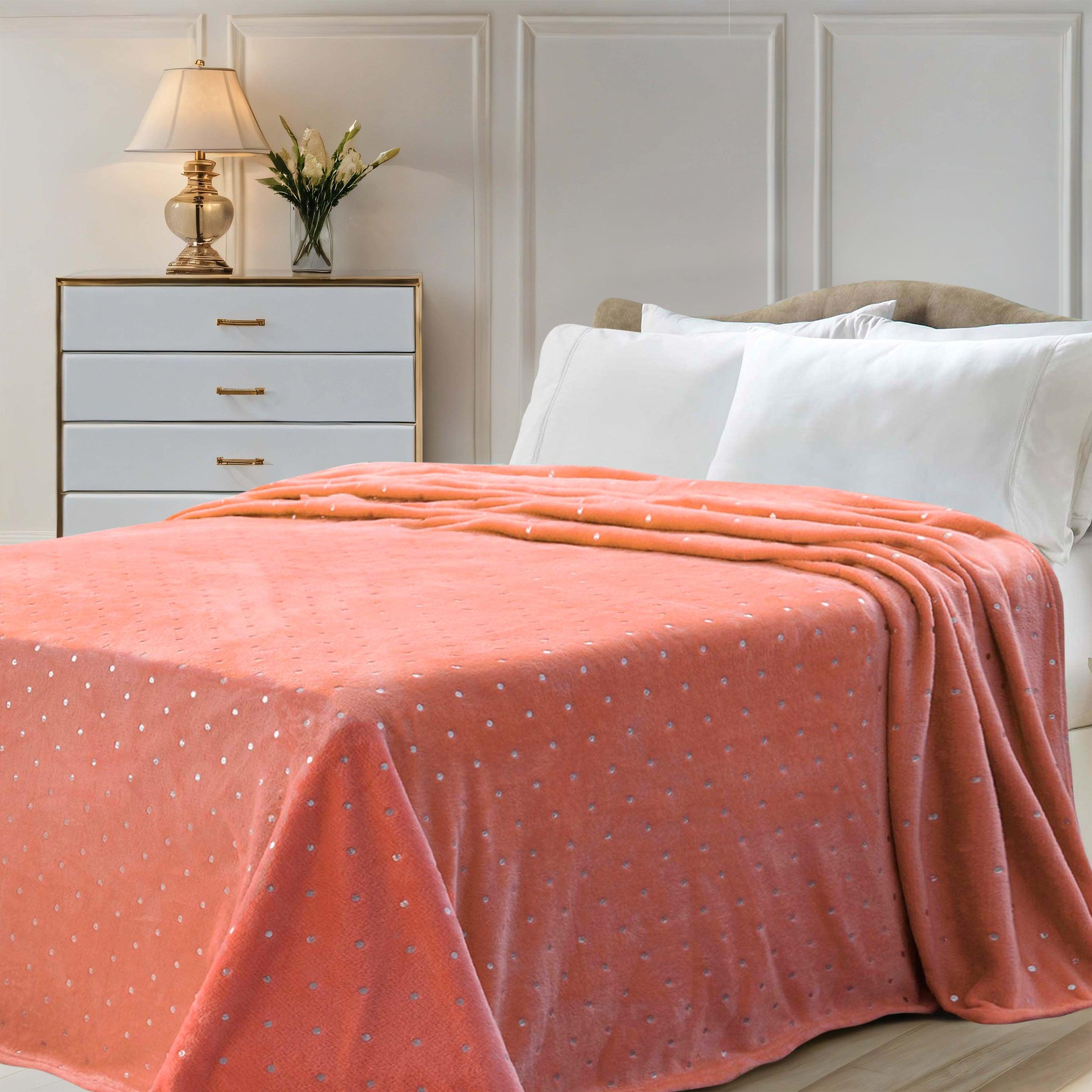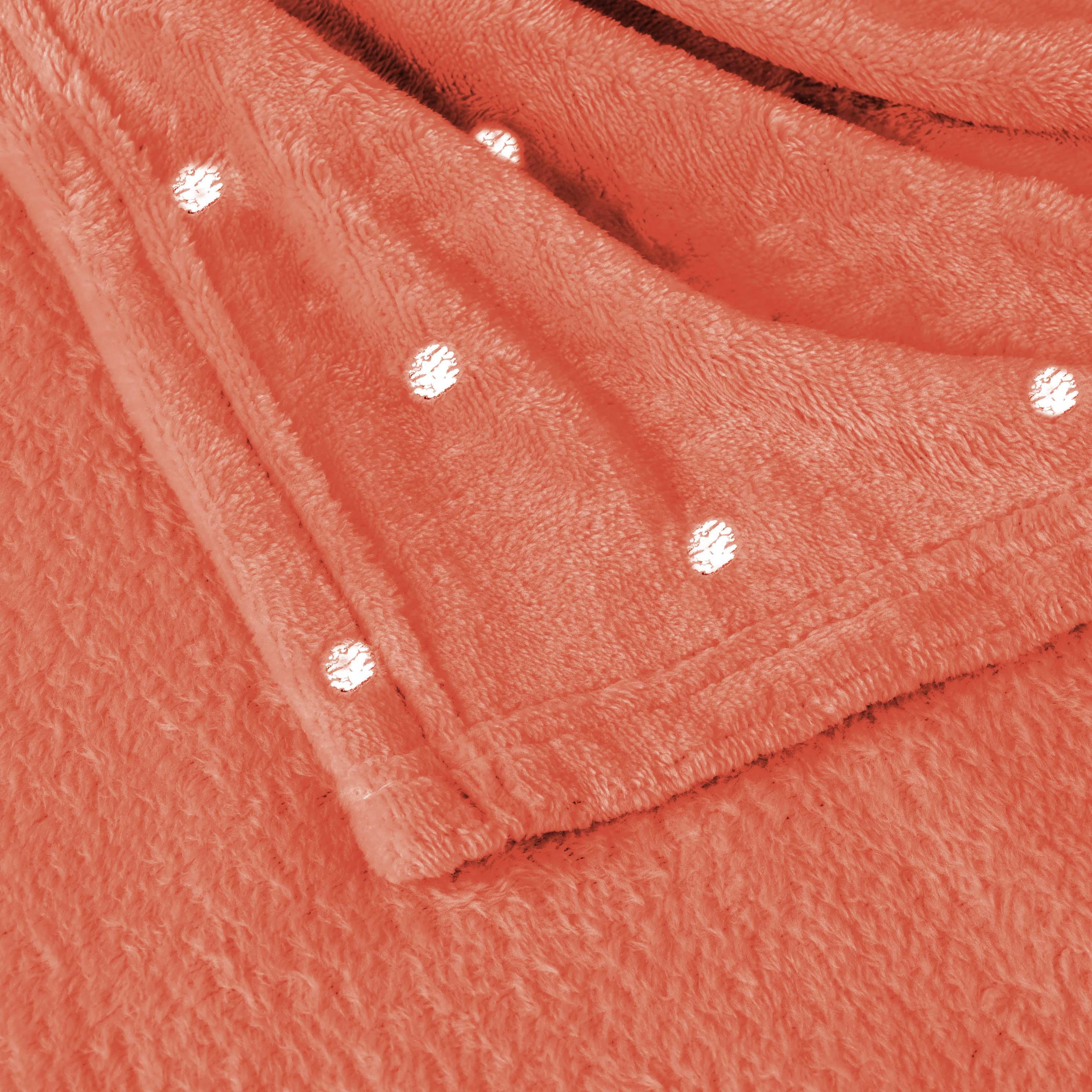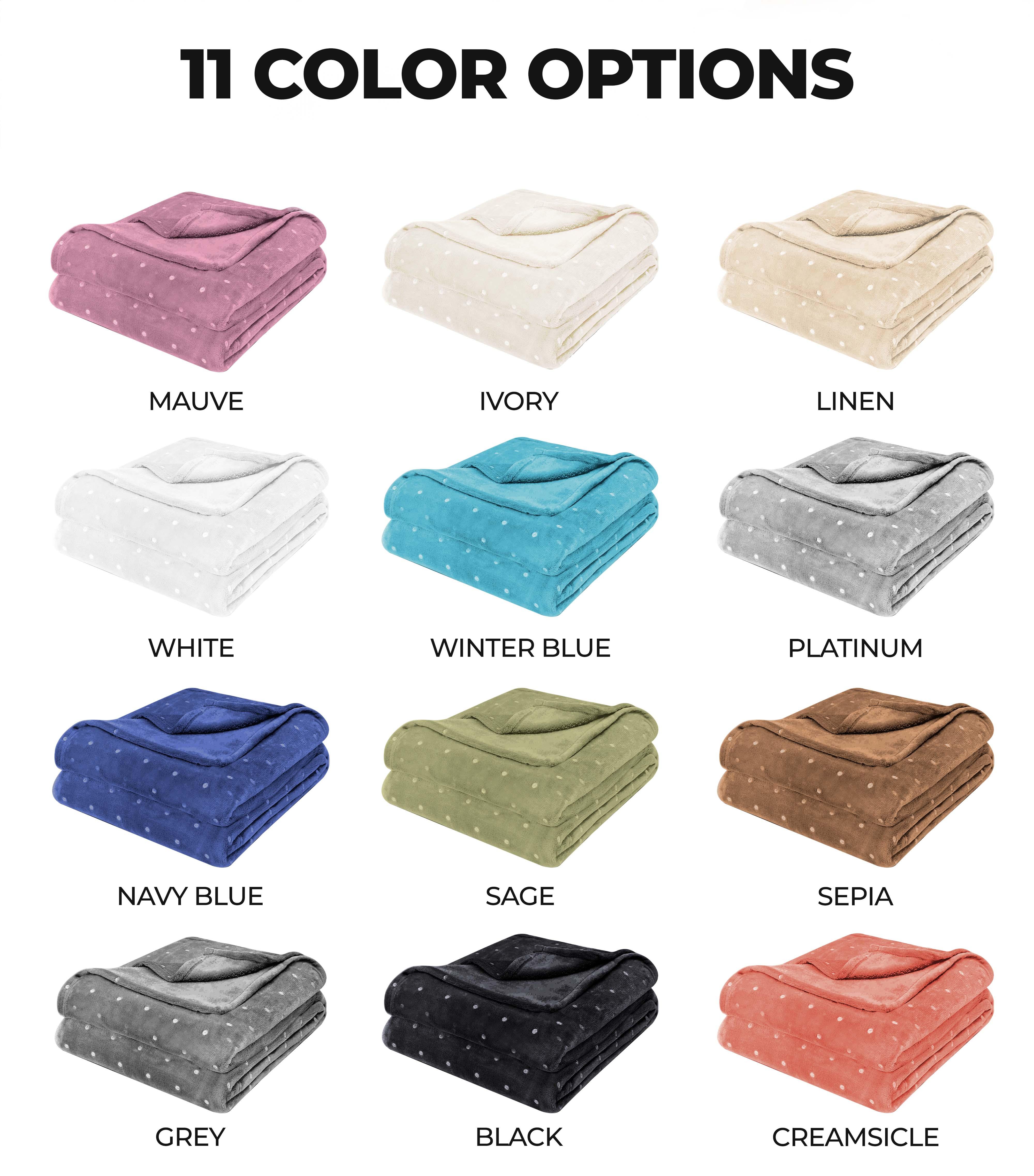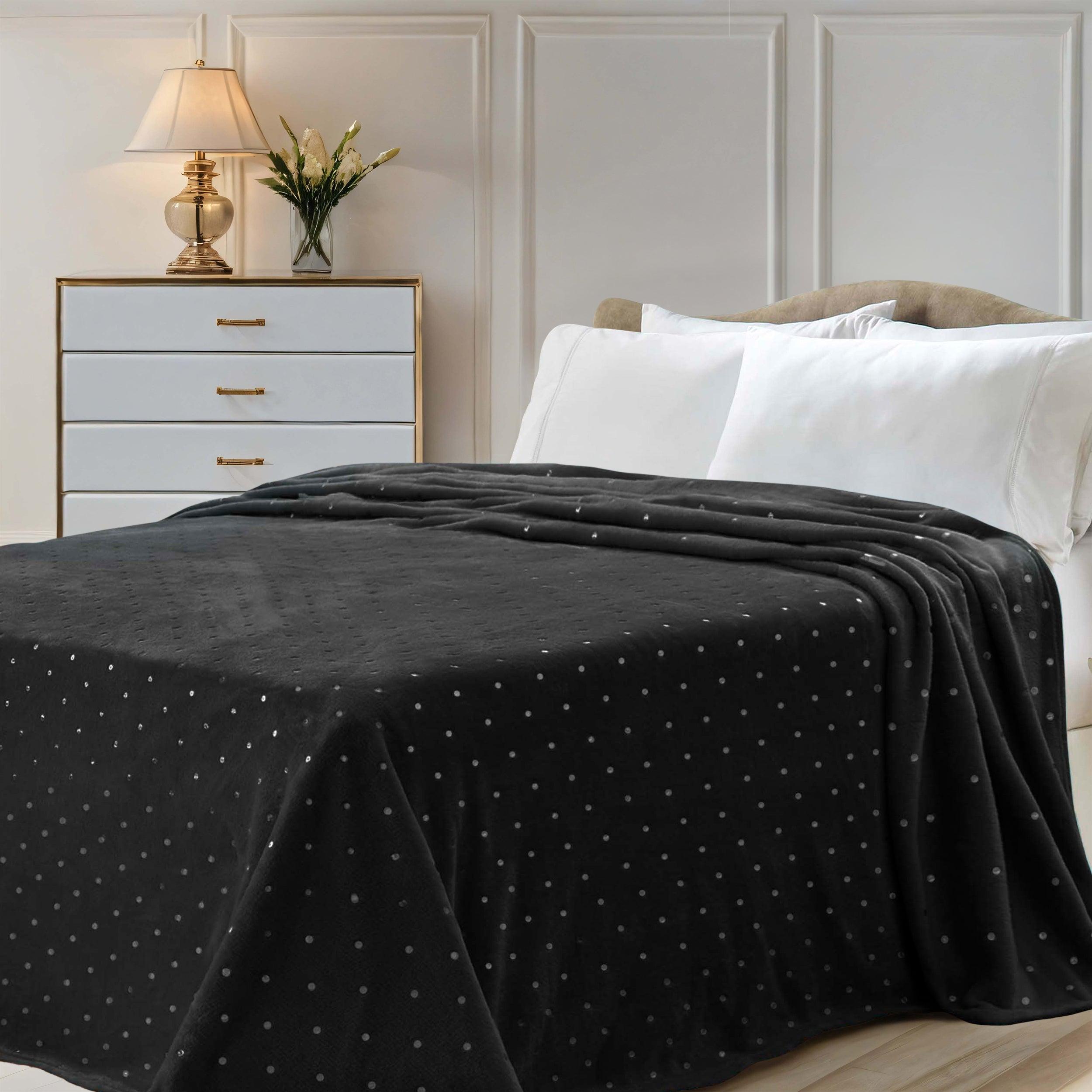 Introduce glamour and exceptional softness to your bedroom with our Fleece Plush Blanket. Enjoy the soft feel of the fluffy microfiber fleece in your choice of a polka dot or solid design. This blanket features reinforced edges for a clean look, added durability and resists shedding and fading. This classic blanket provides just the right amount of warmth any time of year. Available in your favorite colors and sizes, this blanket is just as beautiful draped over a couch or at the end of your bed.
