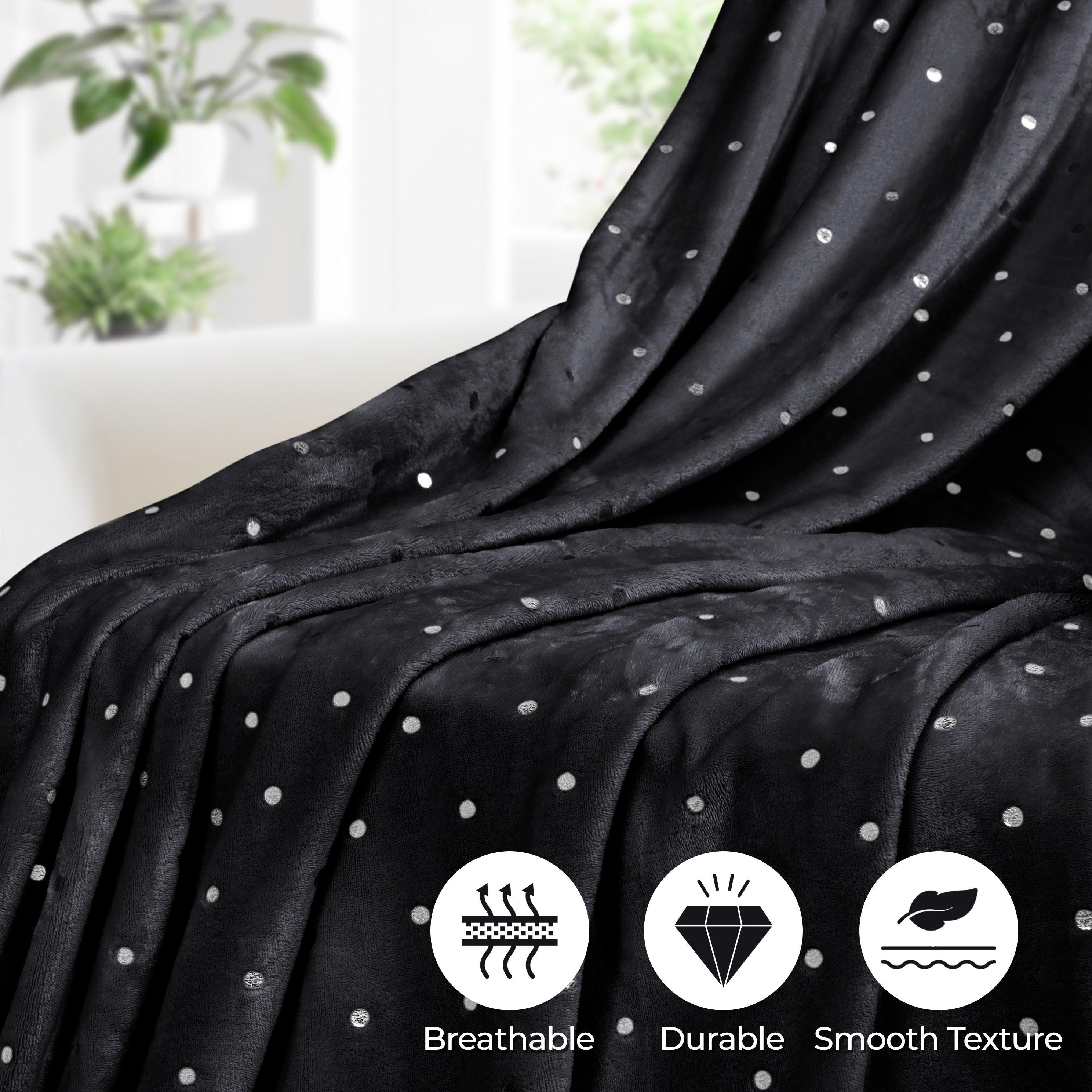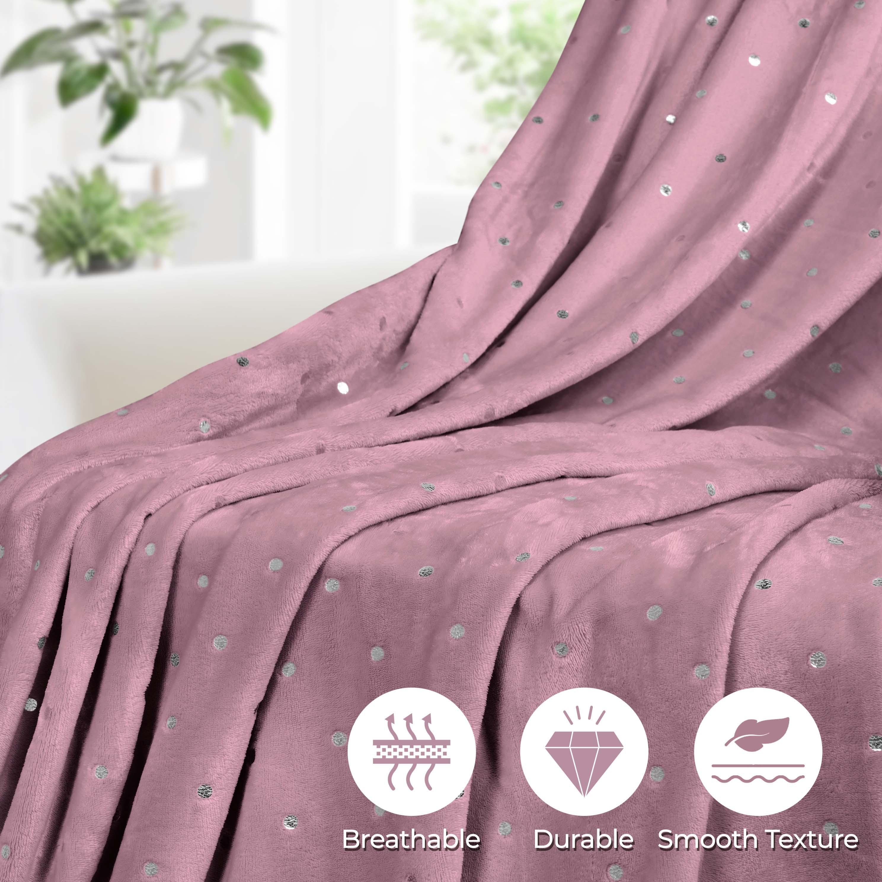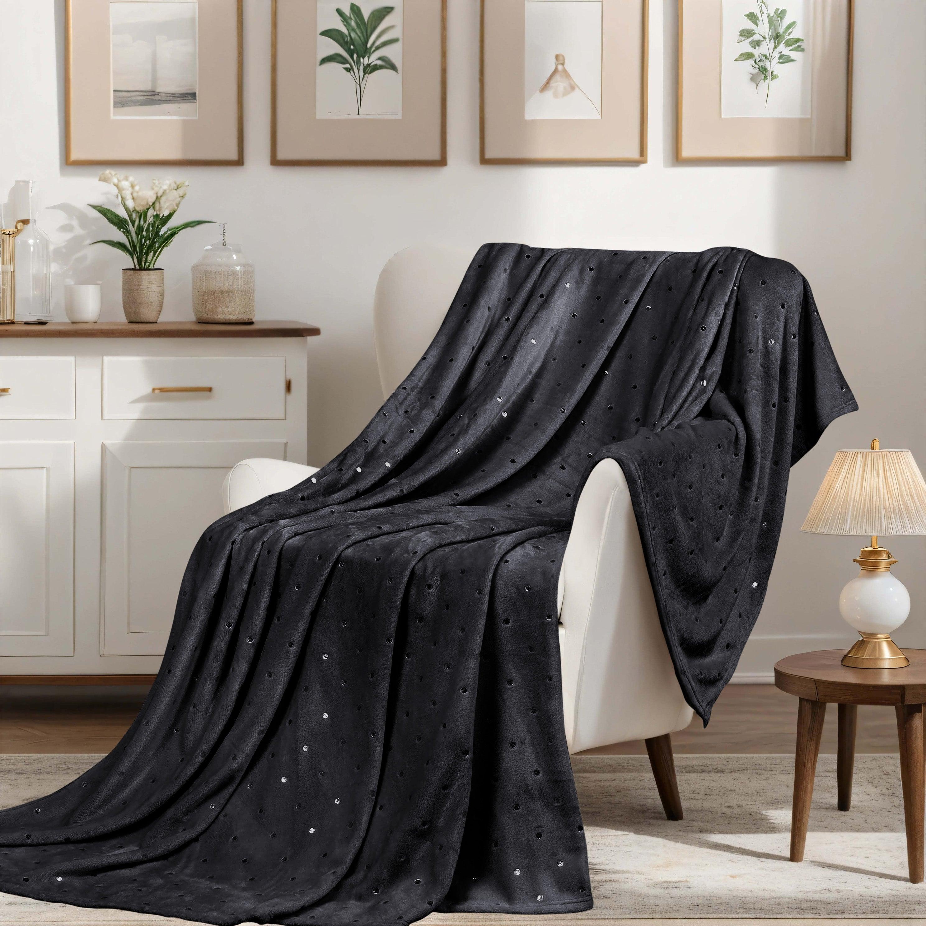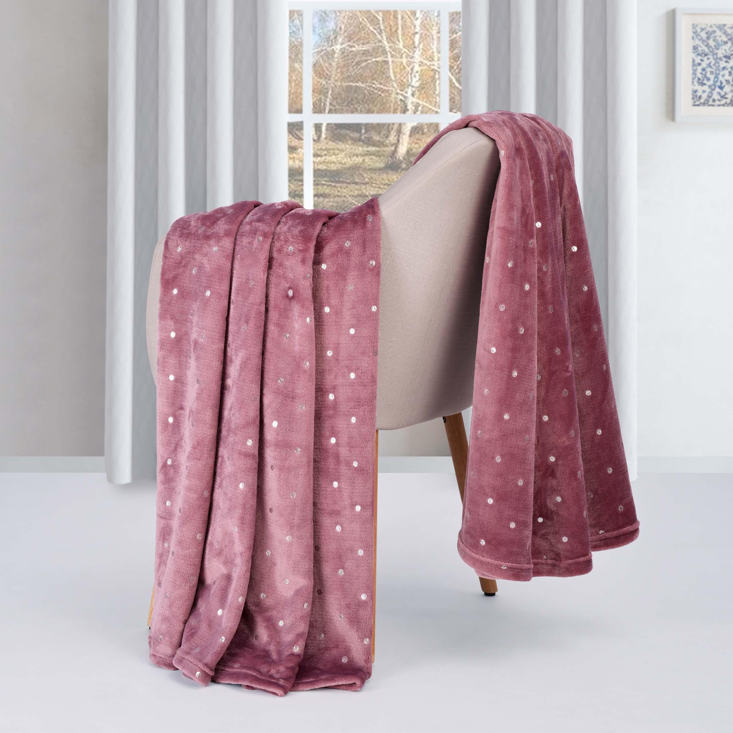 Introduce glamour and exceptional softness to your bedroom with our Fleece Plush Blanket. Enjoy the soft feel of the fluffy microfiber fleece in your choice of a polka dot or solid design. This blanket features reinforced edges for a clean look, added durability and resists shedding and fading. This classic blanket provides just the right amount of warmth any time of year. Available in your favorite colors and sizes, this blanket is just as beautiful draped over a couch or at the end of your bed.