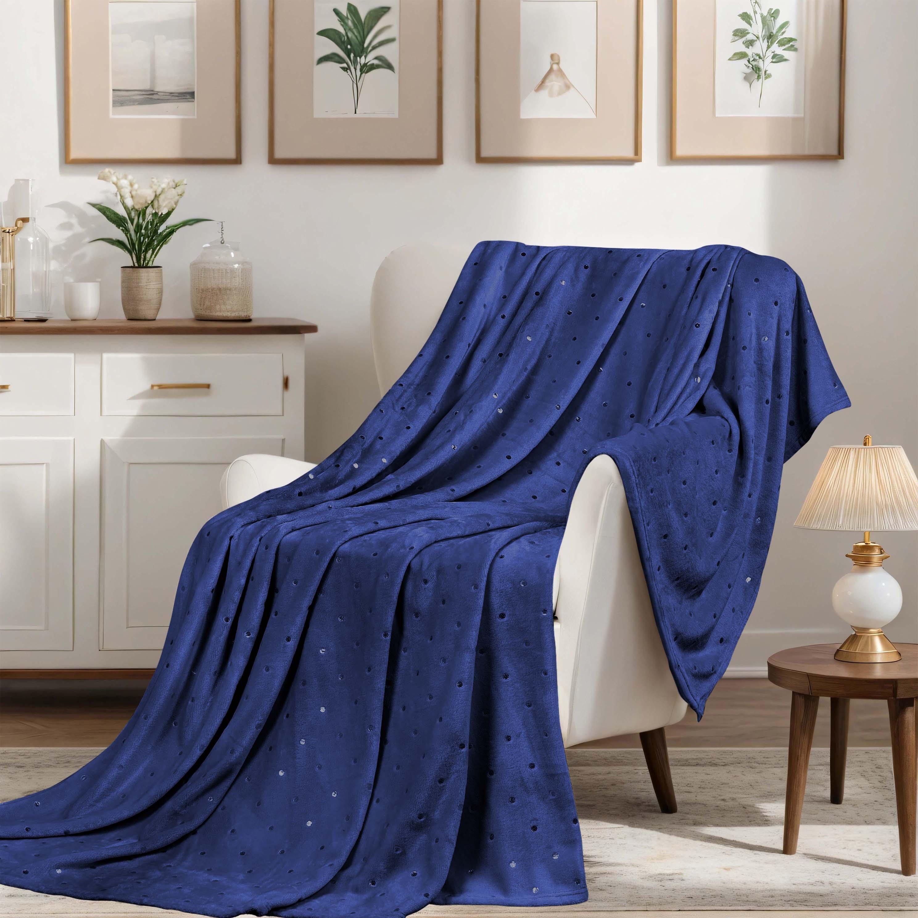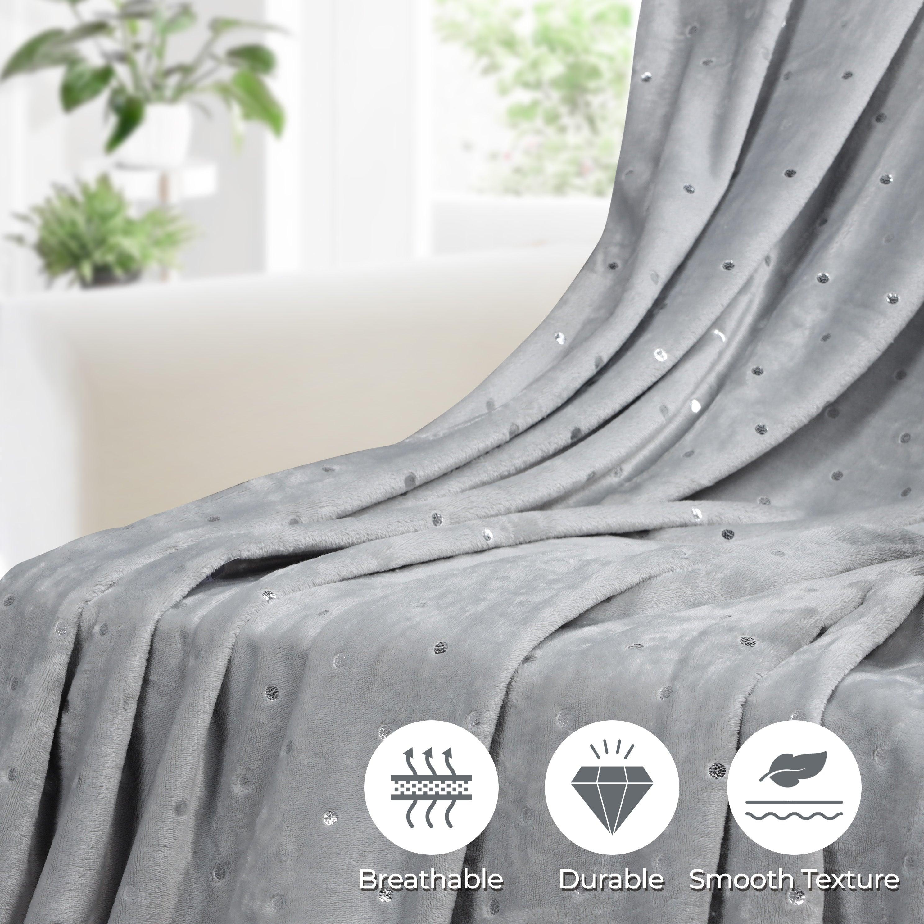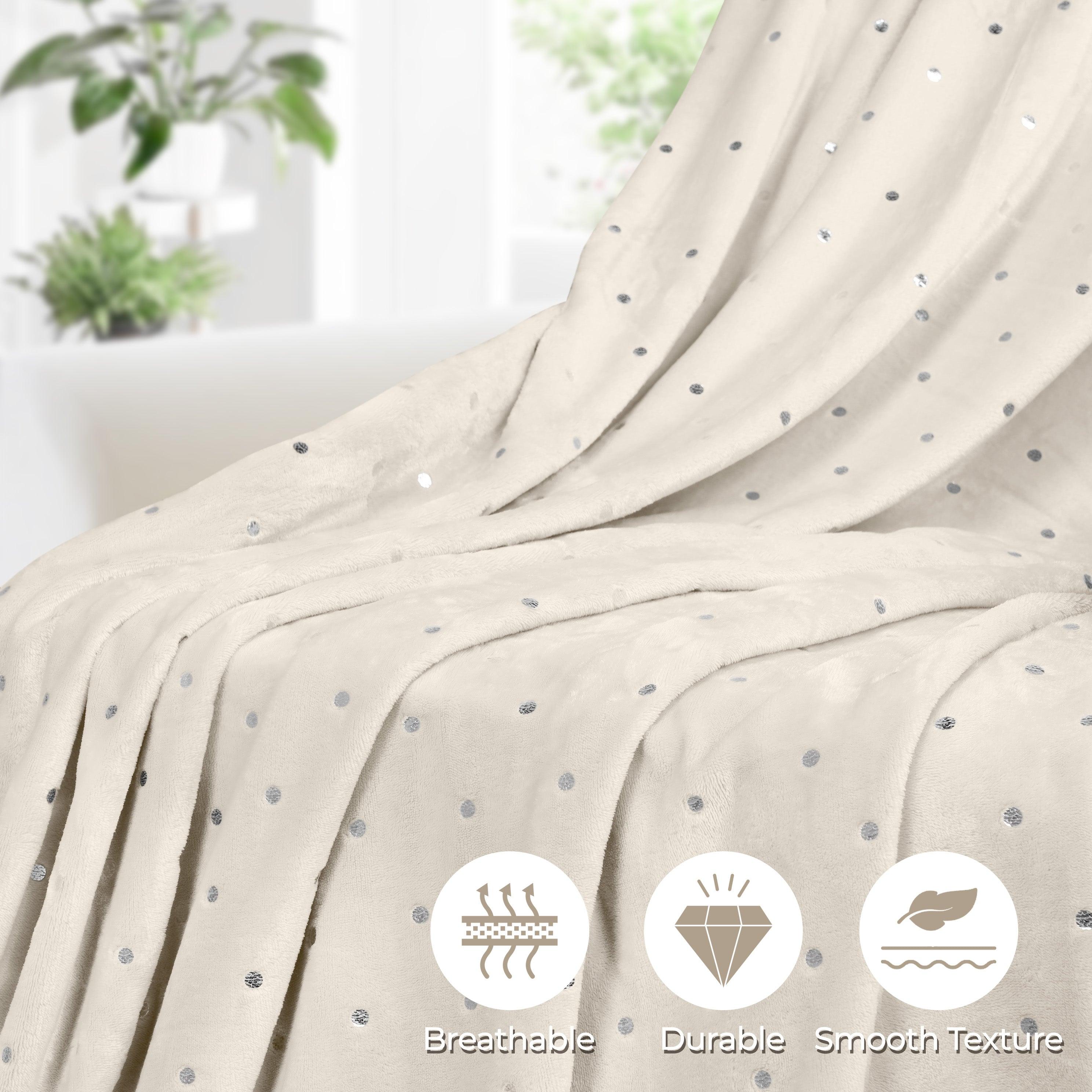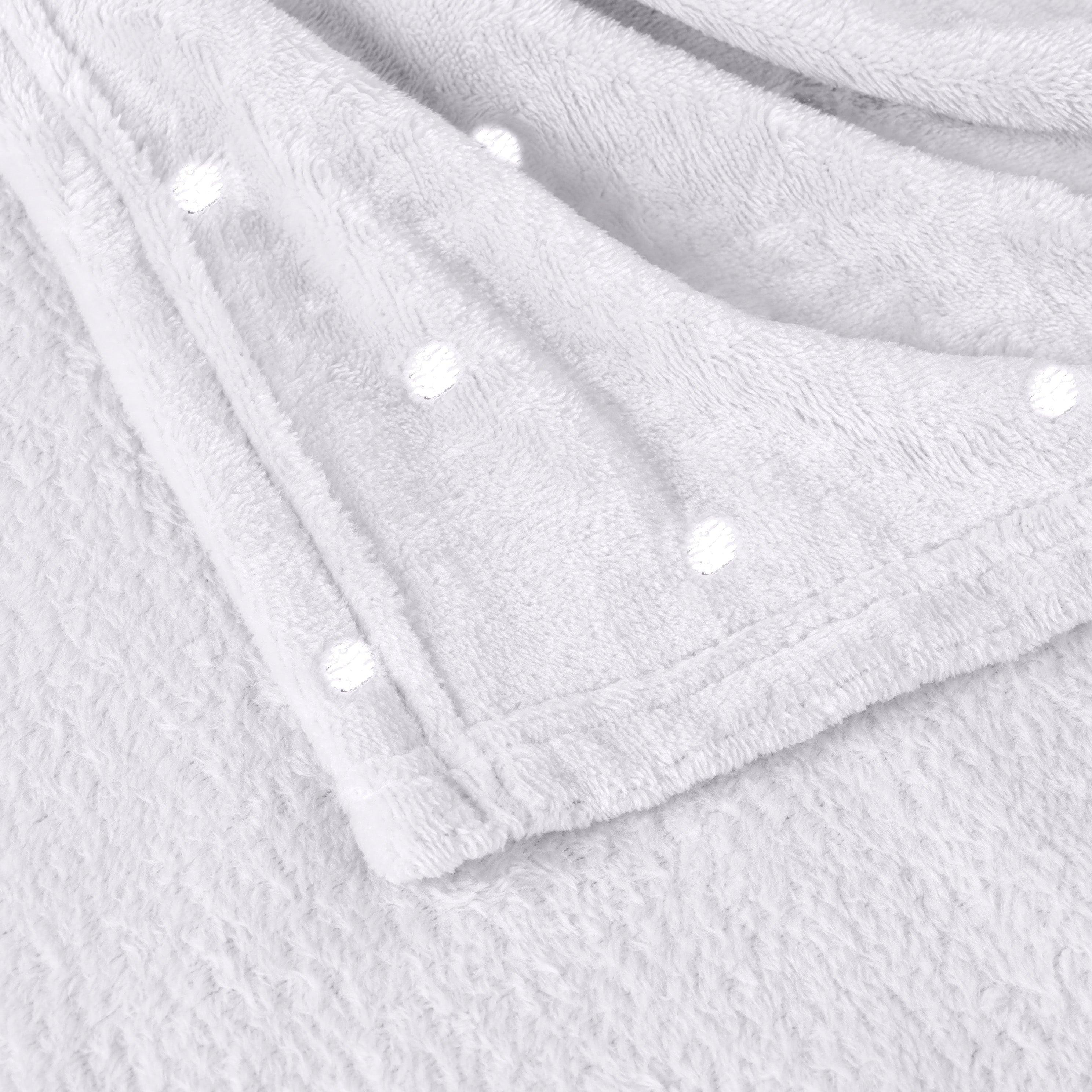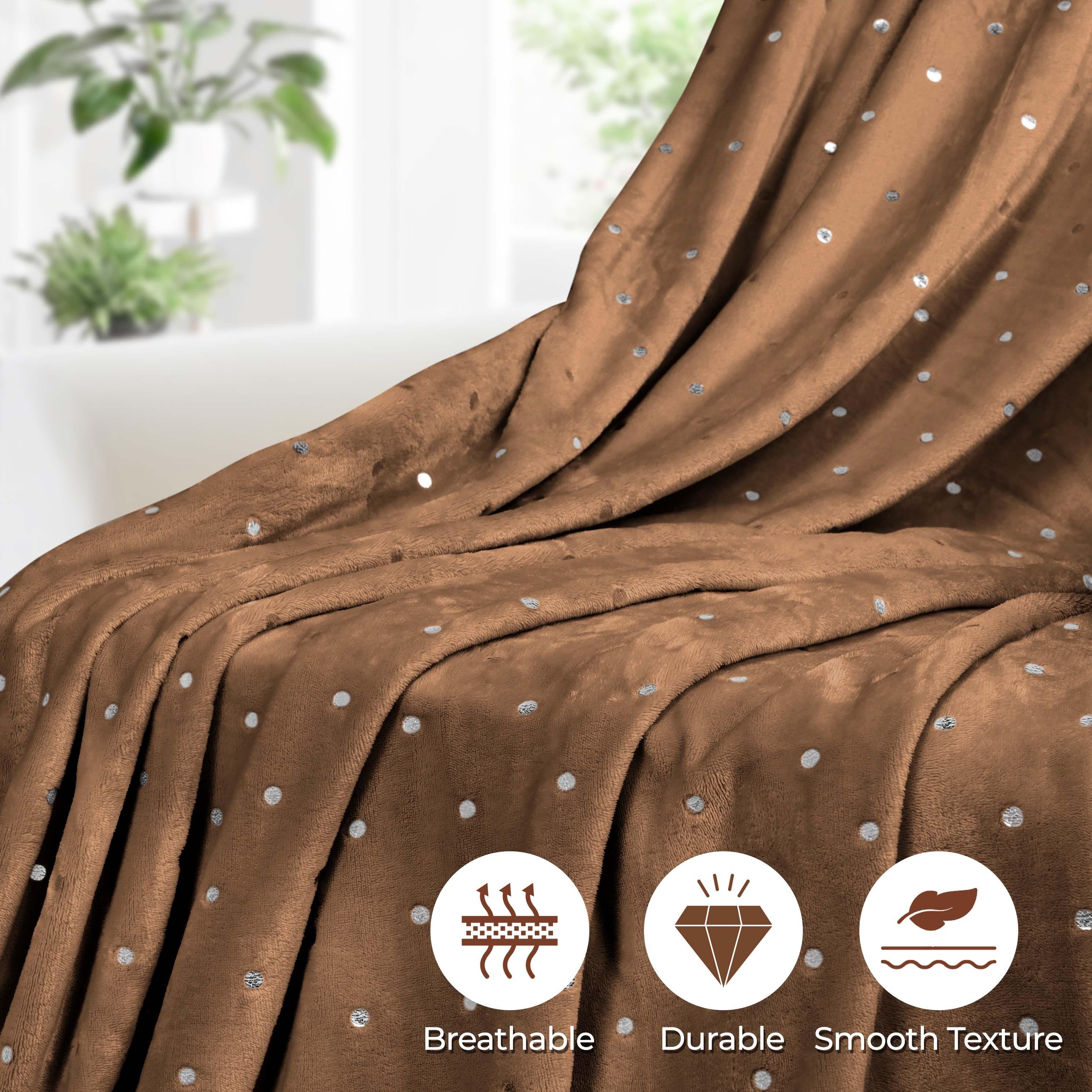 Introduce glamour and exceptional softness to your bedroom with our Fleece Plush Blanket. Enjoy the soft feel of the fluffy microfiber fleece in your choice of a polka dot or solid design. This blanket features reinforced edges for a clean look, added durability and resists shedding and fading. This classic blanket provides just the right amount of warmth any time of year. Available in your favorite colors and sizes, this blanket is just as beautiful draped over a couch or at the end of your bed.