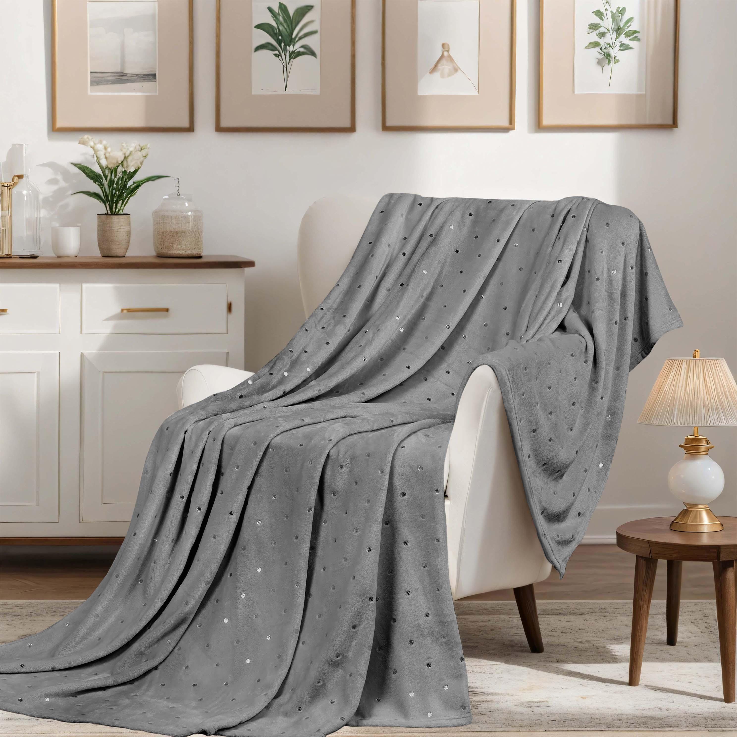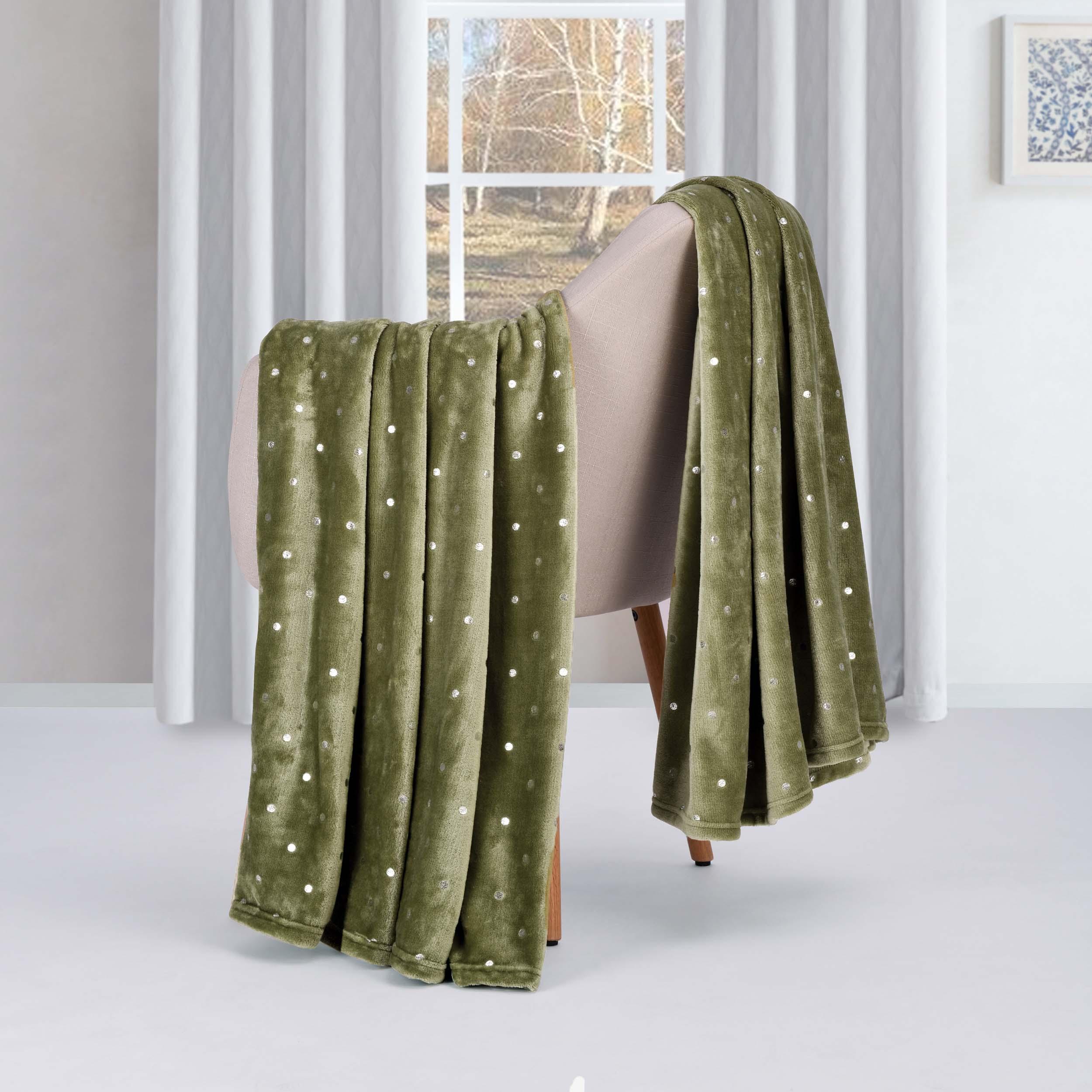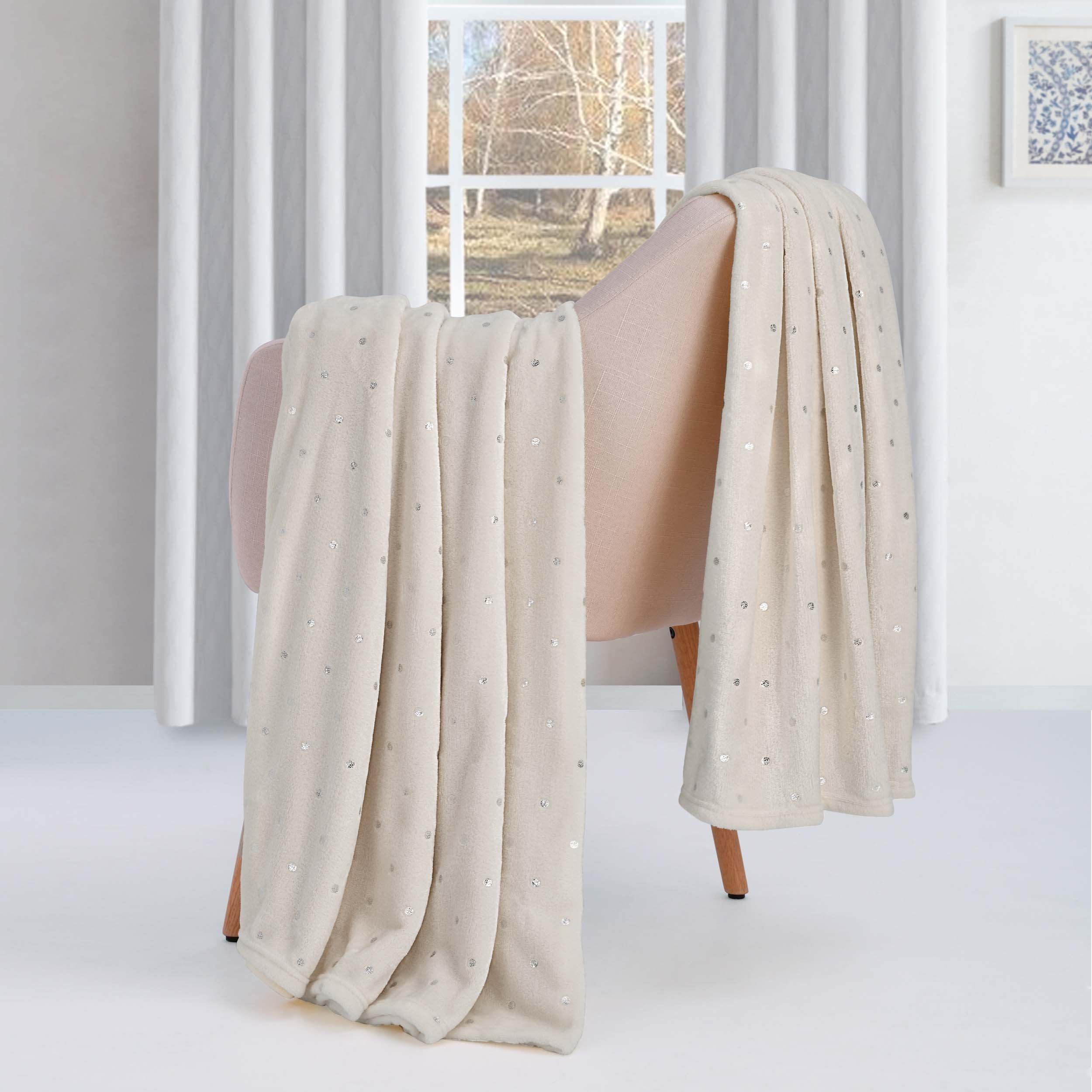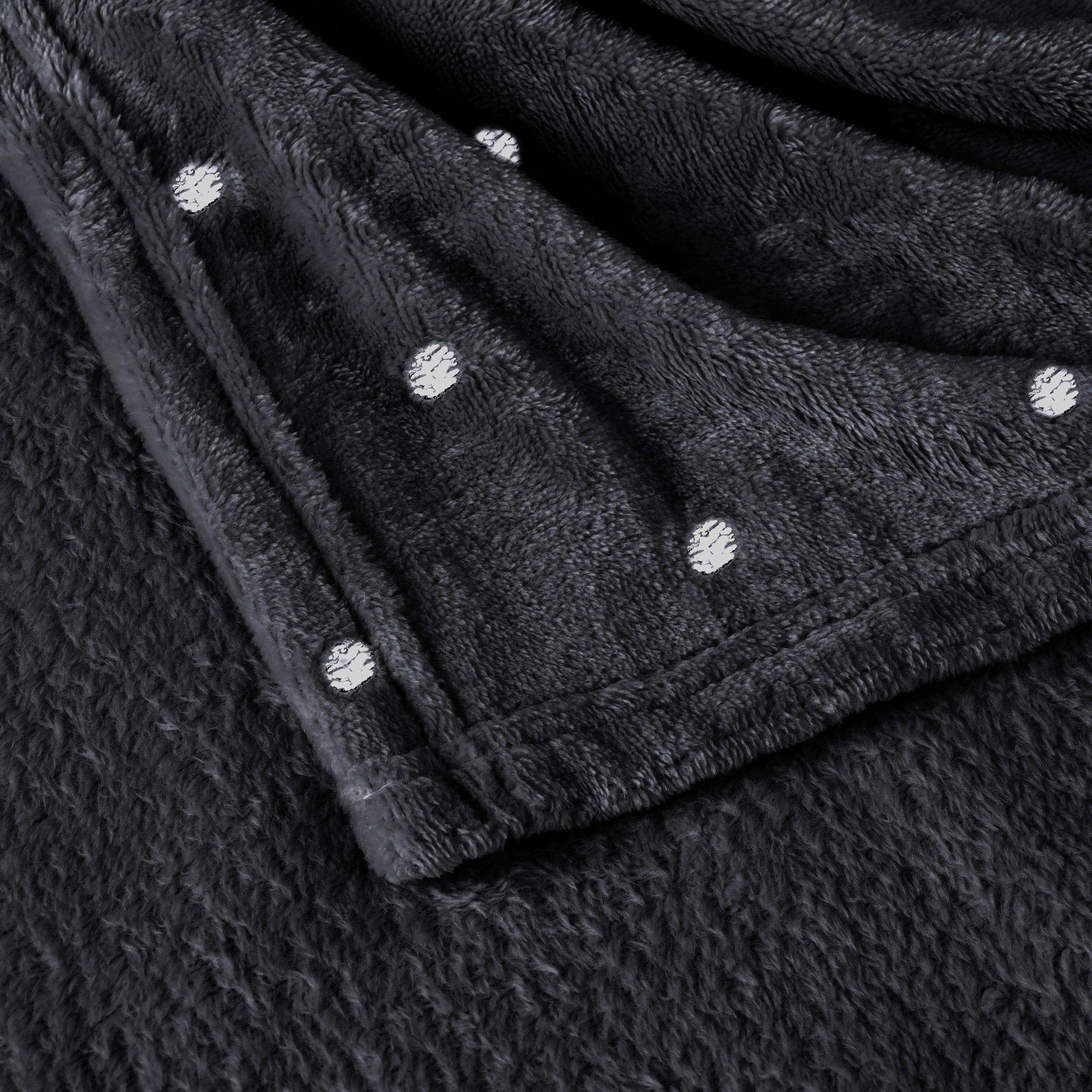 Introduce glamour and exceptional softness to your bedroom with our Fleece Plush Blanket. Enjoy the soft feel of the fluffy microfiber fleece in your choice of a polka dot or solid design. This blanket features reinforced edges for a clean look, added durability and resists shedding and fading. This classic blanket provides just the right amount of warmth any time of year. Available in your favorite colors and sizes, this blanket is just as beautiful draped over a couch or at the end of your bed.