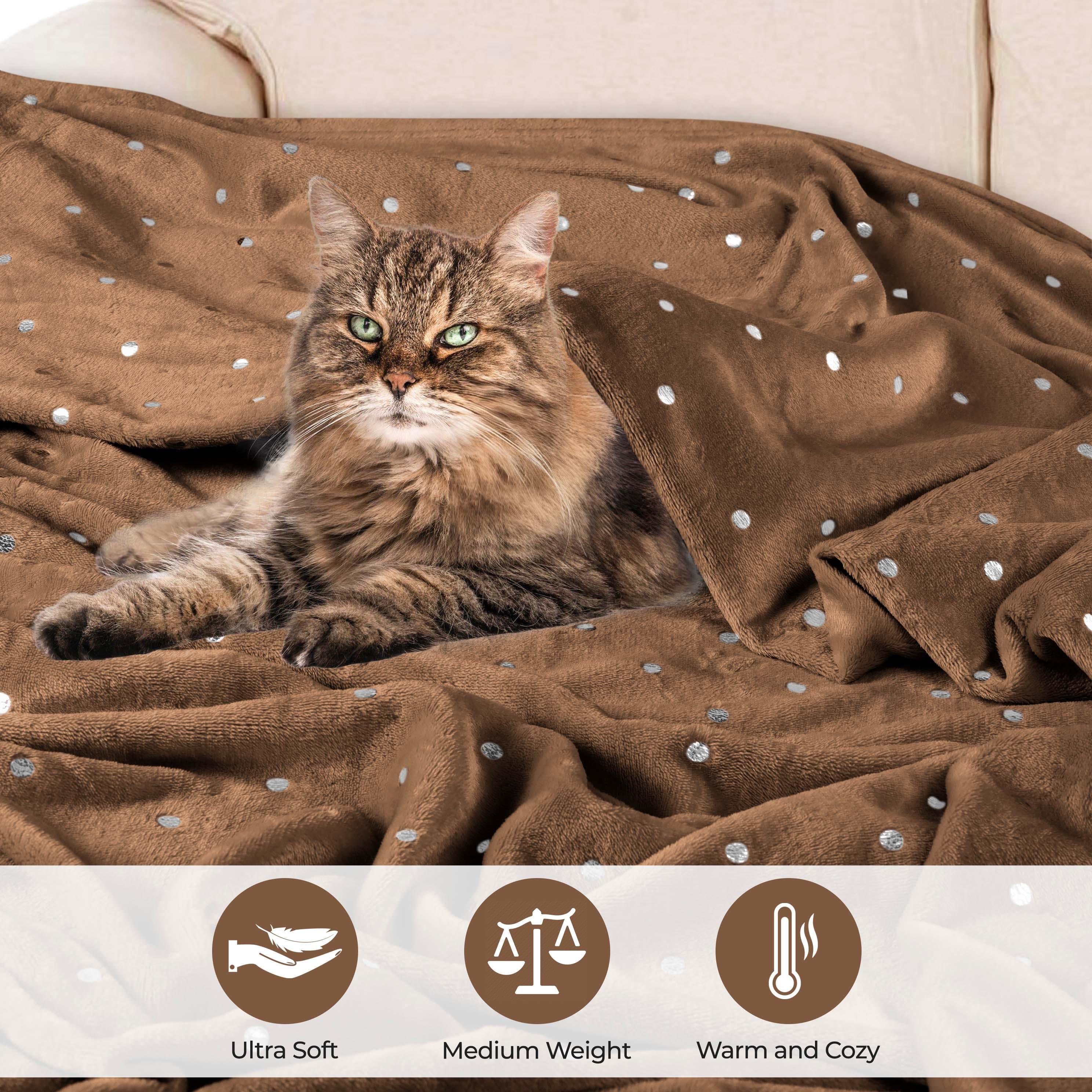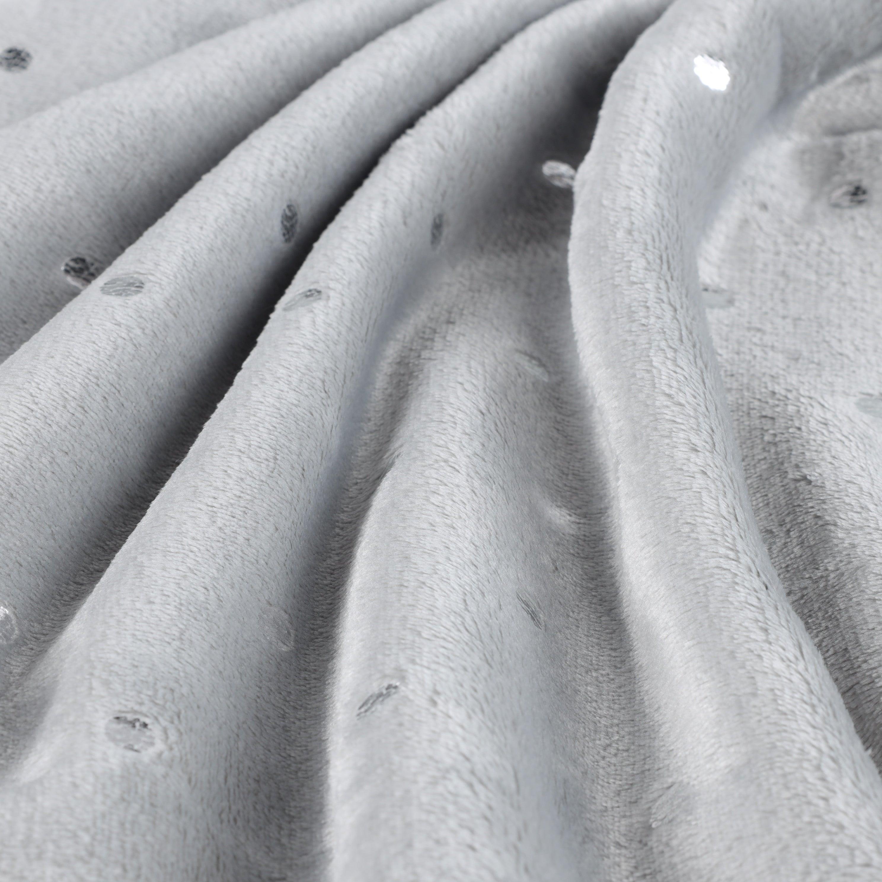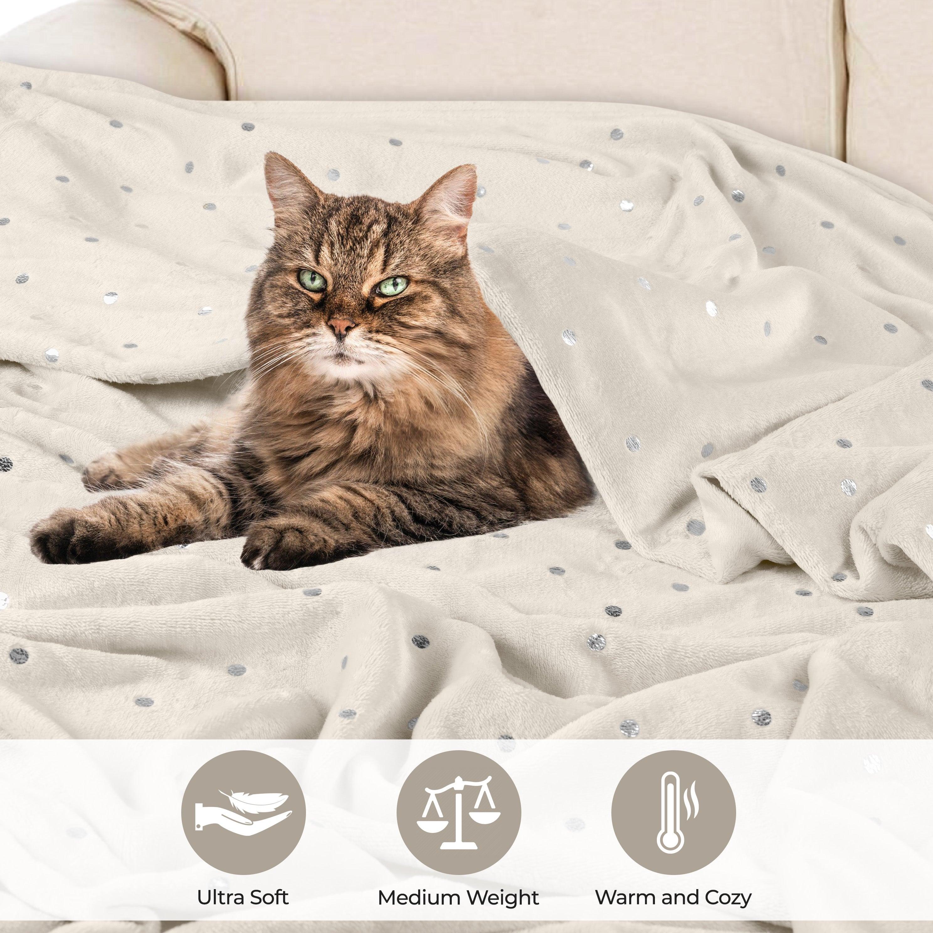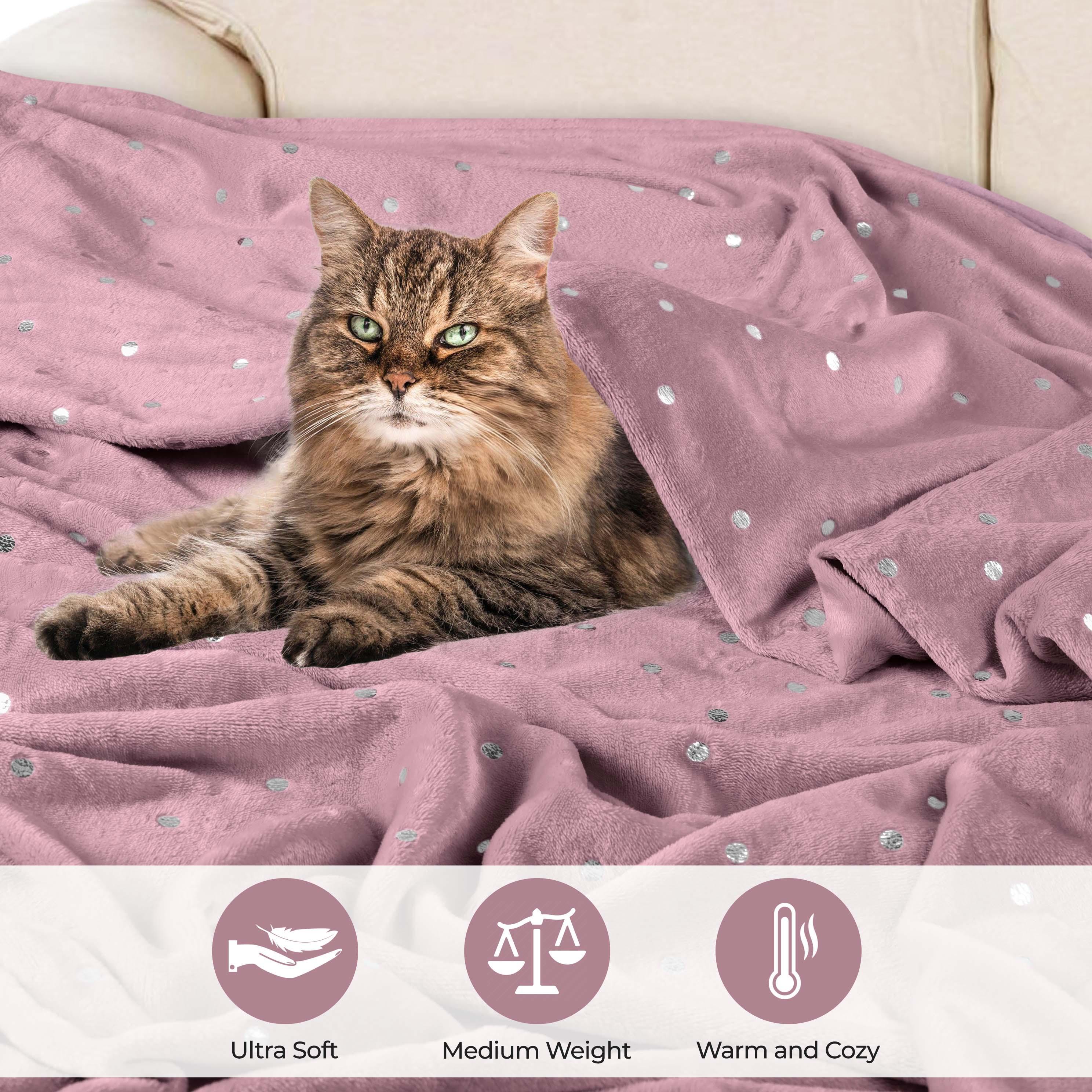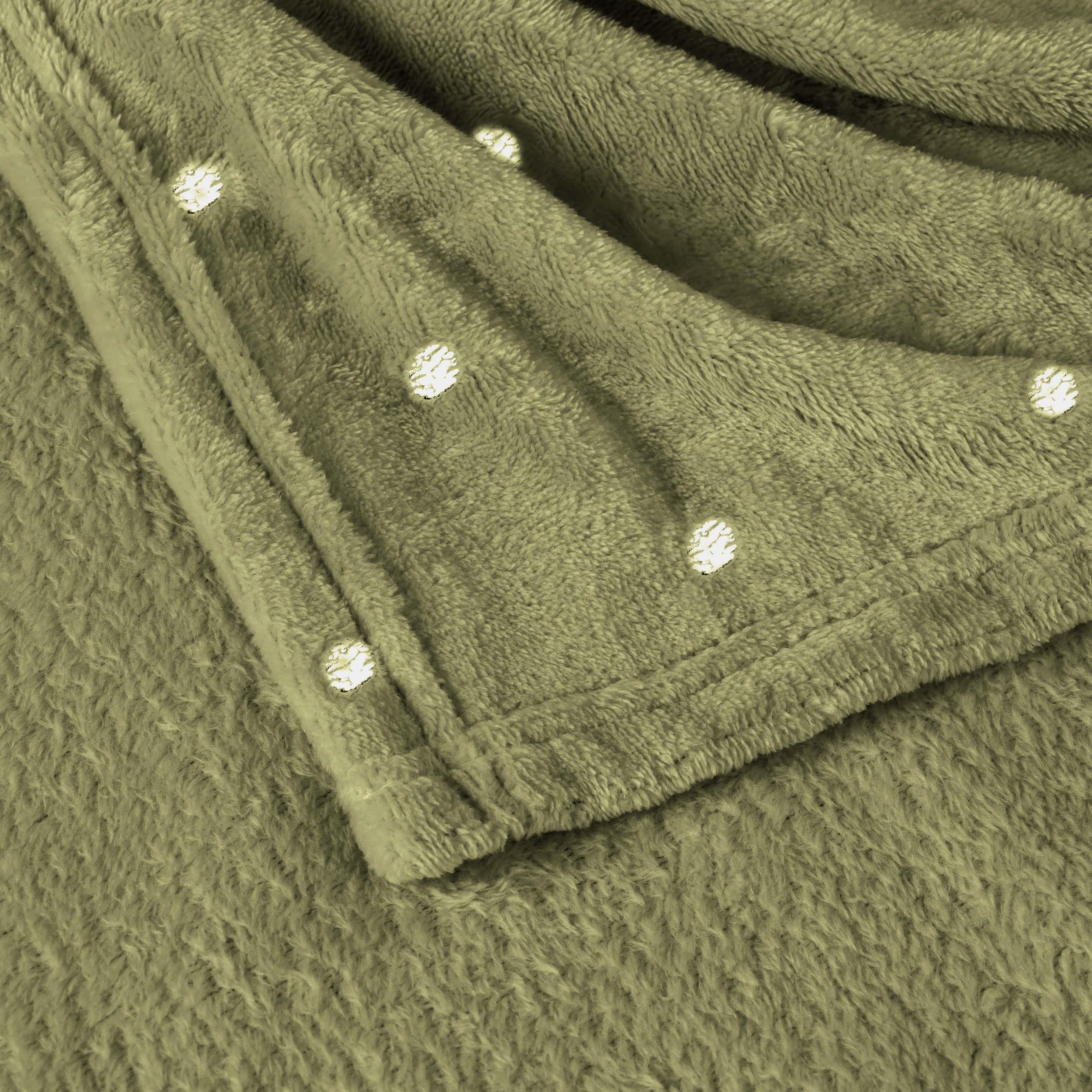Introduce glamour and exceptional softness to your bedroom with our Fleece Plush Blanket. Enjoy the soft feel of the fluffy microfiber fleece in your choice of a polka dot or solid design. This blanket features reinforced edges for a clean look, added durability and resists shedding and fading. This classic blanket provides just the right amount of warmth any time of year. Available in your favorite colors and sizes, this blanket is just as beautiful draped over a couch or at the end of your bed.