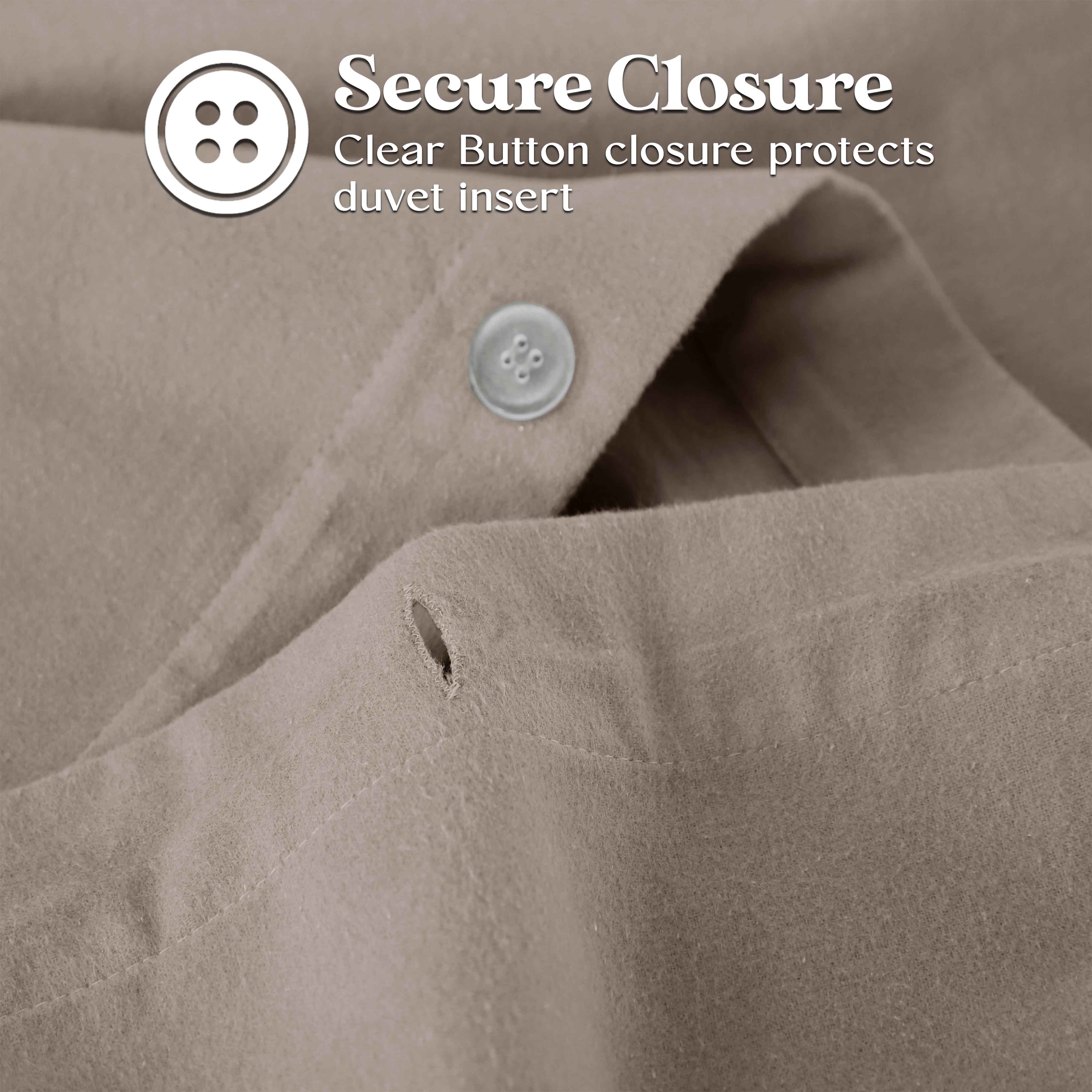 Give your bedroom the ultimate cozy update with our Rome Flannel Cotton Duvet Cover Set. This duvet cover set is crafted from luxuriously soft brushed flannel cotton, which is strong, plush, breathable. As an added bonus, this fabric gets softer after every wash. Stay warm on crisp mornings and cold nights with this insulating bedding set. This duvet cover fastens with buttons to make sure your duvet insert or comforter doesn't shift or come undone. This unique solid design is available in soothing color options to instantly update your bedroom decor style. For a matching look, the included pillow sham(s) feature an elegant 2 inch flange.