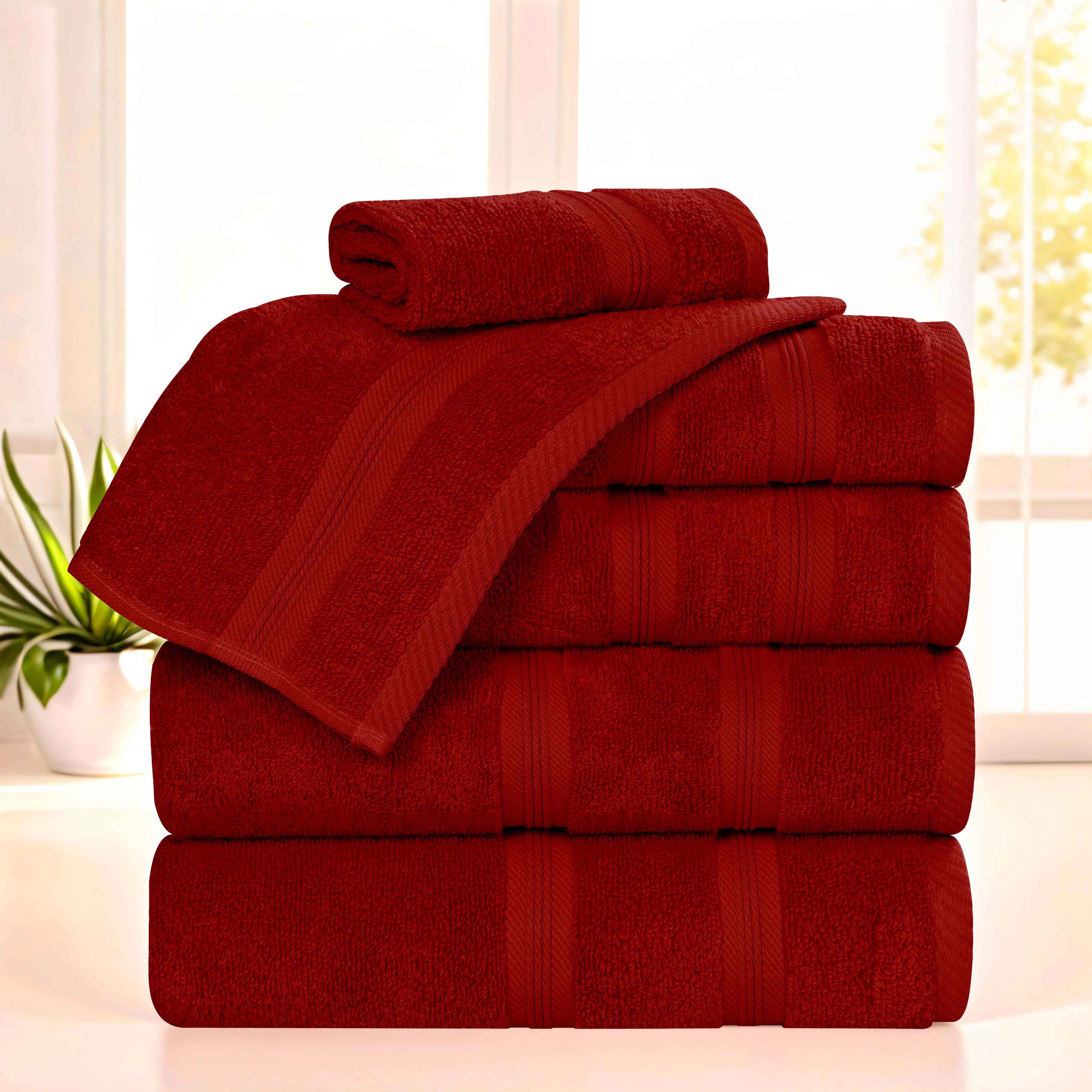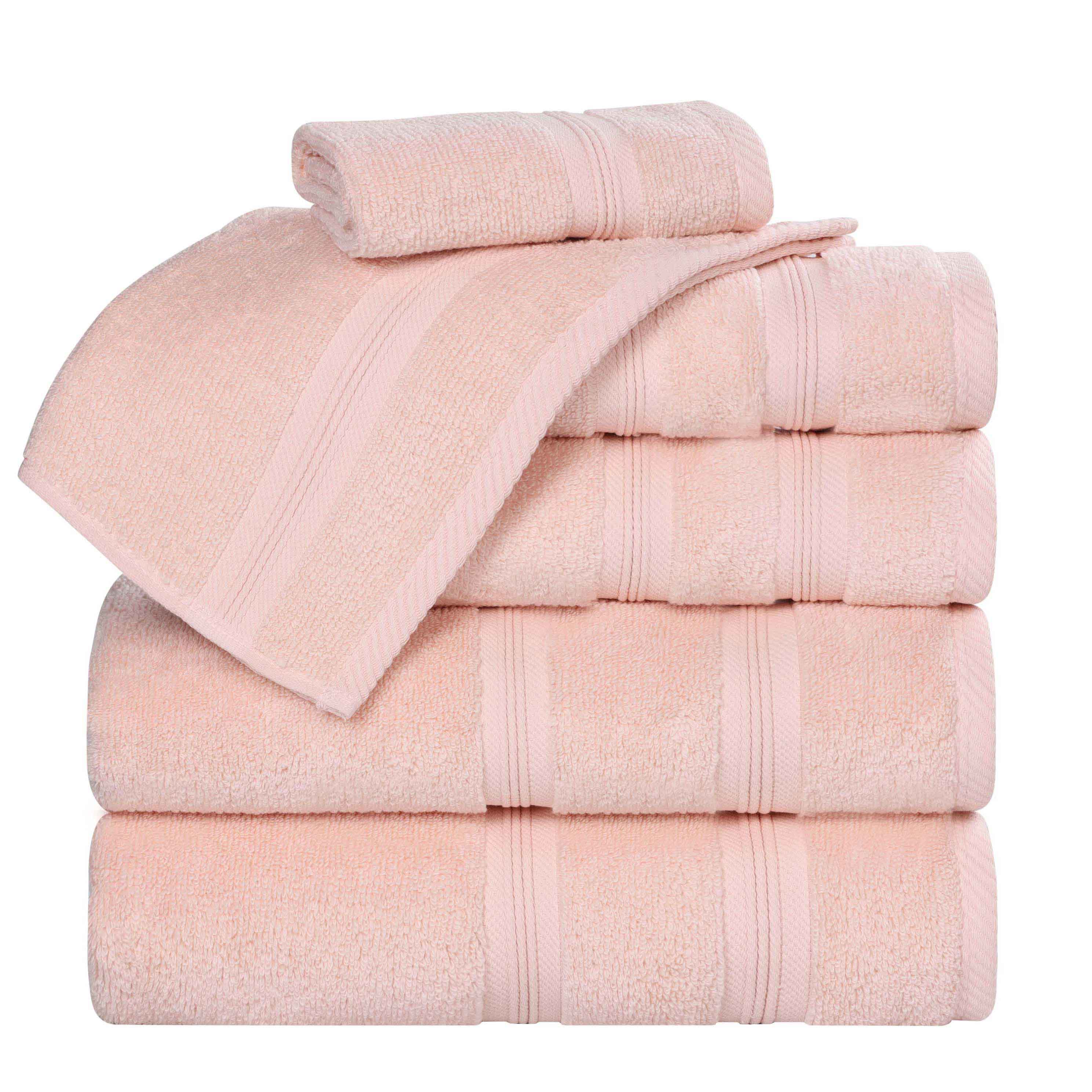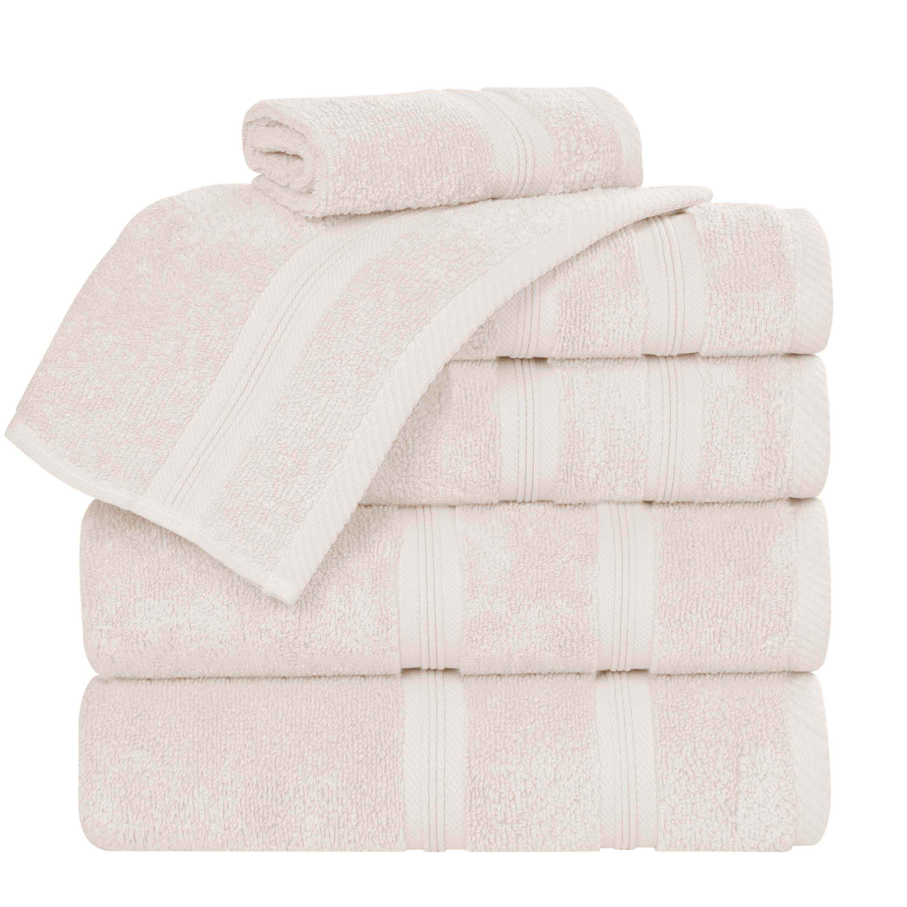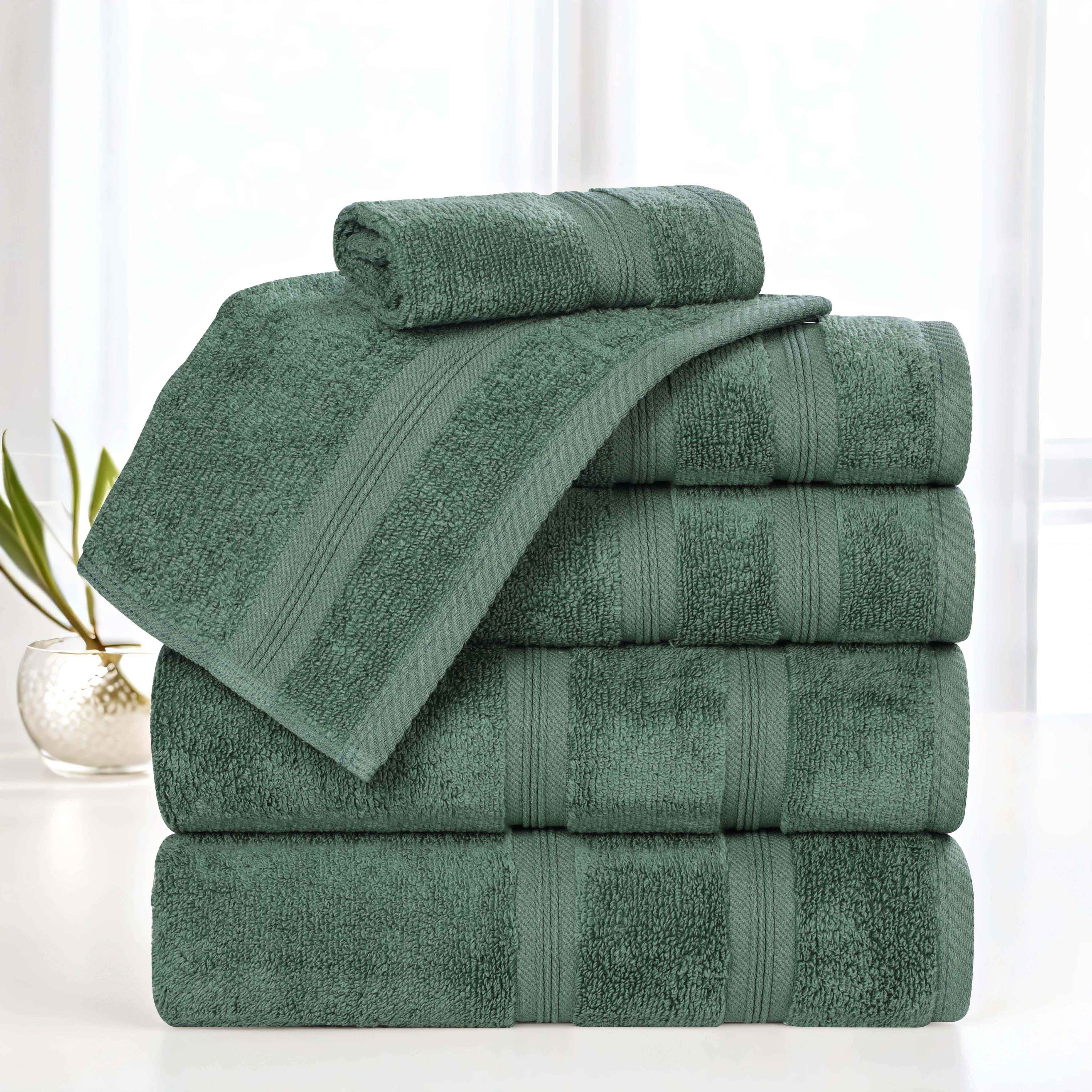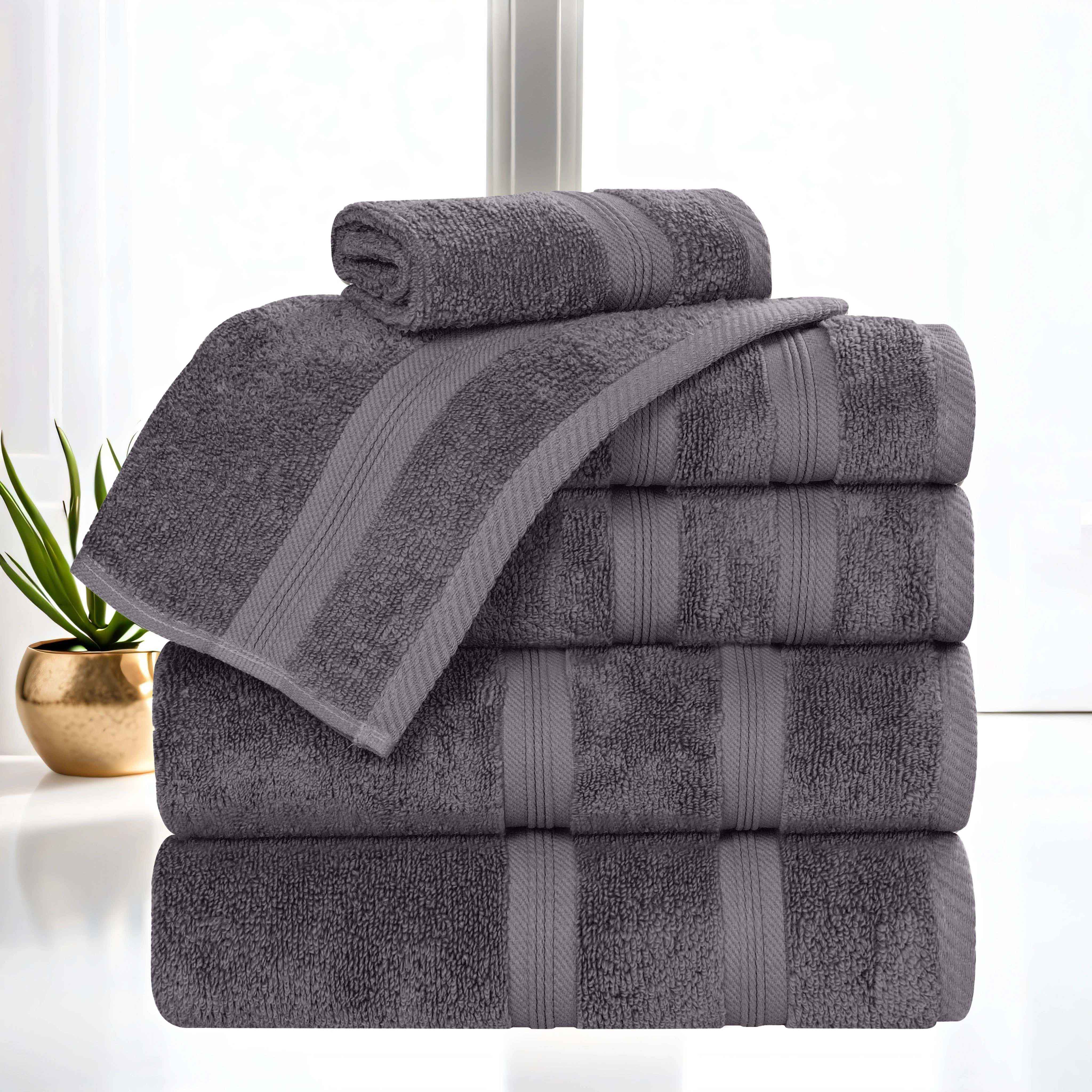 Simple in design, effortlessly give your bathroom decor a new look with our Smart Dry Zero Twist Cotton Towel Set. Each towel in this generous set features a timeless, ribbed border detail and a durable hem that prevents fraying. The cotton fibers are ultra absorbent and soften with every wash. This set includes everything you need to refresh your bath decor. Available in a wide range of colors, these bathing essentials are the perfect way to upgrade your bathroom space and improve your drying experience.