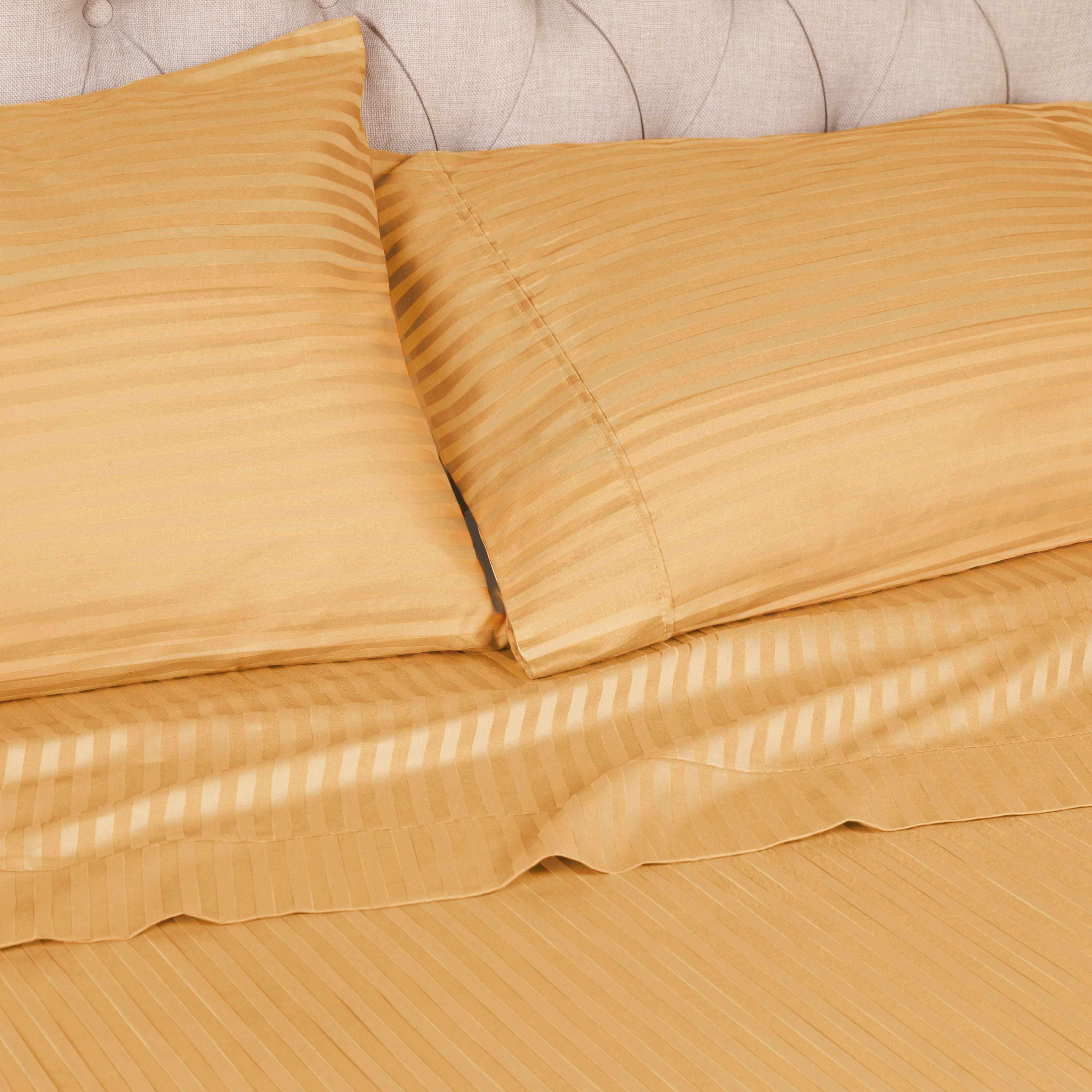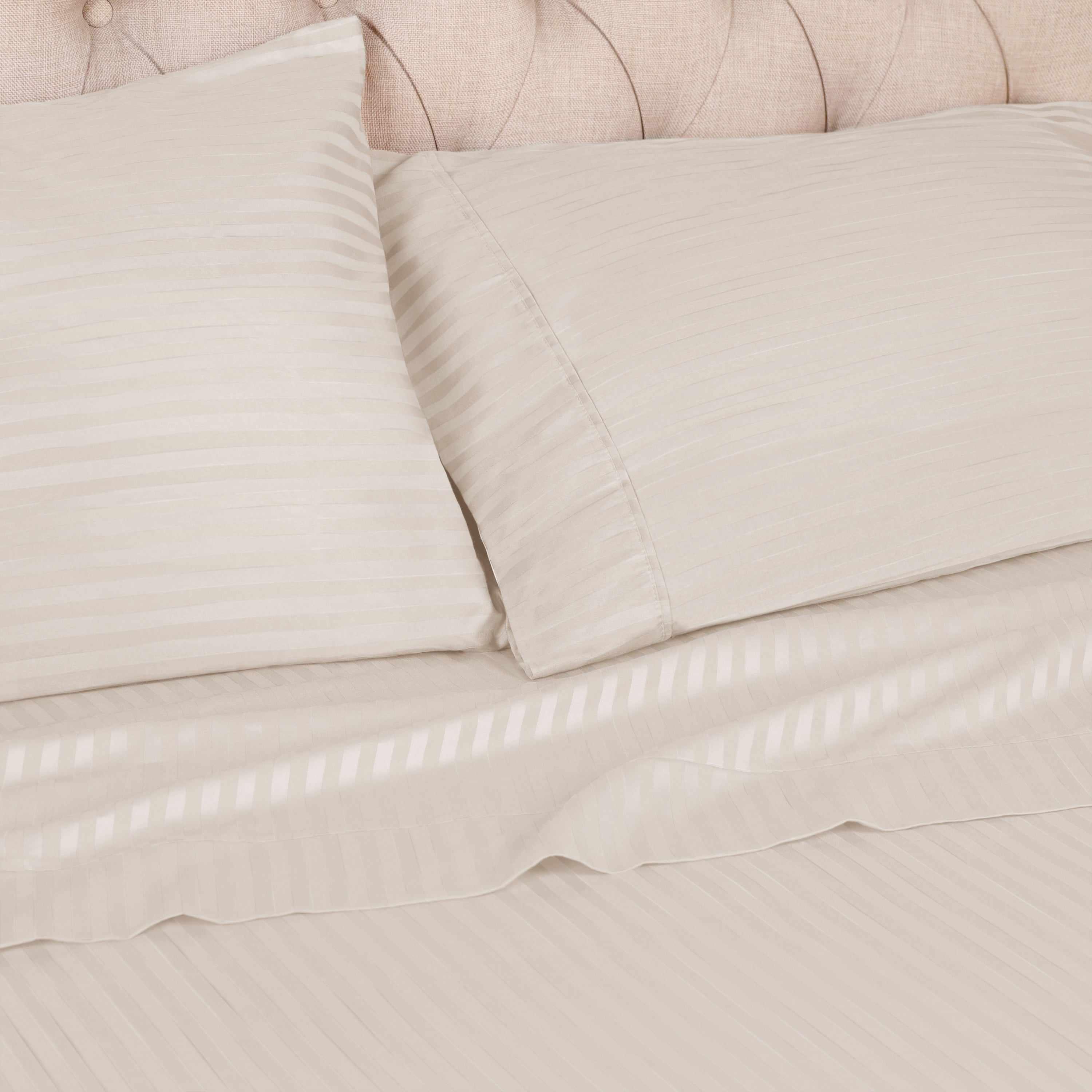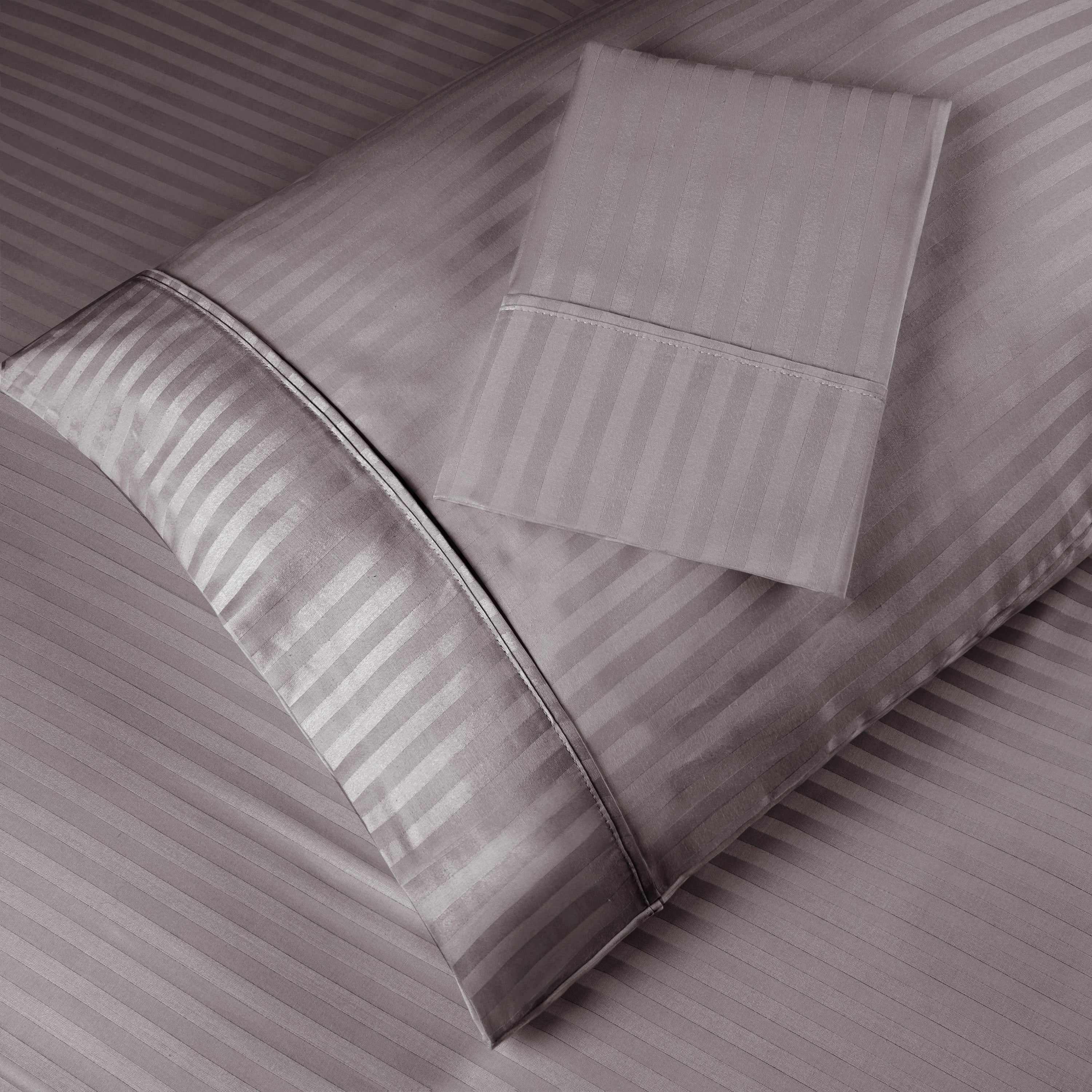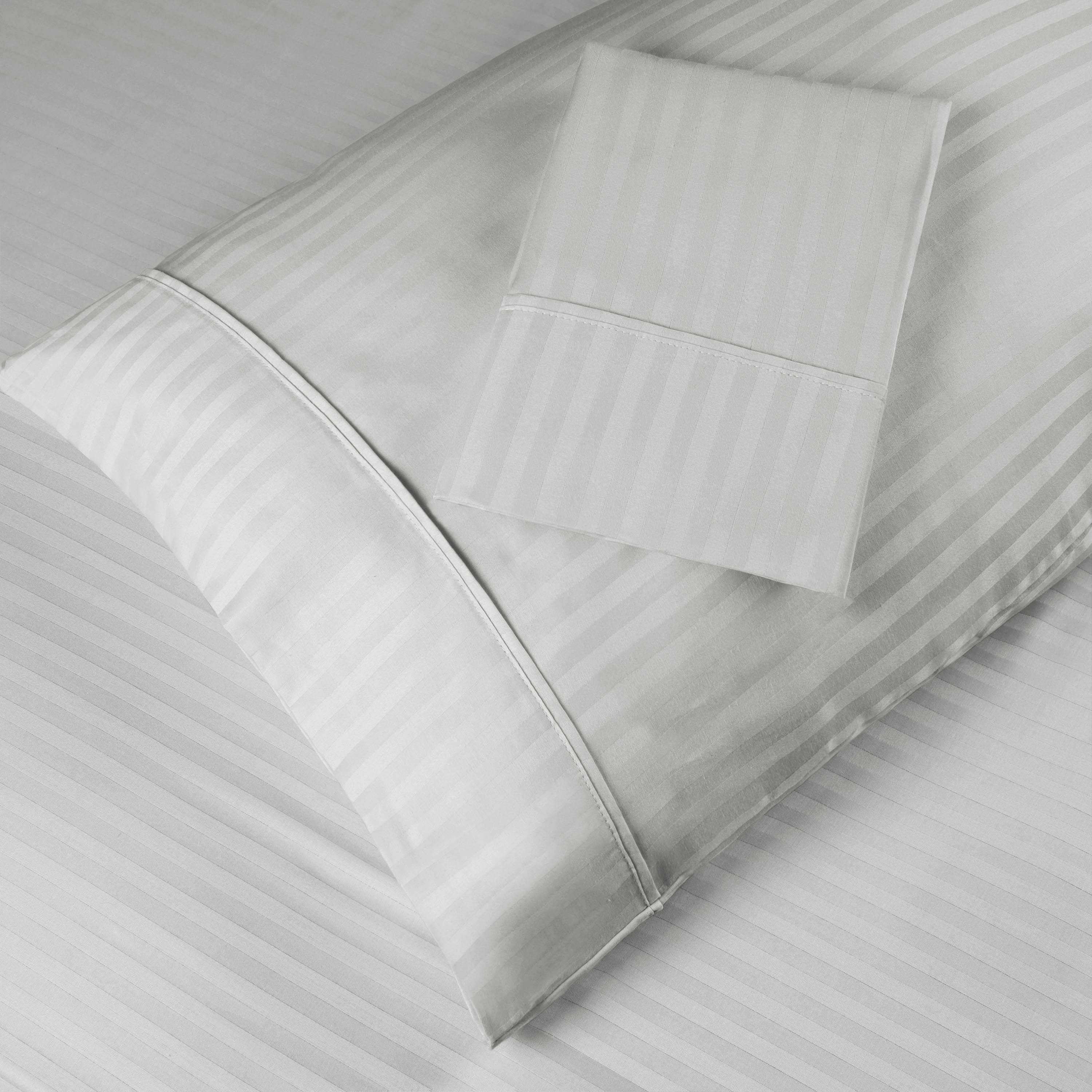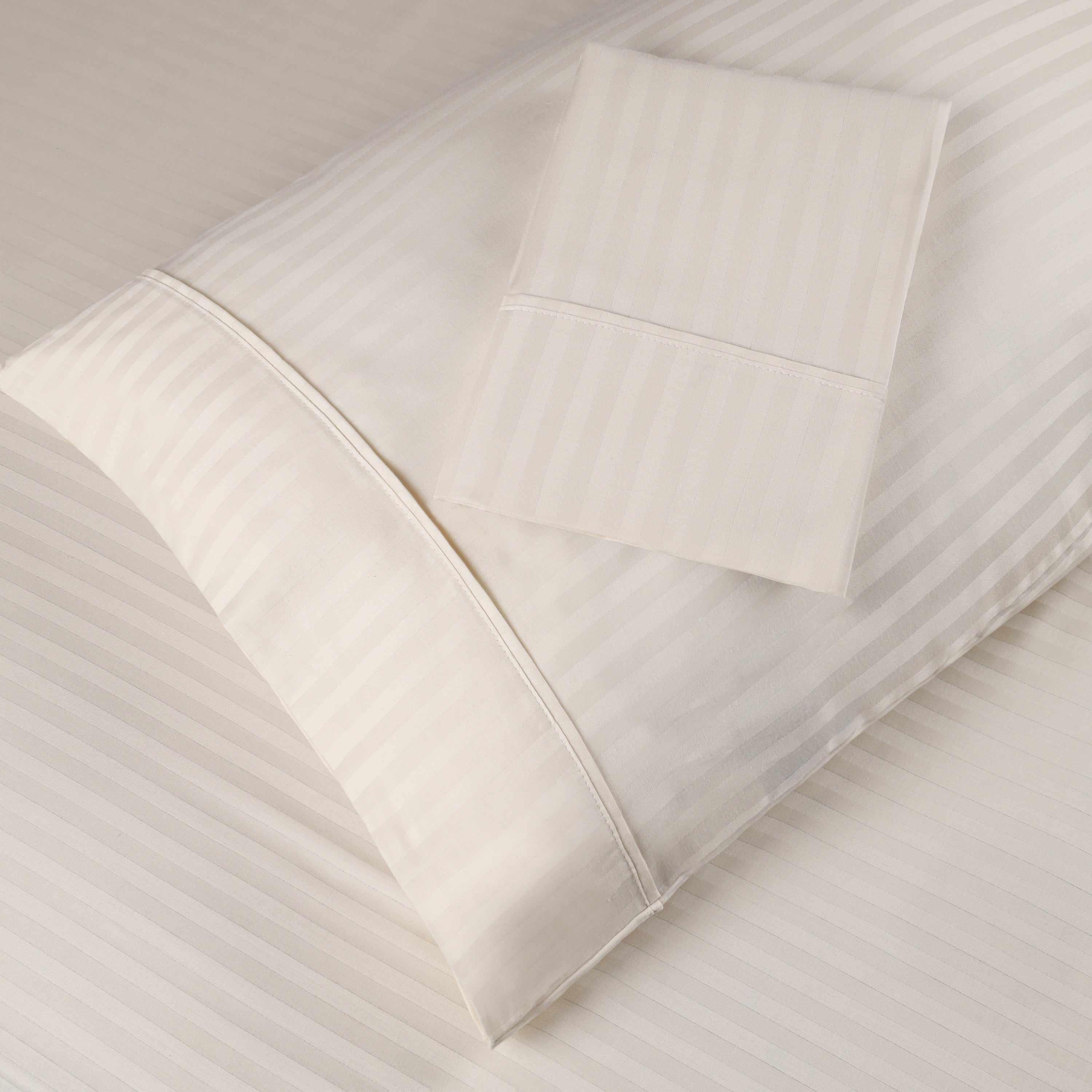 You'll want to stay in bed all day once you indulge in the super-soft 400 Thread Count Stripe 2 Piece Egyptian Cotton Pillowcase Set. Constructed from the softest Egyptian Cotton with a 400-thread count, this bundle boasts a silky-smooth feel and an elegant sheen from the sateen weave finish. Egyptian Cotton is made of extra-long fibers that are spun into fine, strong yarns making it breathable, plush, and more durable than other types of Cotton. Available in both Standard and King sizes, enjoy the relaxed feel of this monochromatic striped pillowcase set that gets even softer with repeated laundering.