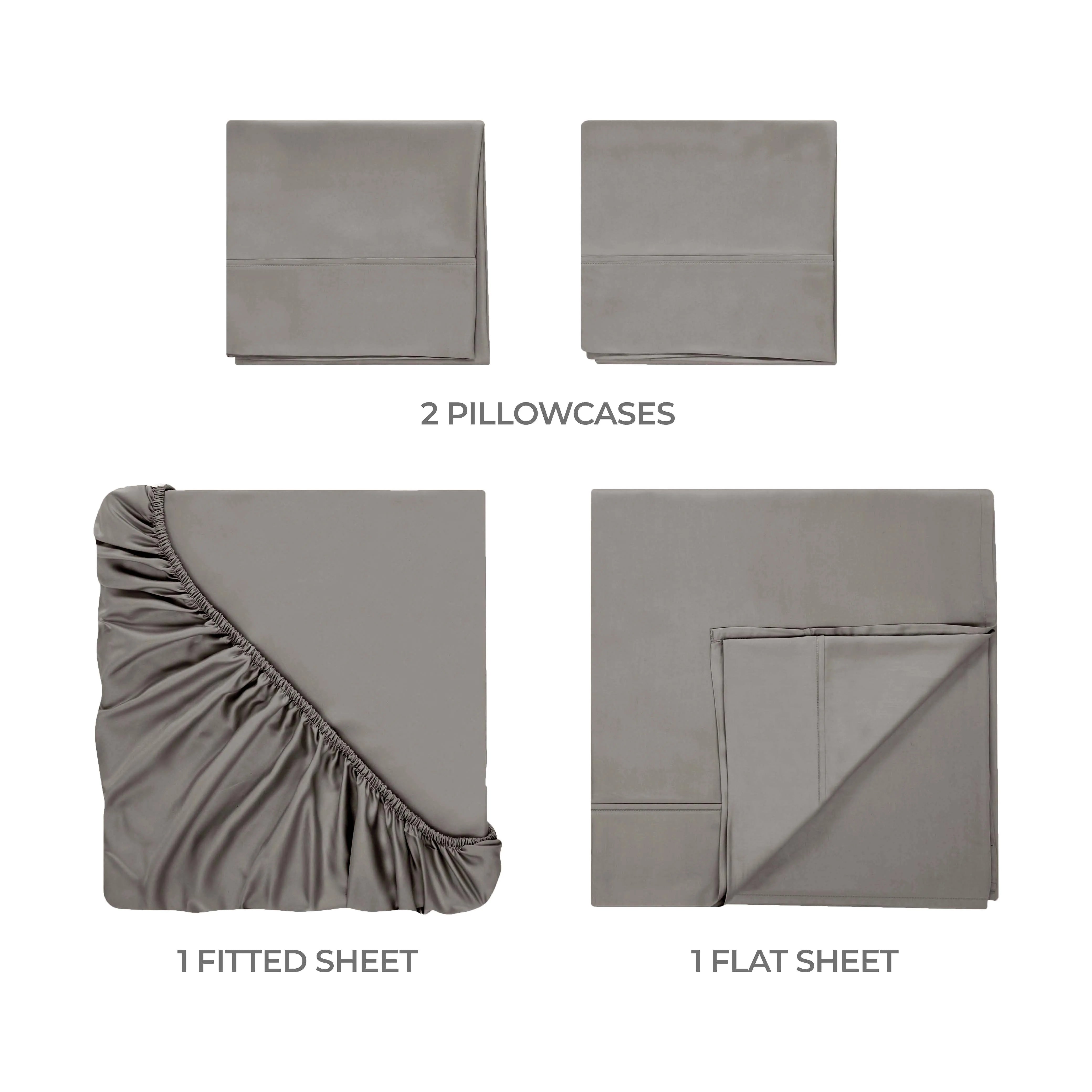 Designed for durability and ease, the fitted sheet fits mattresses up to 18' thick, while pillowcases include a 4-inch hem and an open-end design for a polished finish.