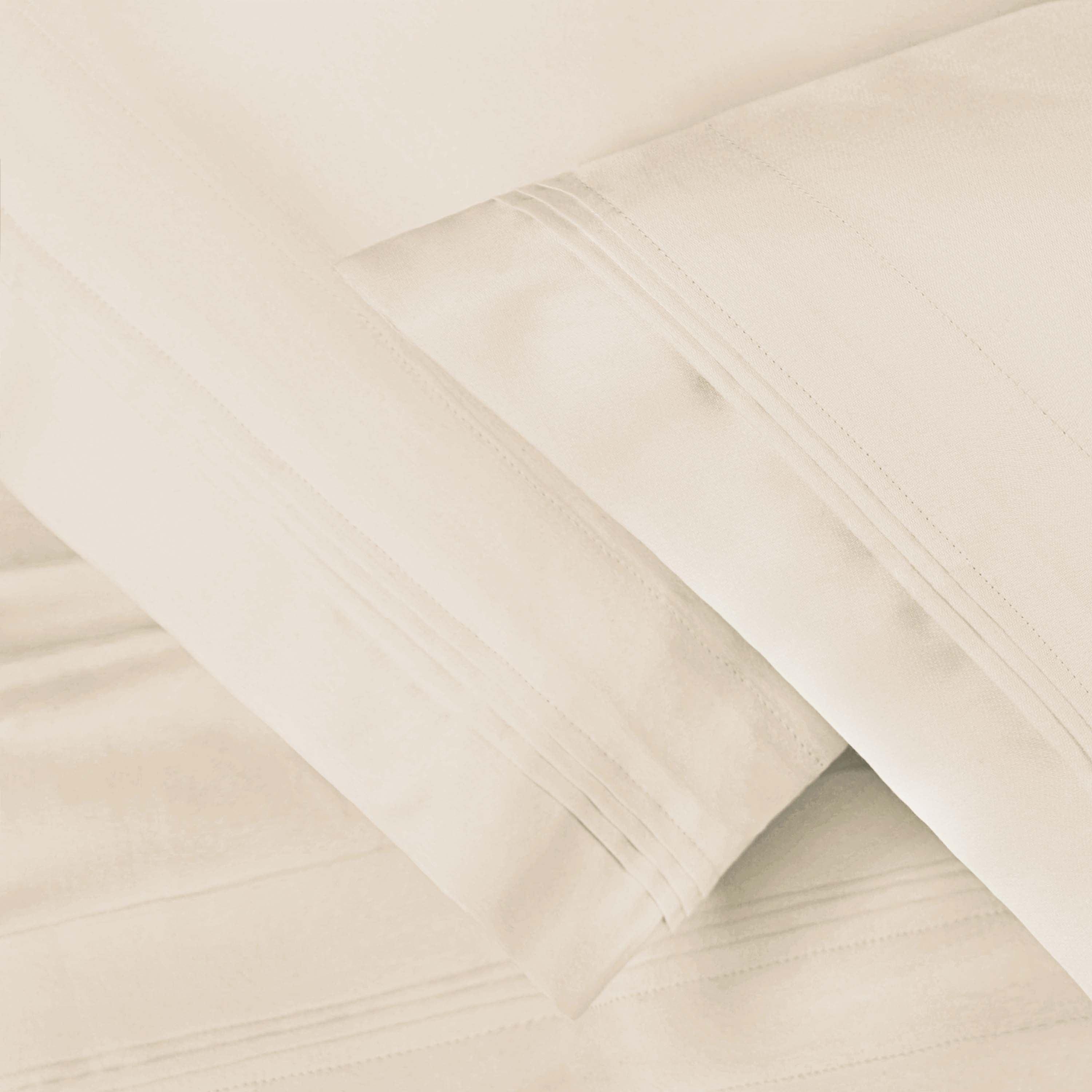 With a soft luster and tight construction, these cotton sheet sets maintain their integrity through repeated washing. Pillowcases feature a refined 4-inch hem, adding an elevated touch to your bed.