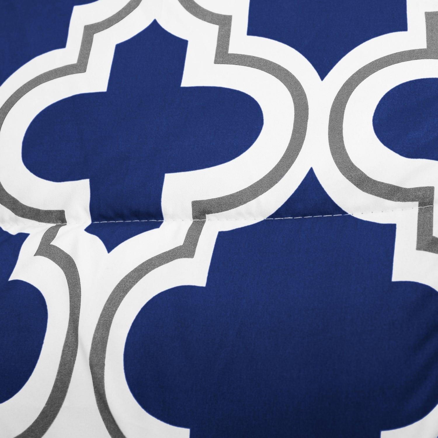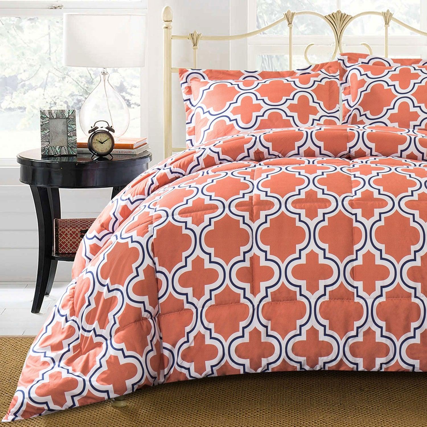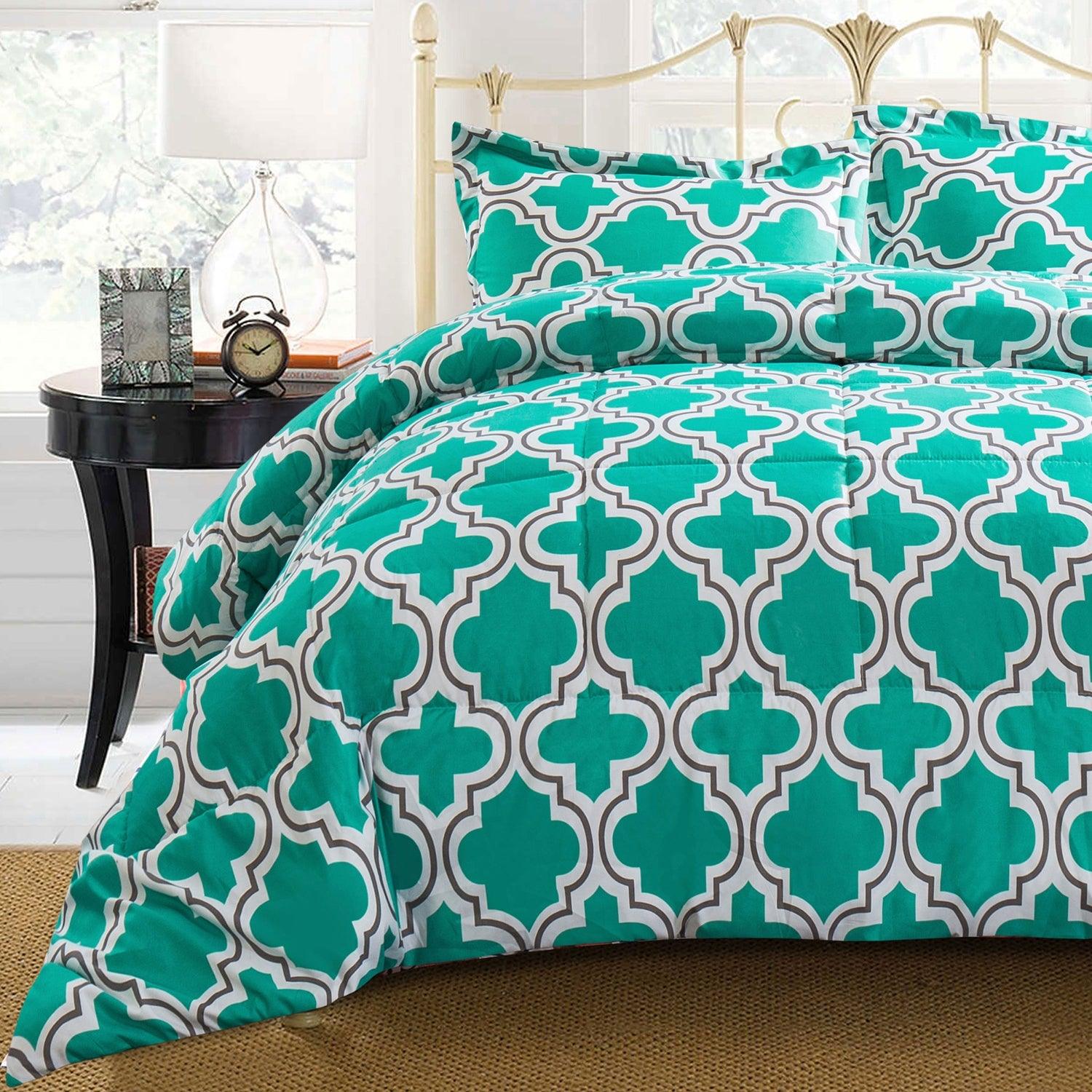 Brighten up your bedroom with the cheerful hues of the Moroccan Trellis Microfiber Comforter Set. This all-season comforter features a buttery soft microfiber shell and medium-weight fill that'll keep you cozy any time of year. Box quilting keeps the fill in place and prevents it from bunching or shifting. The included pillow shams are easy to slip on and boast contemporary flanged edges for a polished finishing touch. The lively pattern and selection of available sizes and colors mean this set is sure to liven up your bed and become the focal point of the room.