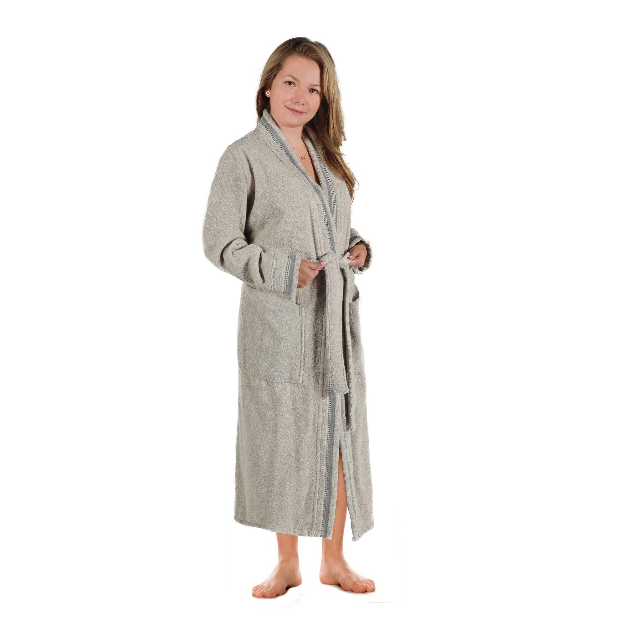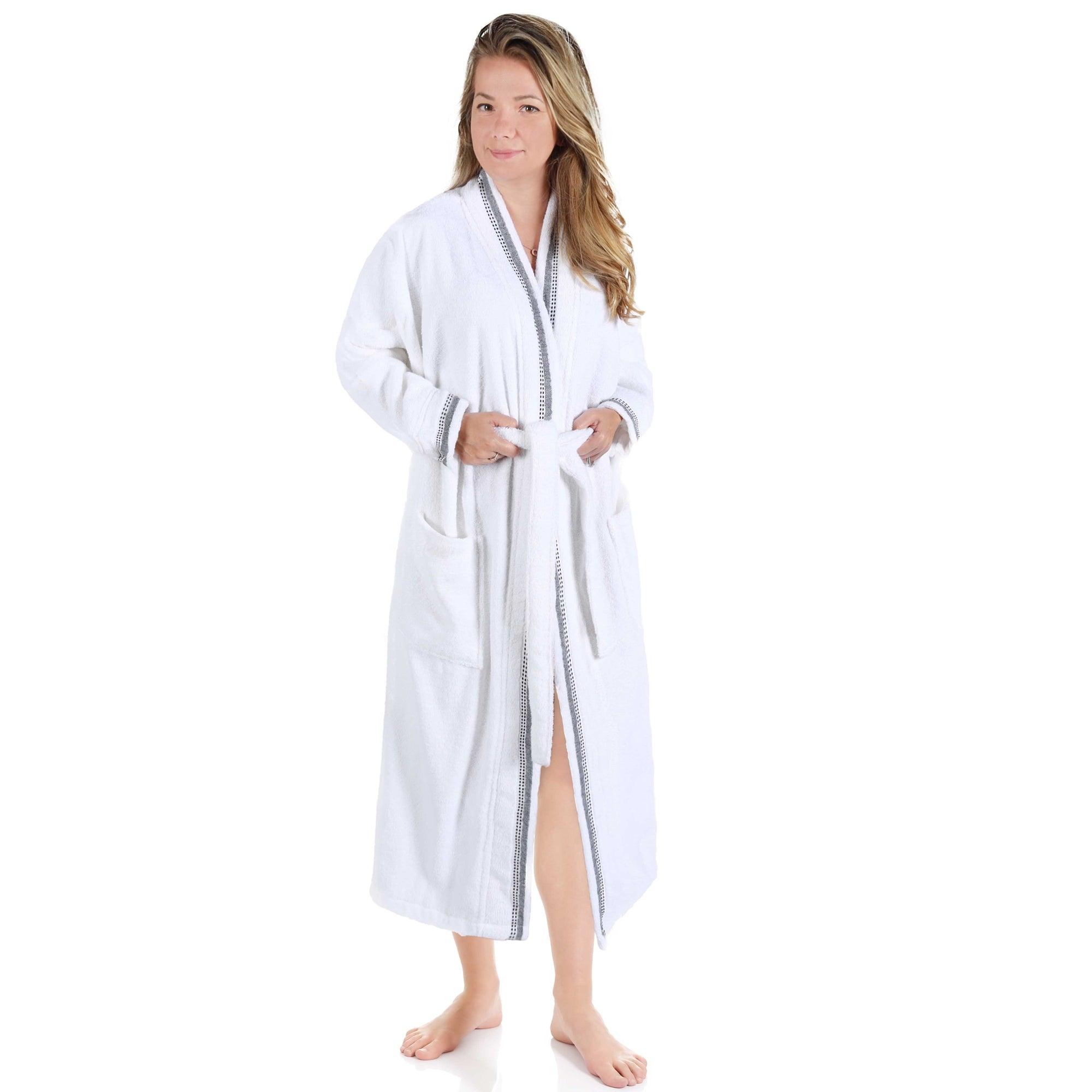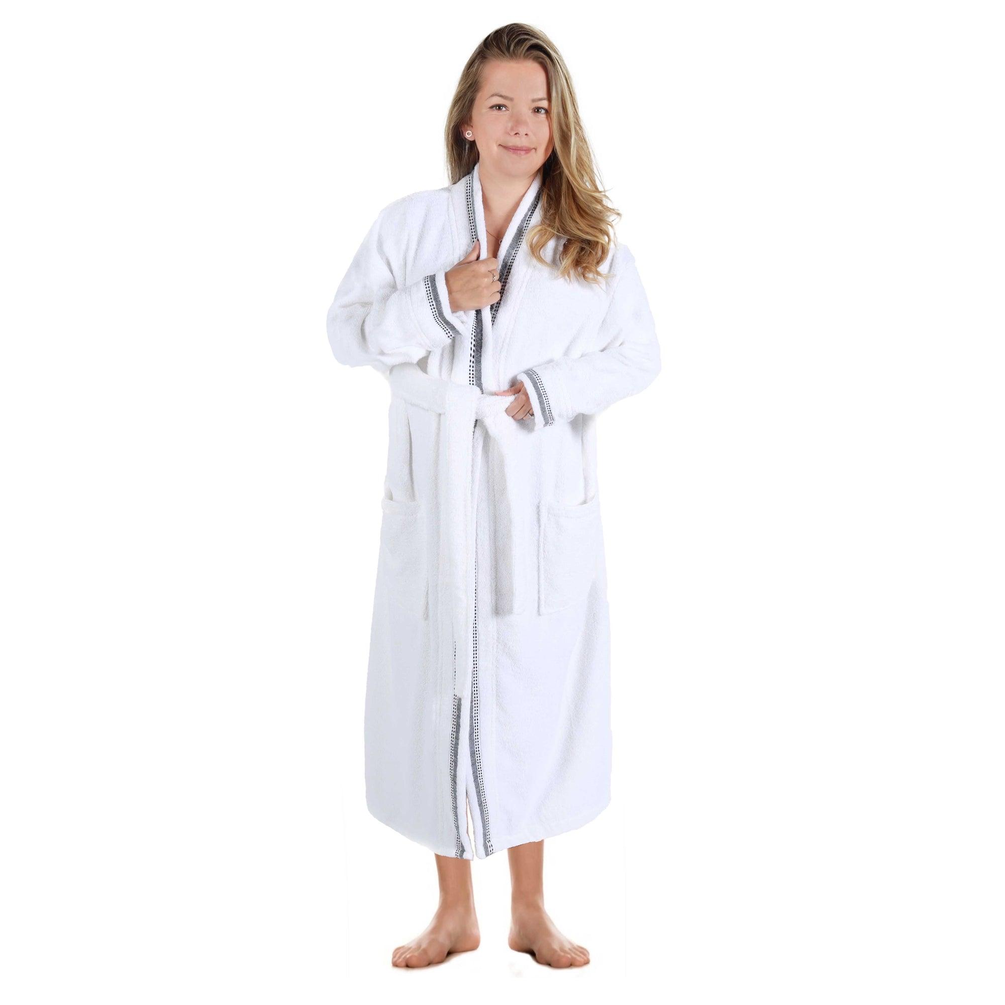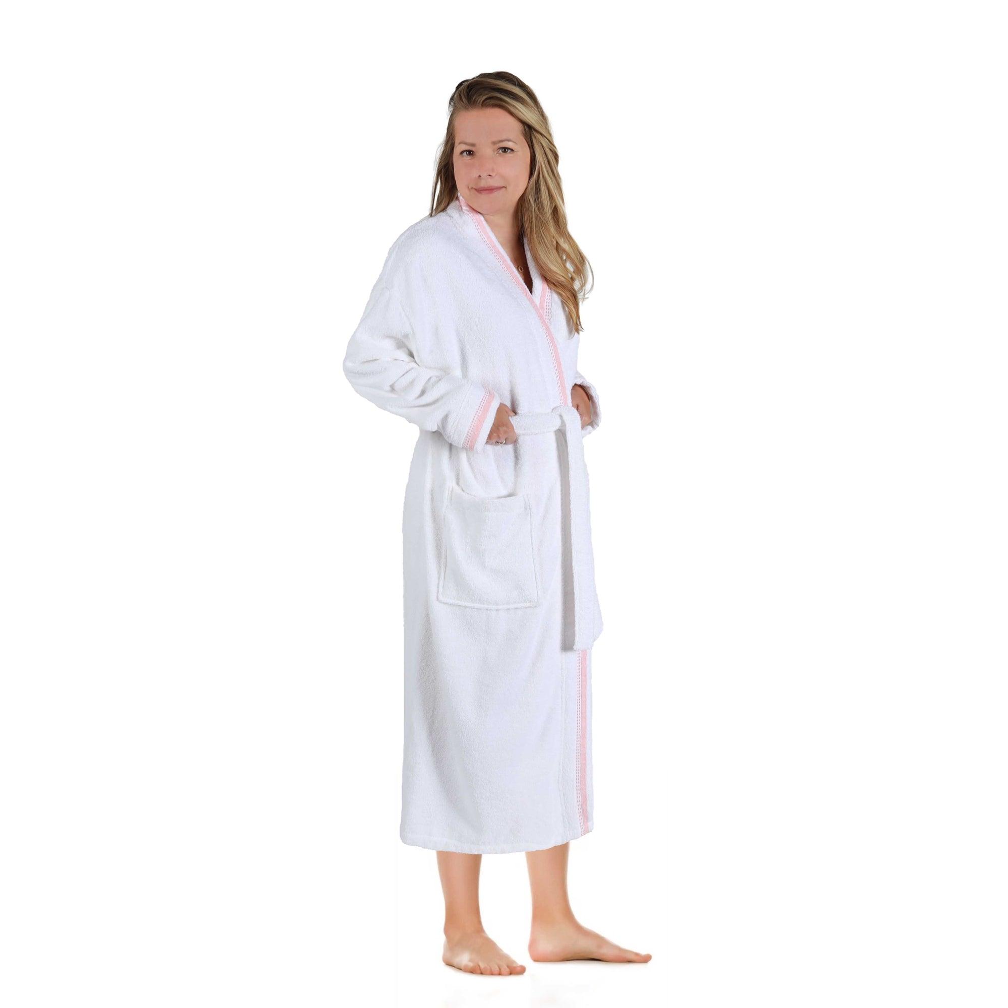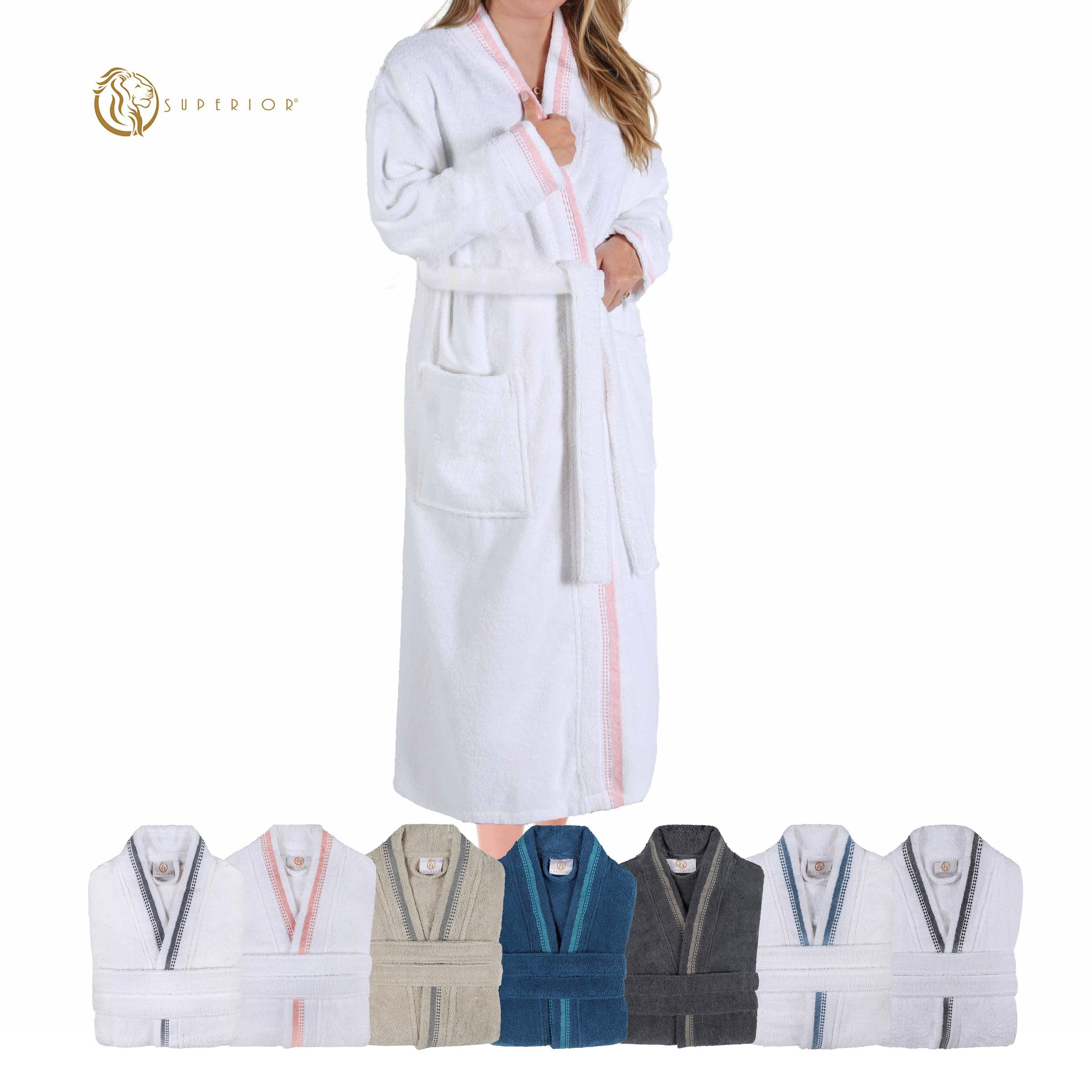 Dry yourself with the Turkish Cotton Kimono Terry Embroidered Super-Soft Unisex Bathrobe. Step out of the shower and give yourself a spa-like experience using this absorbent yet ultra-plush robe. Turkish Cotton is distinguished by its extra long and durable fibers along with the terry loop construction that this bathrobe features ensures that you will be dried gently and comfortably. This bathrobe is beautifully designed with a subtle pop of color using elegant embroidery which runs from the collar all the way down to the bottom of the front panel and along the edge of the sleeves. This bathrobe is complete with two front pockets, a V-neck collar, and a matching wrap-around belt to give you a luxurious post-bath look.