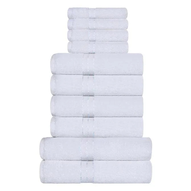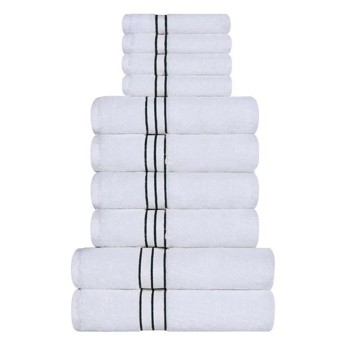 Give your bathroom an upgrade with the Ultra-Plush Turkish Cotton Super Absorbent Solid 10-Piece Towel Set. The extra-long fibers found in Turkish Cotton are highly absorbent to ensure that you will be dried quickly and comfortably. The heavy towel weight gives this towel an ultra-plush look that will be an elegant addition to any master bath, powder room, or guest bathroom. Displaying a dobby border, each towel is crafted to fit perfectly into any modern, traditional, or transitional style. This towel set comes in a variety of colors which will complement any bathroom decor.