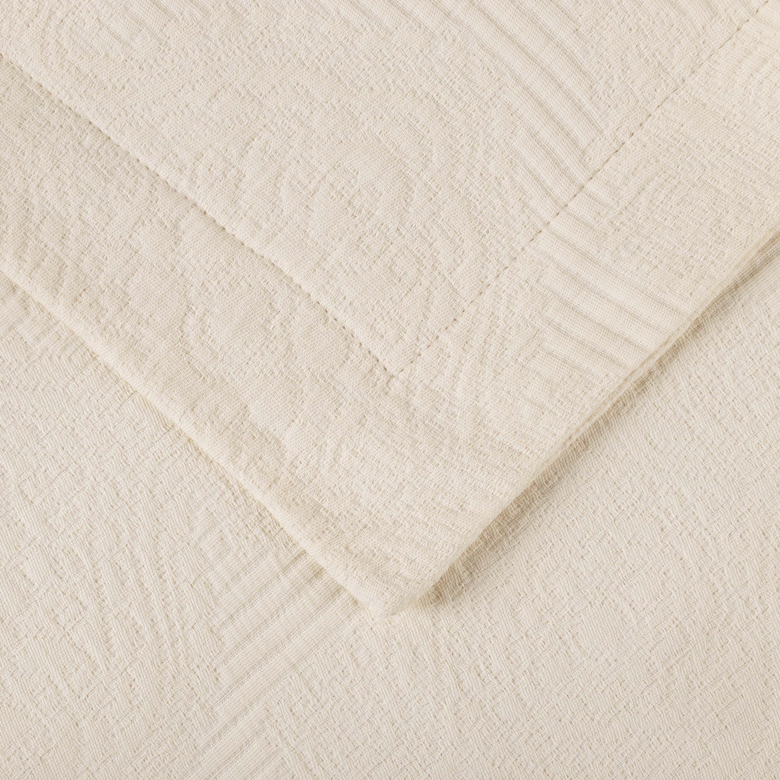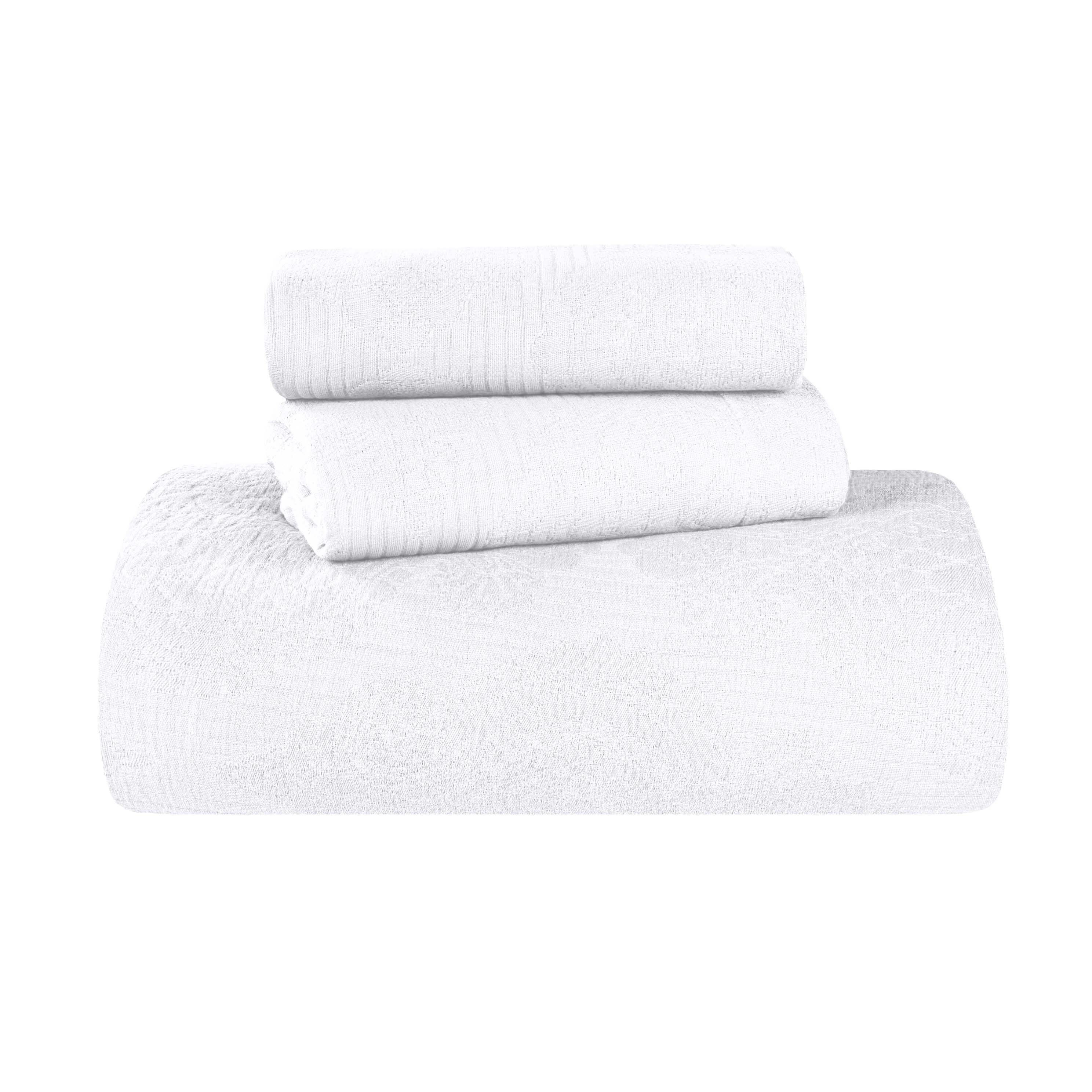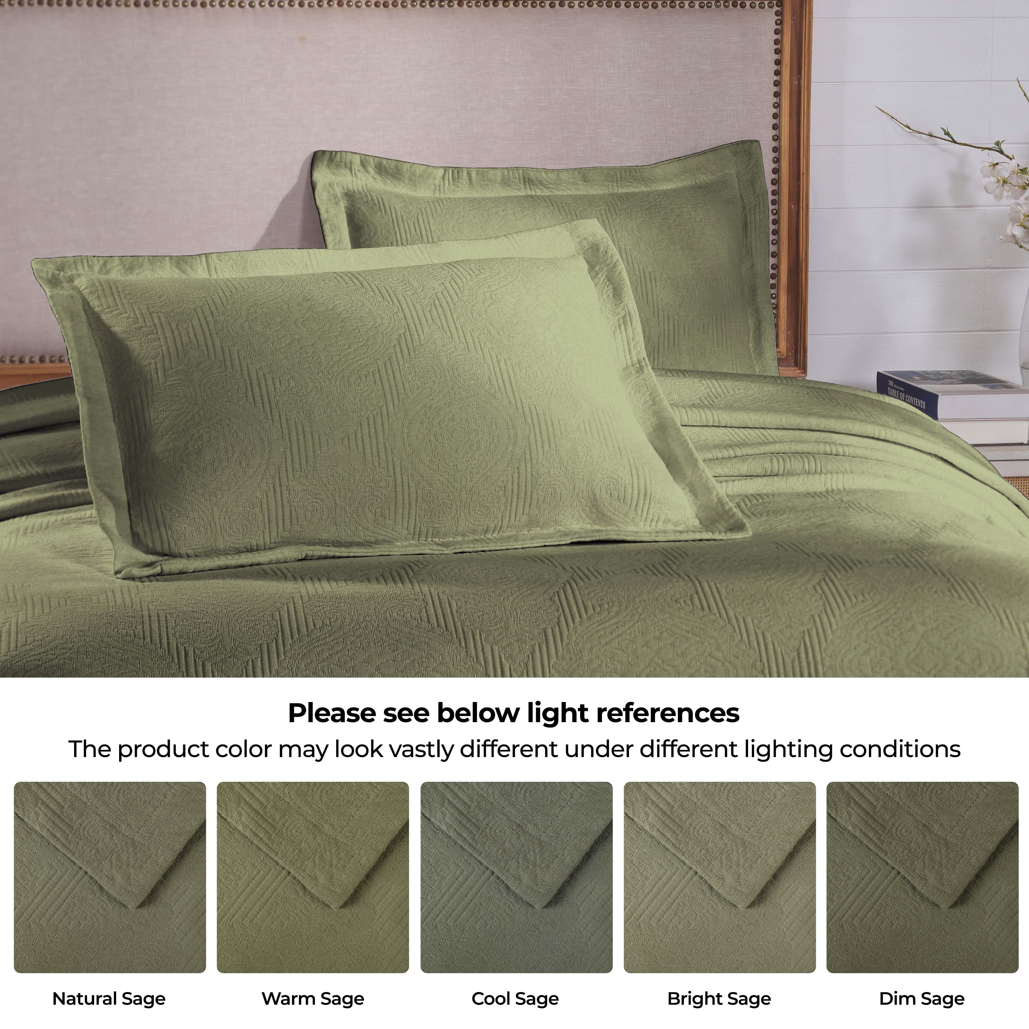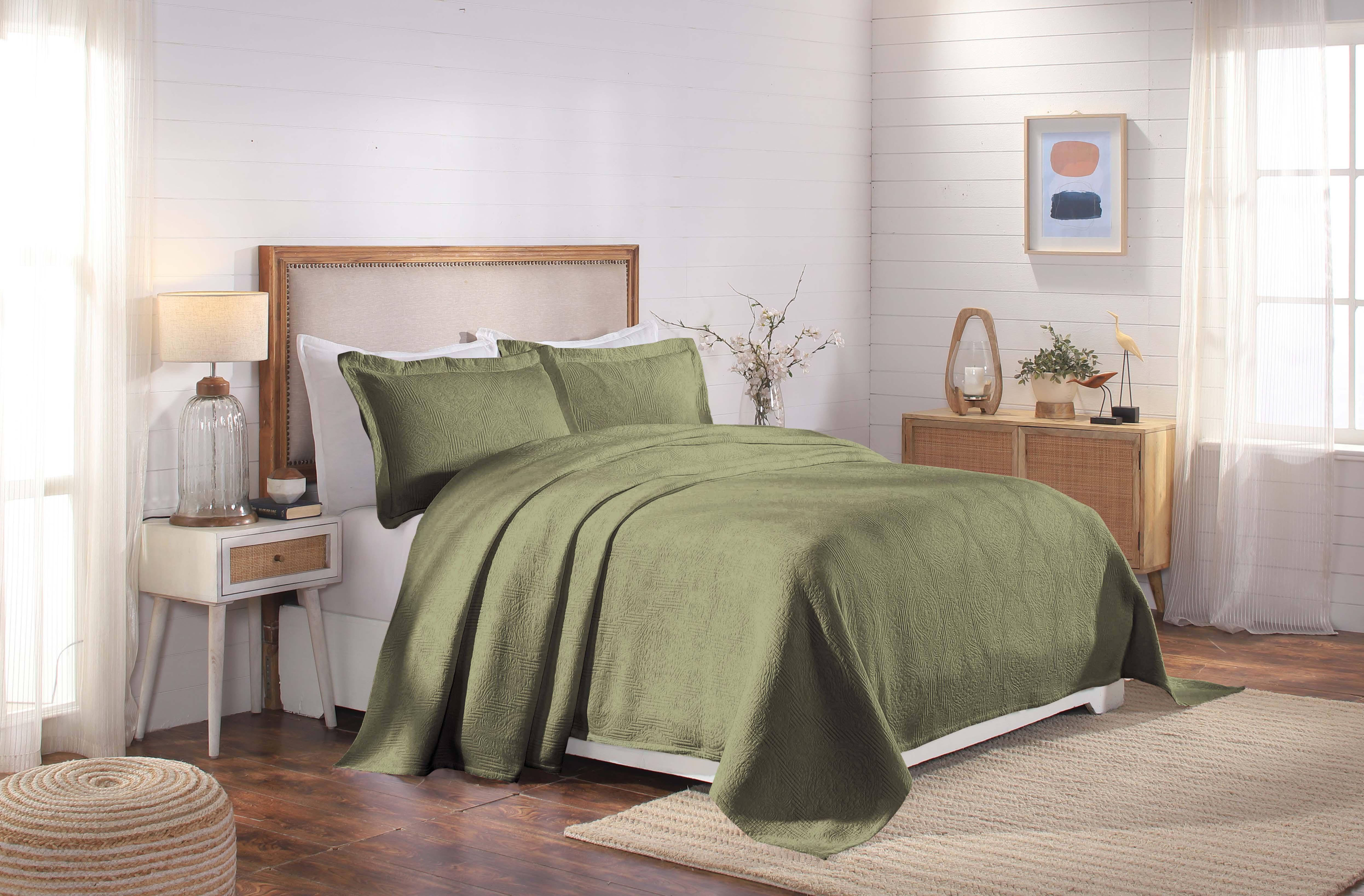 Experience the perfect blend of comfort and style with the premium Superior Victory Cotton Matelasse Bedspread and Pillow Sham Set. Crafted from 100% cotton, this light and breathable set is ideal for adding an extra layer of texture or for use on its own. The jacquard weave features an intricate scrolling medallion pattern that creates a stunning focal point in your bedroom. This gorgeous bundle includes 1 oversized bedspread that drapes elegantly to the floor, eliminating the need for a bed skirt, and 2 matching pillow shams (Twin size includes 1 pillow sham). Available in your choice of solid colors and sizes, updating the look of your modern or transitional space has never been easier.