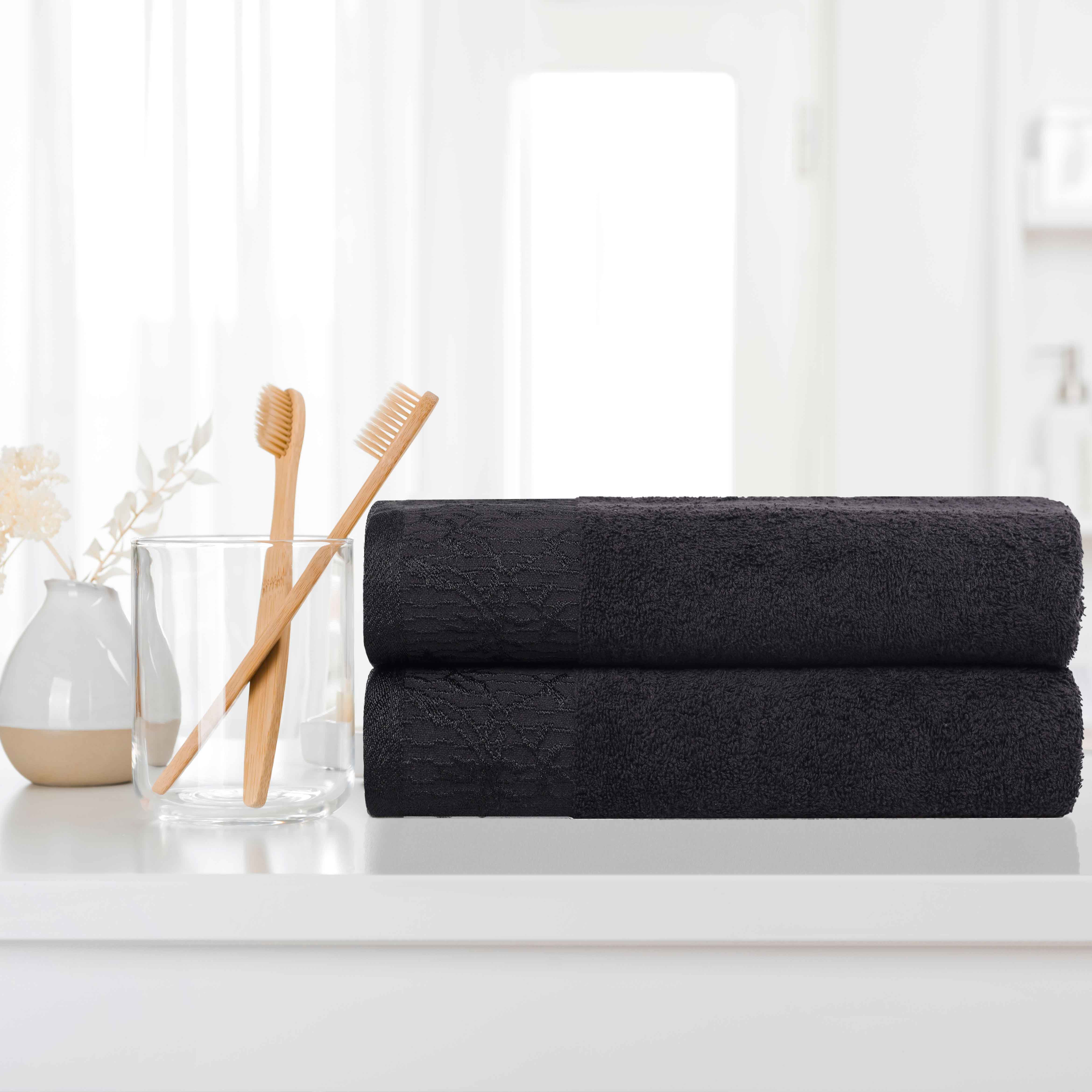 Elevate your post-bath routine and add a touch of understated elegance to your bathroom with our Wisteria Cotton Bath Towel Set. Crafted as medium-weight cotton bath towels, this set offers a balanced combination of comfort, durability, and reliable absorption, perfect for everyday use after your shower or bath. Designed to efficiently wick away moisture, these bath towels provide a comfortable drying experience. Featuring a beautifully detailed jacquard floral border, these bath towels will add captivating flair to your bathroom. Available in a variety of gorgeous color options to coordinate with any bathroom decor style, this set is essential for bringing a touch of spa-inspired tranquility to your home.